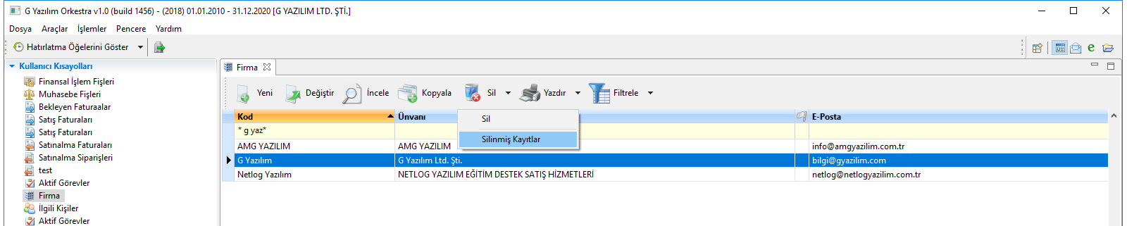Orkestra içerisinden silinmiş kayıtlara sistem yöneticisi anında ulaşım sağlayabilmektedir. Silinen kayıtları görüntüleyebilir ve eğer isterse tekrar geri yükleyebilir. Bu işlemlerin canlı sistem üzerinden kolaylıkla yapılabilmesi işletmelere zaman kazandırmaktadır.