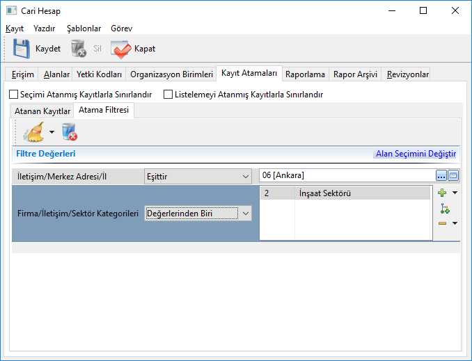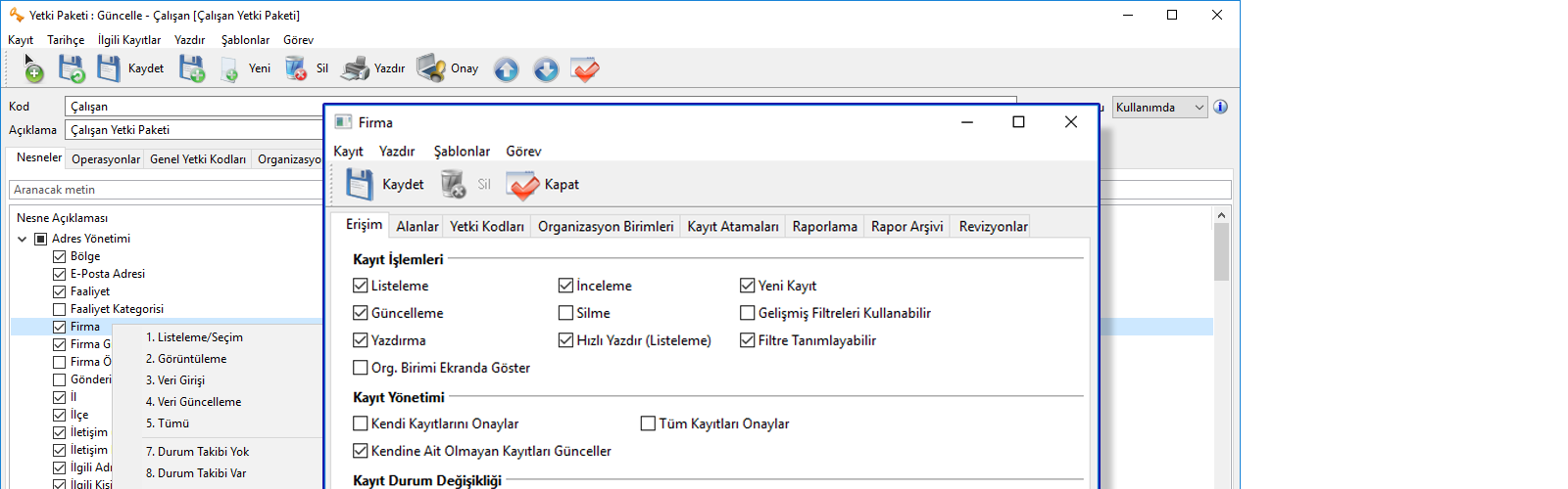 Kayıt atamaları ile nesnelerin kayıt bazında veya bir filtreye uyan şekilde yetkilendirilmesi sağlanmaktadır.