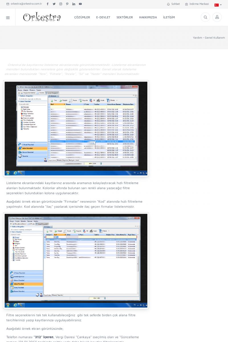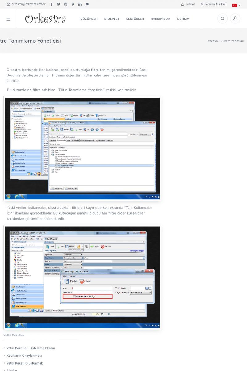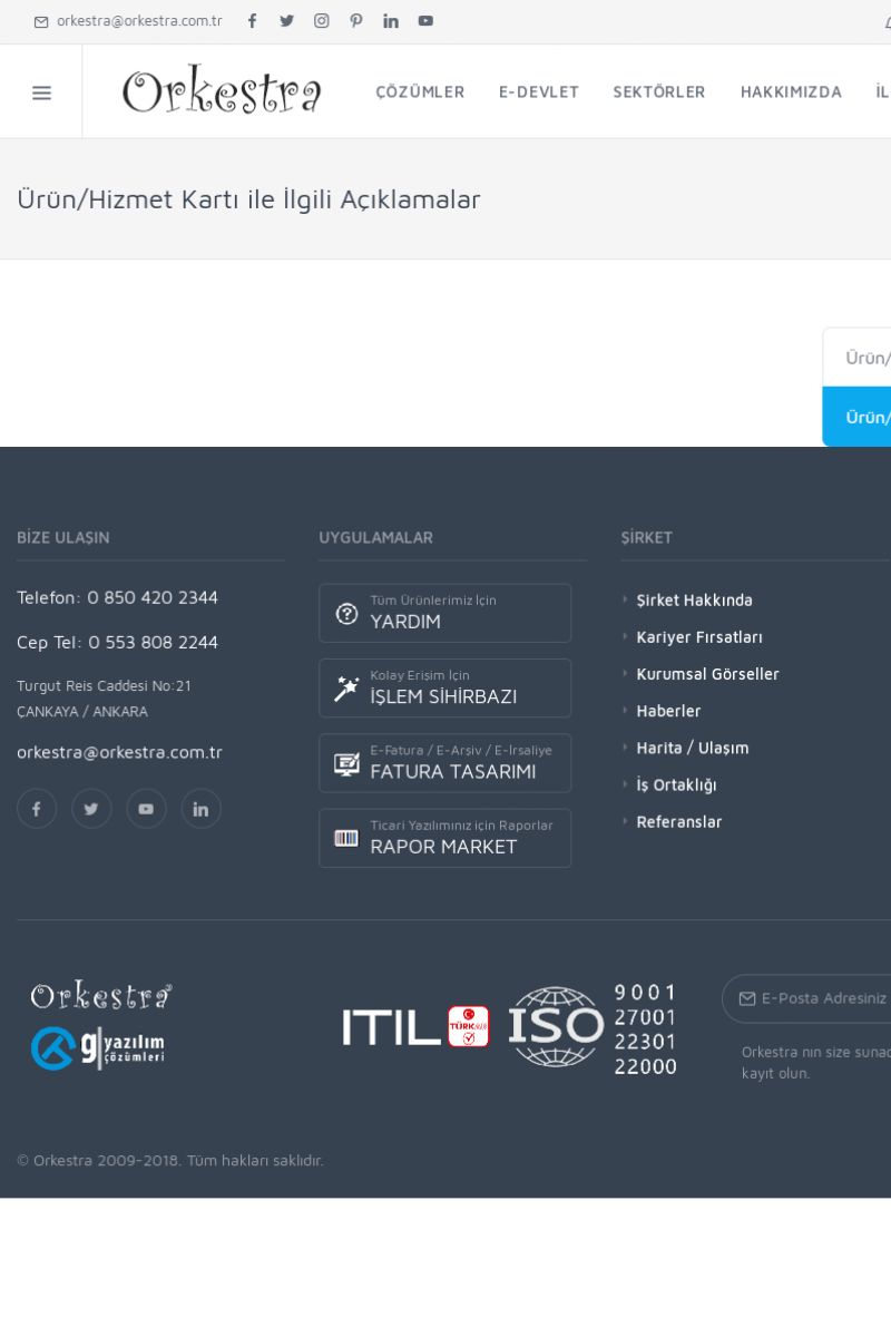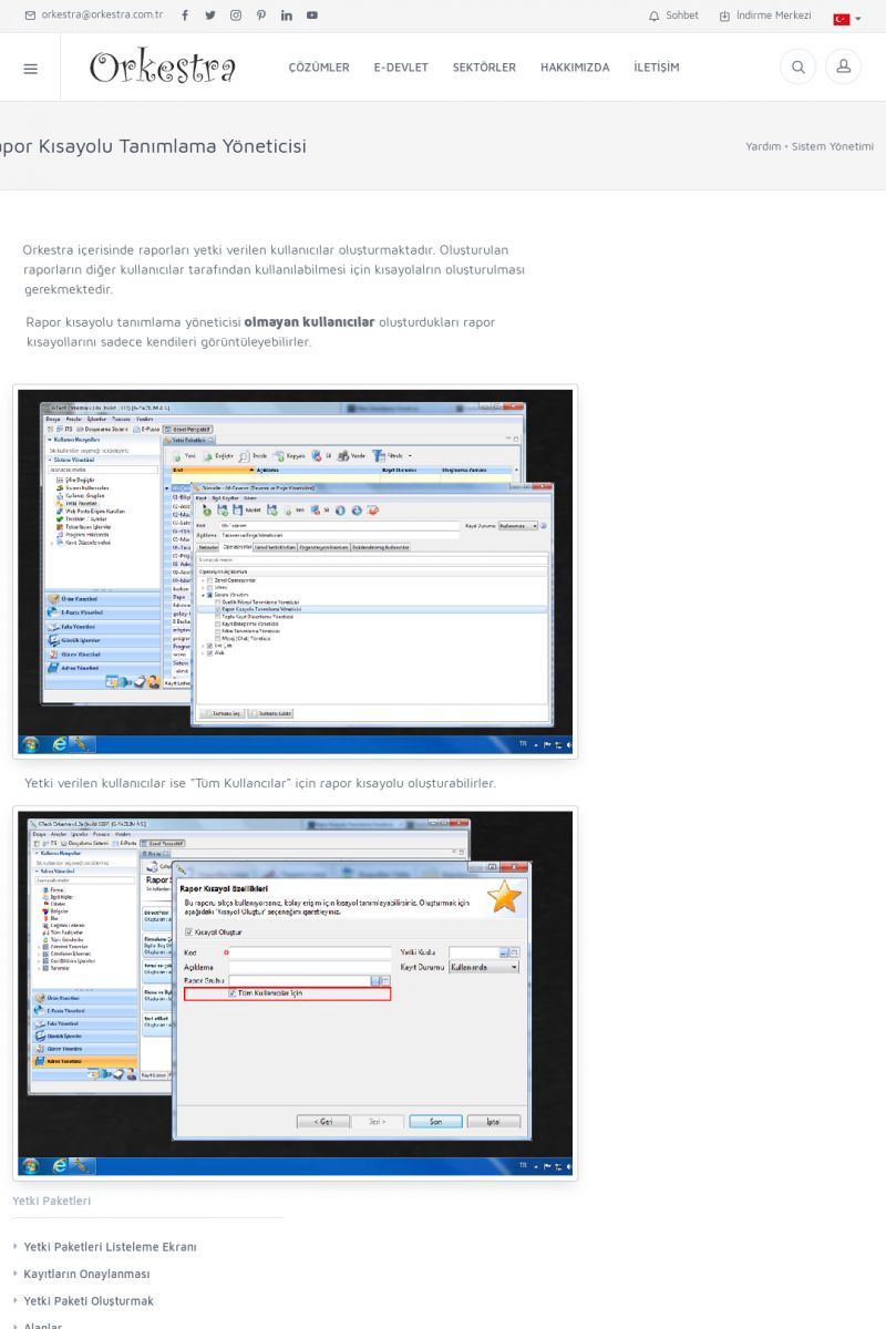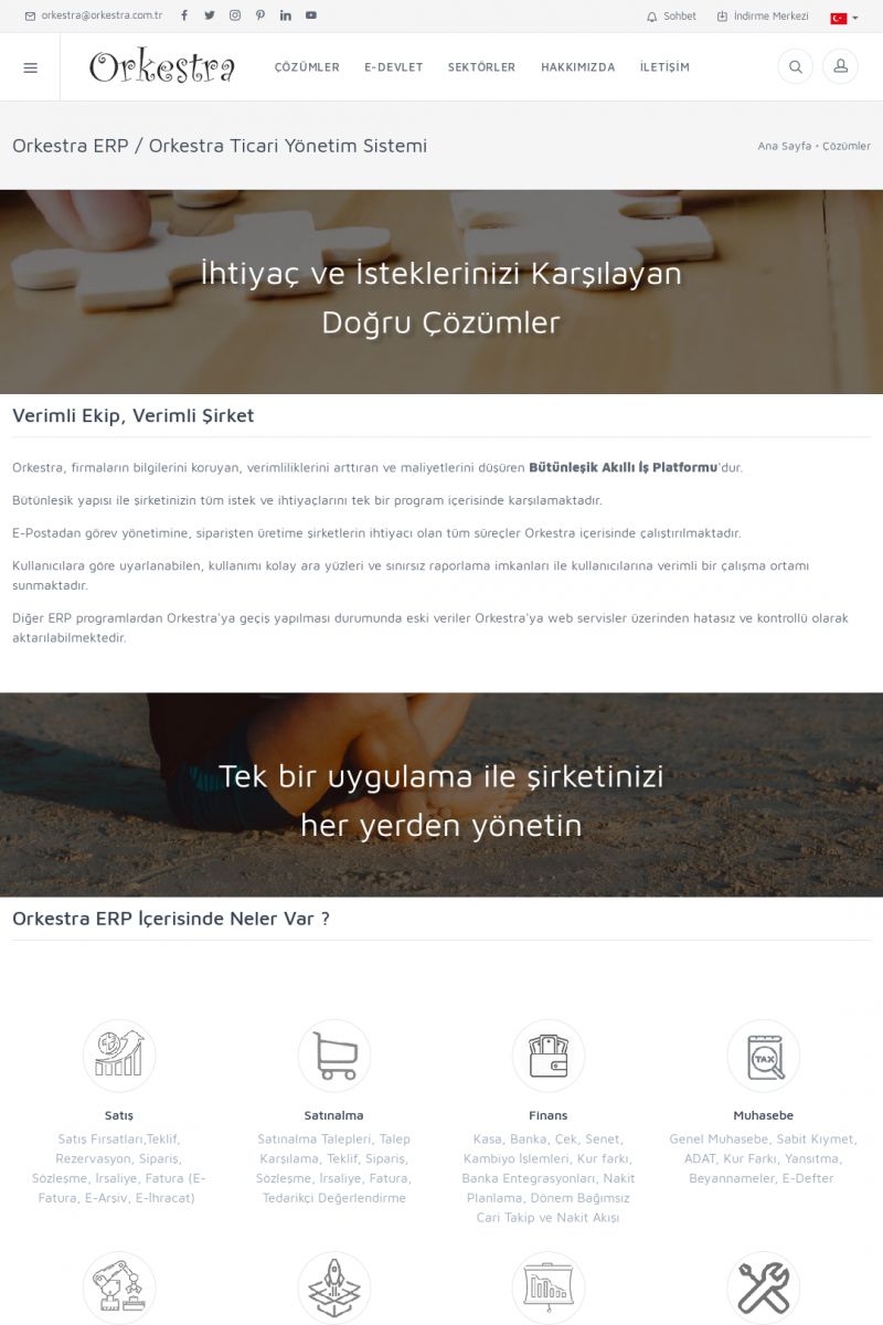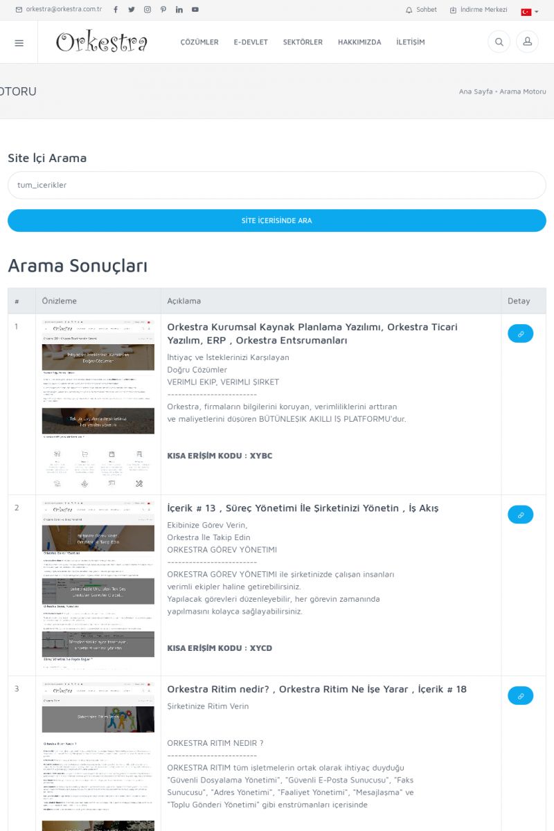 | 22 |  | Çözümler Sayfasıİhtiyaç ve İsteklerinizi Karşılayan Doğru Çözümler VERIMLI EKIP, VERIMLI ŞIRKET ------------------------- Orkestra, firmaların bilgilerini koruyan, verimliliklerini arttıran ve maliyetlerini düşüren Akıllı İş Platformu'dur. KISA ERİŞİM KODU : XYWF / ARA22 | |