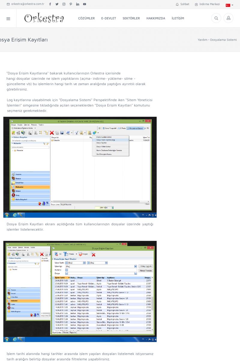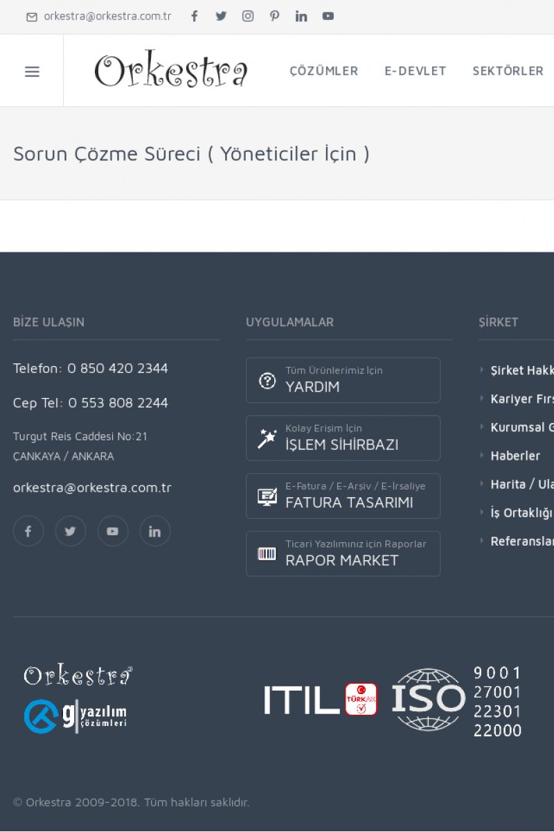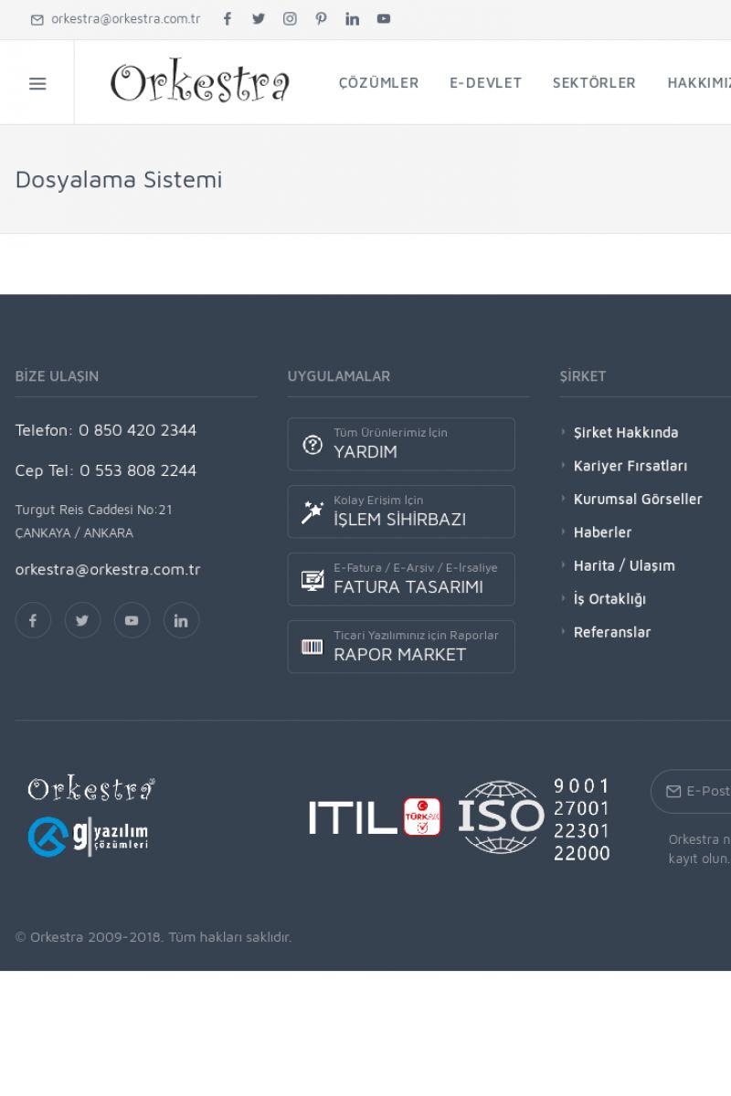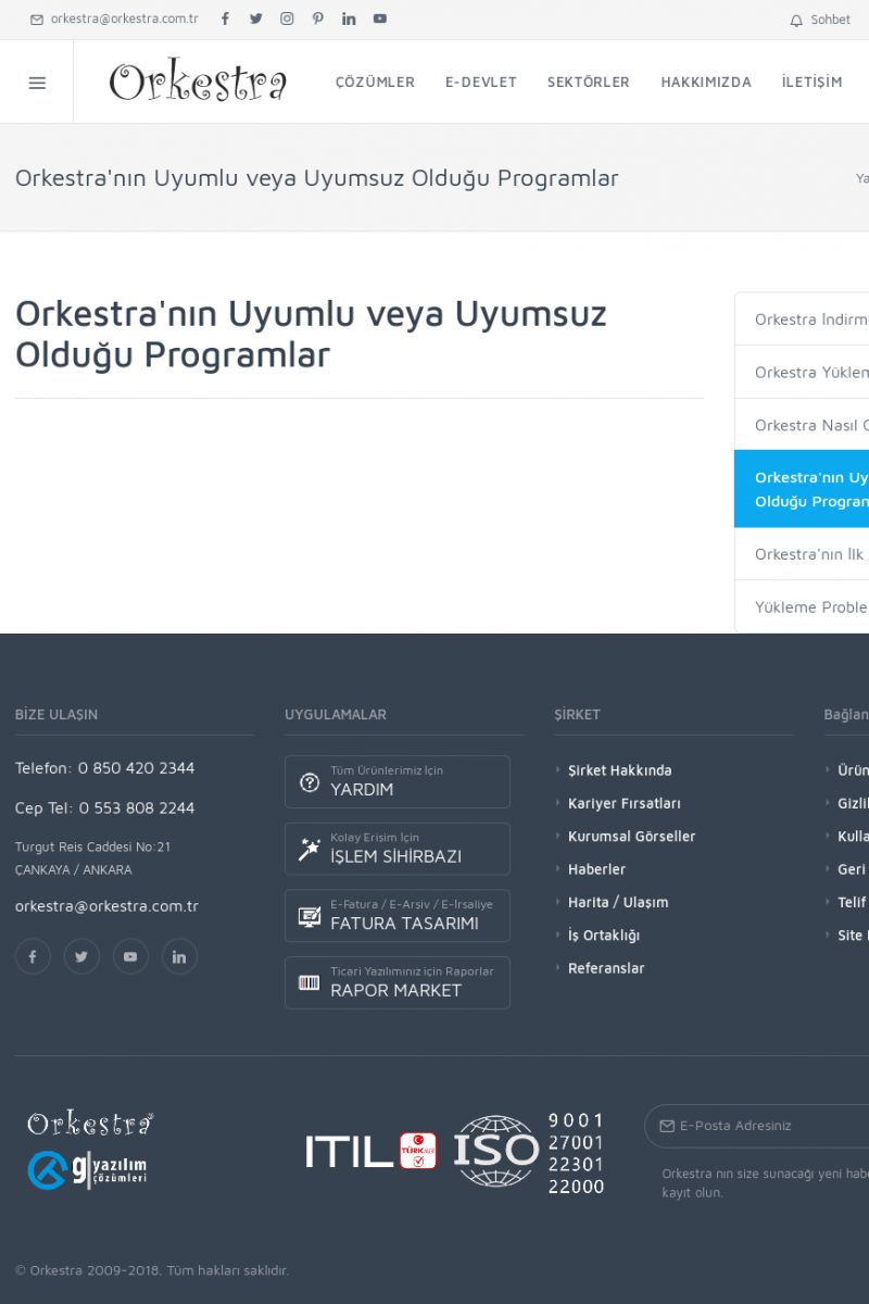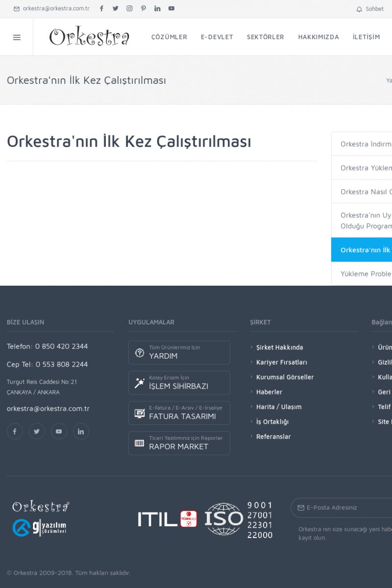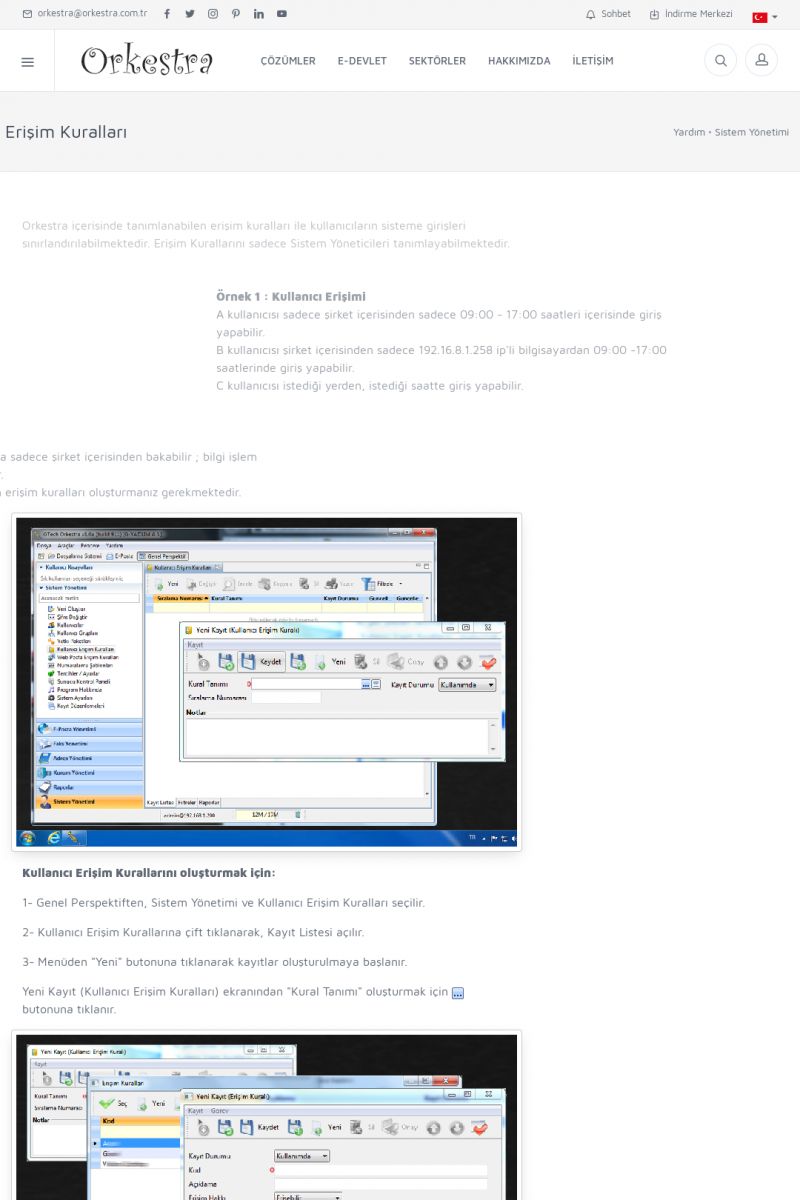 | 22 |  | Çözümler Sayfasıİhtiyaç ve İsteklerinizi Karşılayan Doğru Çözümler VERIMLI EKIP, VERIMLI ŞIRKET ------------------------- Orkestra, firmaların bilgilerini koruyan, verimliliklerini arttıran ve maliyetlerini düşüren Akıllı İş Platformu'dur. KISA ERİŞİM KODU : XYWF / ARA22 | |