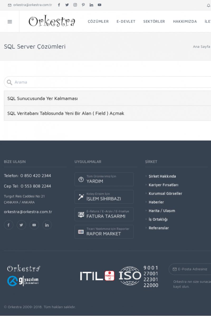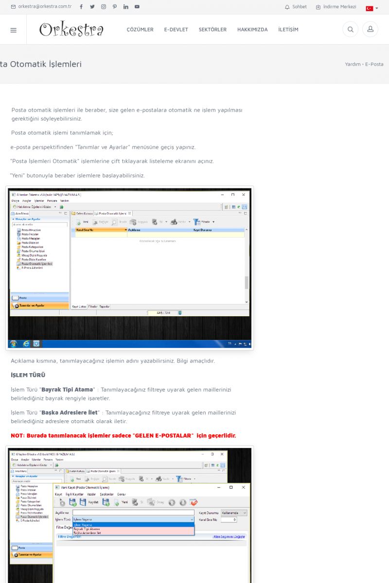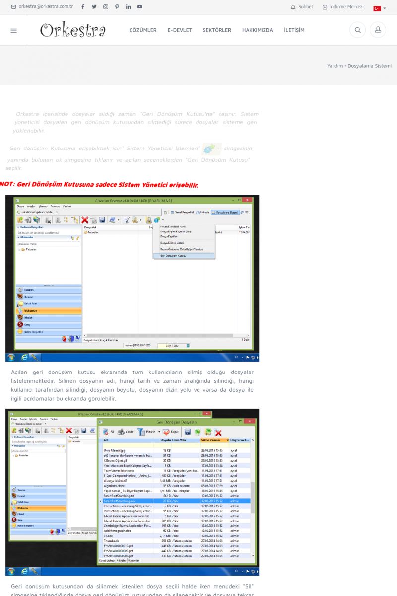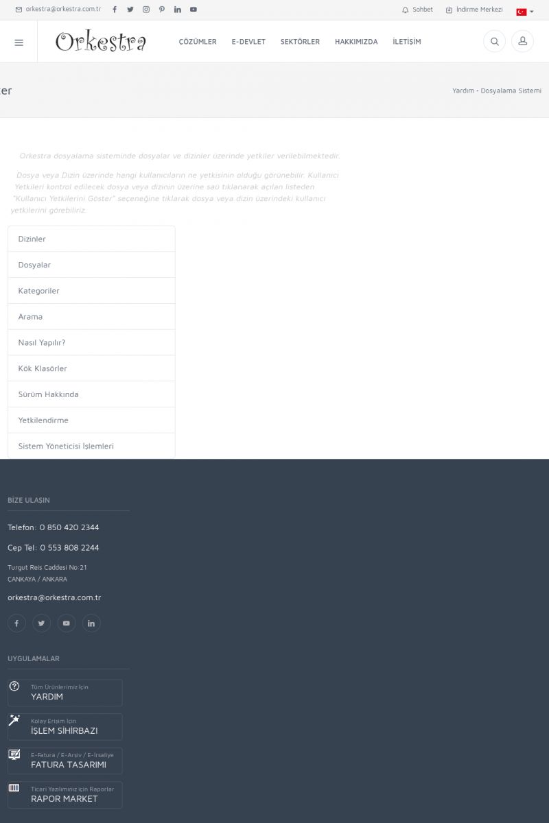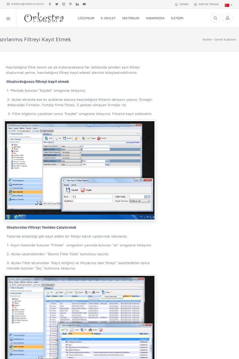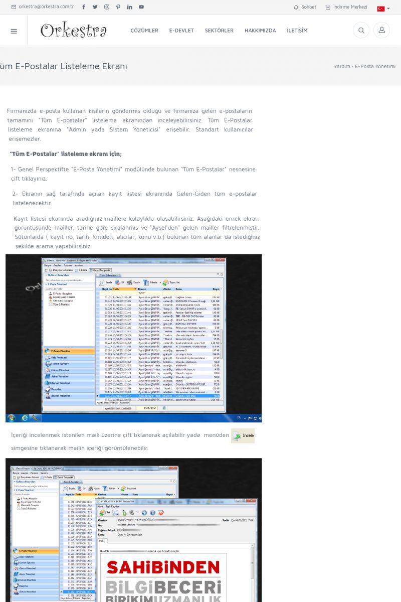 | 22 |  | Çözümler Sayfasıİhtiyaç ve İsteklerinizi Karşılayan Doğru Çözümler VERIMLI EKIP, VERIMLI ŞIRKET ------------------------- Orkestra, firmaların bilgilerini koruyan, verimliliklerini arttıran ve maliyetlerini düşüren Akıllı İş Platformu'dur. KISA ERİŞİM KODU : XYWF / ARA22 | |