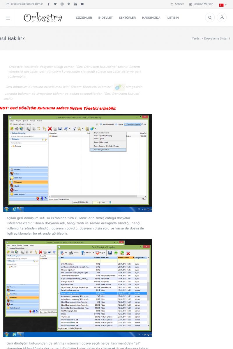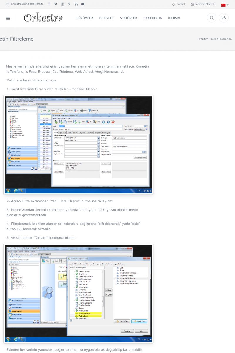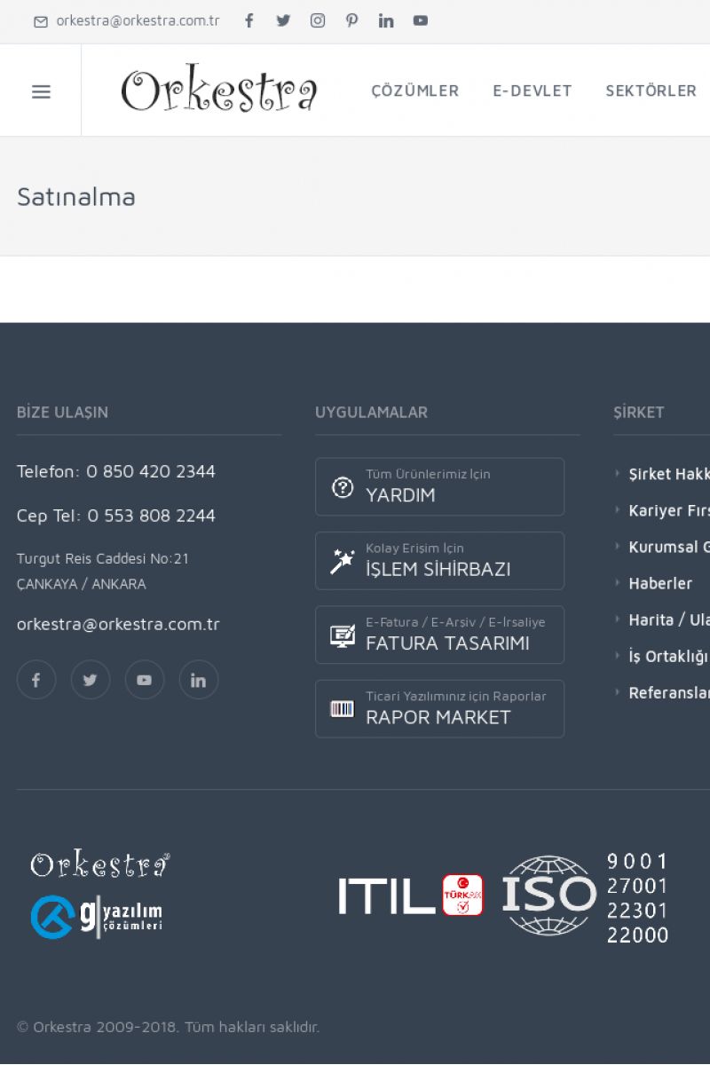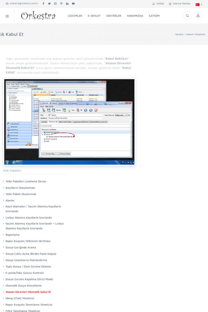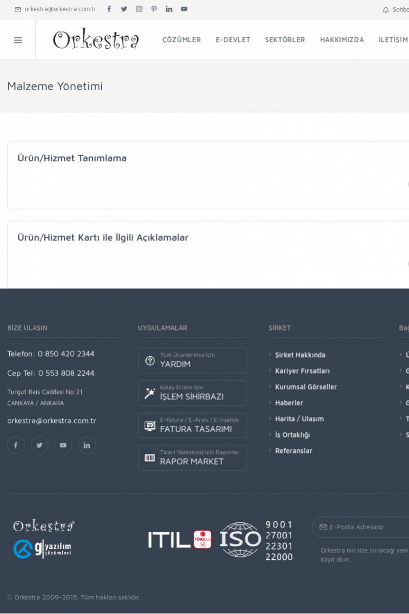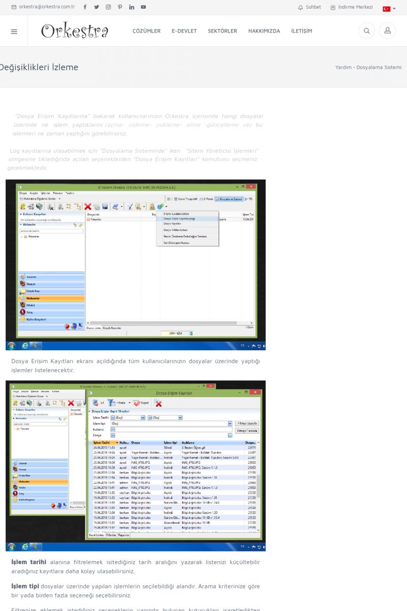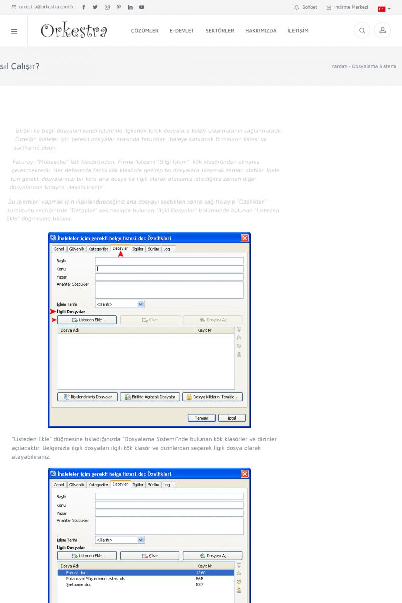 | 22 |  | Çözümler Sayfasıİhtiyaç ve İsteklerinizi Karşılayan Doğru Çözümler VERIMLI EKIP, VERIMLI ŞIRKET ------------------------- Orkestra, firmaların bilgilerini koruyan, verimliliklerini arttıran ve maliyetlerini düşüren Akıllı İş Platformu'dur. KISA ERİŞİM KODU : XYWF / ARA22 | |