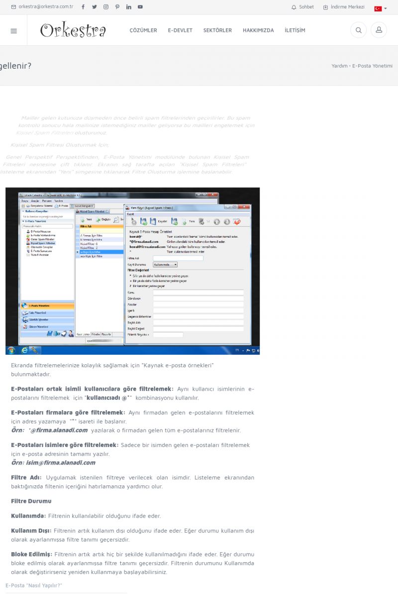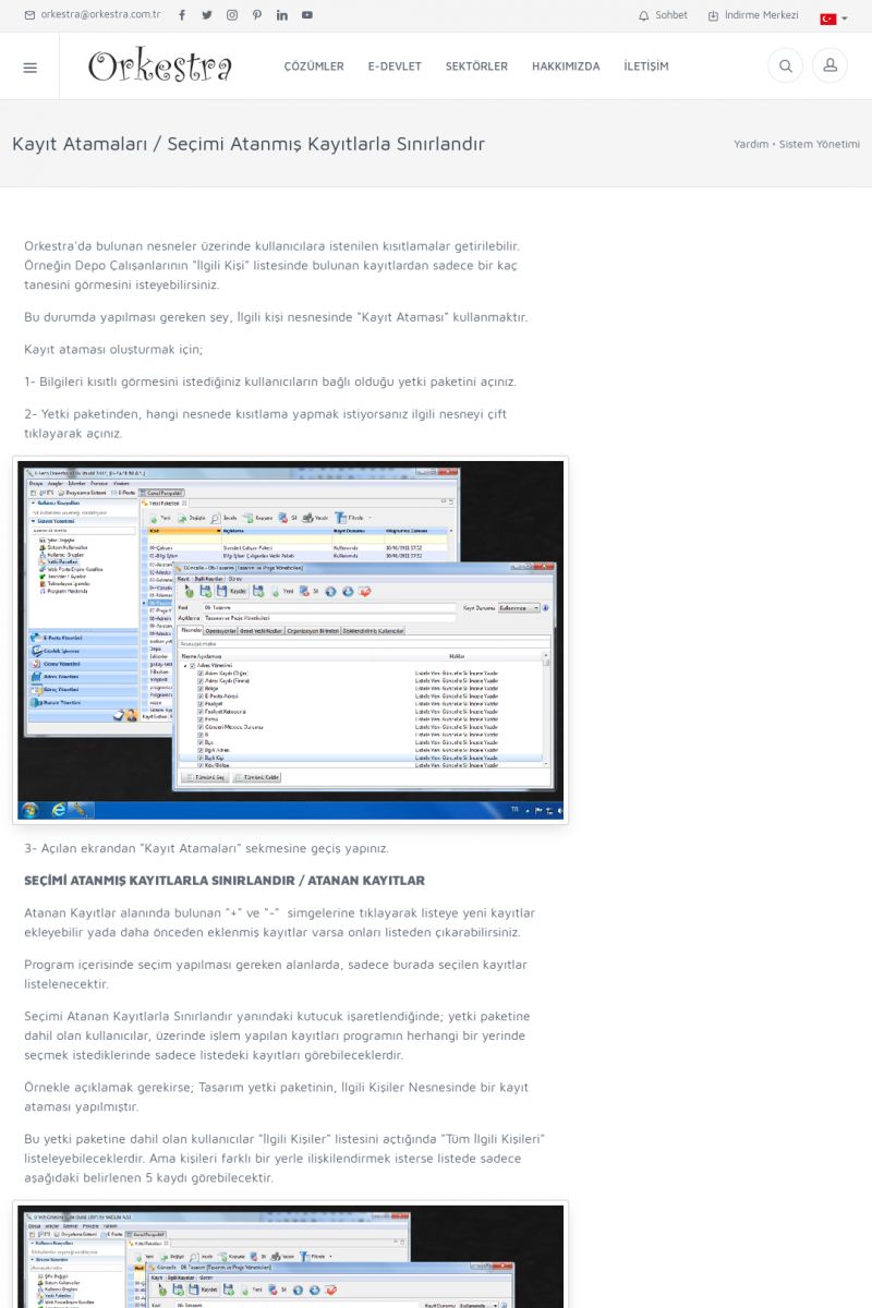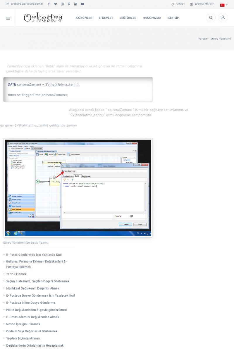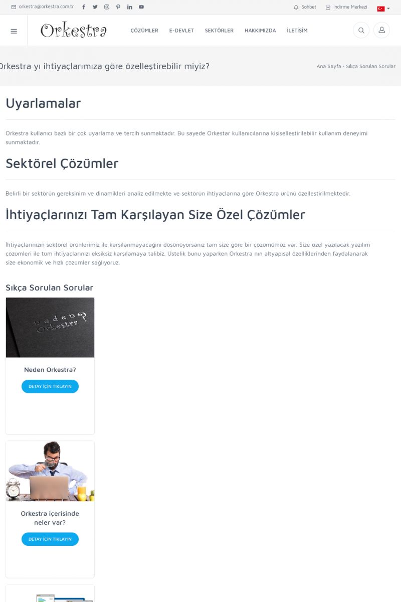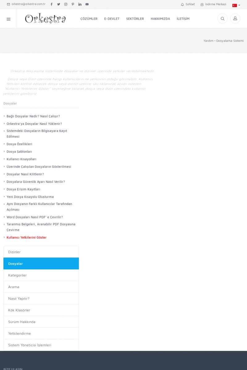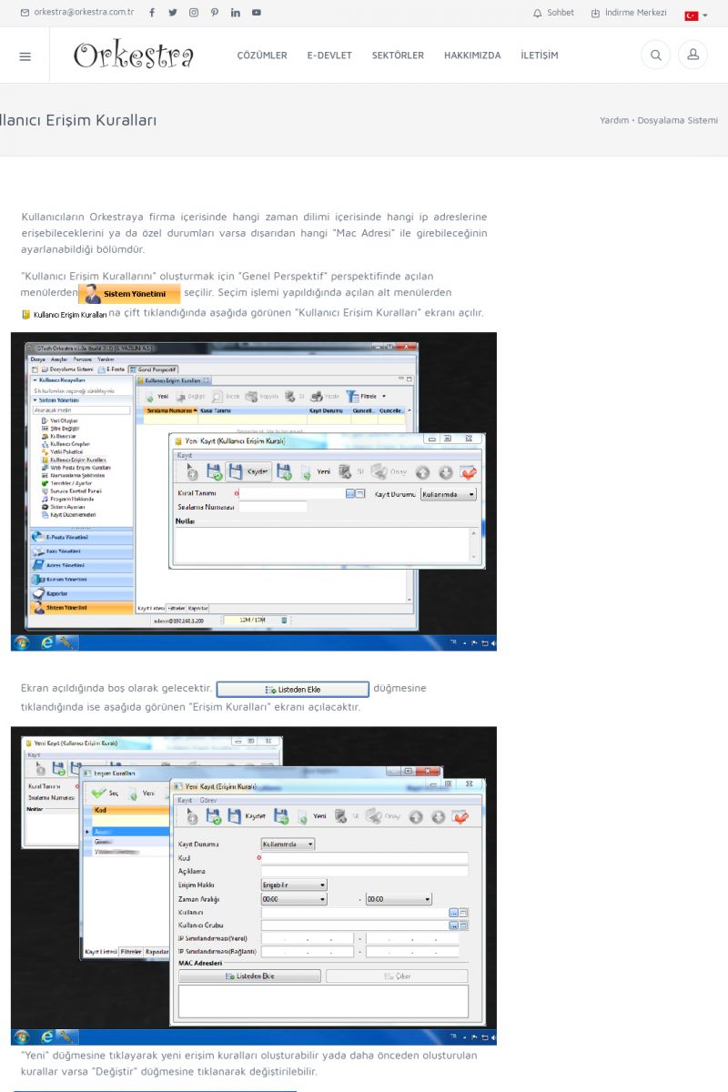 | 22 |  | Çözümler Sayfasıİhtiyaç ve İsteklerinizi Karşılayan Doğru Çözümler VERIMLI EKIP, VERIMLI ŞIRKET ------------------------- Orkestra, firmaların bilgilerini koruyan, verimliliklerini arttıran ve maliyetlerini düşüren Akıllı İş Platformu'dur. KISA ERİŞİM KODU : XYWF / ARA22 | |