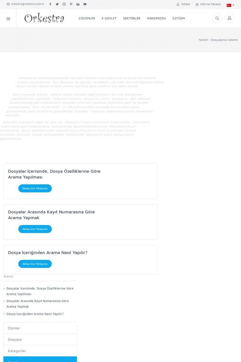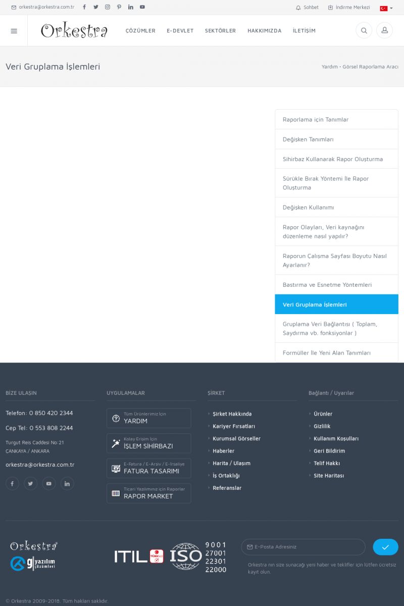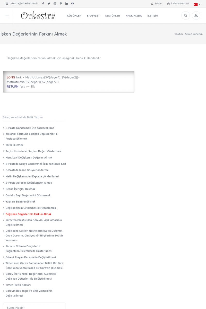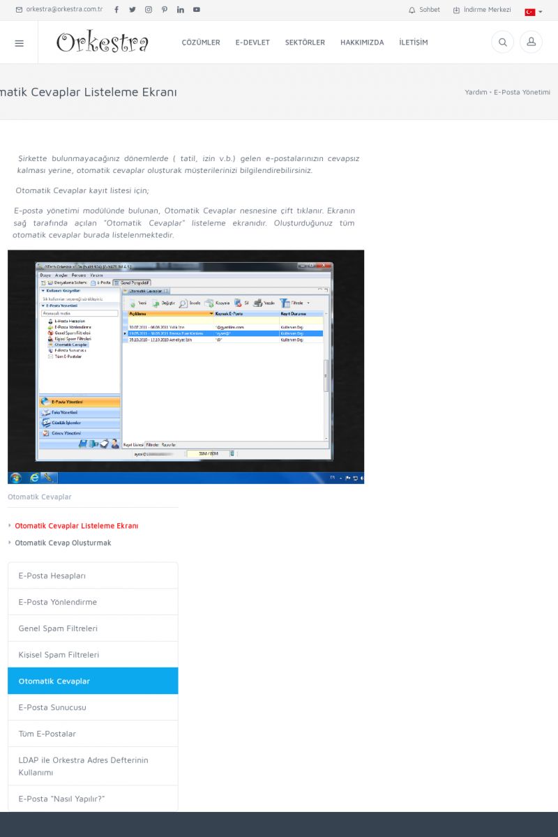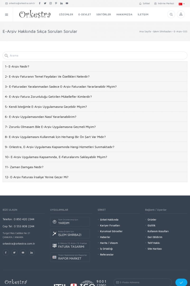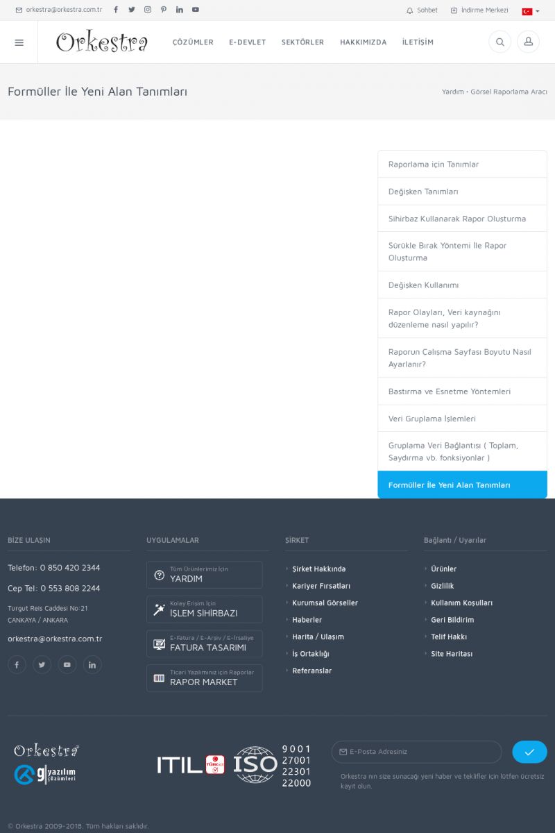 | 22 |  | Çözümler Sayfasıİhtiyaç ve İsteklerinizi Karşılayan Doğru Çözümler VERIMLI EKIP, VERIMLI ŞIRKET ------------------------- Orkestra, firmaların bilgilerini koruyan, verimliliklerini arttıran ve maliyetlerini düşüren Akıllı İş Platformu'dur. KISA ERİŞİM KODU : XYWF / ARA22 | |