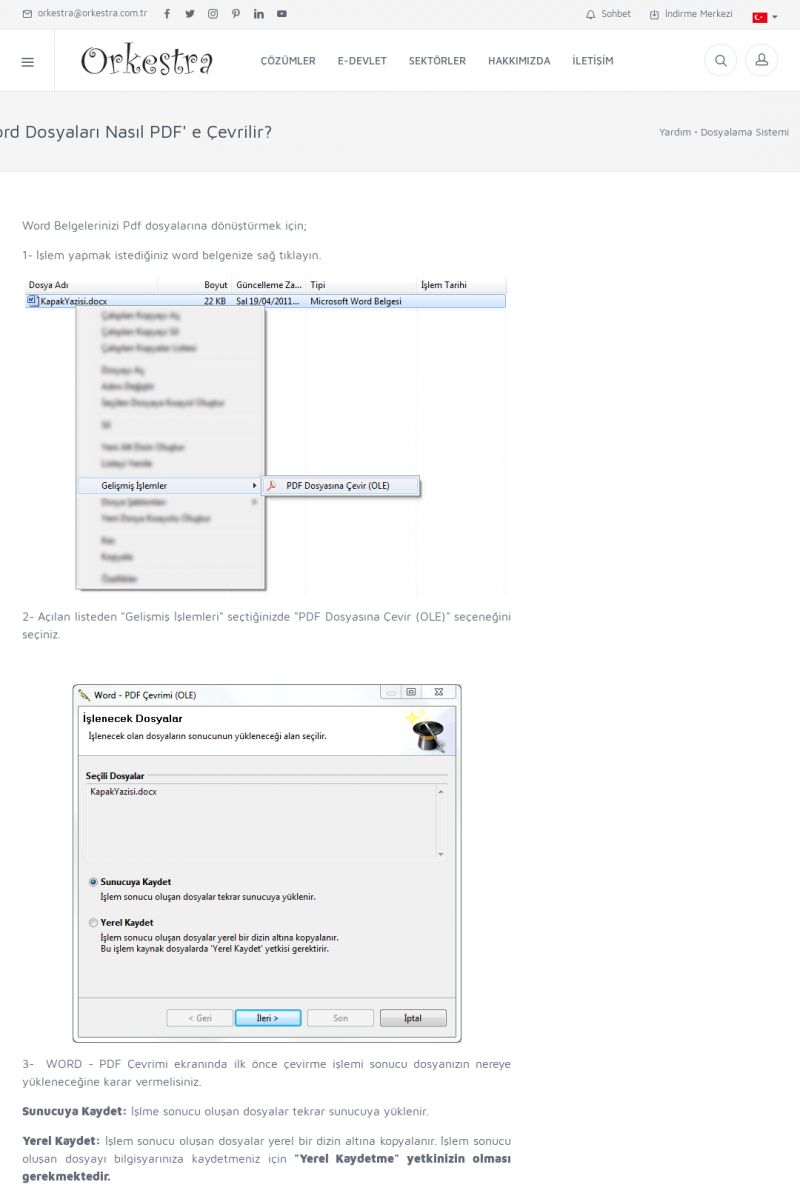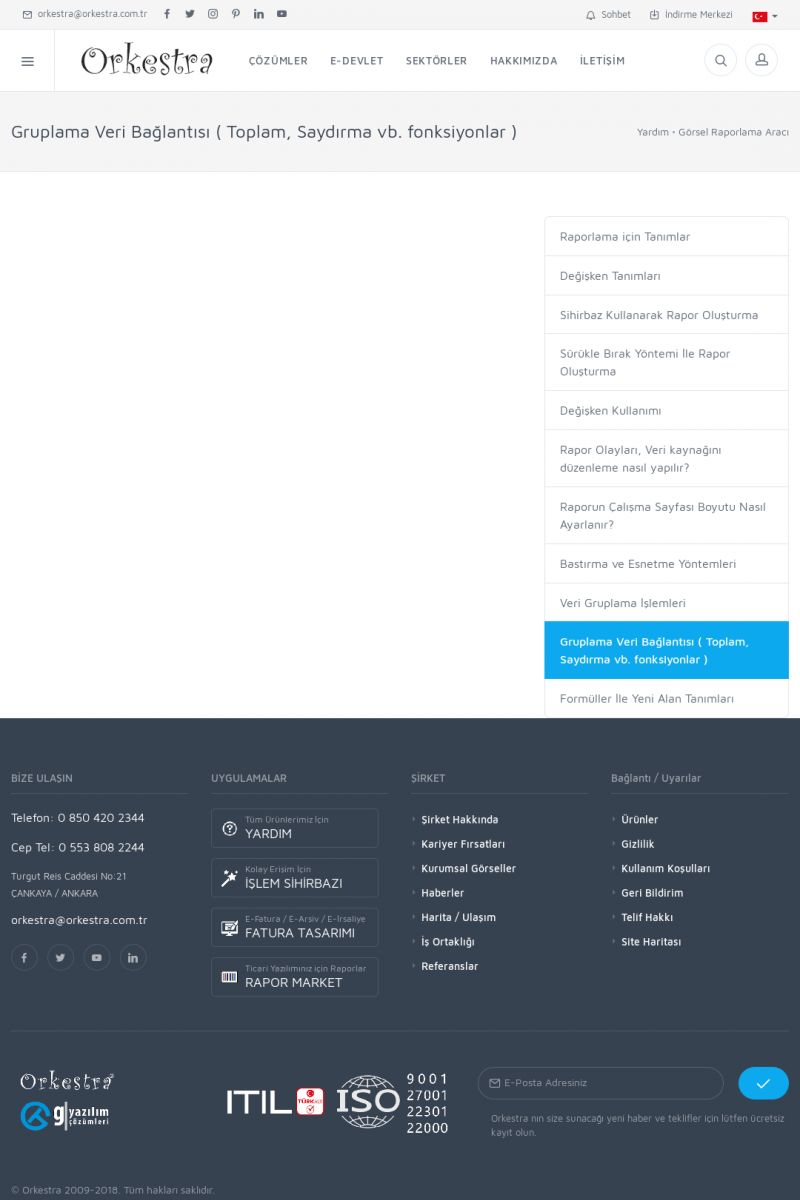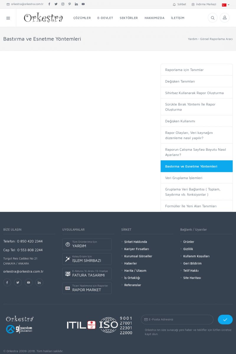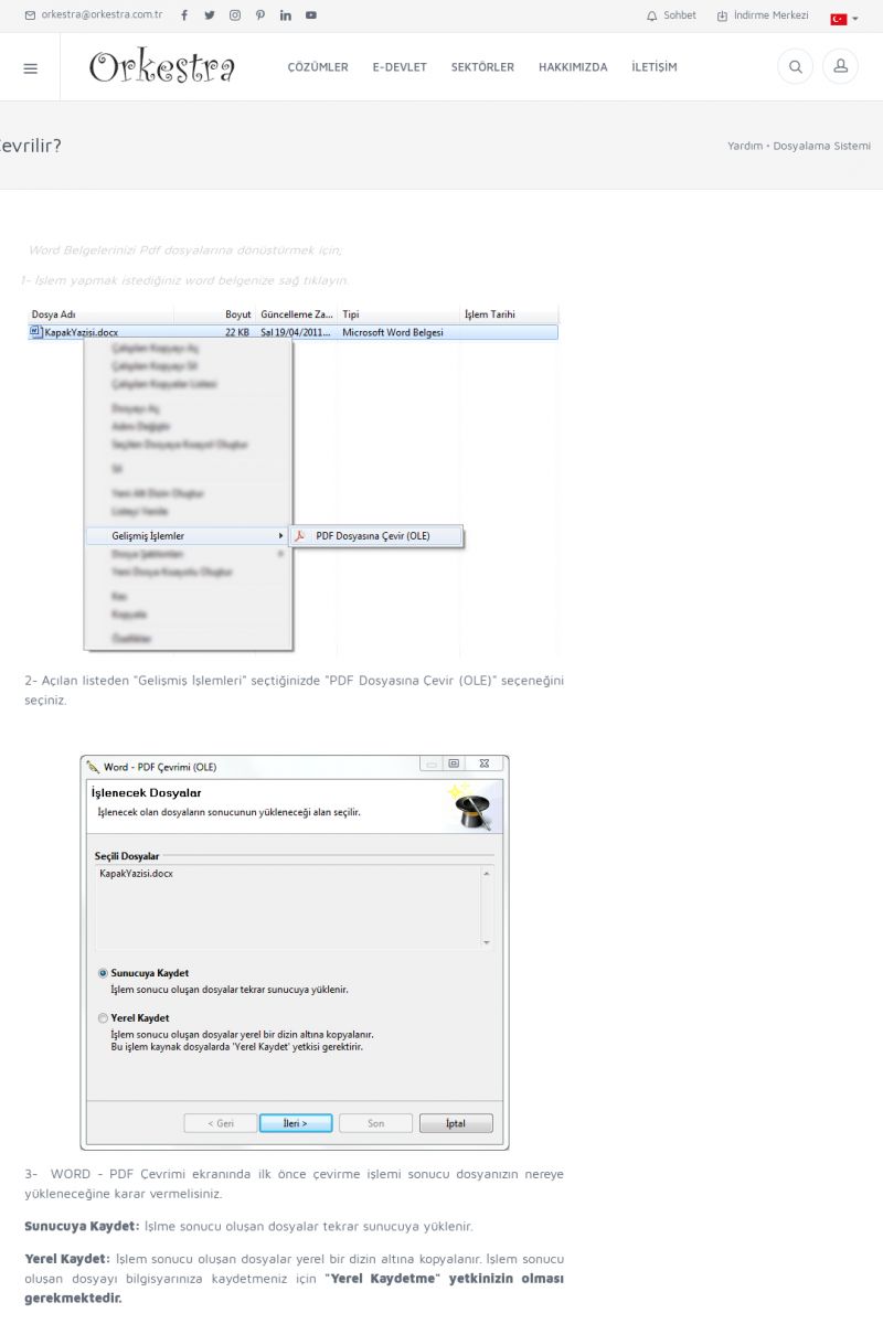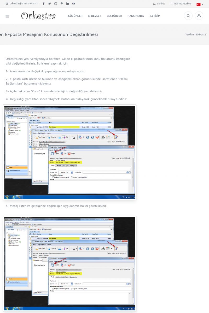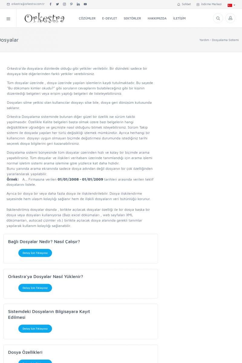 | 22 |  | Çözümler Sayfasıİhtiyaç ve İsteklerinizi Karşılayan Doğru Çözümler VERIMLI EKIP, VERIMLI ŞIRKET ------------------------- Orkestra, firmaların bilgilerini koruyan, verimliliklerini arttıran ve maliyetlerini düşüren Akıllı İş Platformu'dur. KISA ERİŞİM KODU : XYWF / ARA22 | |