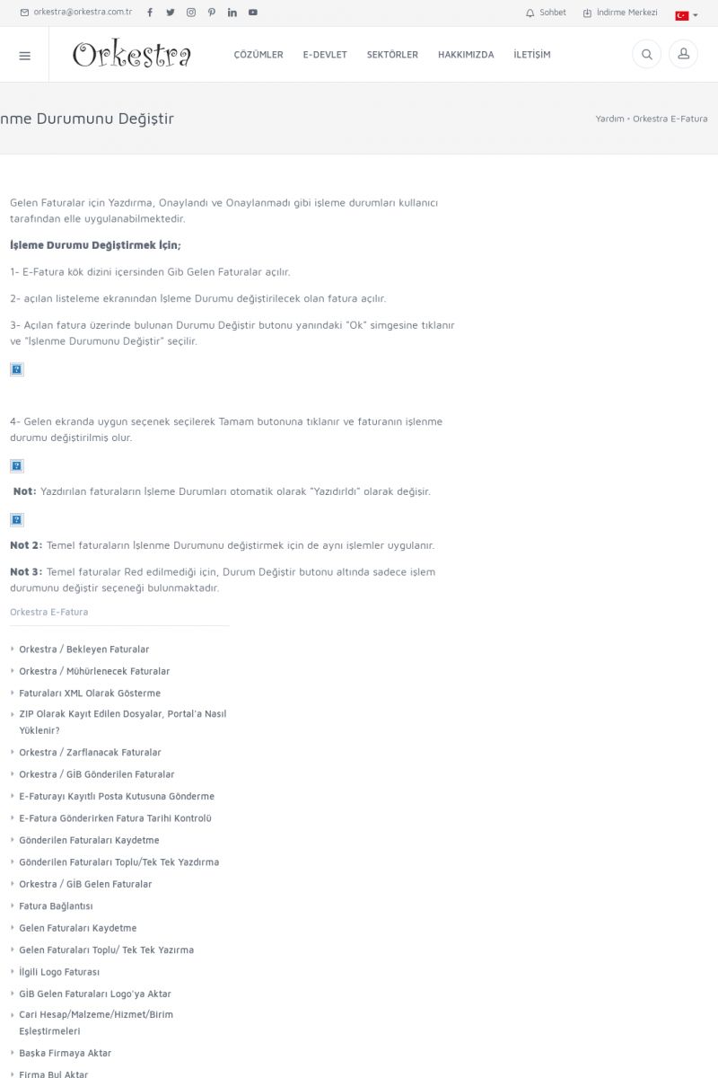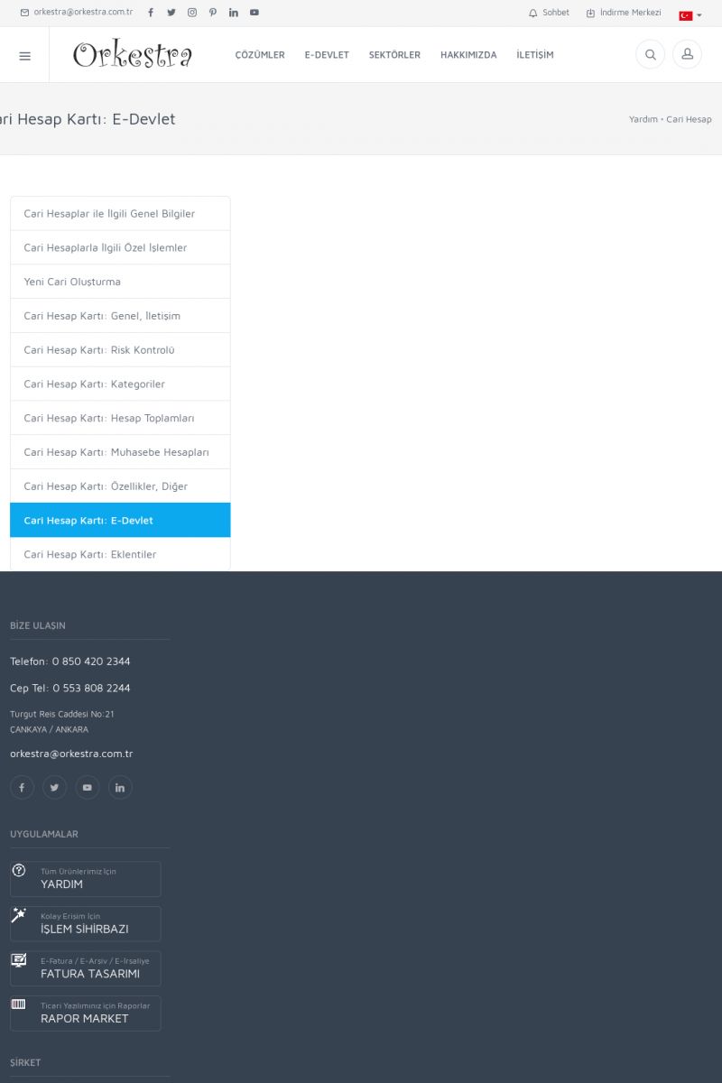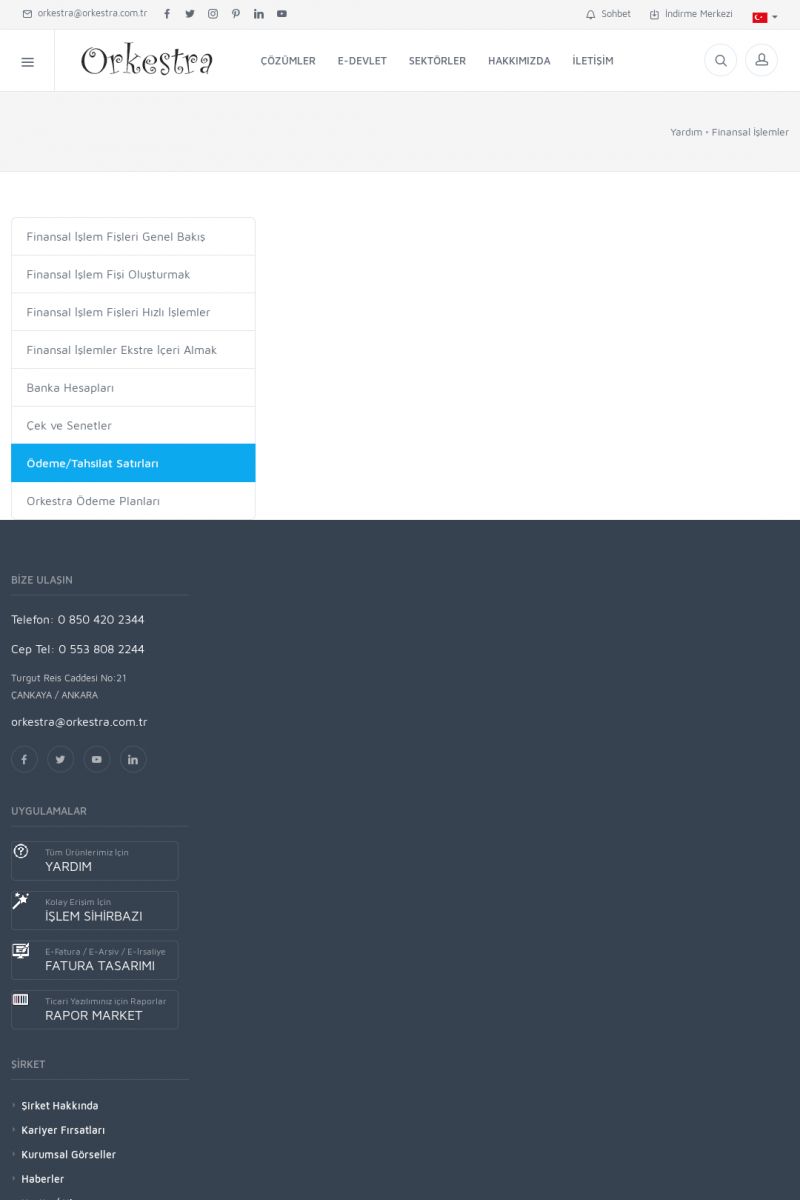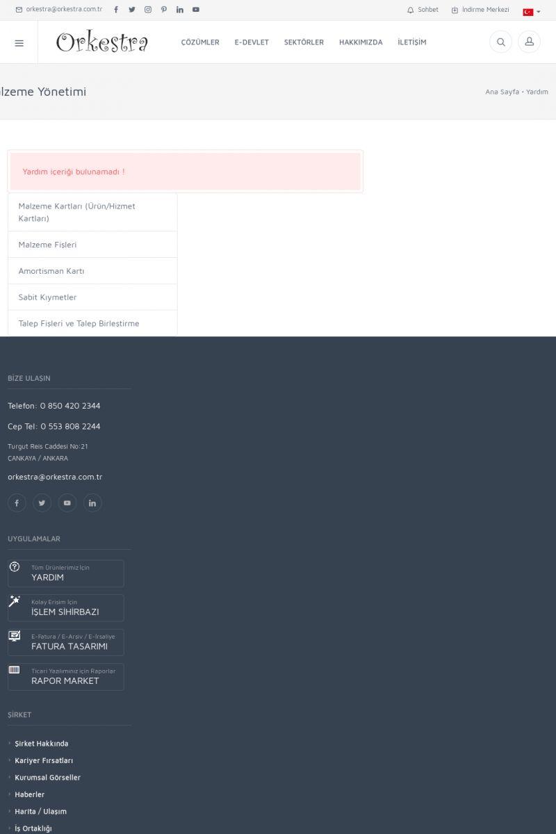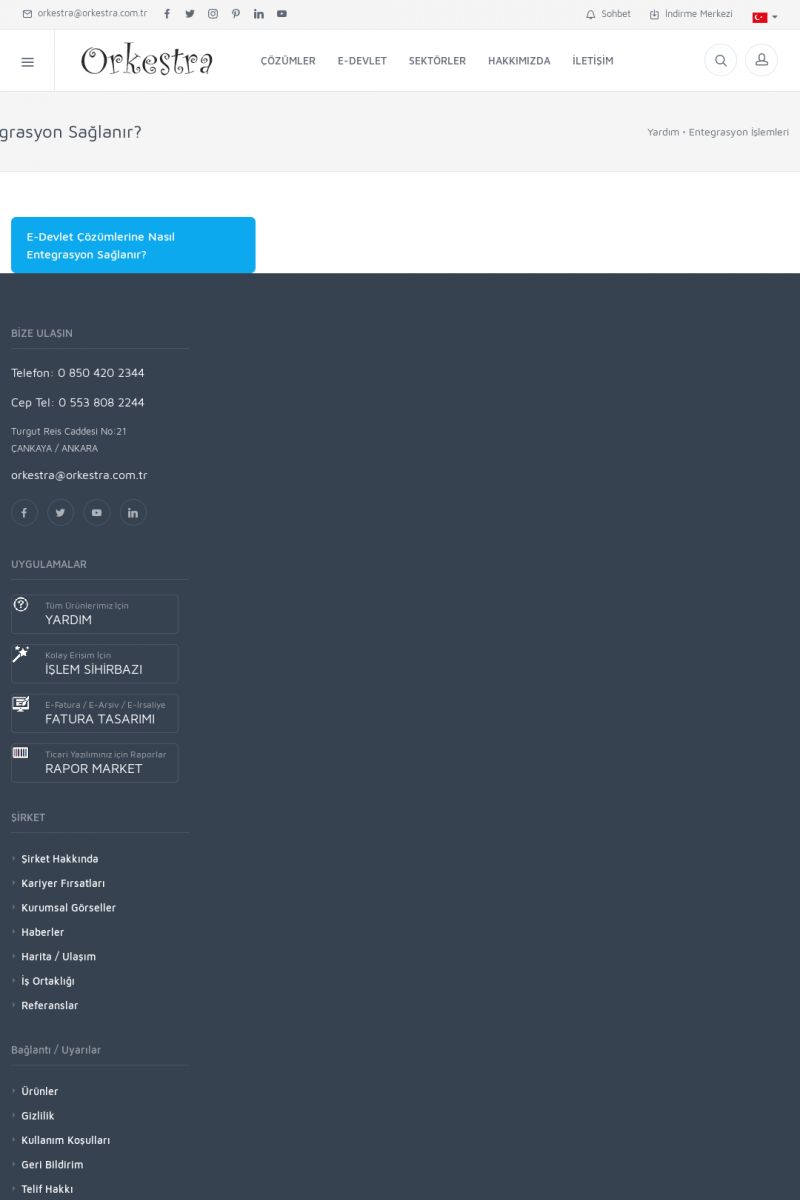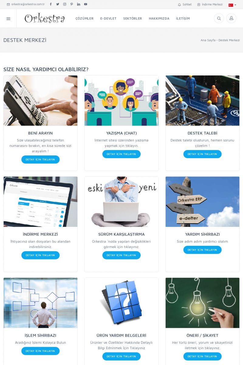 | 19 |  | Orkestra Destek Merkezi , SİZE NASIL YARDIMCI OLABİLİRİZ?Bu sayfa içerisindeki bağlantılar ile istediğiniz desteğe kolaylıkla ulaşabilirsiniz. İsterseniz sizi bşiz arayalım. İsterseniz çevirim içi yazışma ile size destek sunalım. İsterseniz şirketiniz için destek talebi oluşturun. KISA ERİŞİM KODU : XYTL / ARA19 | |