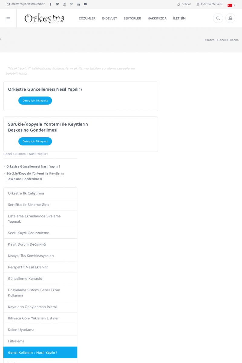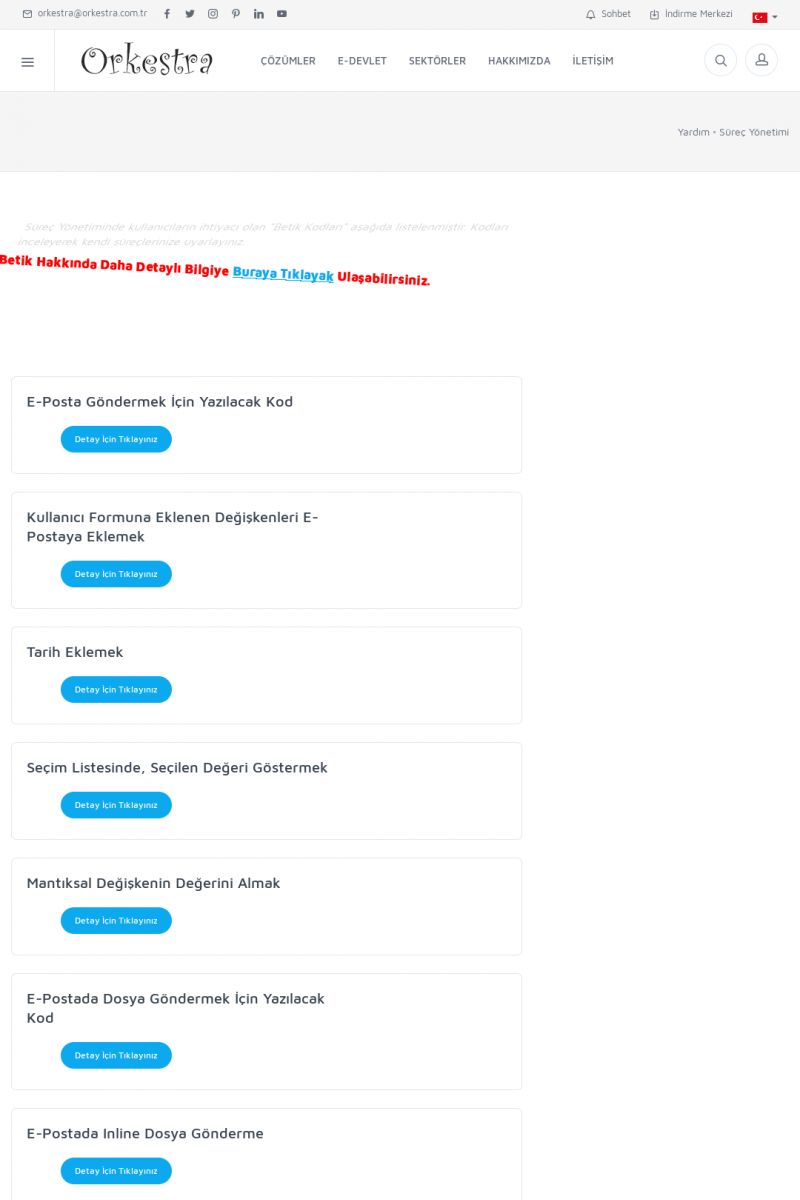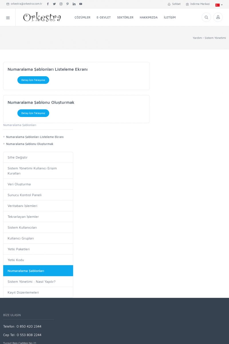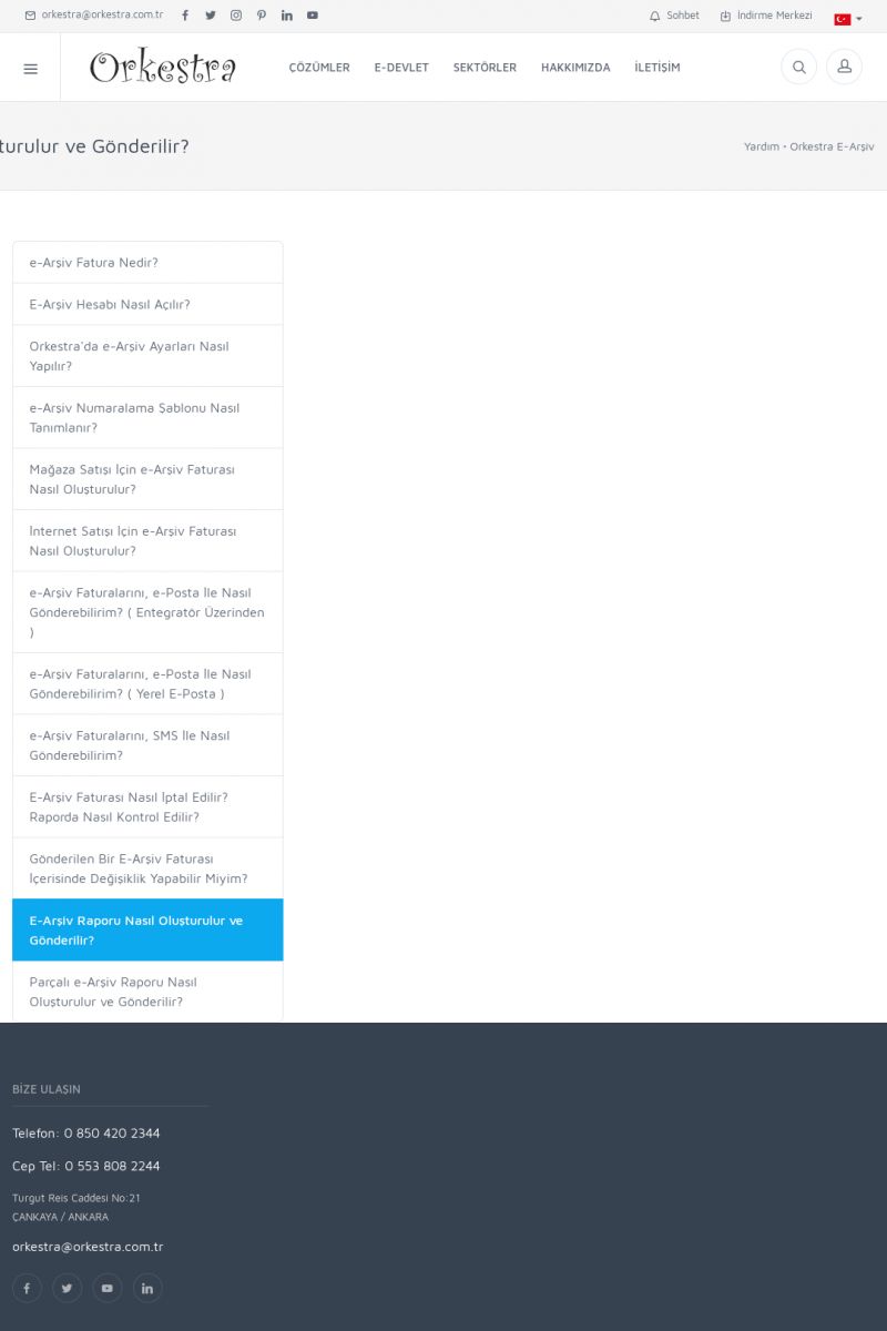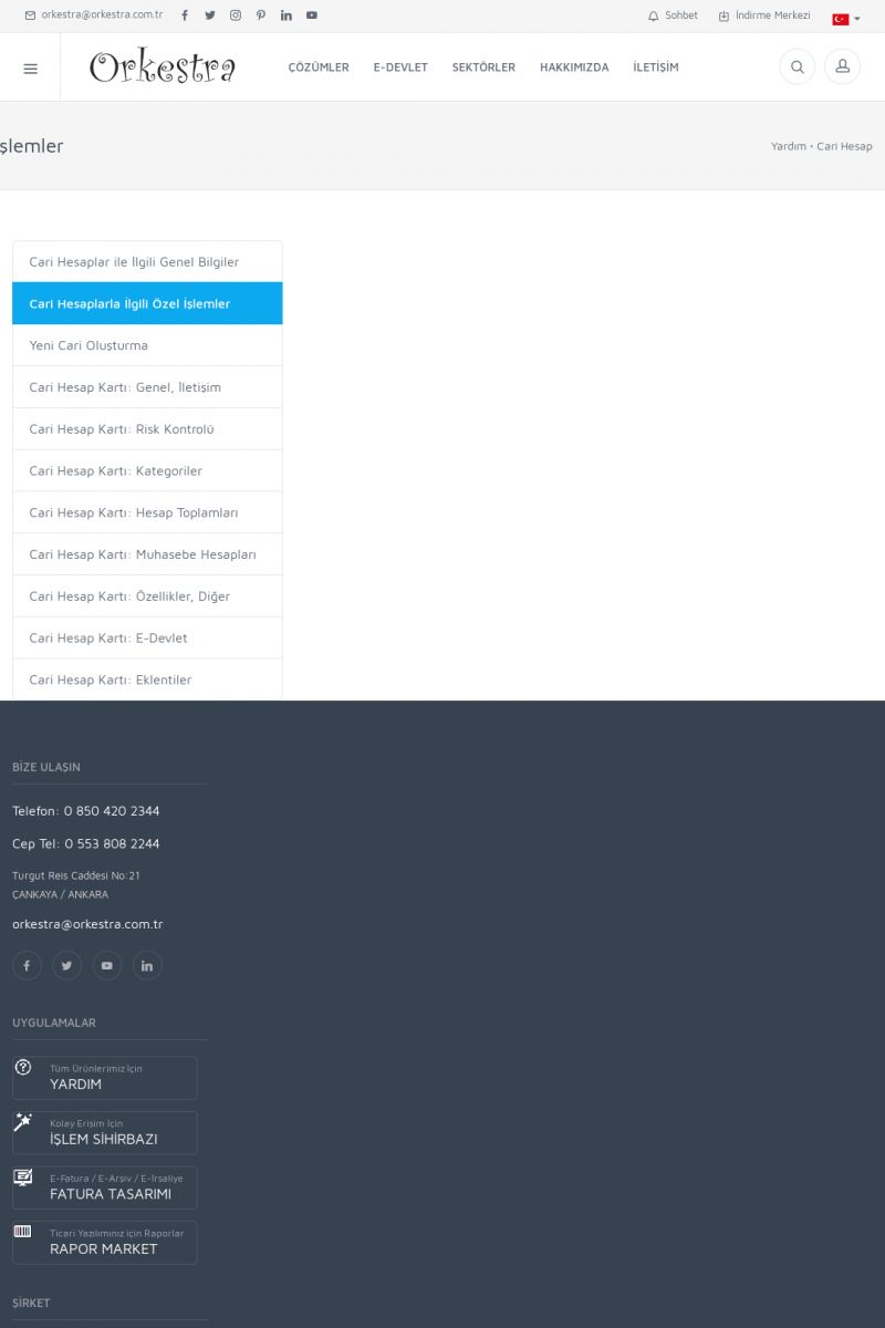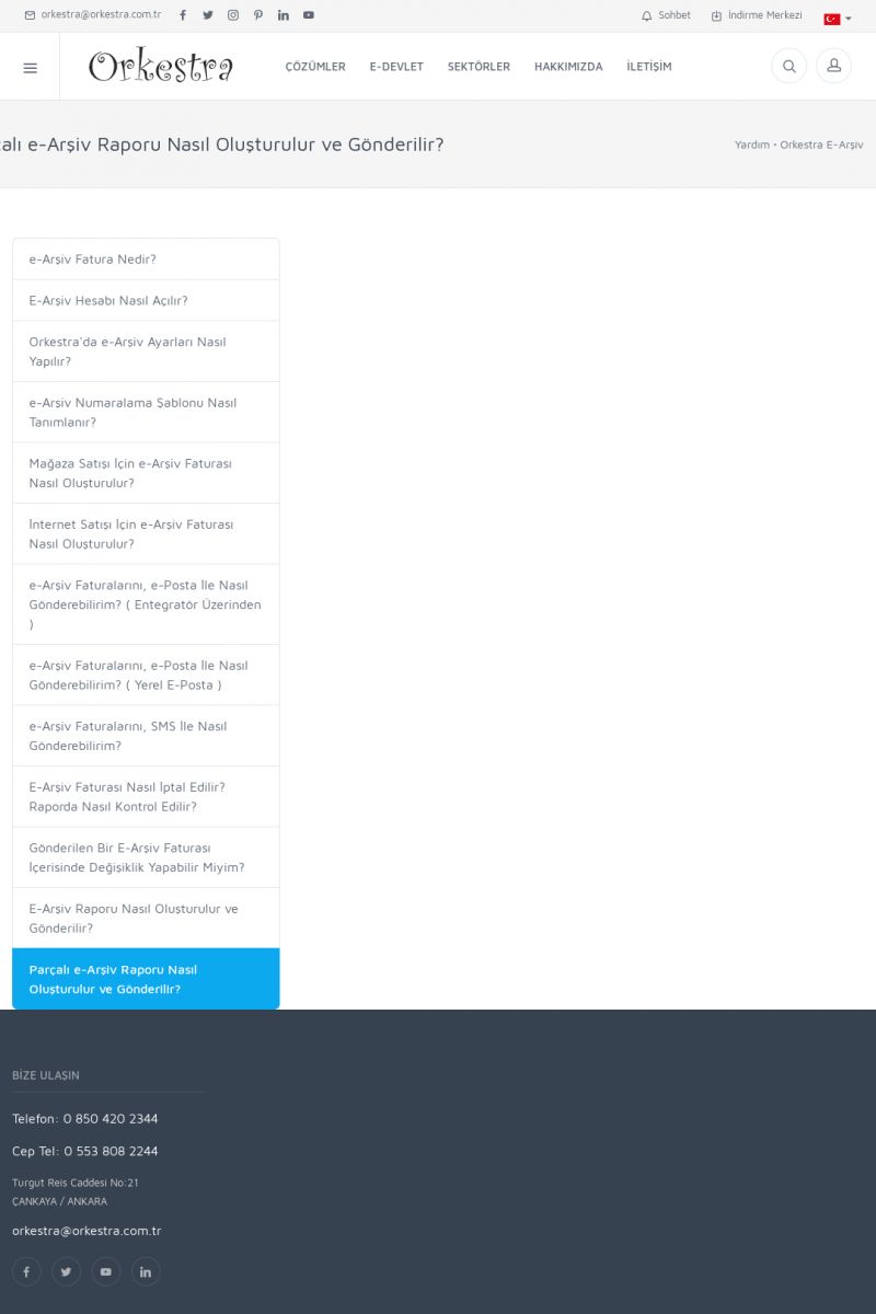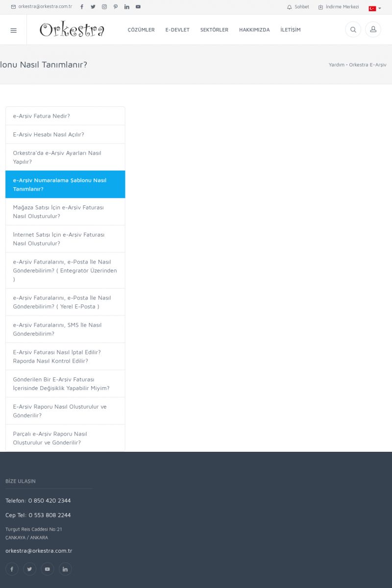 | 19 |  | Orkestra Destek Merkezi , SİZE NASIL YARDIMCI OLABİLİRİZ?Bu sayfa içerisindeki bağlantılar ile istediğiniz desteğe kolaylıkla ulaşabilirsiniz. İsterseniz sizi bşiz arayalım. İsterseniz çevirim içi yazışma ile size destek sunalım. İsterseniz şirketiniz için destek talebi oluşturun. KISA ERİŞİM KODU : XYTL / ARA19 | |