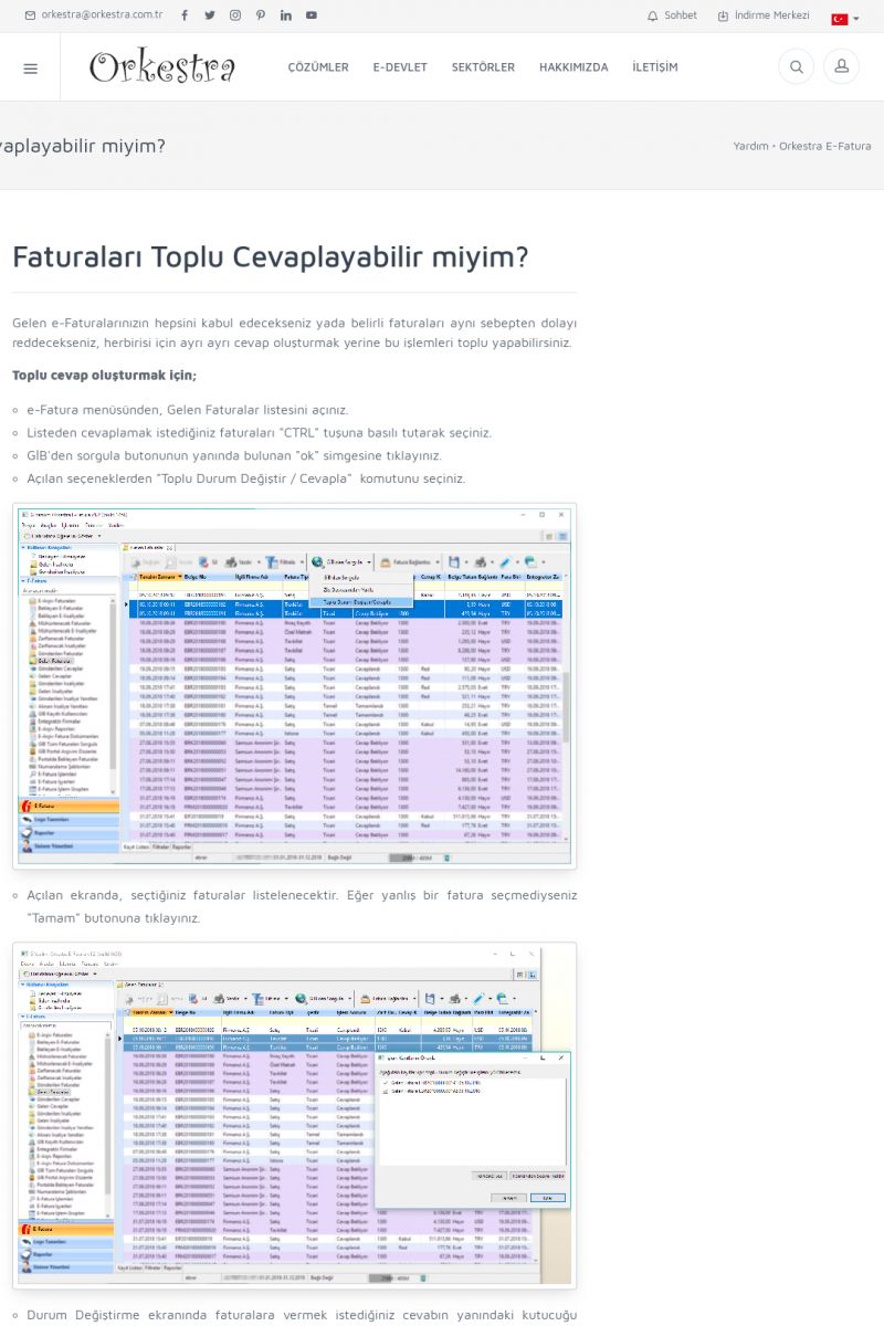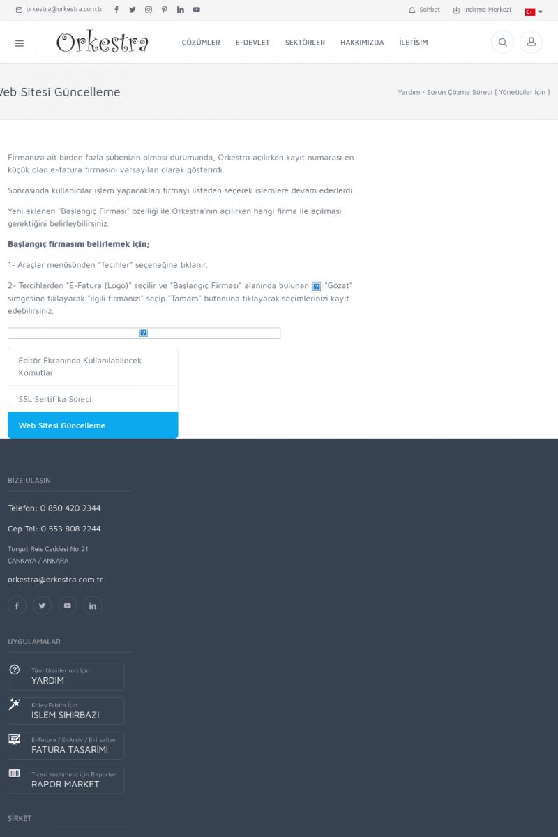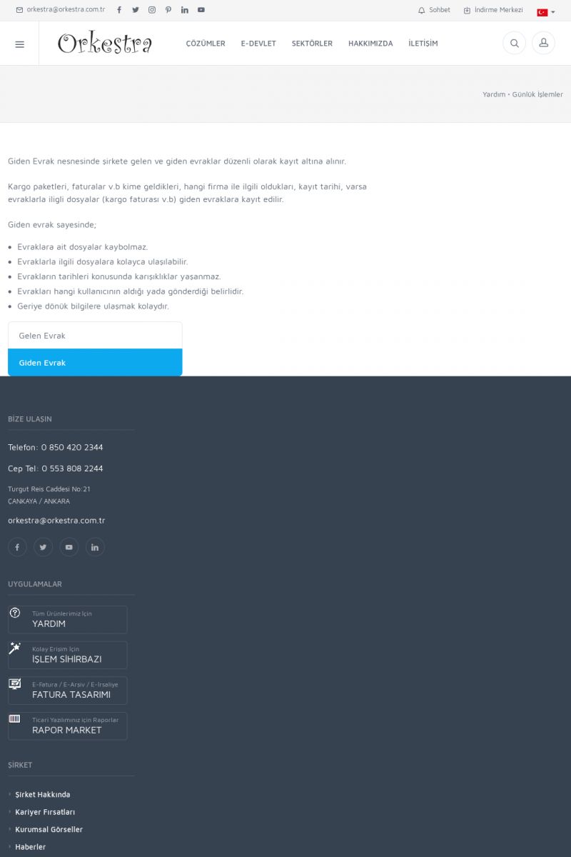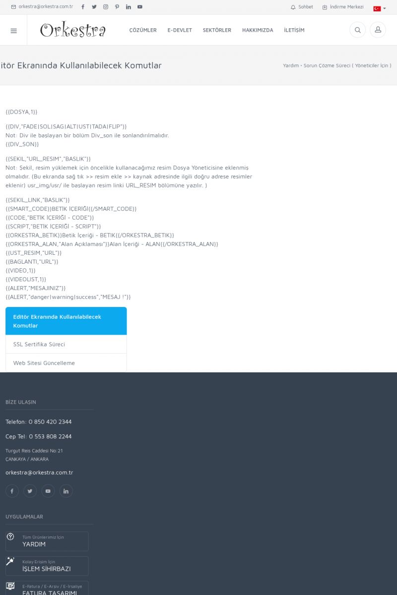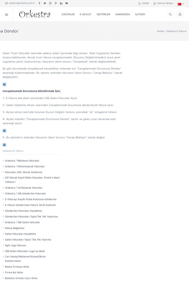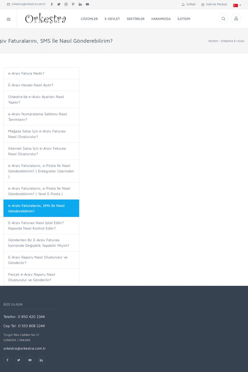| 19 |  | Orkestra Destek Merkezi , SİZE NASIL YARDIMCI OLABİLİRİZ?Bu sayfa içerisindeki bağlantılar ile istediğiniz desteğe kolaylıkla ulaşabilirsiniz. İsterseniz sizi bşiz arayalım. İsterseniz çevirim içi yazışma ile size destek sunalım. İsterseniz şirketiniz için destek talebi oluşturun. KISA ERİŞİM KODU : XYTL / ARA19 | |