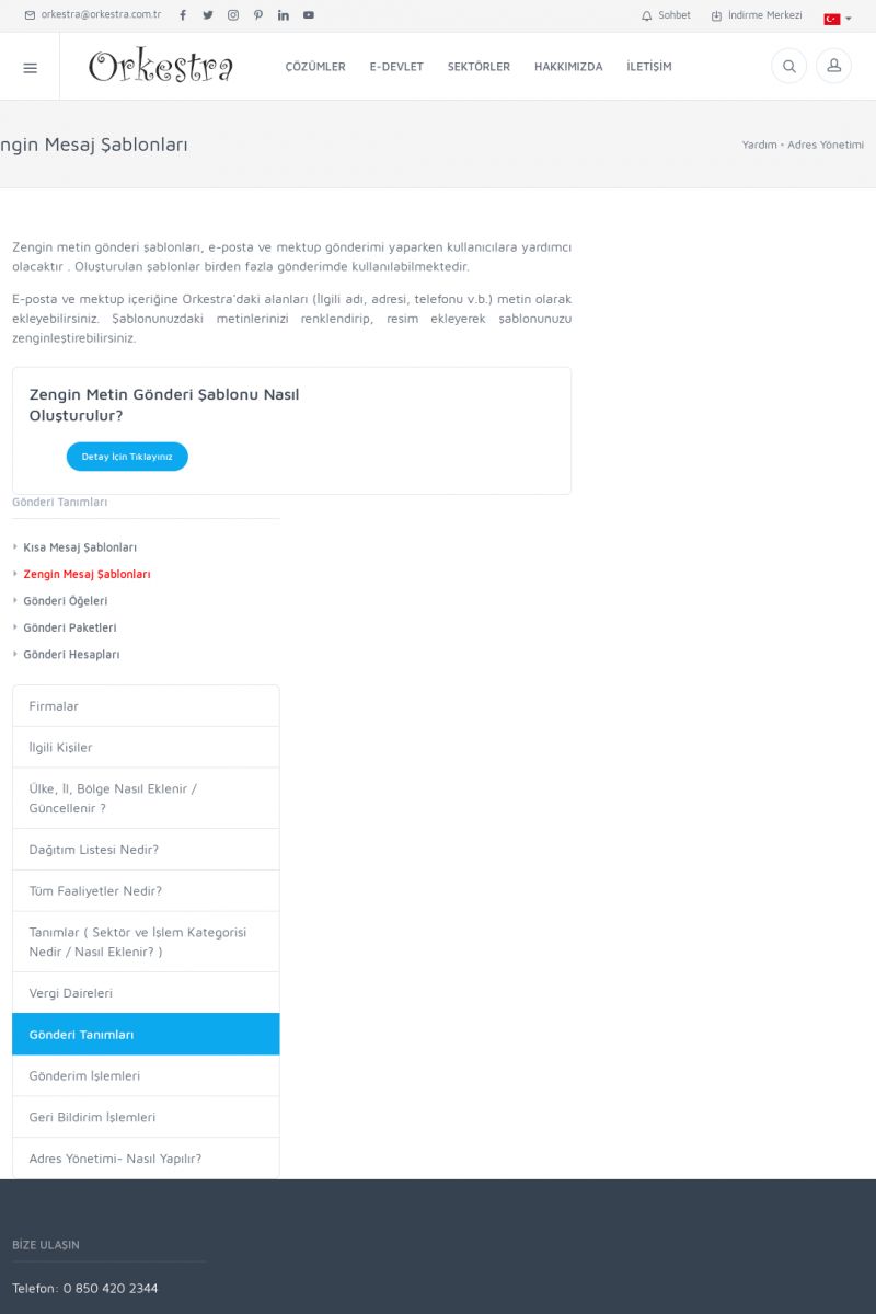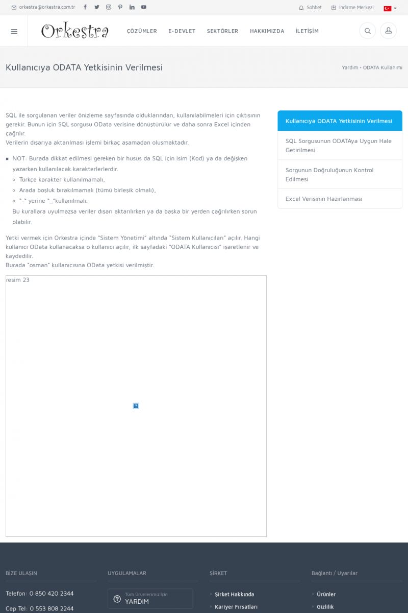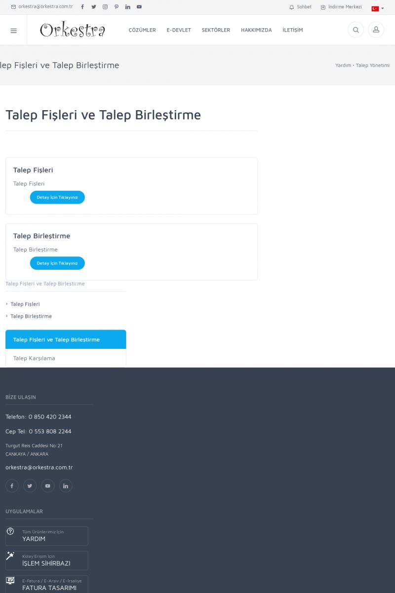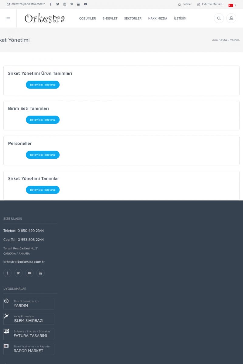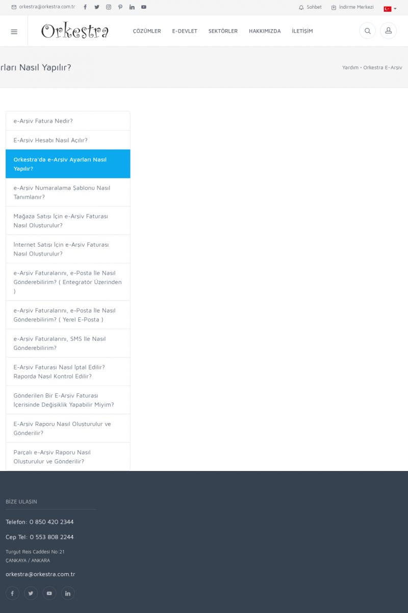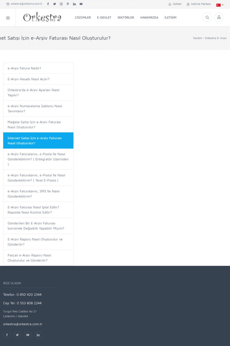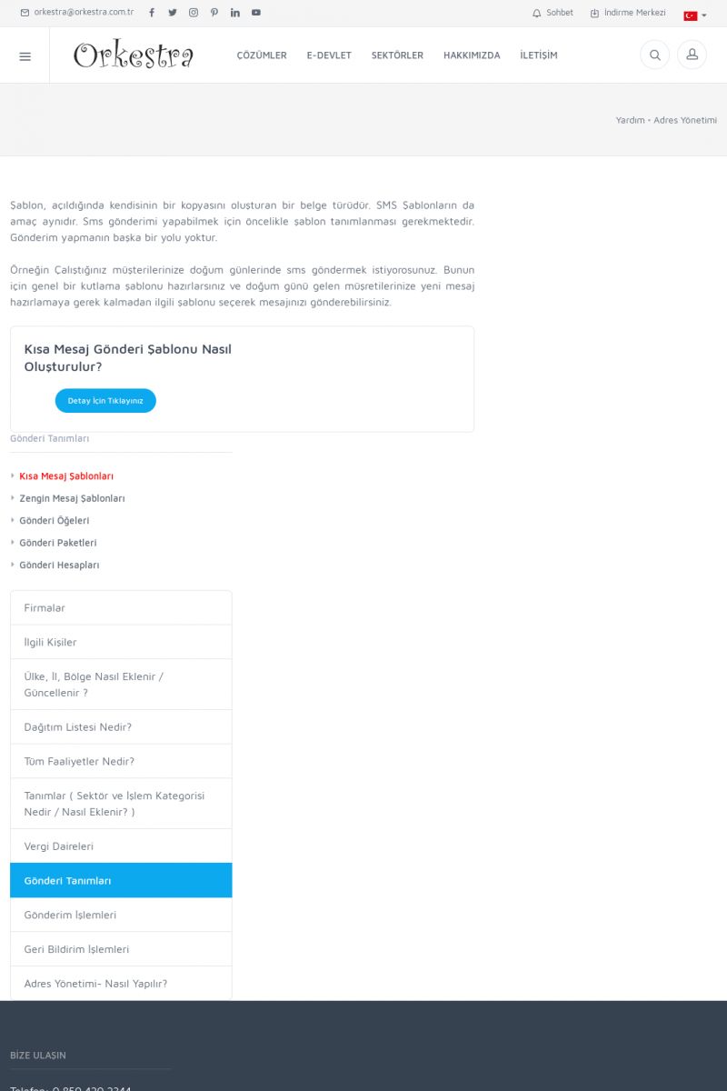 | 19 |  | Orkestra Destek Merkezi , SİZE NASIL YARDIMCI OLABİLİRİZ?Bu sayfa içerisindeki bağlantılar ile istediğiniz desteğe kolaylıkla ulaşabilirsiniz. İsterseniz sizi bşiz arayalım. İsterseniz çevirim içi yazışma ile size destek sunalım. İsterseniz şirketiniz için destek talebi oluşturun. KISA ERİŞİM KODU : XYTL / ARA19 | |
