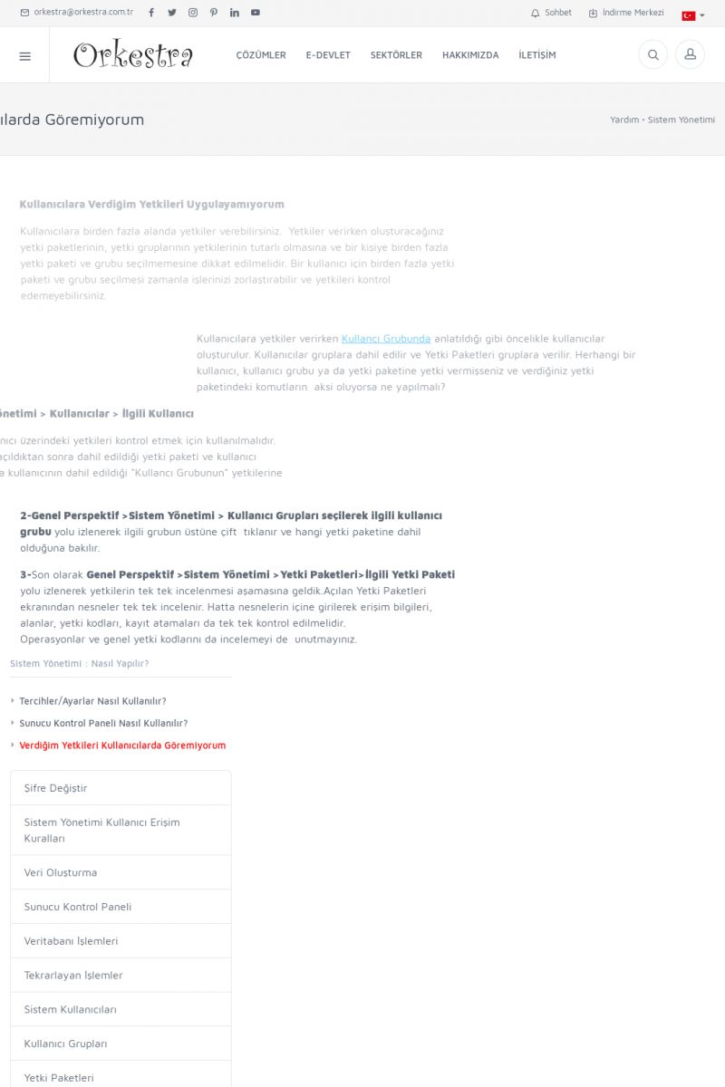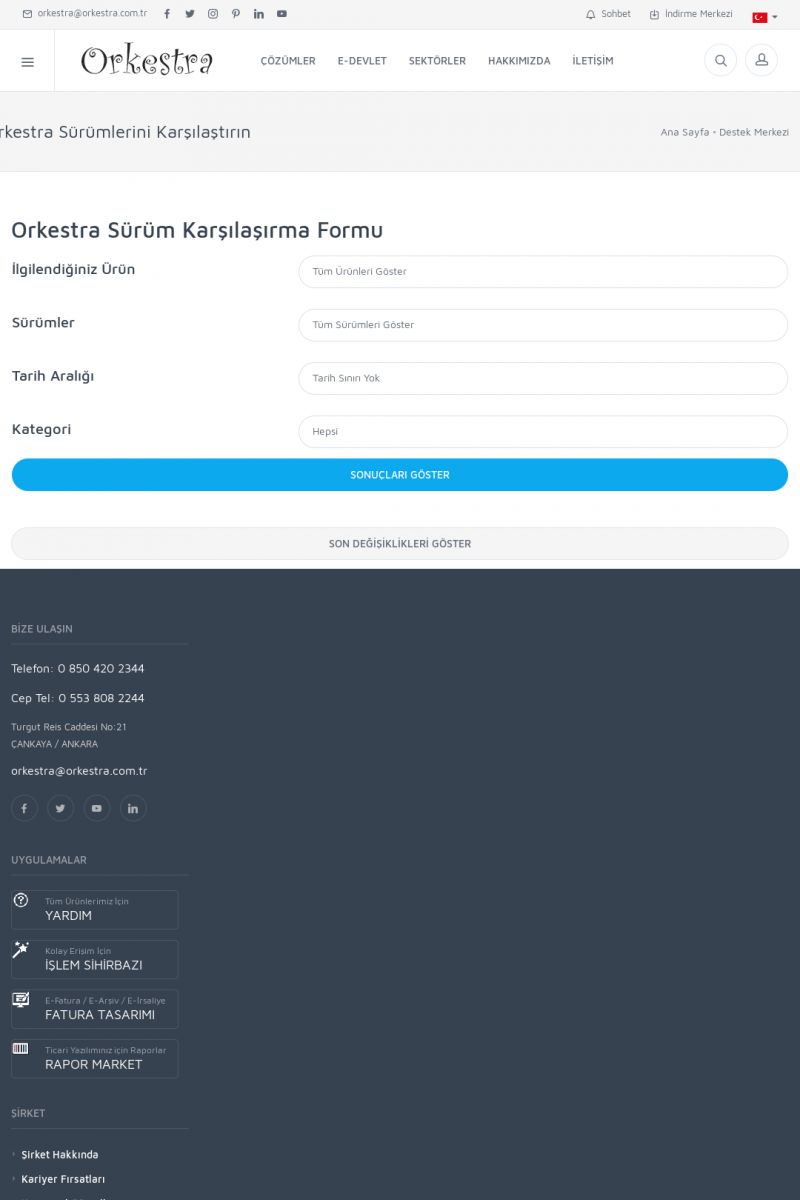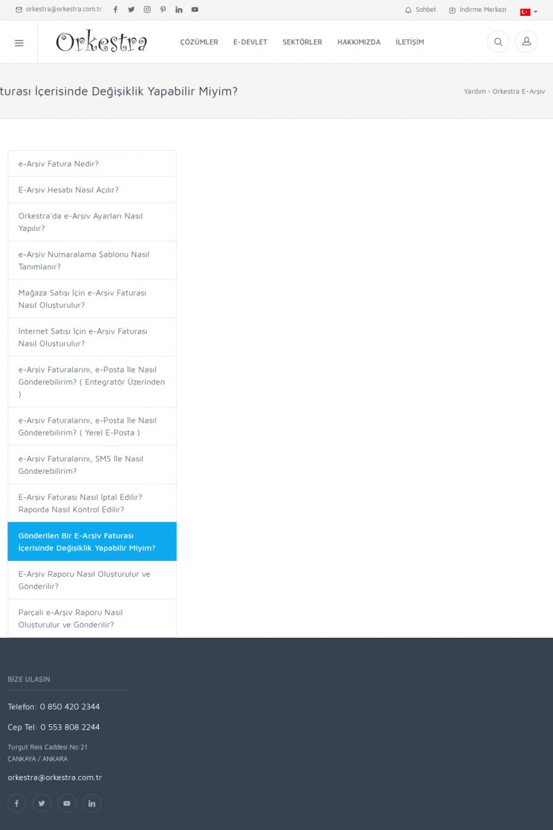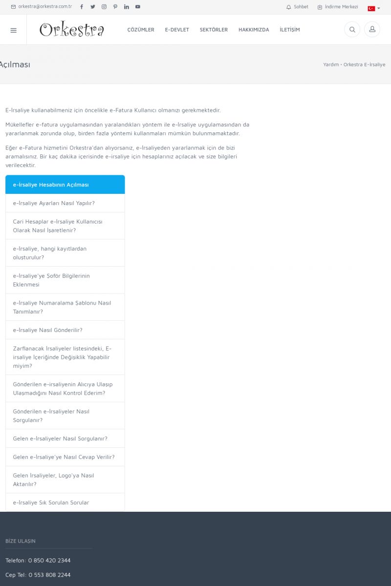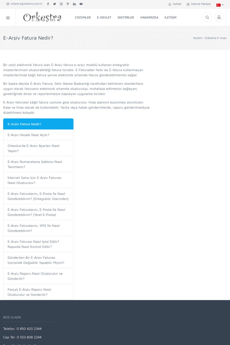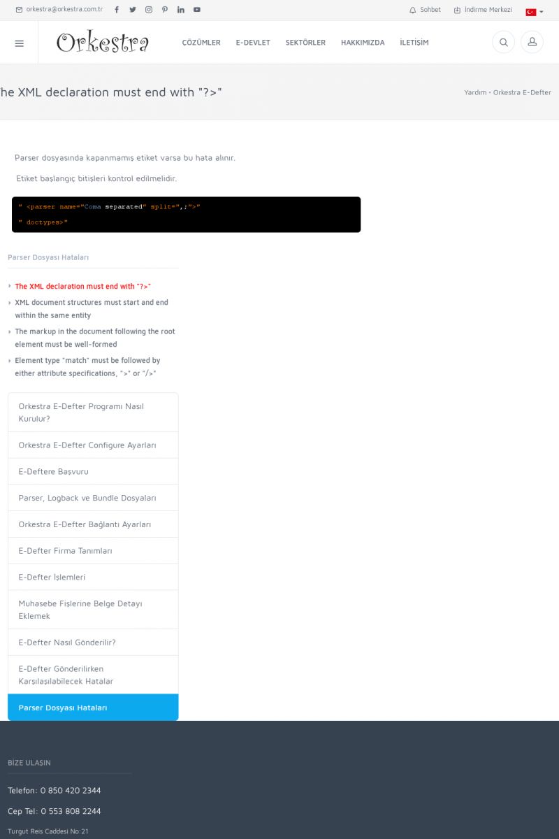 | 19 |  | Orkestra Destek Merkezi , SİZE NASIL YARDIMCI OLABİLİRİZ?Bu sayfa içerisindeki bağlantılar ile istediğiniz desteğe kolaylıkla ulaşabilirsiniz. İsterseniz sizi bşiz arayalım. İsterseniz çevirim içi yazışma ile size destek sunalım. İsterseniz şirketiniz için destek talebi oluşturun. KISA ERİŞİM KODU : XYTL / ARA19 | |