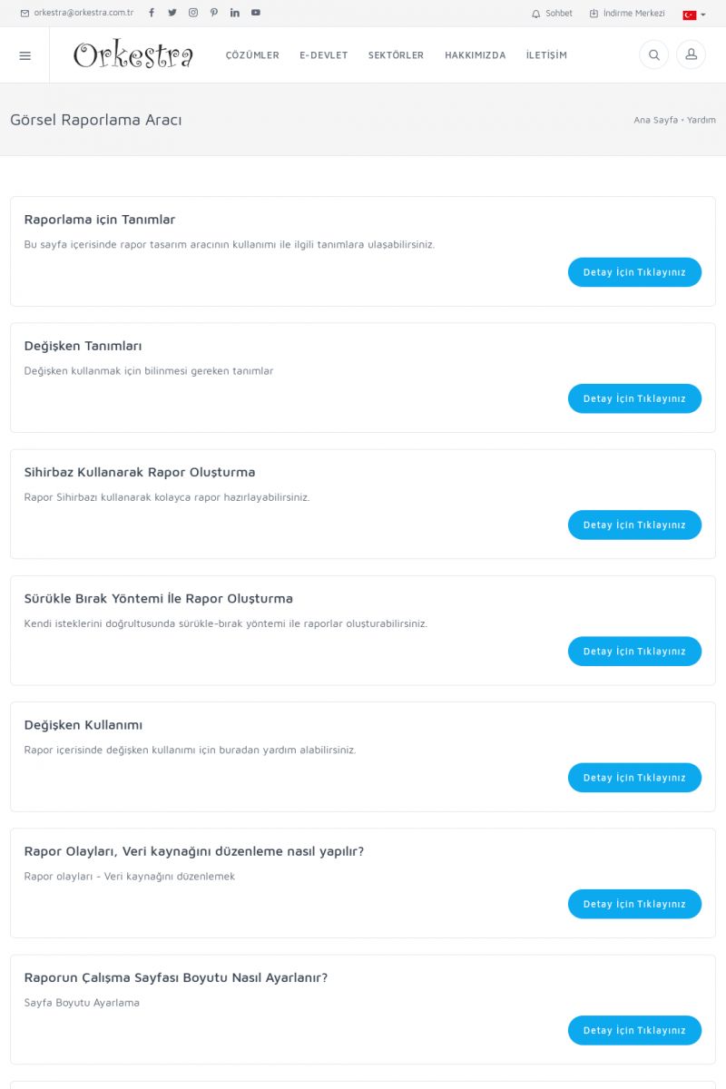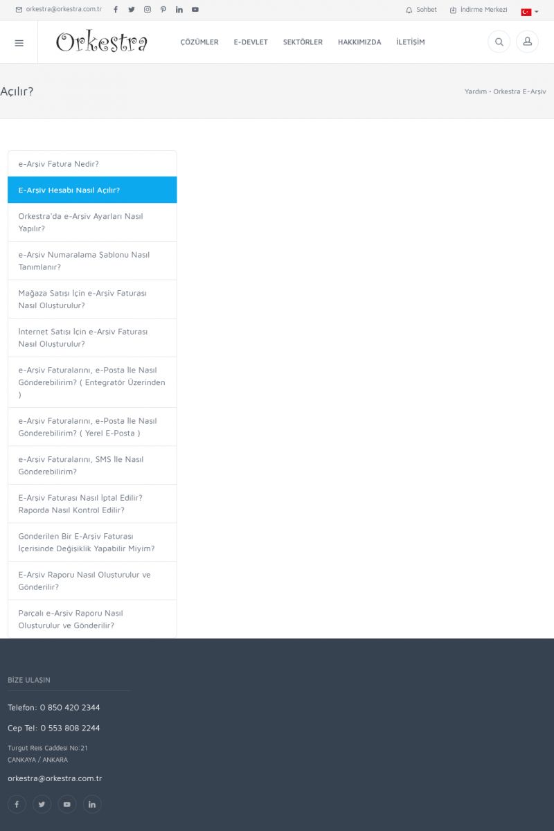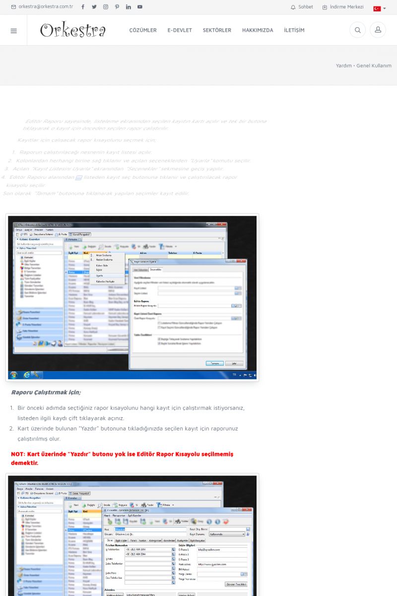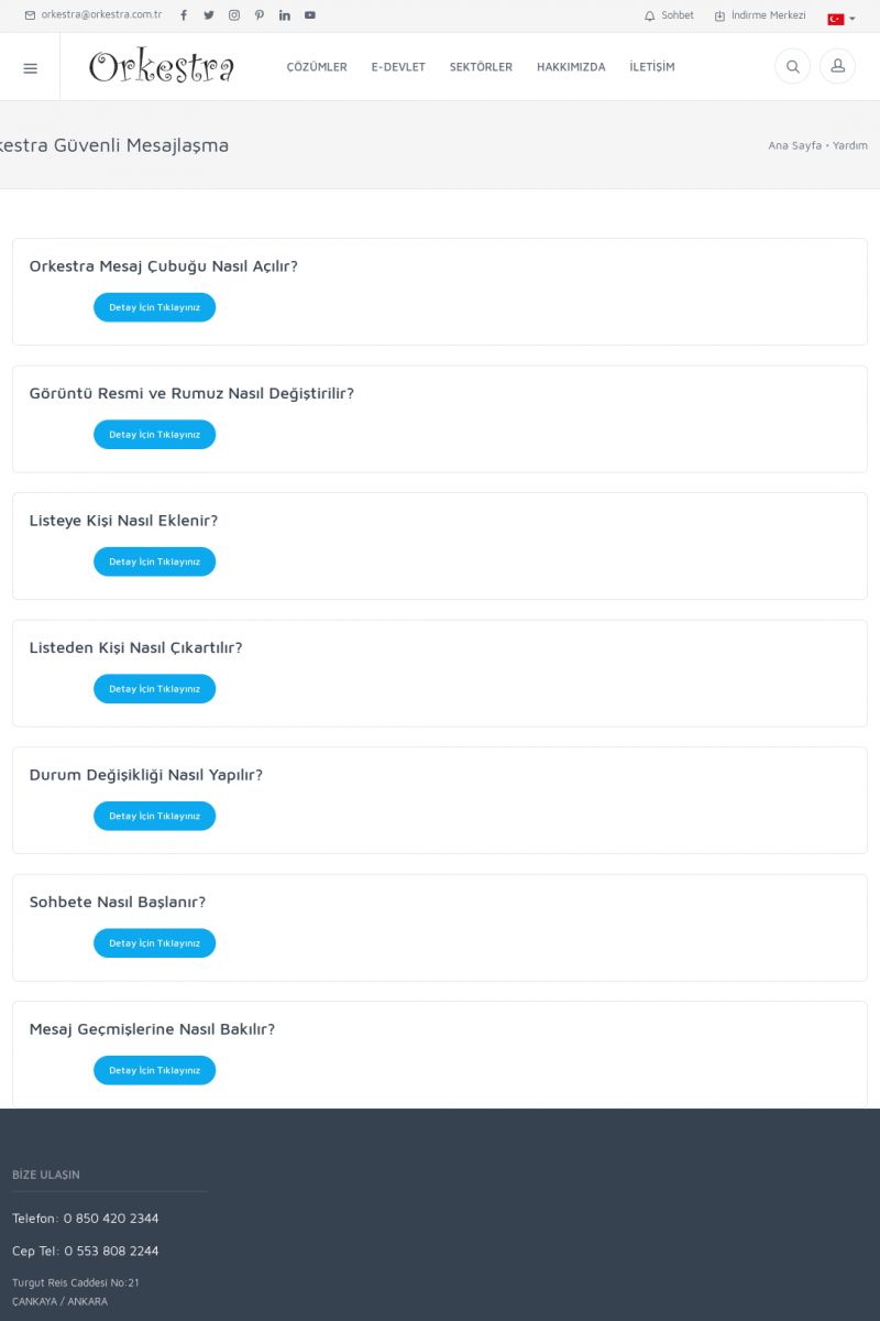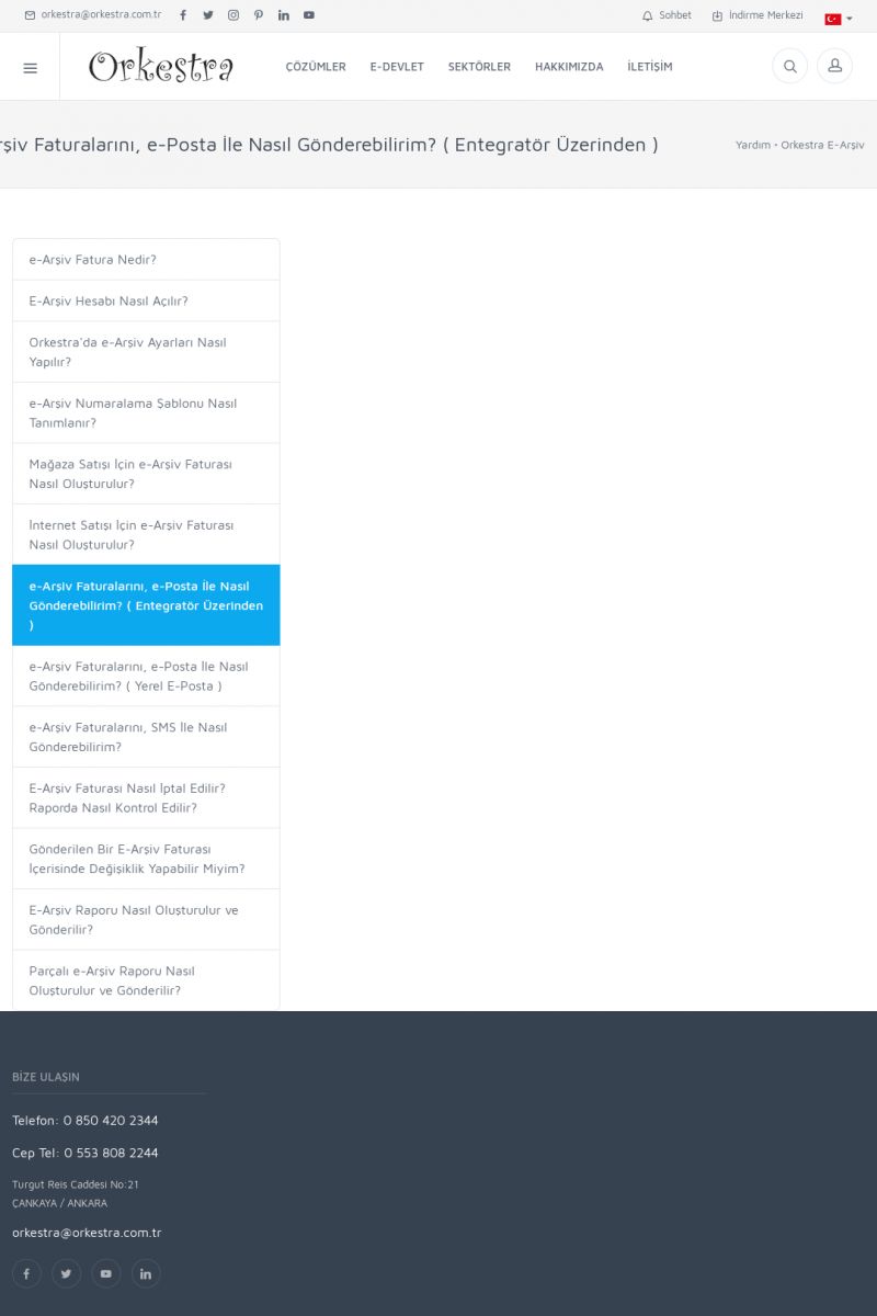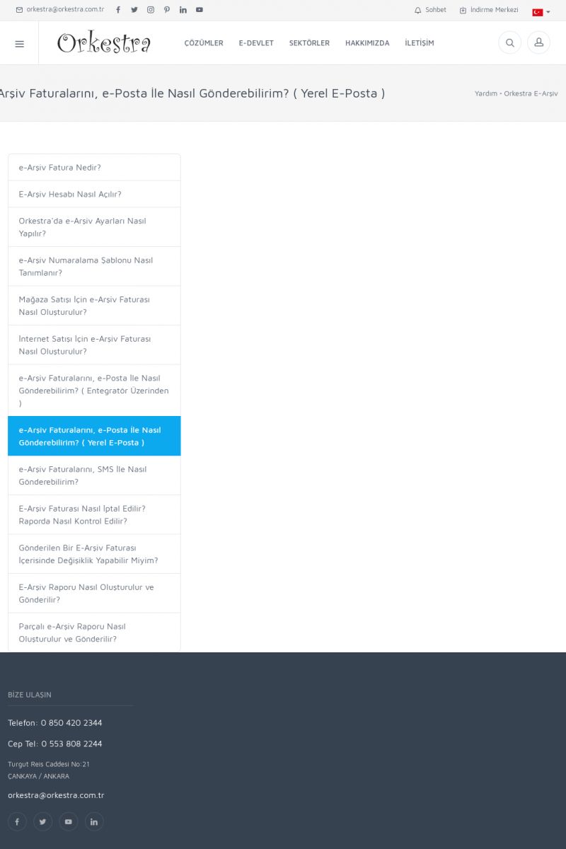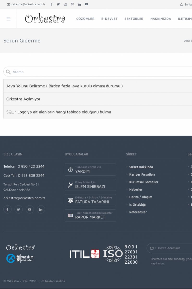 | 19 |  | Orkestra Destek Merkezi , SİZE NASIL YARDIMCI OLABİLİRİZ?Bu sayfa içerisindeki bağlantılar ile istediğiniz desteğe kolaylıkla ulaşabilirsiniz. İsterseniz sizi bşiz arayalım. İsterseniz çevirim içi yazışma ile size destek sunalım. İsterseniz şirketiniz için destek talebi oluşturun. KISA ERİŞİM KODU : XYTL / ARA19 | |