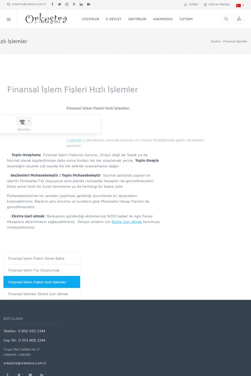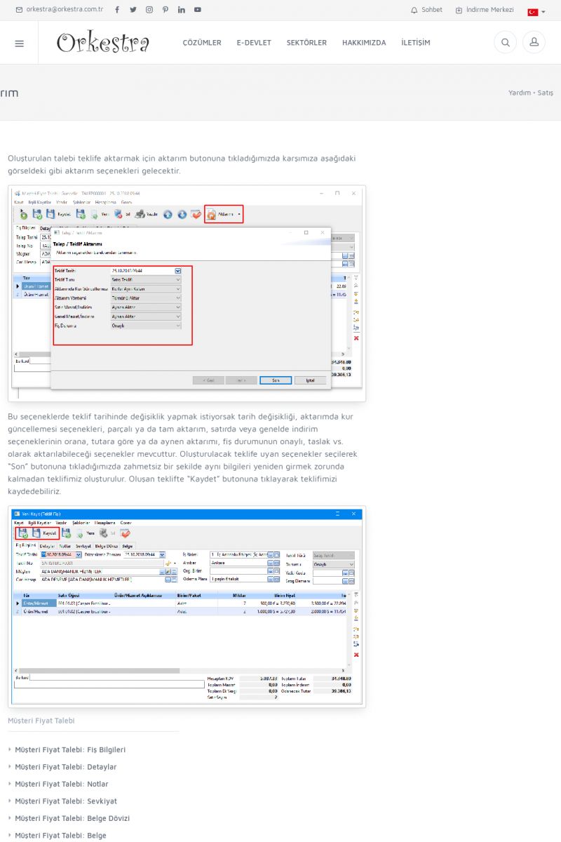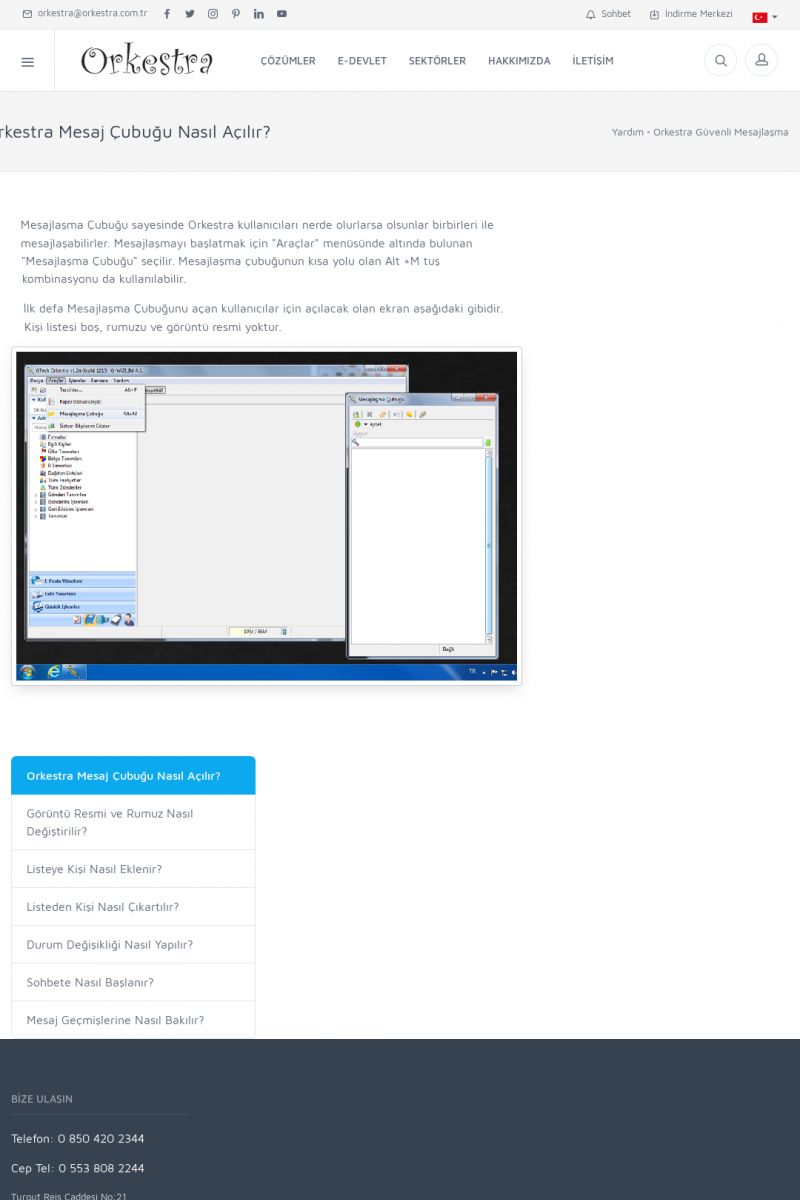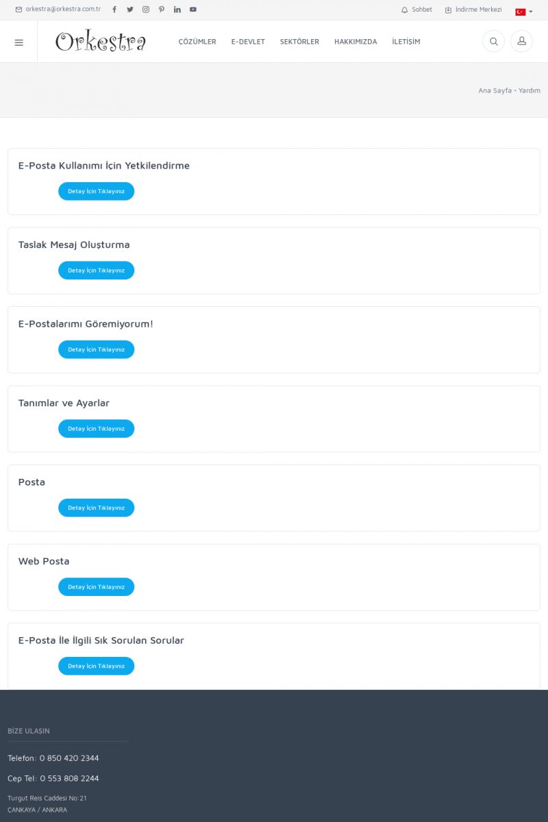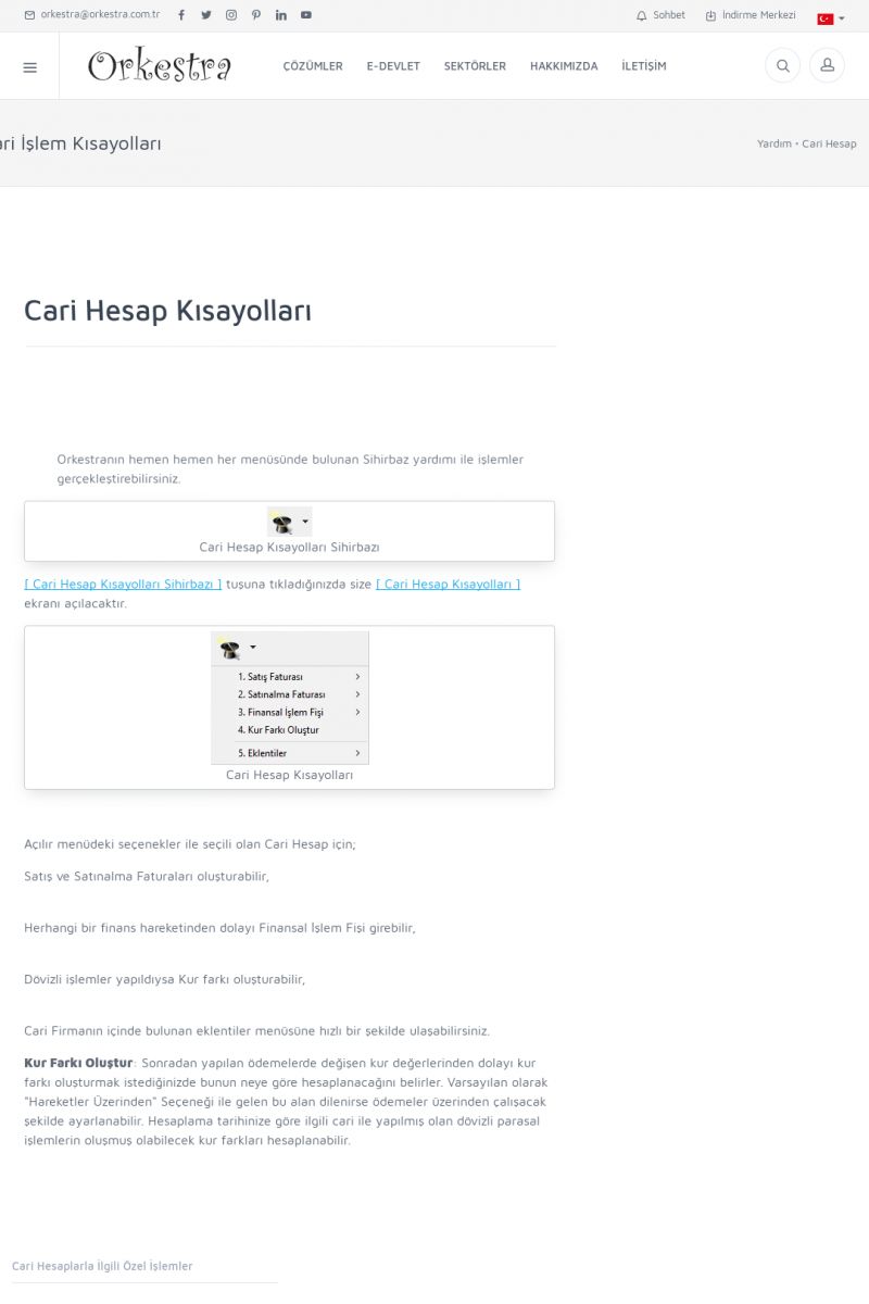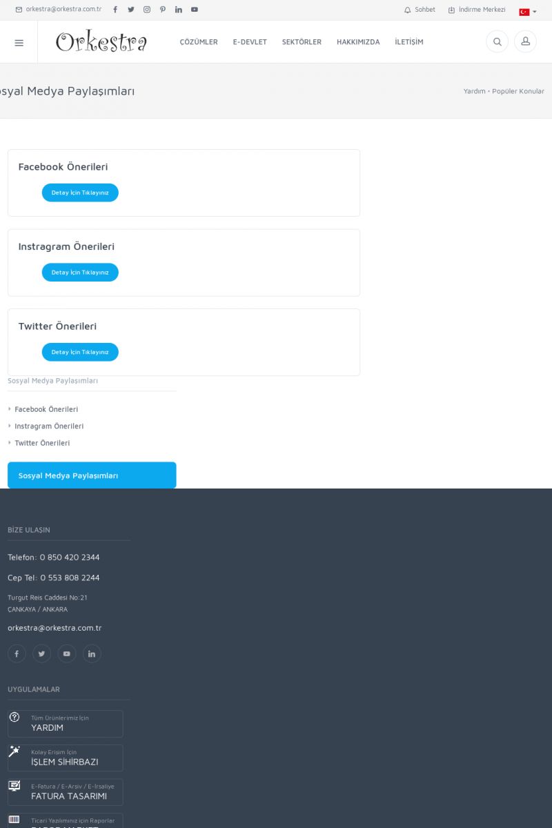 | 19 |  | Orkestra Destek Merkezi , SİZE NASIL YARDIMCI OLABİLİRİZ?Bu sayfa içerisindeki bağlantılar ile istediğiniz desteğe kolaylıkla ulaşabilirsiniz. İsterseniz sizi bşiz arayalım. İsterseniz çevirim içi yazışma ile size destek sunalım. İsterseniz şirketiniz için destek talebi oluşturun. KISA ERİŞİM KODU : XYTL / ARA19 | |