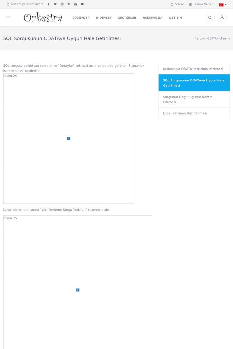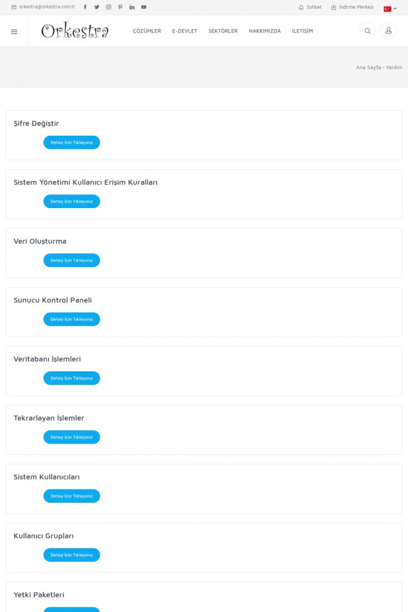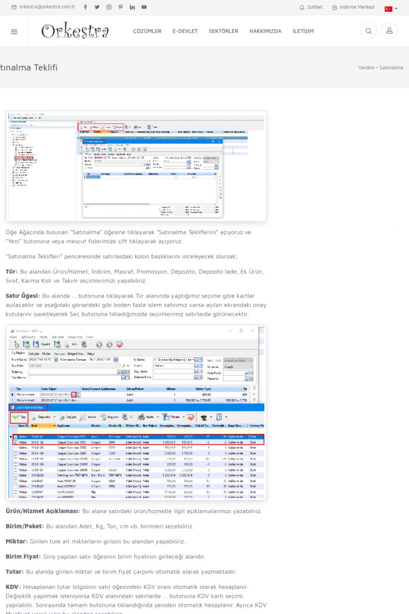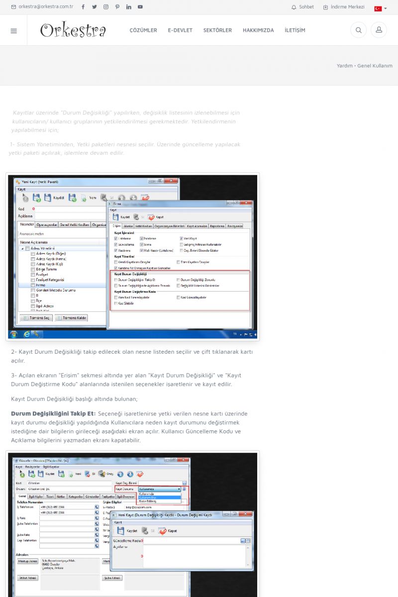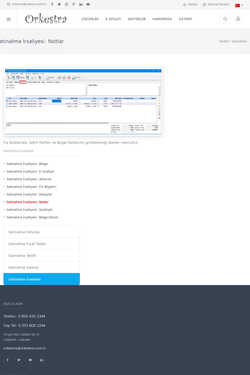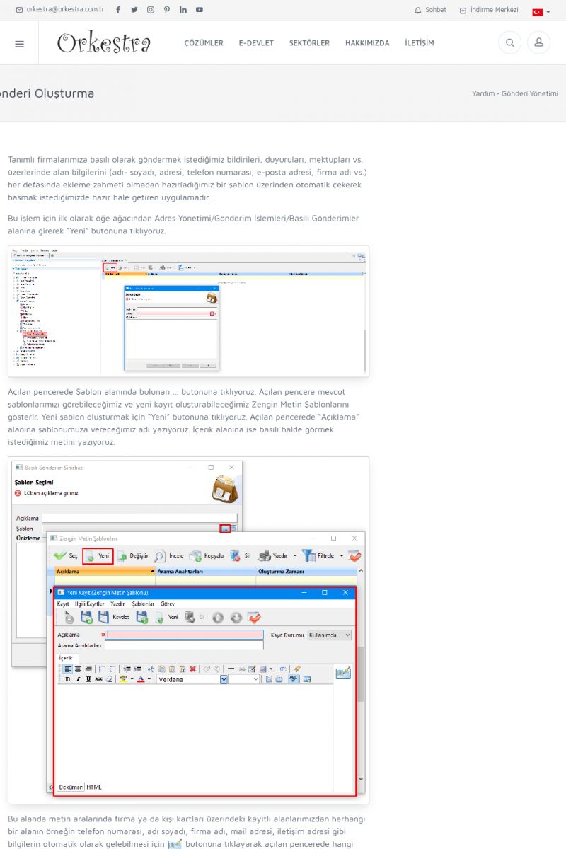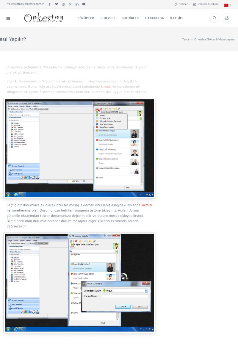 | 19 |  | Orkestra Destek Merkezi , SİZE NASIL YARDIMCI OLABİLİRİZ?Bu sayfa içerisindeki bağlantılar ile istediğiniz desteğe kolaylıkla ulaşabilirsiniz. İsterseniz sizi bşiz arayalım. İsterseniz çevirim içi yazışma ile size destek sunalım. İsterseniz şirketiniz için destek talebi oluşturun. KISA ERİŞİM KODU : XYTL / ARA19 | |