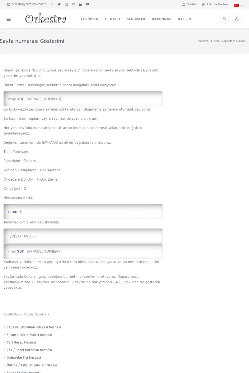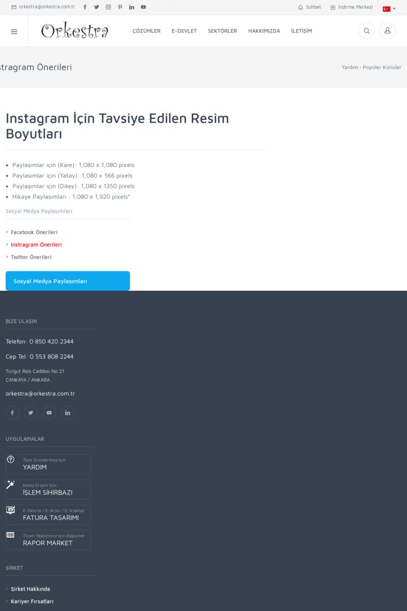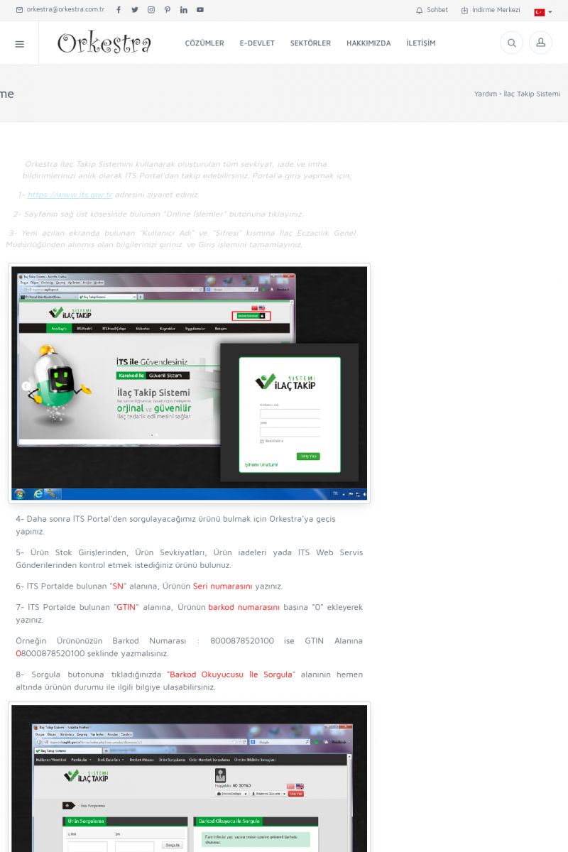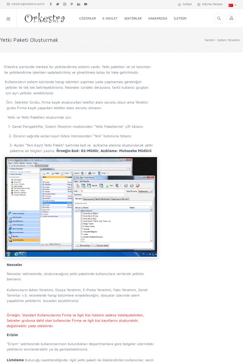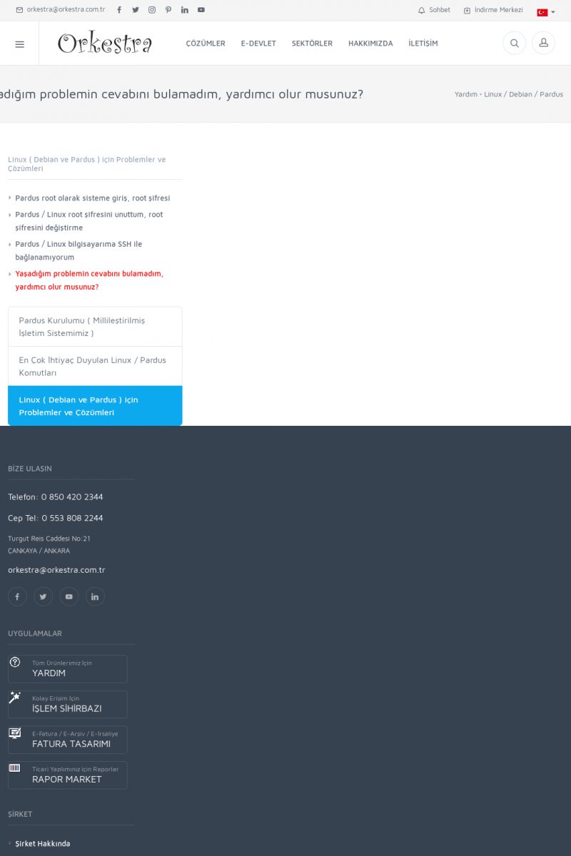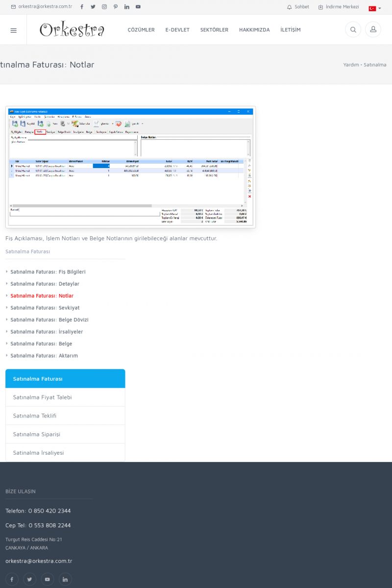 | 19 |  | Orkestra Destek Merkezi , SİZE NASIL YARDIMCI OLABİLİRİZ?Bu sayfa içerisindeki bağlantılar ile istediğiniz desteğe kolaylıkla ulaşabilirsiniz. İsterseniz sizi bşiz arayalım. İsterseniz çevirim içi yazışma ile size destek sunalım. İsterseniz şirketiniz için destek talebi oluşturun. KISA ERİŞİM KODU : XYTL / ARA19 | |