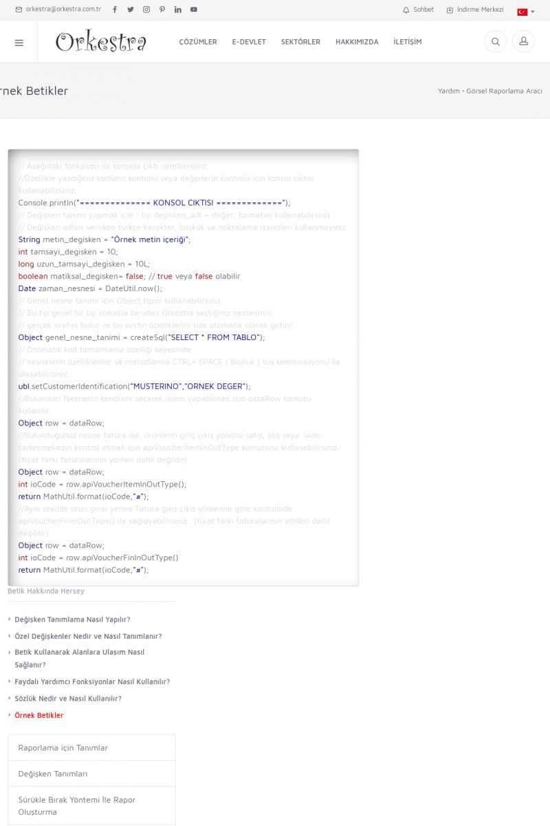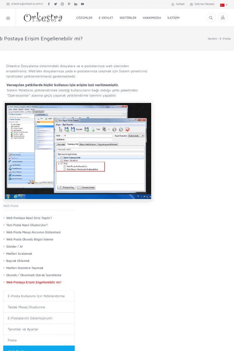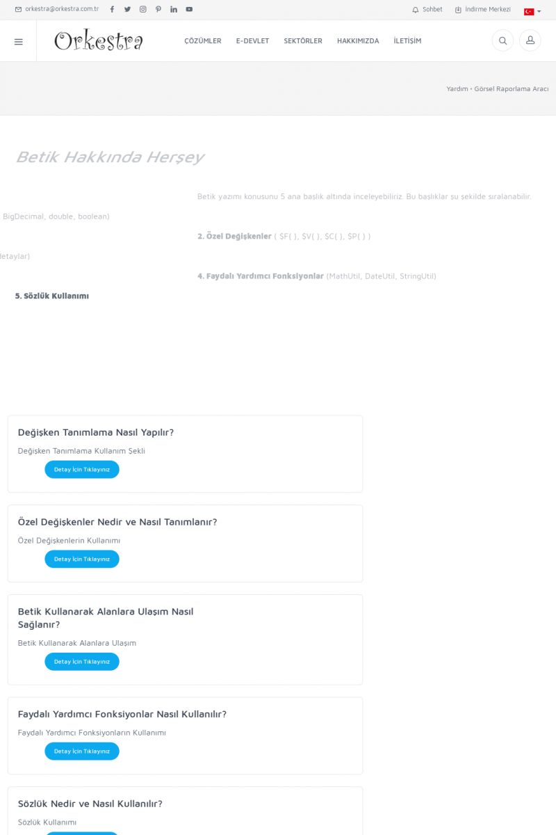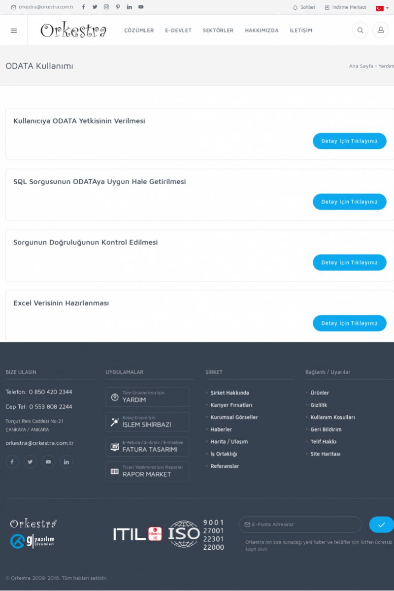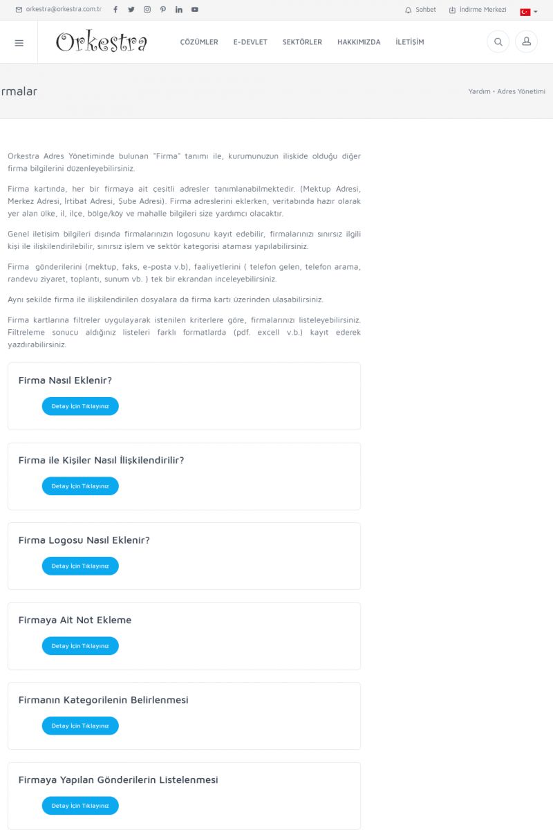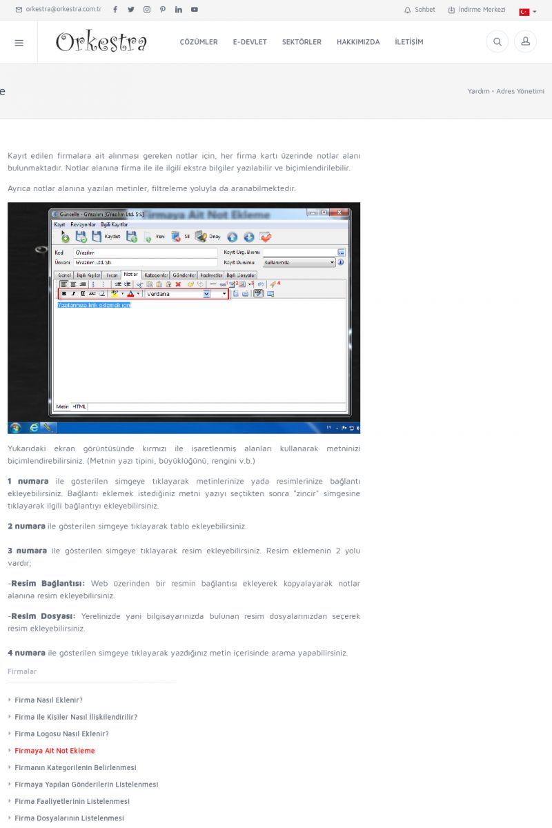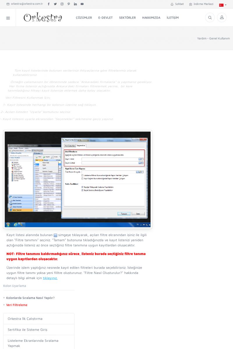 | 19 |  | Orkestra Destek Merkezi , SİZE NASIL YARDIMCI OLABİLİRİZ?Bu sayfa içerisindeki bağlantılar ile istediğiniz desteğe kolaylıkla ulaşabilirsiniz. İsterseniz sizi bşiz arayalım. İsterseniz çevirim içi yazışma ile size destek sunalım. İsterseniz şirketiniz için destek talebi oluşturun. KISA ERİŞİM KODU : XYTL / ARA19 | |