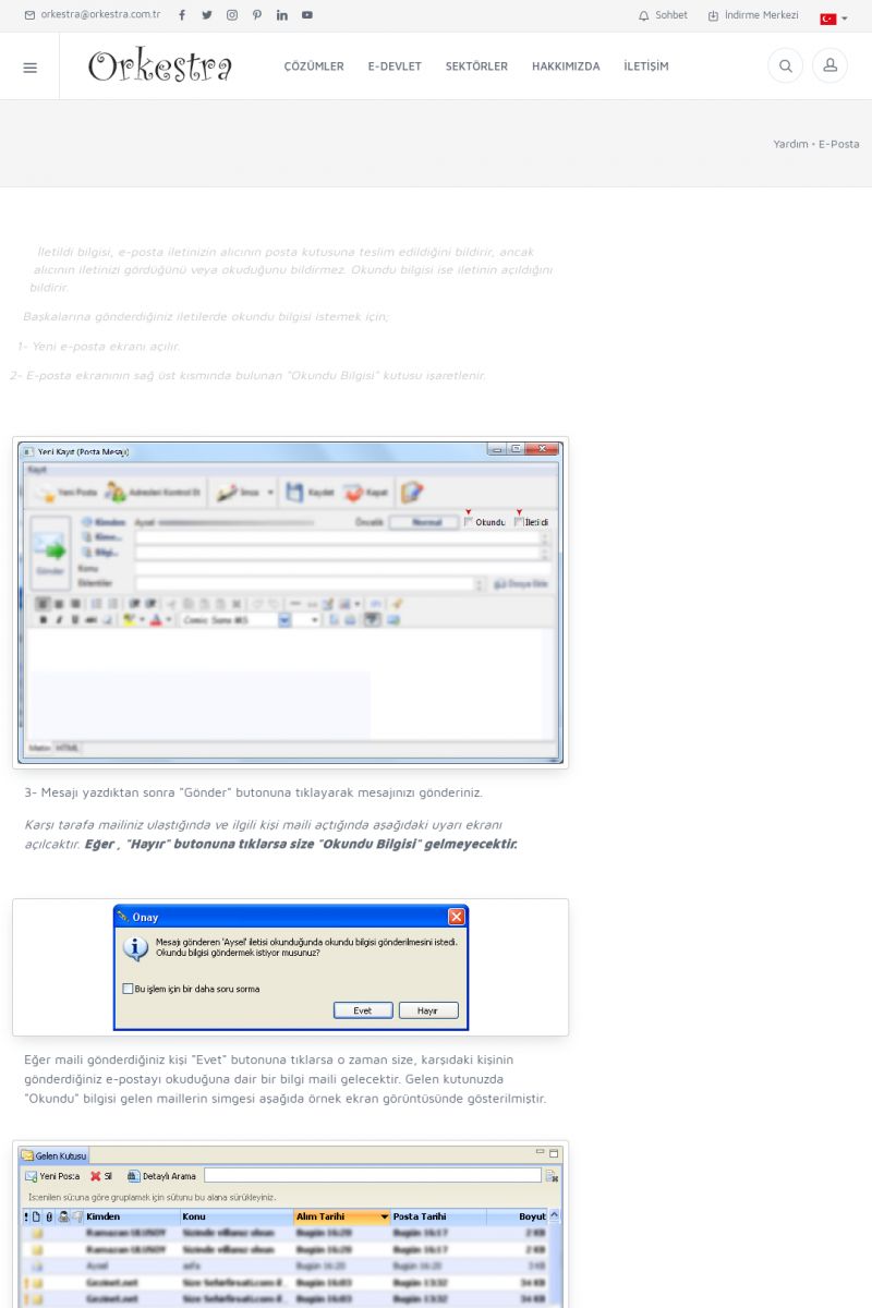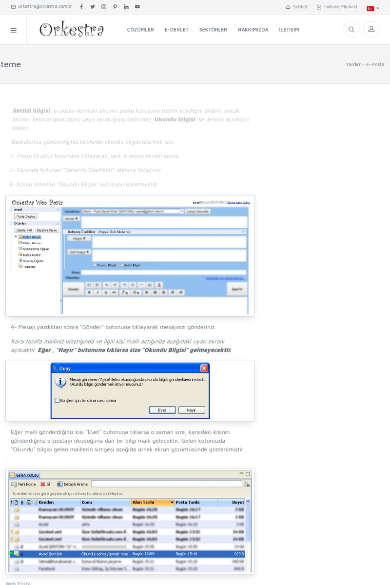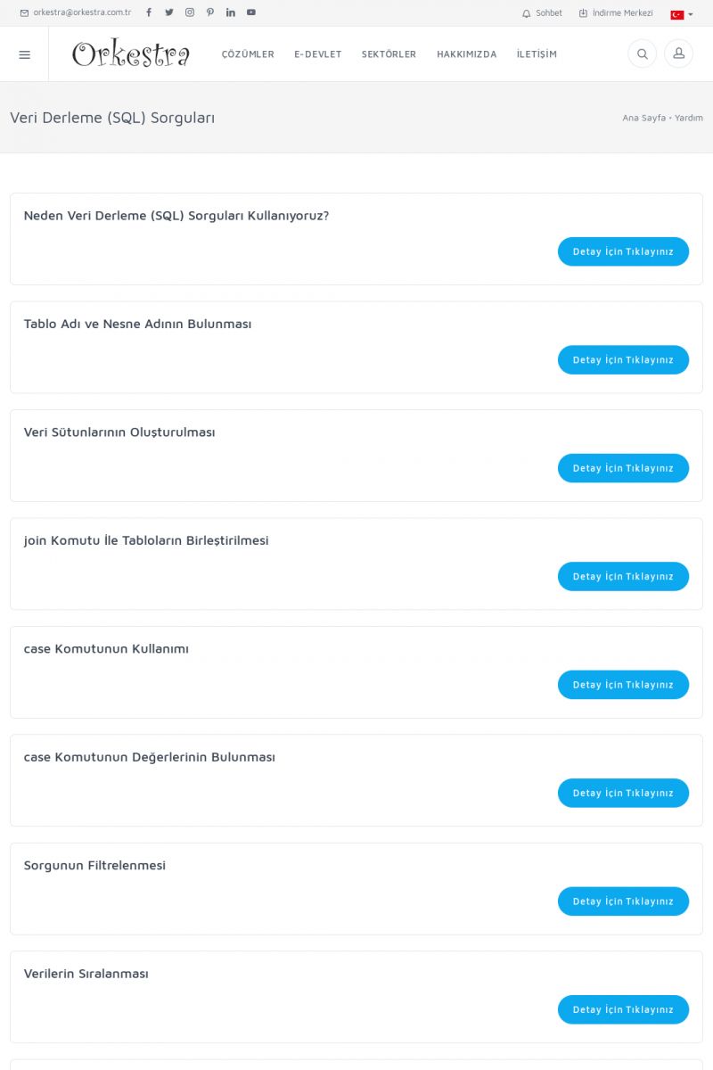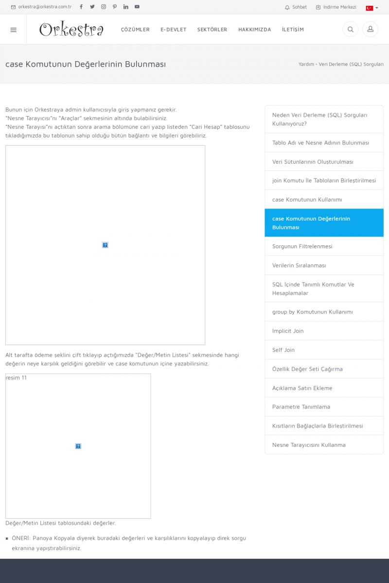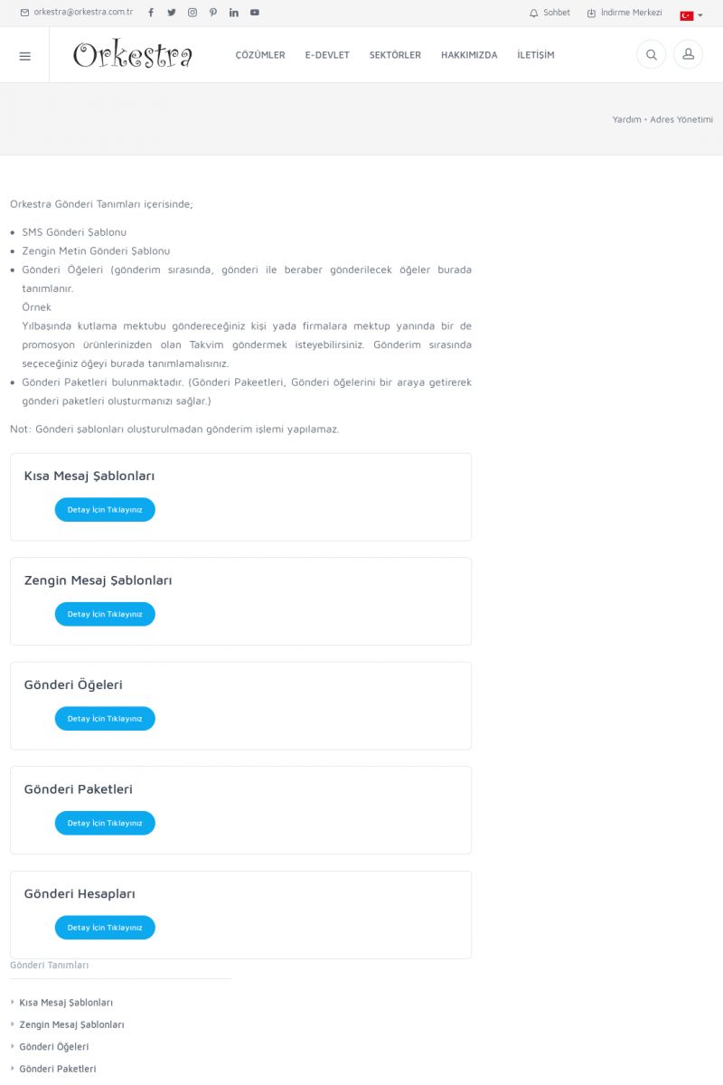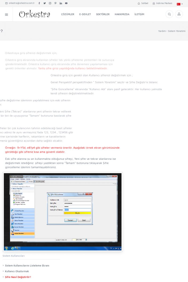 | 19 |  | Orkestra Destek Merkezi , SİZE NASIL YARDIMCI OLABİLİRİZ?Bu sayfa içerisindeki bağlantılar ile istediğiniz desteğe kolaylıkla ulaşabilirsiniz. İsterseniz sizi bşiz arayalım. İsterseniz çevirim içi yazışma ile size destek sunalım. İsterseniz şirketiniz için destek talebi oluşturun. KISA ERİŞİM KODU : XYTL / ARA19 | |