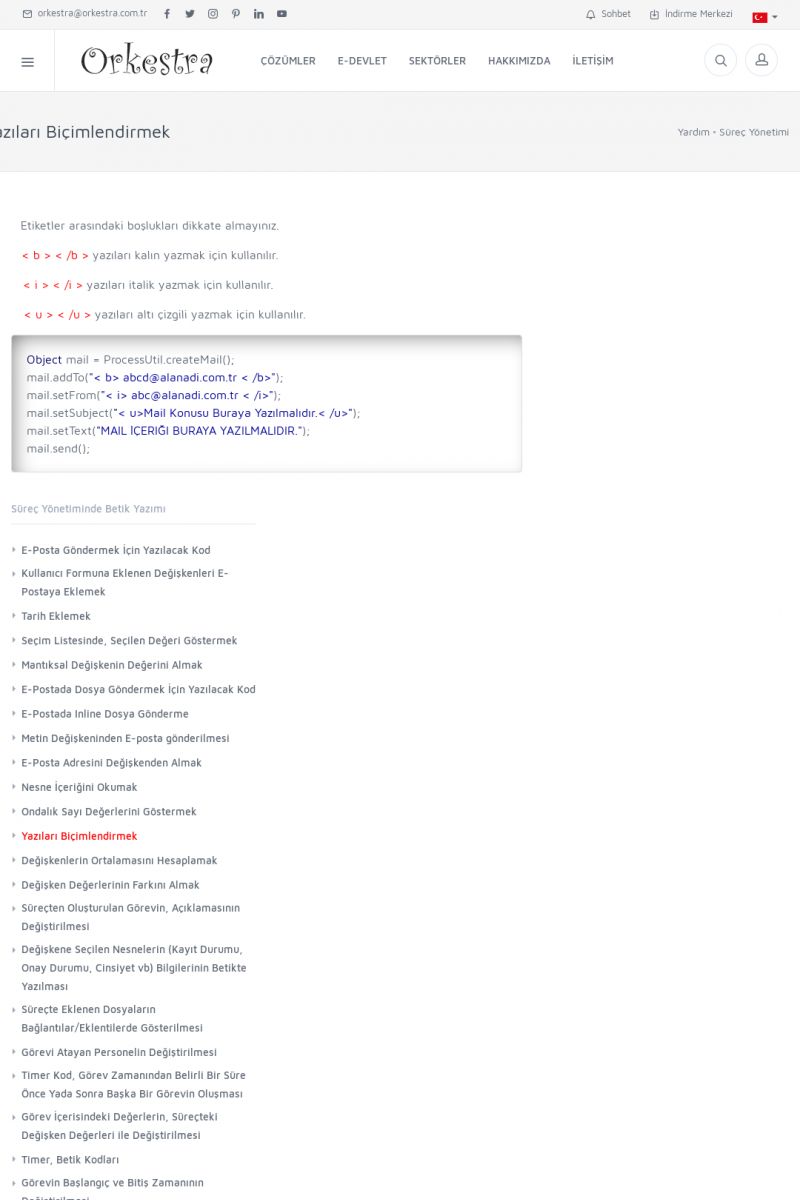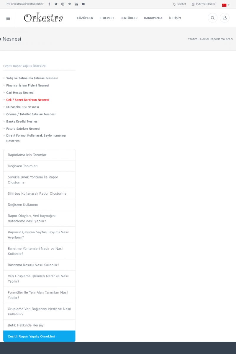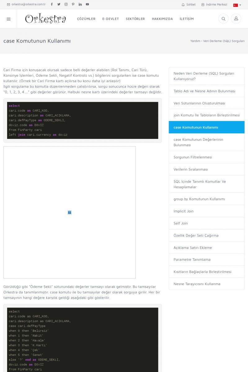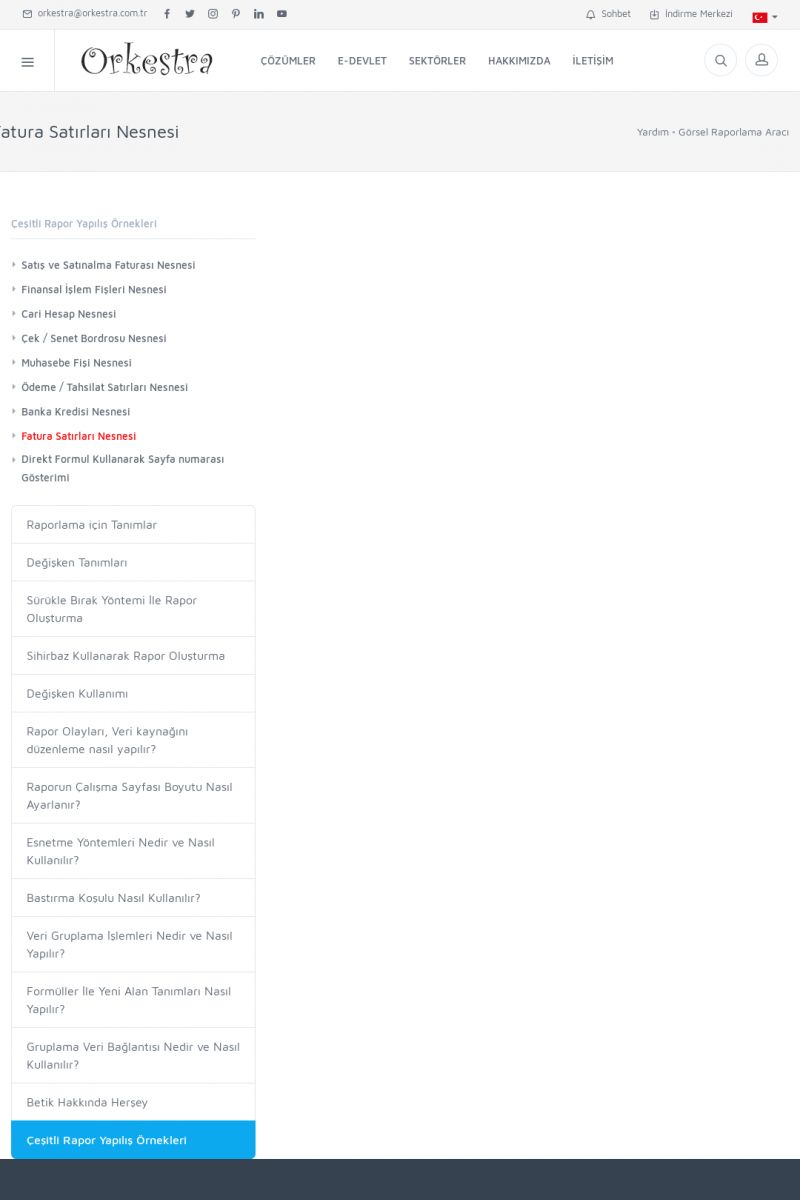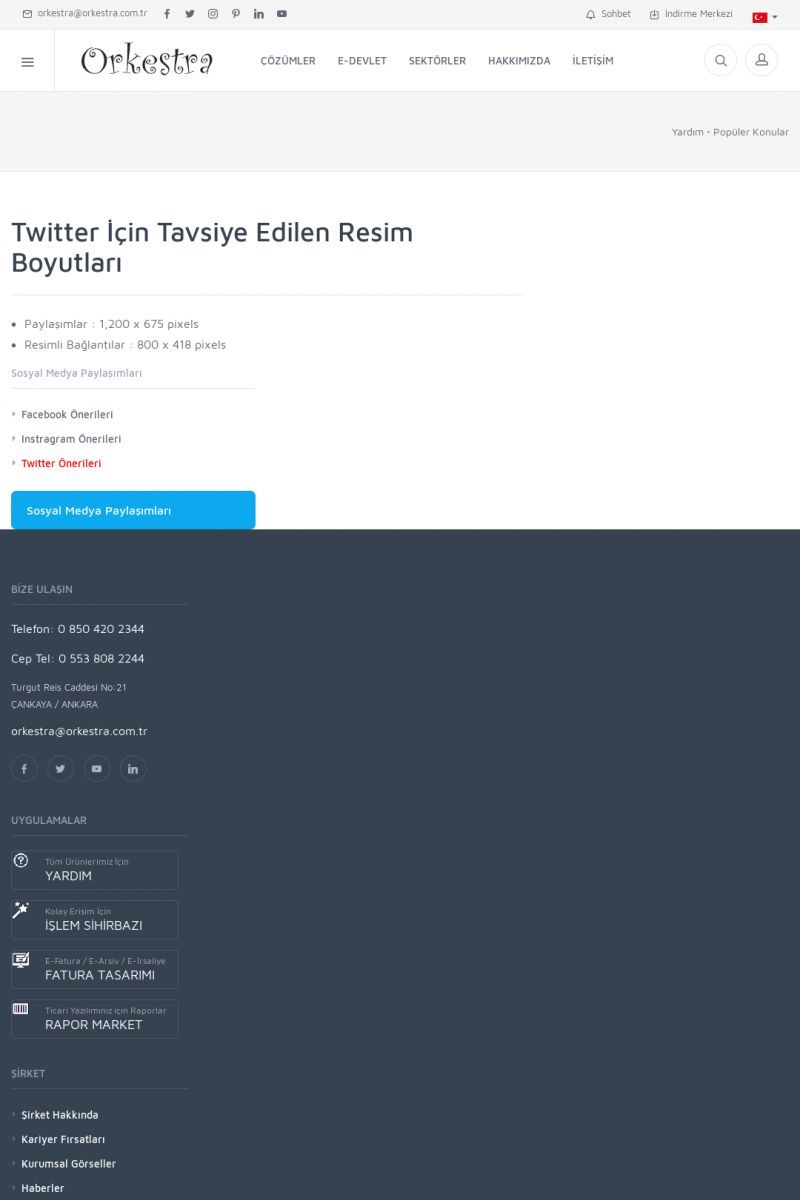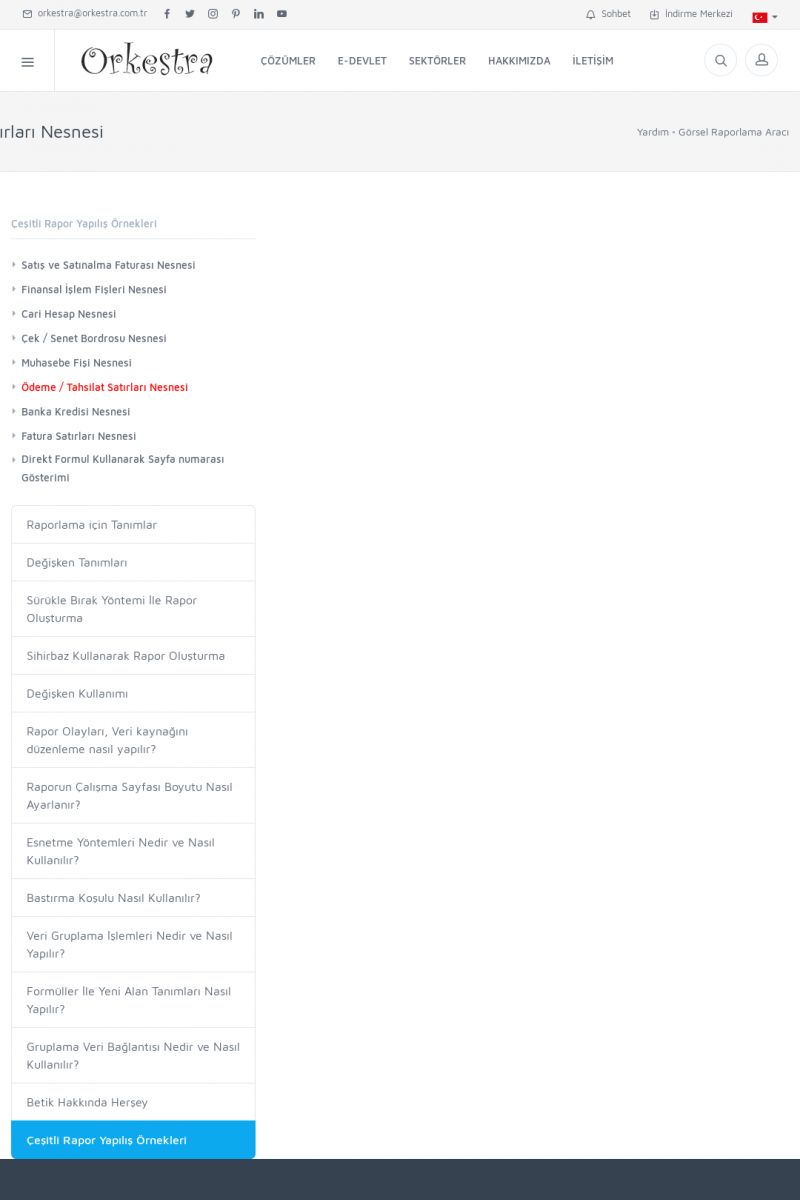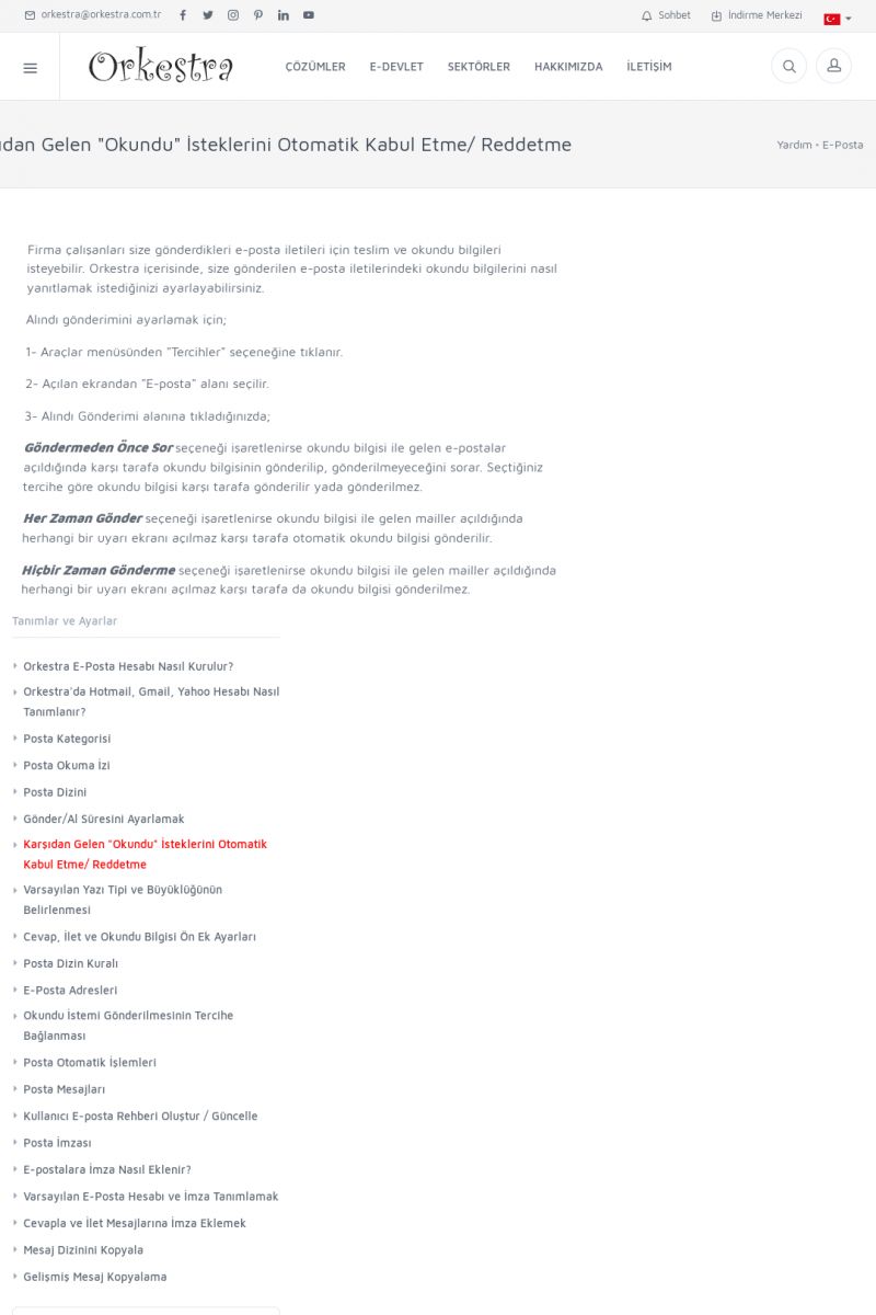 | 19 |  | Orkestra Destek Merkezi , SİZE NASIL YARDIMCI OLABİLİRİZ?Bu sayfa içerisindeki bağlantılar ile istediğiniz desteğe kolaylıkla ulaşabilirsiniz. İsterseniz sizi bşiz arayalım. İsterseniz çevirim içi yazışma ile size destek sunalım. İsterseniz şirketiniz için destek talebi oluşturun. KISA ERİŞİM KODU : XYTL / ARA19 | |