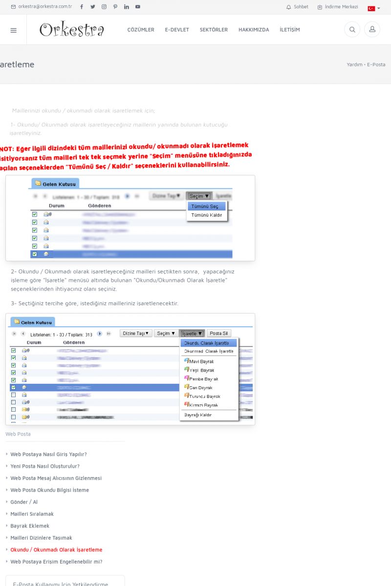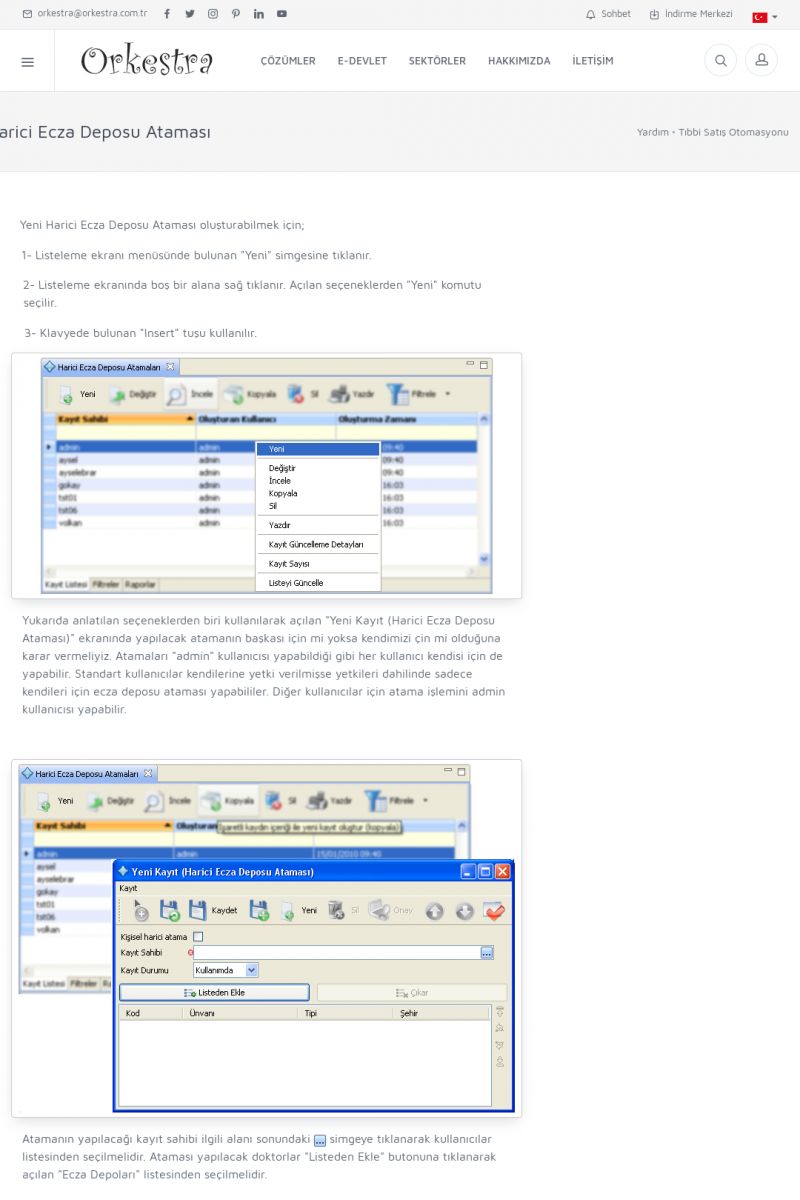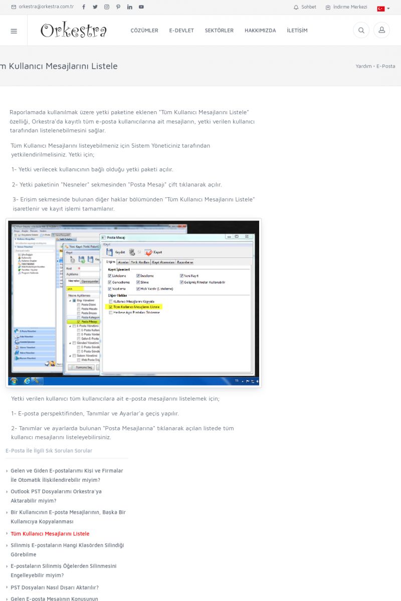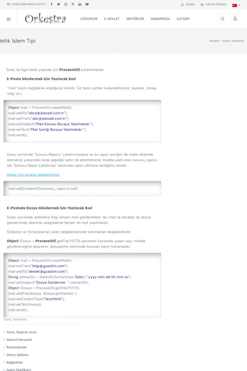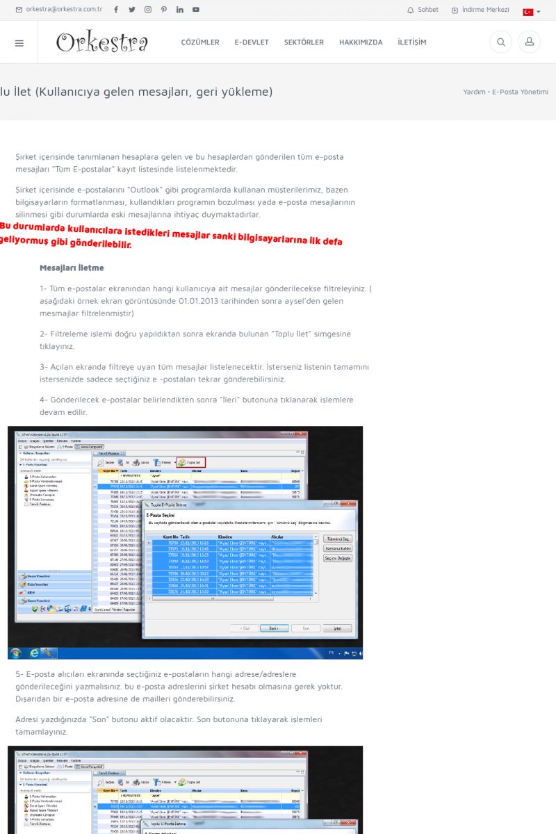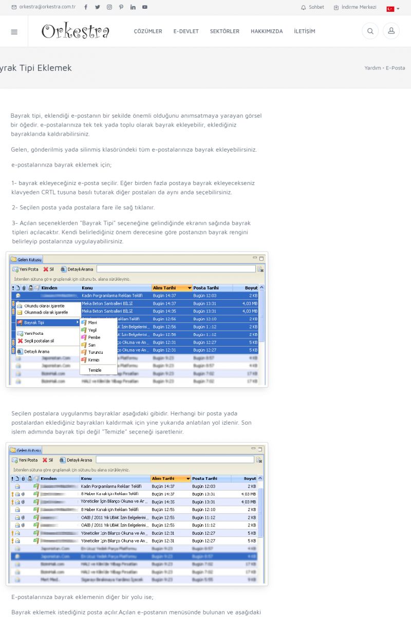 | 19 |  | Orkestra Destek Merkezi , SİZE NASIL YARDIMCI OLABİLİRİZ?Bu sayfa içerisindeki bağlantılar ile istediğiniz desteğe kolaylıkla ulaşabilirsiniz. İsterseniz sizi bşiz arayalım. İsterseniz çevirim içi yazışma ile size destek sunalım. İsterseniz şirketiniz için destek talebi oluşturun. KISA ERİŞİM KODU : XYTL / ARA19 | |
