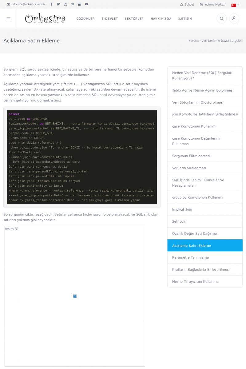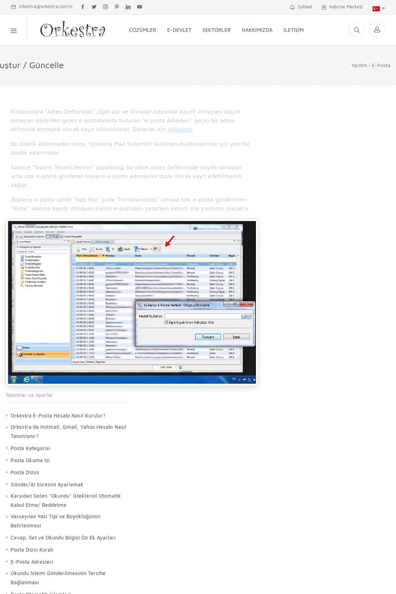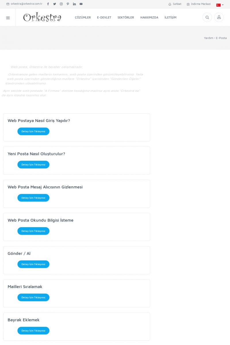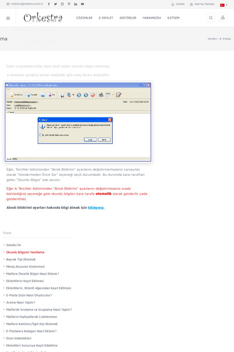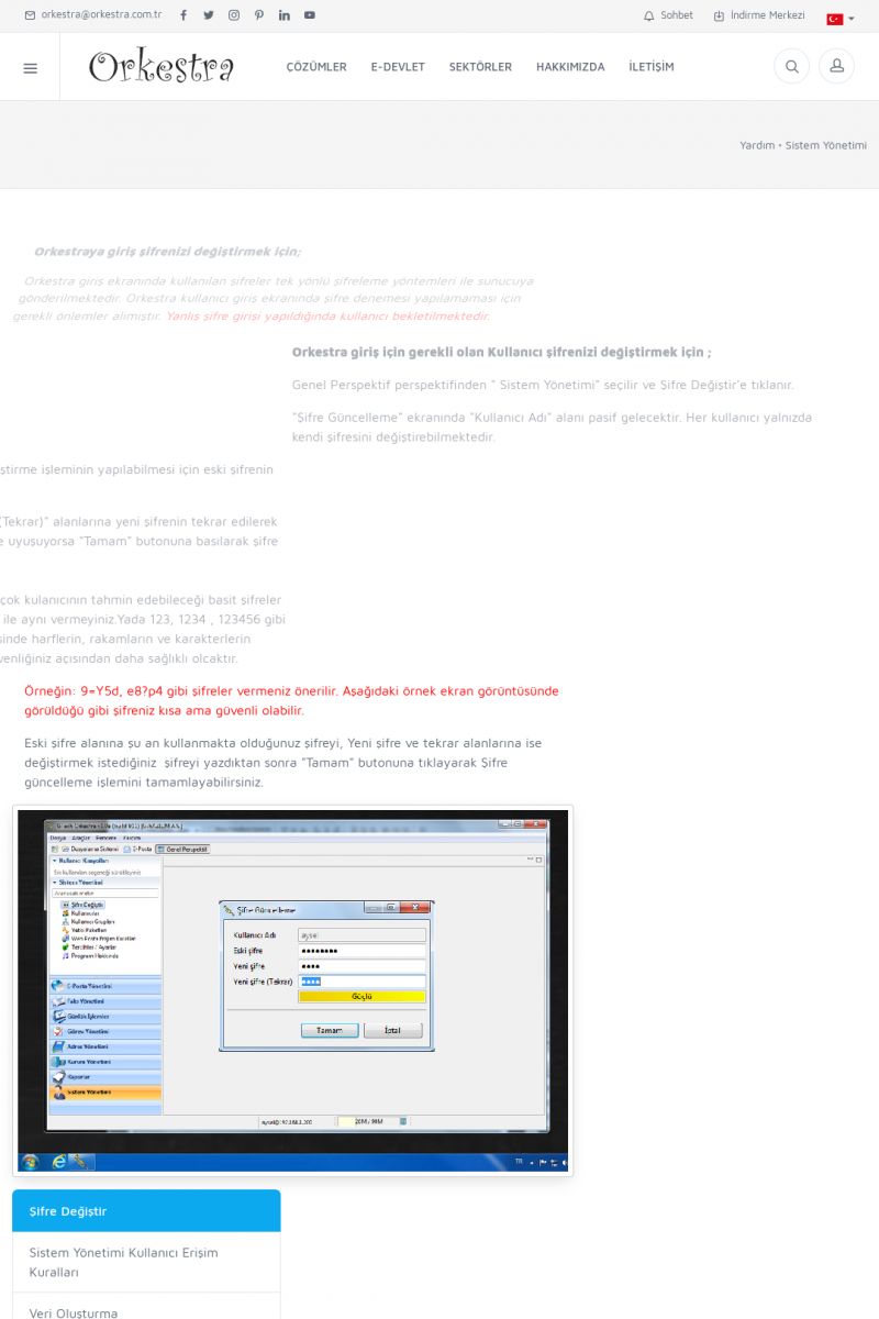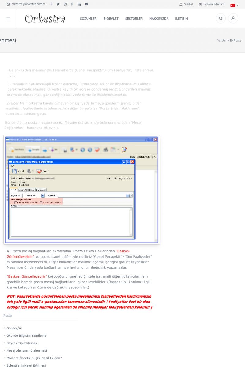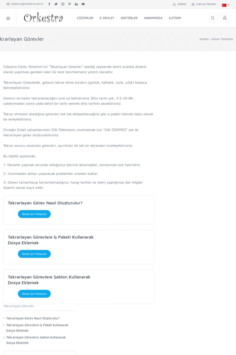 | 19 |  | Orkestra Destek Merkezi , SİZE NASIL YARDIMCI OLABİLİRİZ?Bu sayfa içerisindeki bağlantılar ile istediğiniz desteğe kolaylıkla ulaşabilirsiniz. İsterseniz sizi bşiz arayalım. İsterseniz çevirim içi yazışma ile size destek sunalım. İsterseniz şirketiniz için destek talebi oluşturun. KISA ERİŞİM KODU : XYTL / ARA19 | |