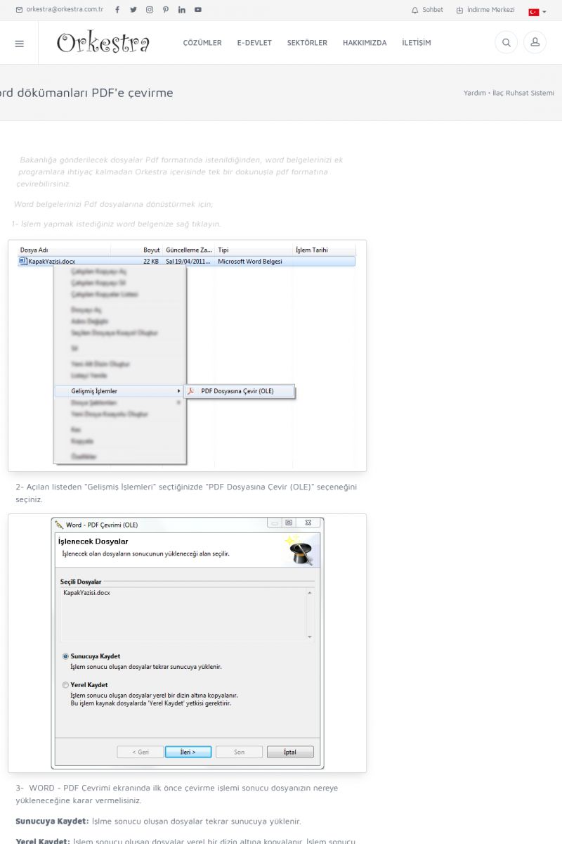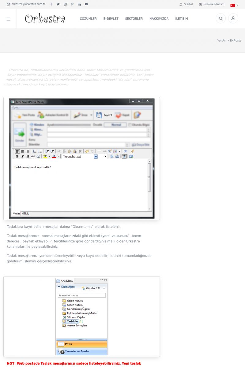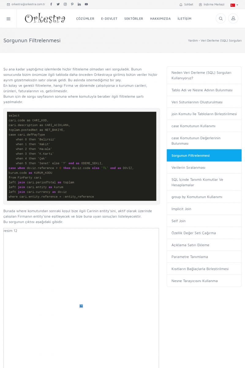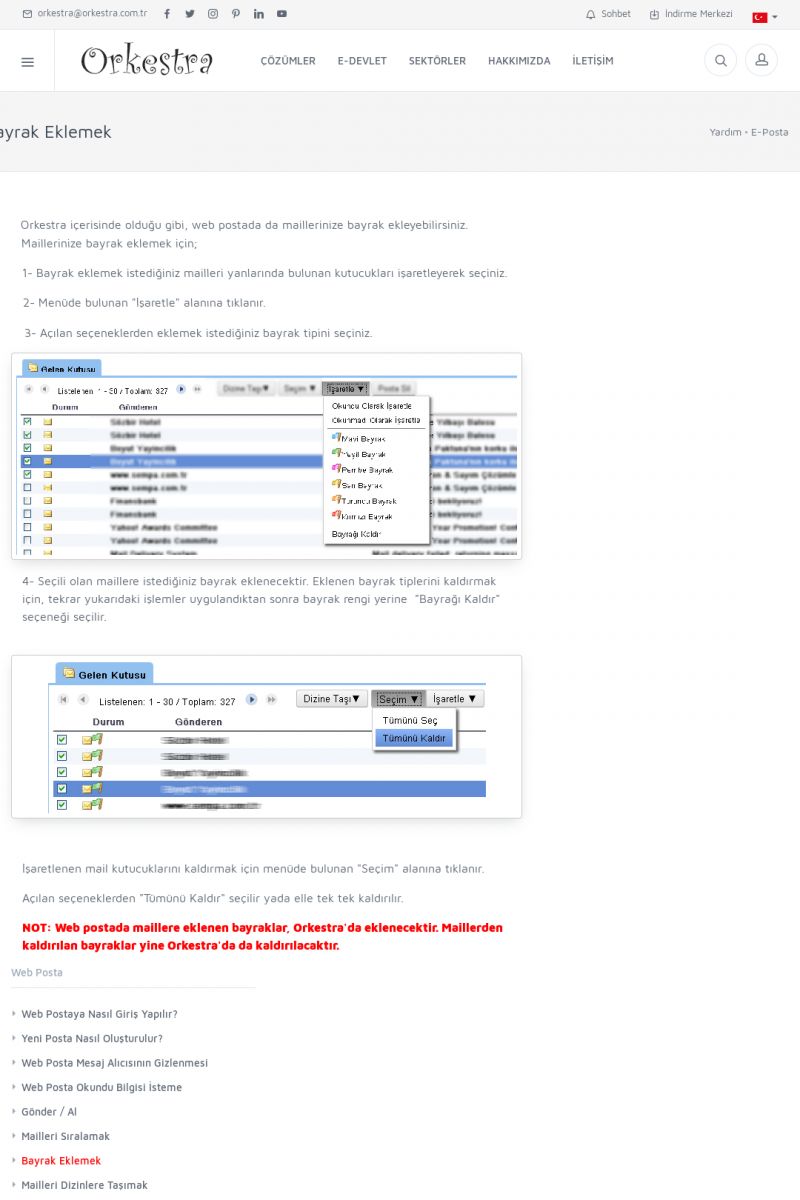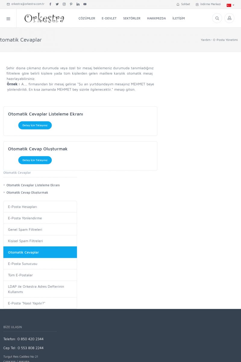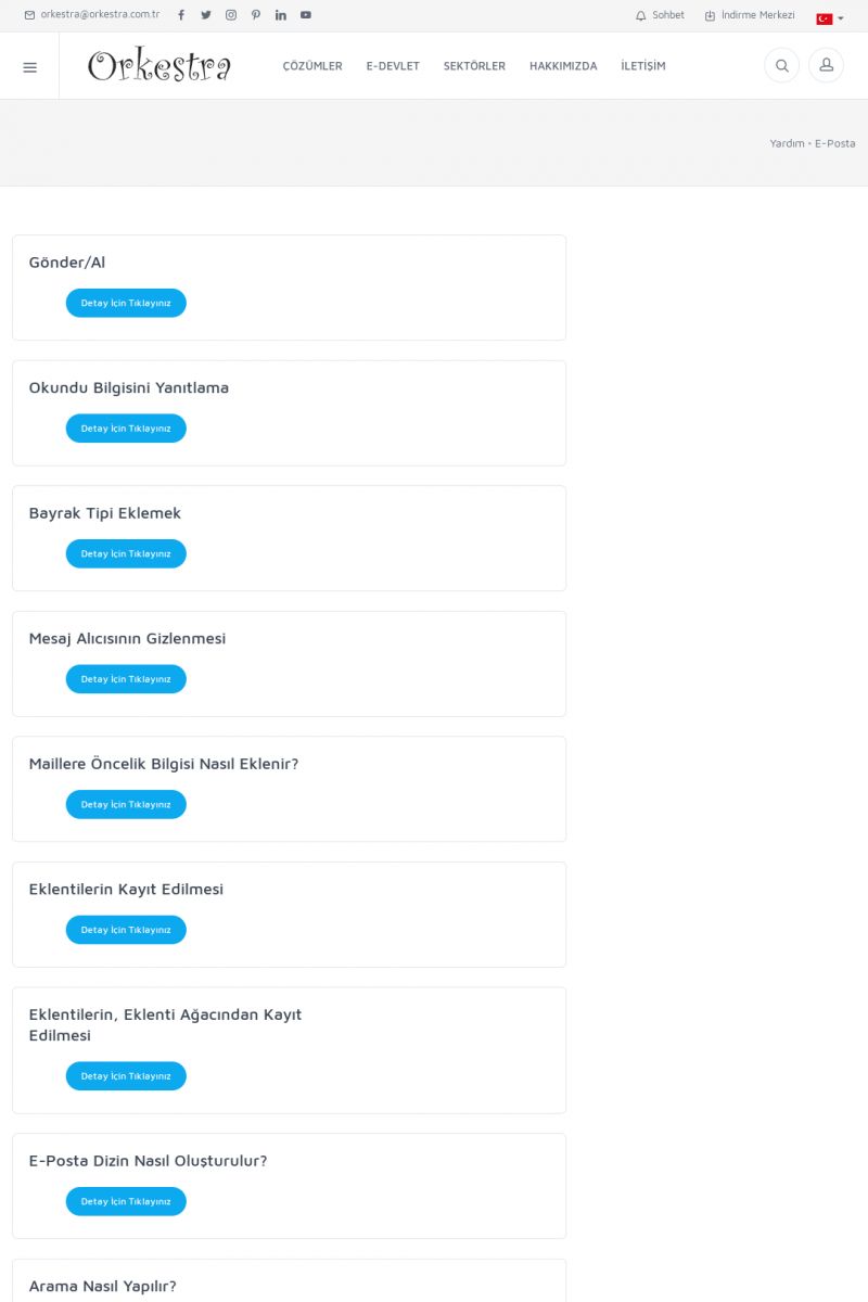 | 19 |  | Orkestra Destek Merkezi , SİZE NASIL YARDIMCI OLABİLİRİZ?Bu sayfa içerisindeki bağlantılar ile istediğiniz desteğe kolaylıkla ulaşabilirsiniz. İsterseniz sizi bşiz arayalım. İsterseniz çevirim içi yazışma ile size destek sunalım. İsterseniz şirketiniz için destek talebi oluşturun. KISA ERİŞİM KODU : XYTL / ARA19 | |
