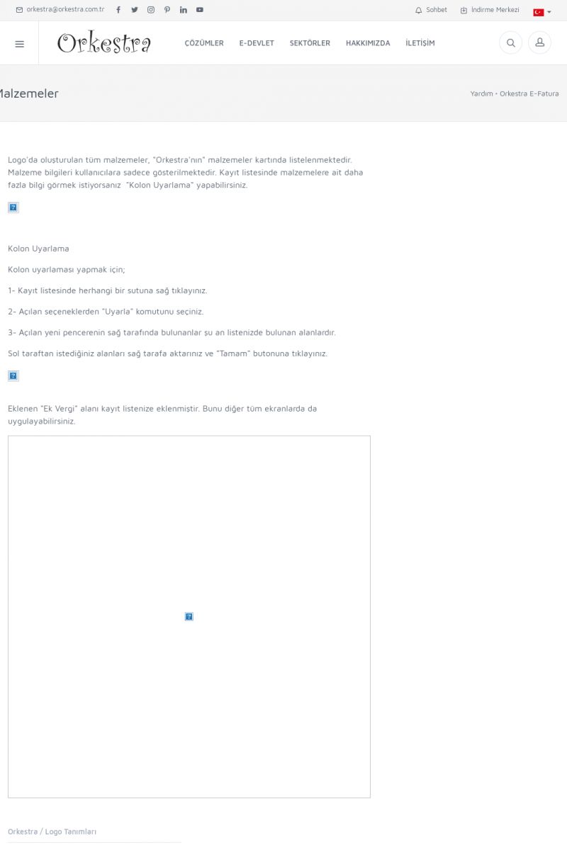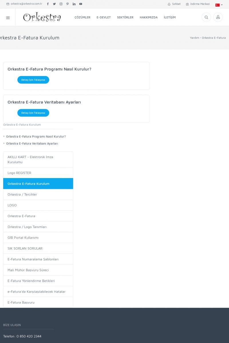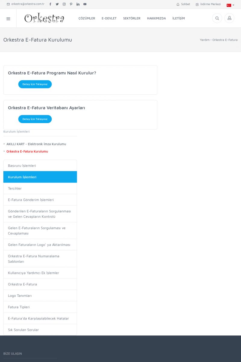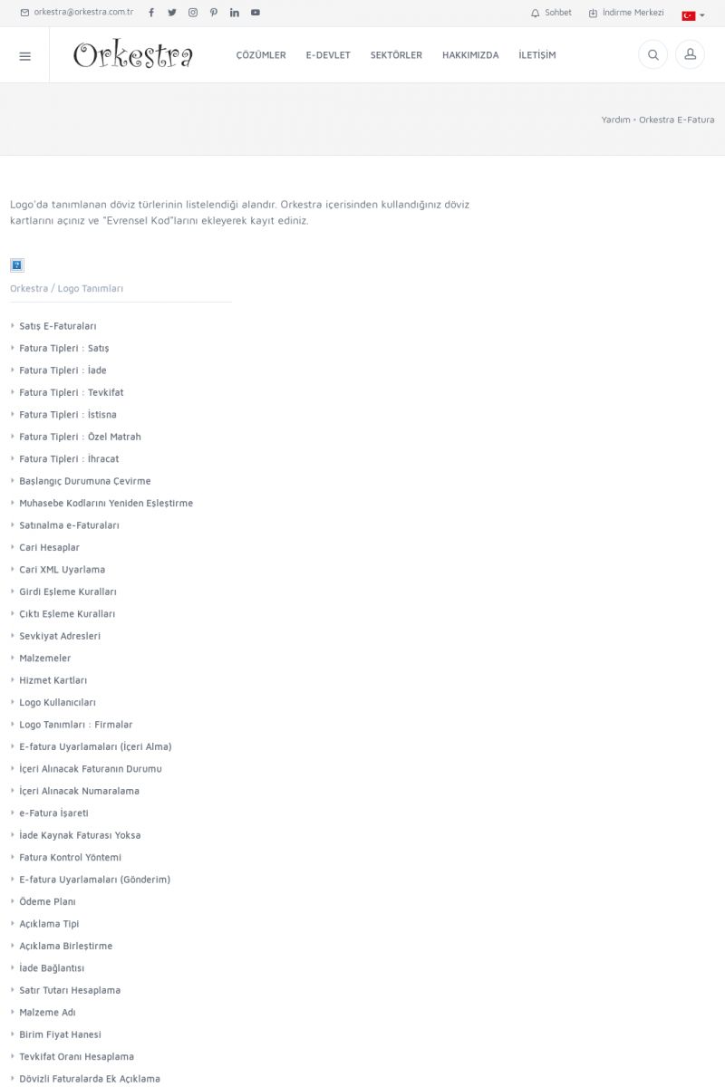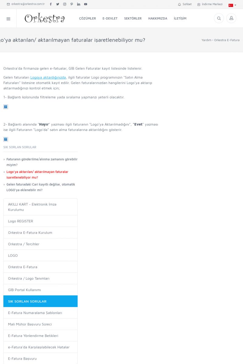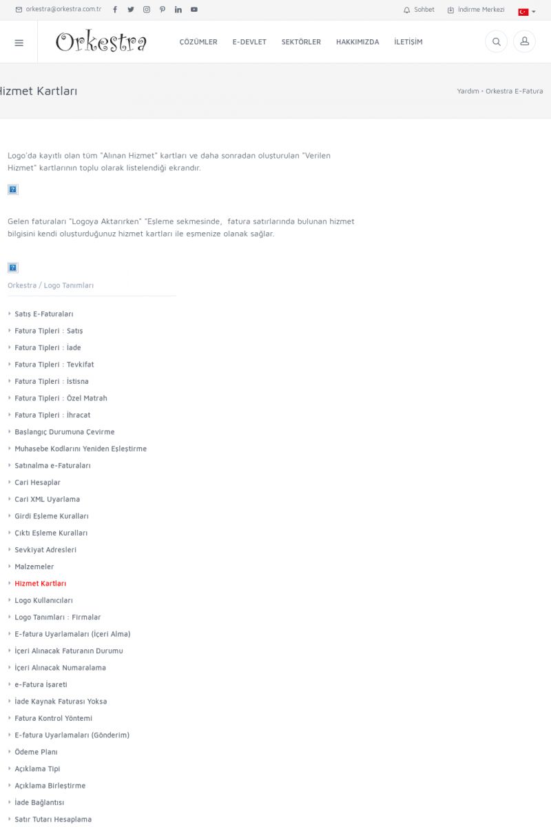 | 89 |  | Orkestra E-FaturaAKILLI KART - ELEKTRONIK İMZA KURULUMU Detay İçin Tıklayınız [/index.php?sayfa=yardim&m=20&y=711] LOGO REGISTER Detay İçin Tıklayınız [/index.php?sayfa=yardim&m=20&y=716] ORKESTRA E-FATURA KURULUM Detay İçin Tıklayınız [/index.php?sayfa=yardim&m=20&y=717] ORKESTRA / TERCIHLER Detay İçin Tıklayınız [/index. KISA ERİŞİM KODU : XYDLS / ARA89 | |