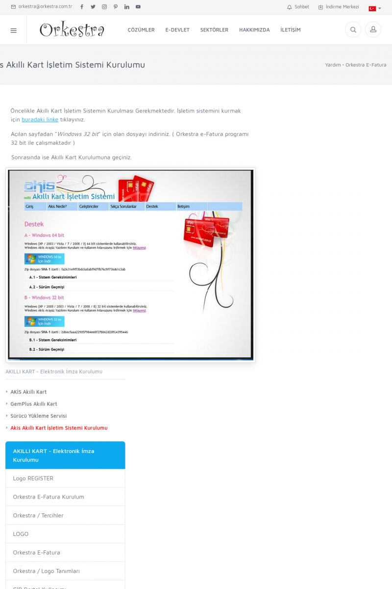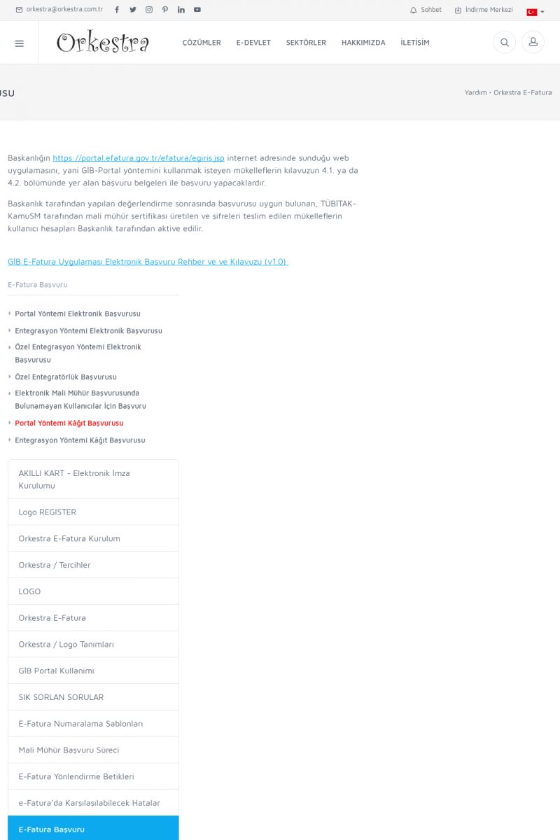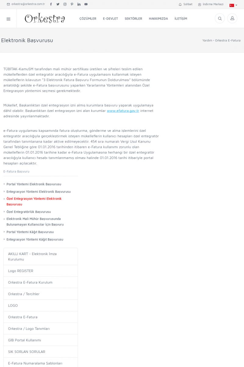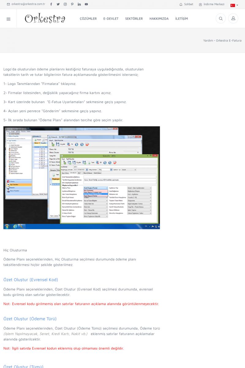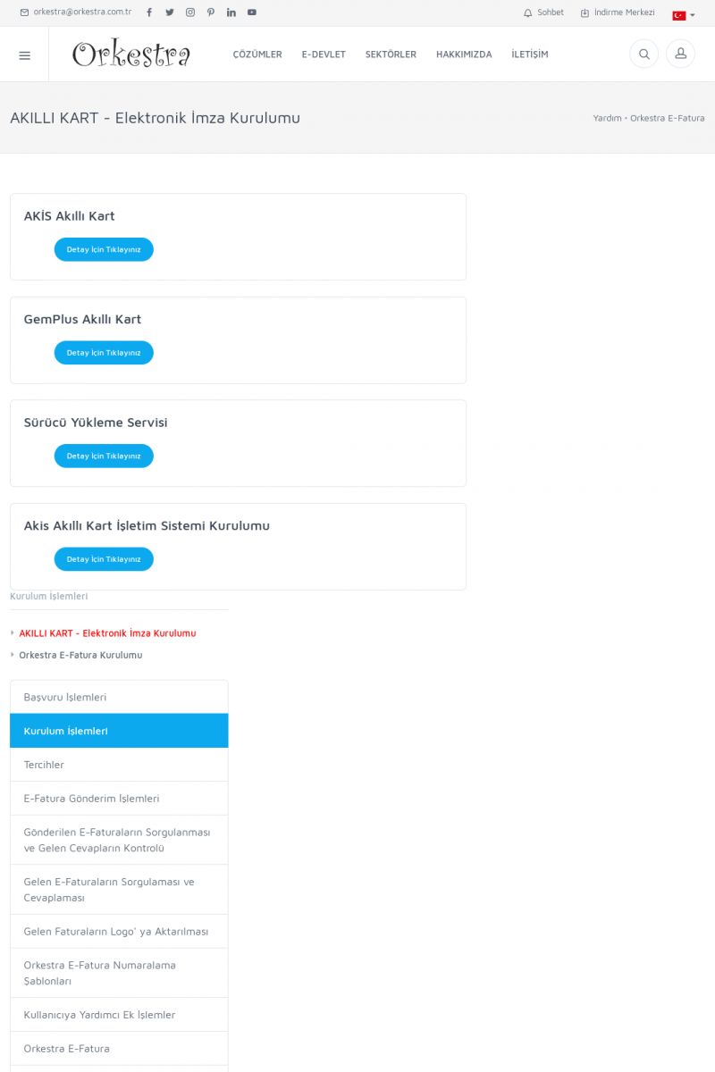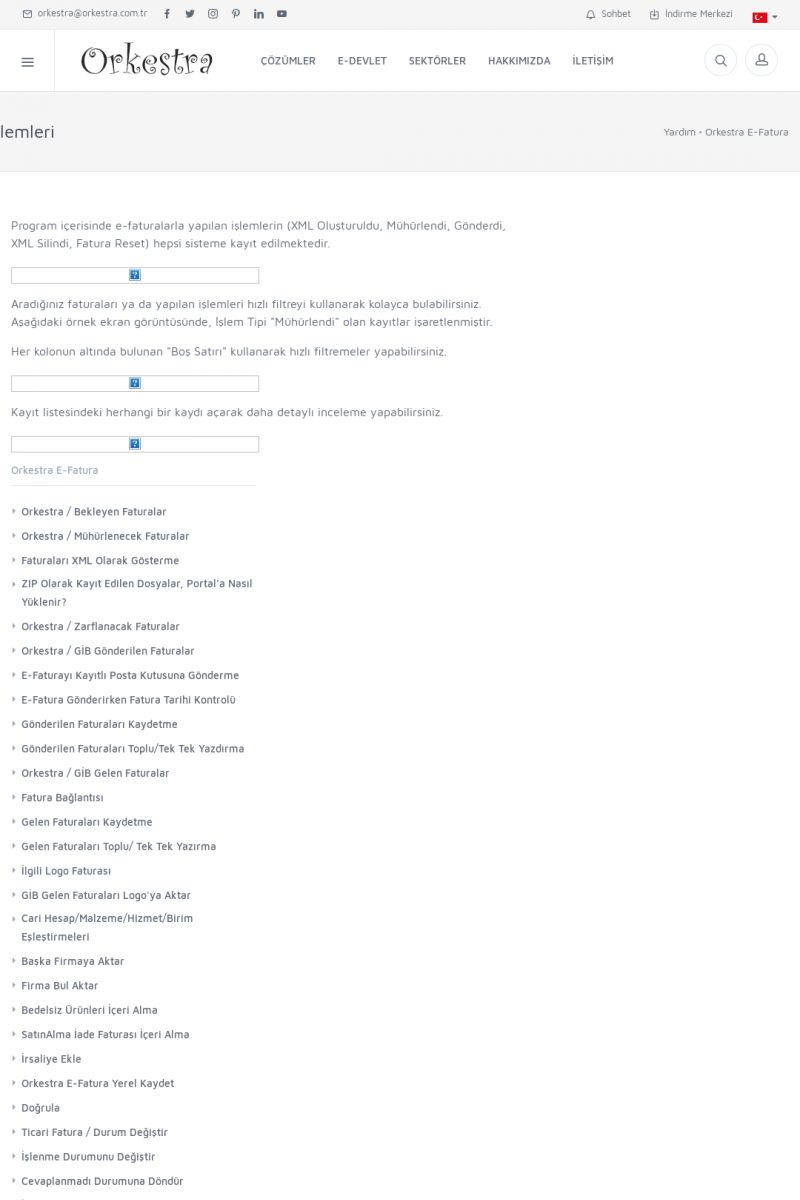 | 89 |  | Orkestra E-FaturaAKILLI KART - ELEKTRONIK İMZA KURULUMU Detay İçin Tıklayınız [/index.php?sayfa=yardim&m=20&y=711] LOGO REGISTER Detay İçin Tıklayınız [/index.php?sayfa=yardim&m=20&y=716] ORKESTRA E-FATURA KURULUM Detay İçin Tıklayınız [/index.php?sayfa=yardim&m=20&y=717] ORKESTRA / TERCIHLER Detay İçin Tıklayınız [/index. KISA ERİŞİM KODU : XYDLS / ARA89 | |
