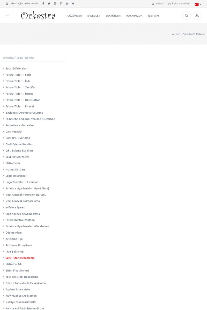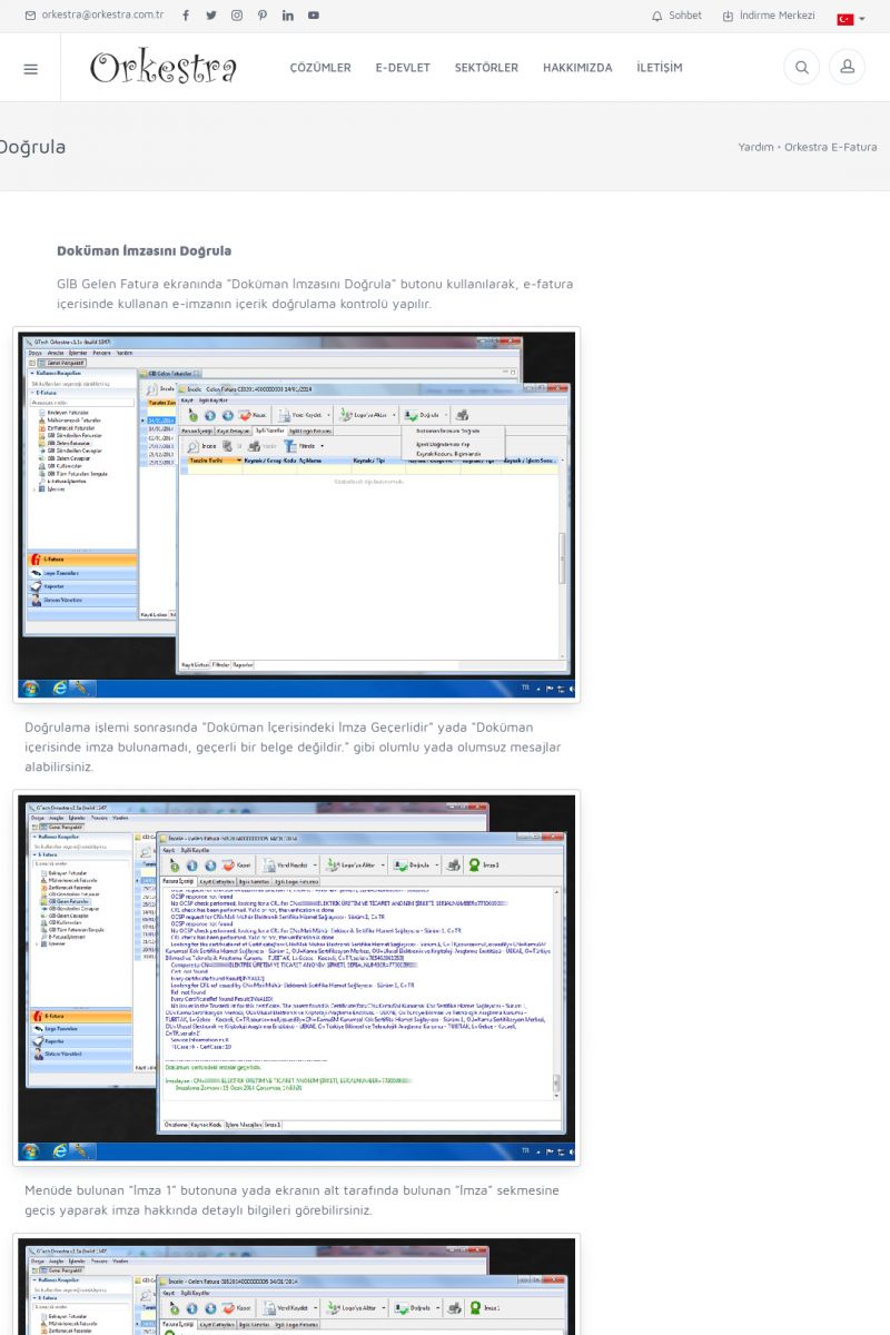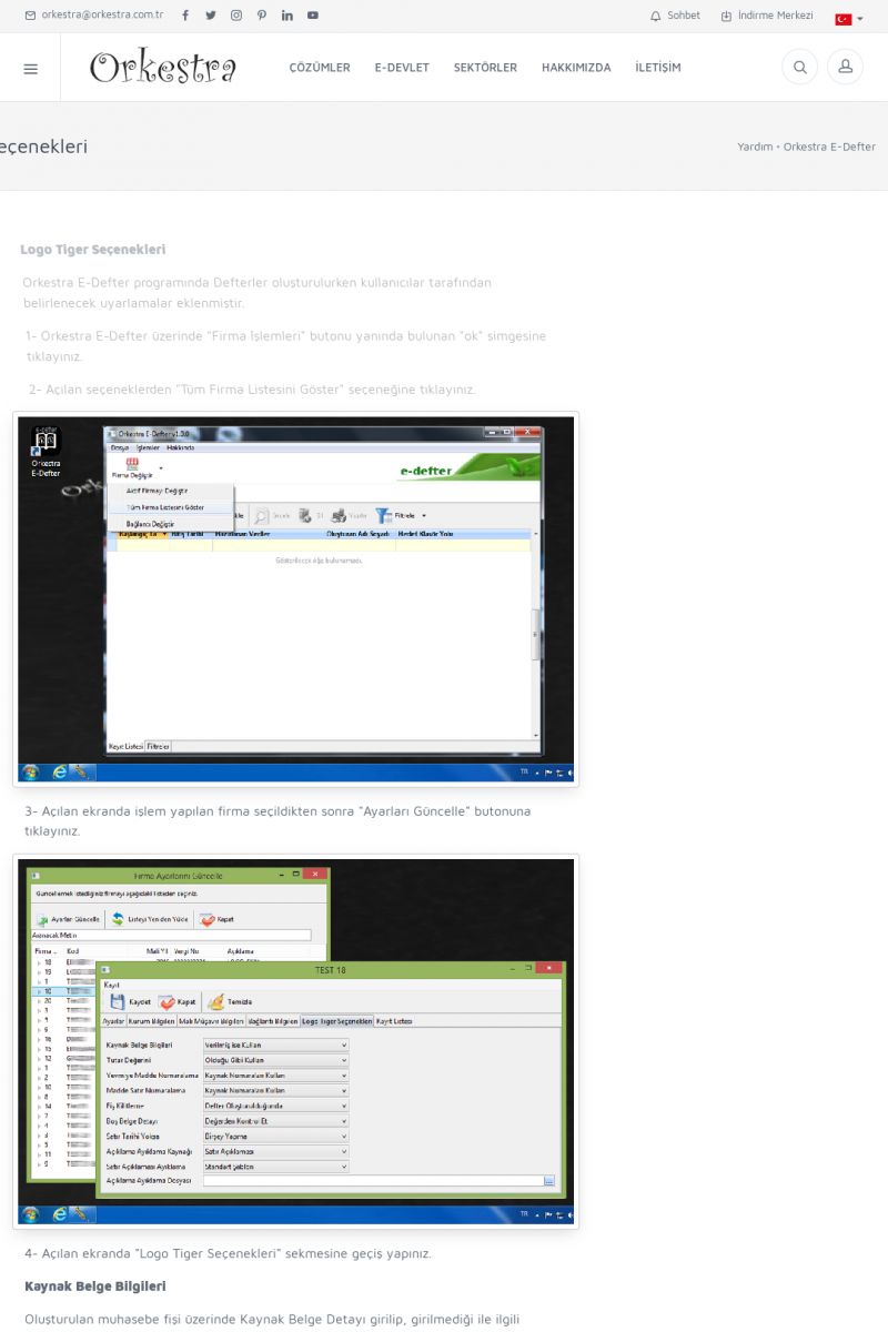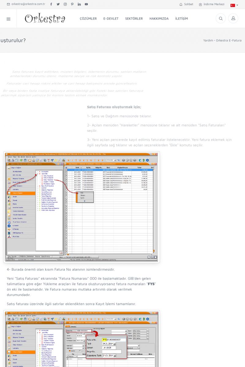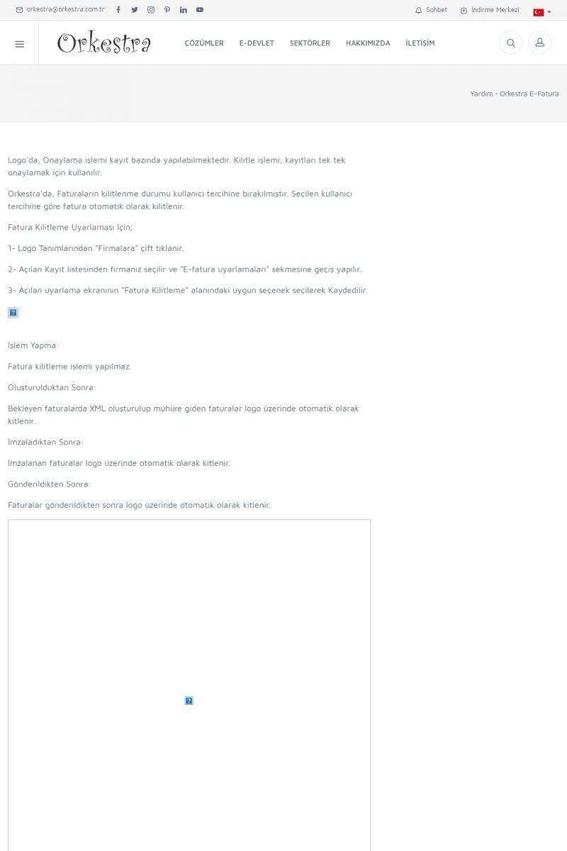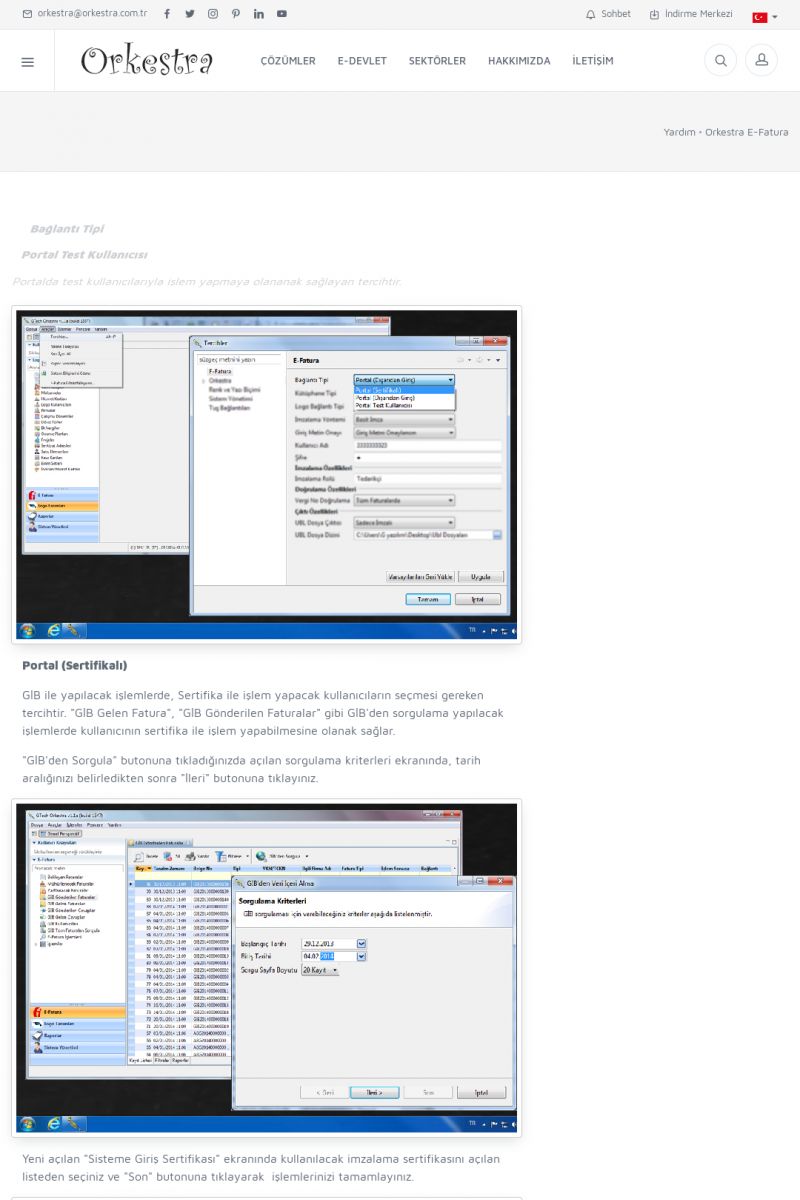 | 89 |  | Orkestra E-FaturaAKILLI KART - ELEKTRONIK İMZA KURULUMU Detay İçin Tıklayınız [/index.php?sayfa=yardim&m=20&y=711] LOGO REGISTER Detay İçin Tıklayınız [/index.php?sayfa=yardim&m=20&y=716] ORKESTRA E-FATURA KURULUM Detay İçin Tıklayınız [/index.php?sayfa=yardim&m=20&y=717] ORKESTRA / TERCIHLER Detay İçin Tıklayınız [/index. KISA ERİŞİM KODU : XYDLS / ARA89 | |