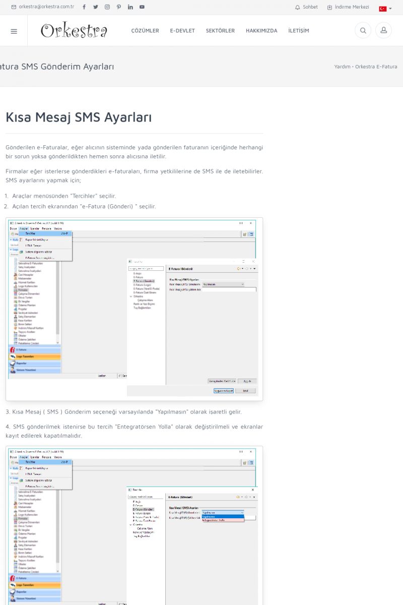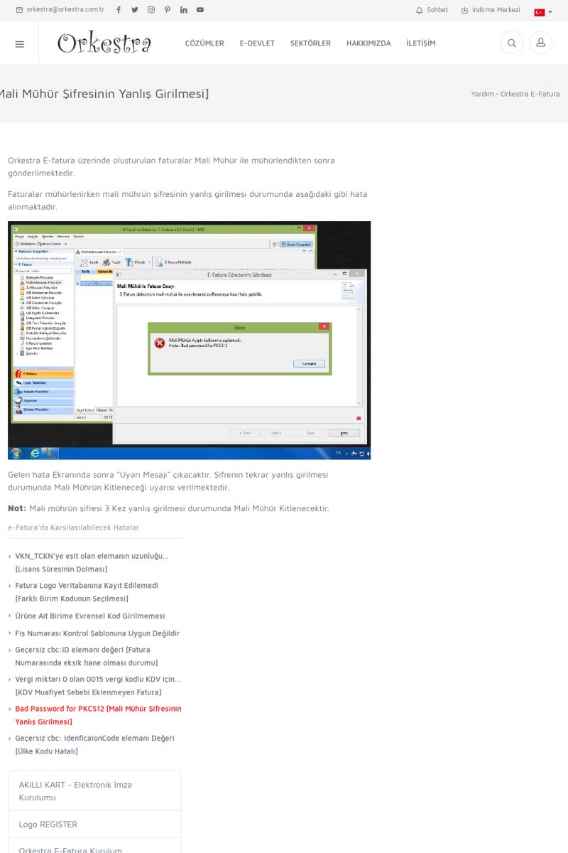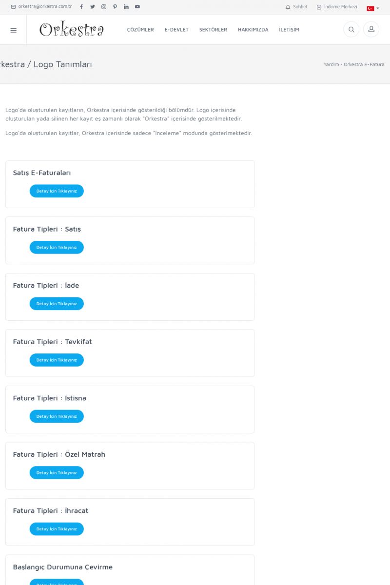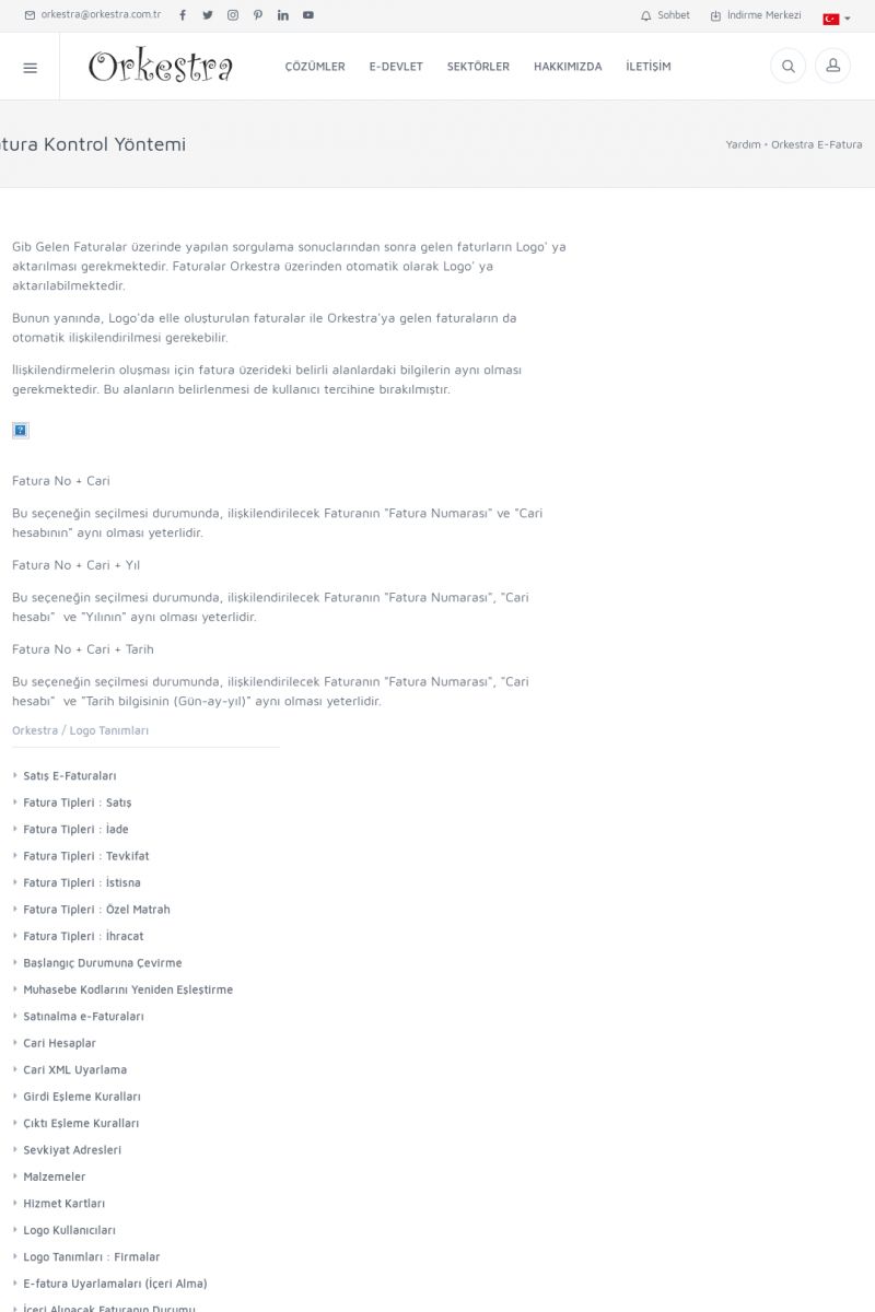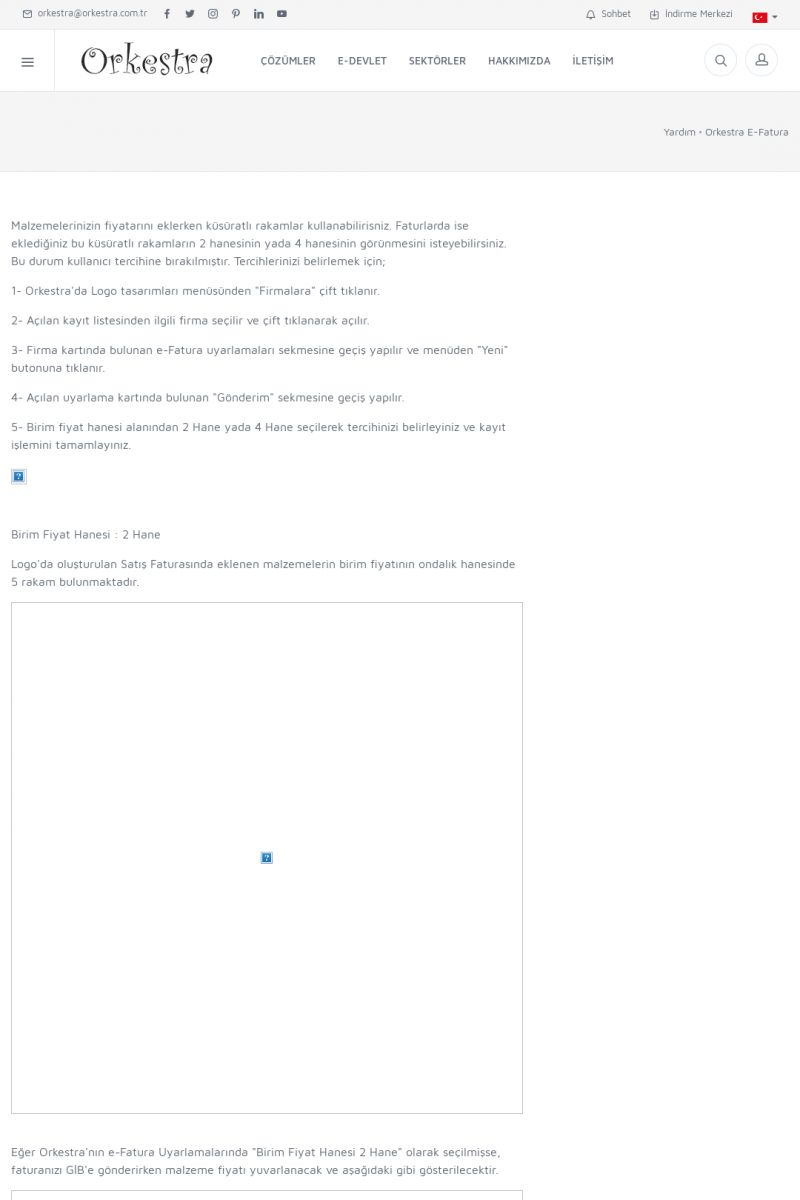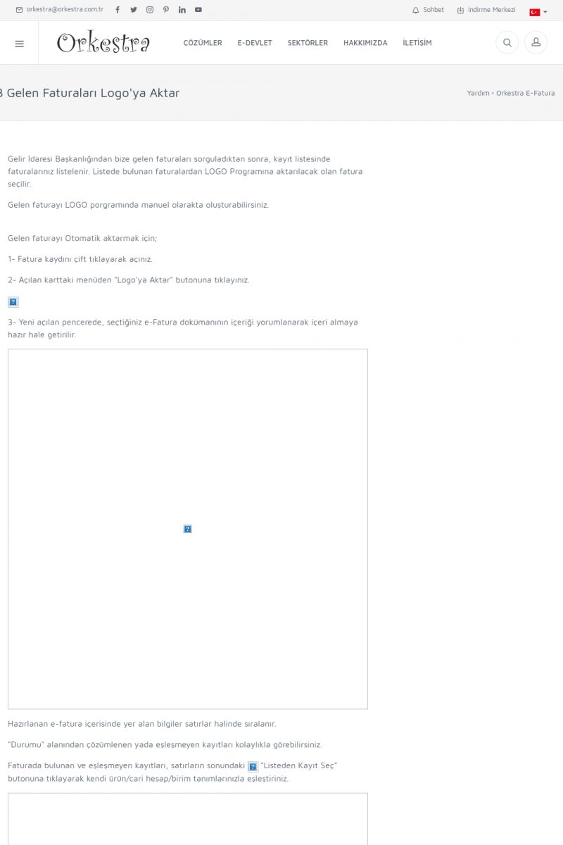 | 89 |  | Orkestra E-FaturaAKILLI KART - ELEKTRONIK İMZA KURULUMU Detay İçin Tıklayınız [/index.php?sayfa=yardim&m=20&y=711] LOGO REGISTER Detay İçin Tıklayınız [/index.php?sayfa=yardim&m=20&y=716] ORKESTRA E-FATURA KURULUM Detay İçin Tıklayınız [/index.php?sayfa=yardim&m=20&y=717] ORKESTRA / TERCIHLER Detay İçin Tıklayınız [/index. KISA ERİŞİM KODU : XYDLS / ARA89 | |