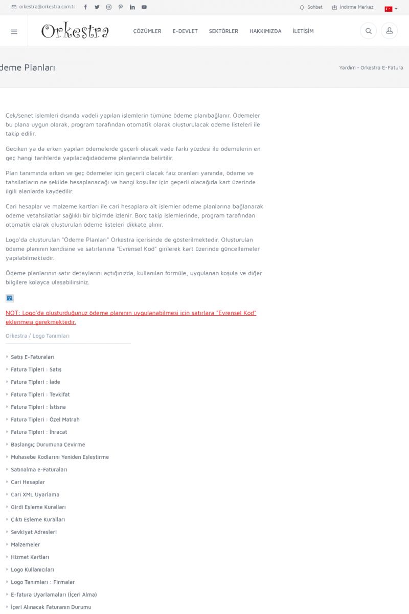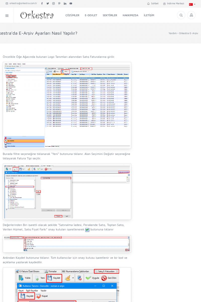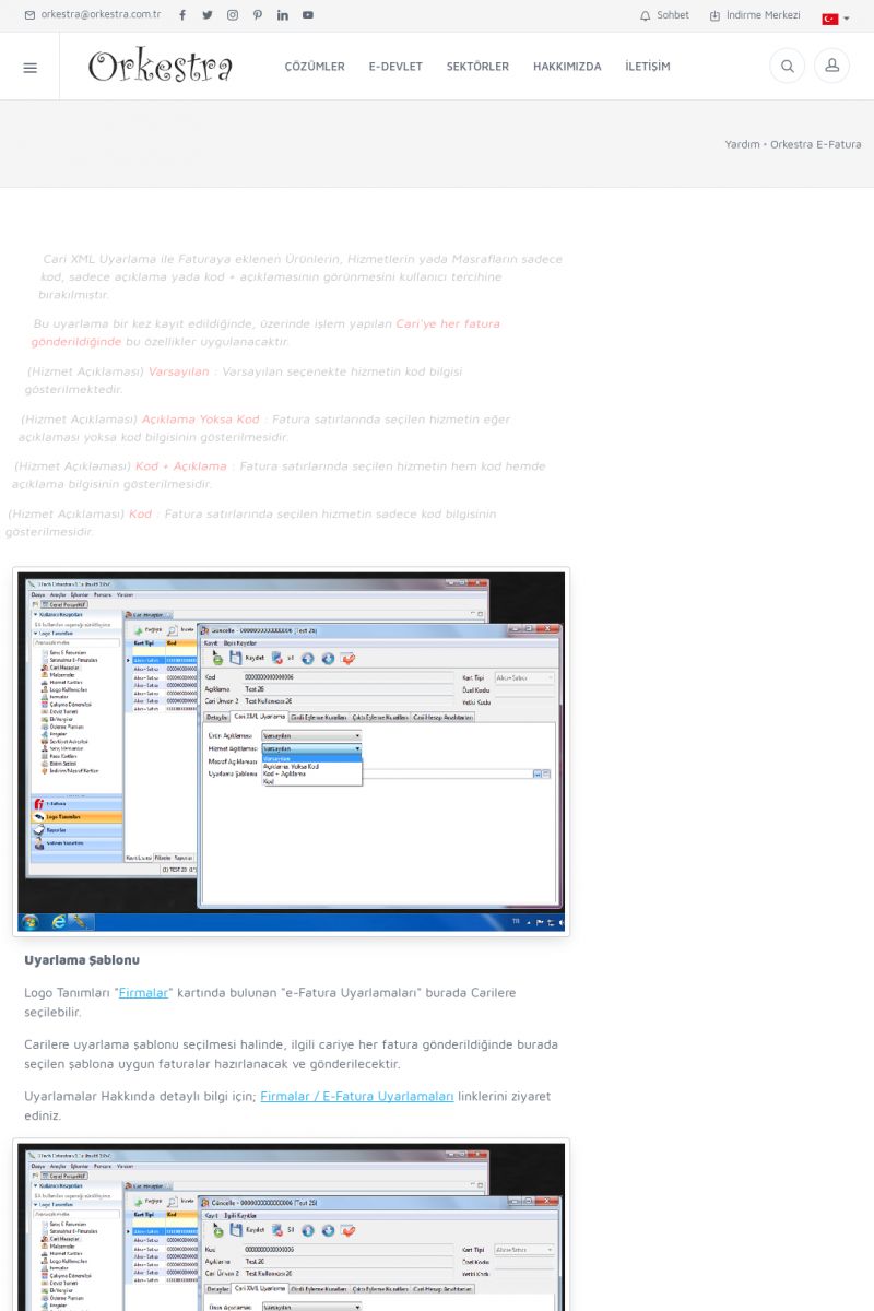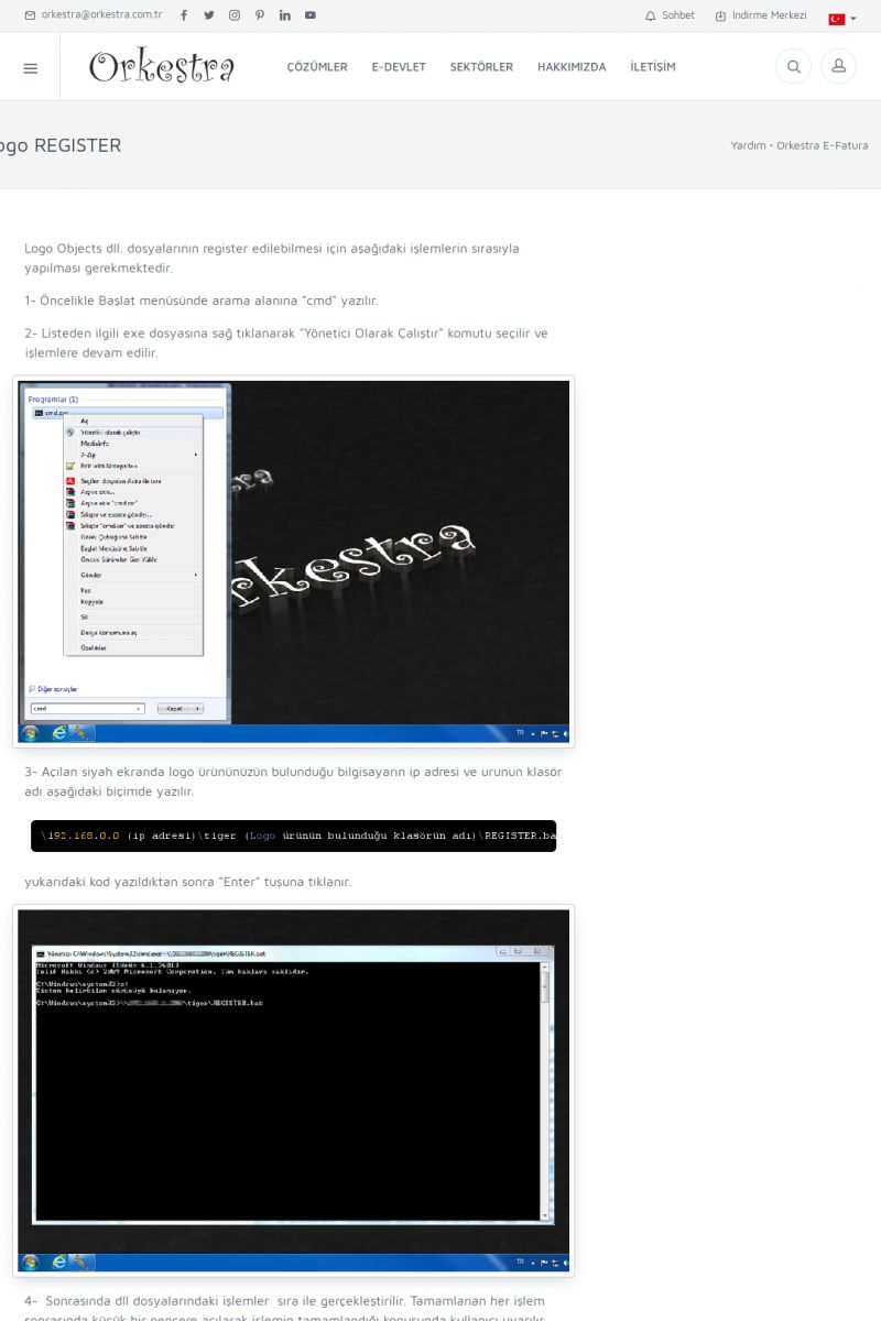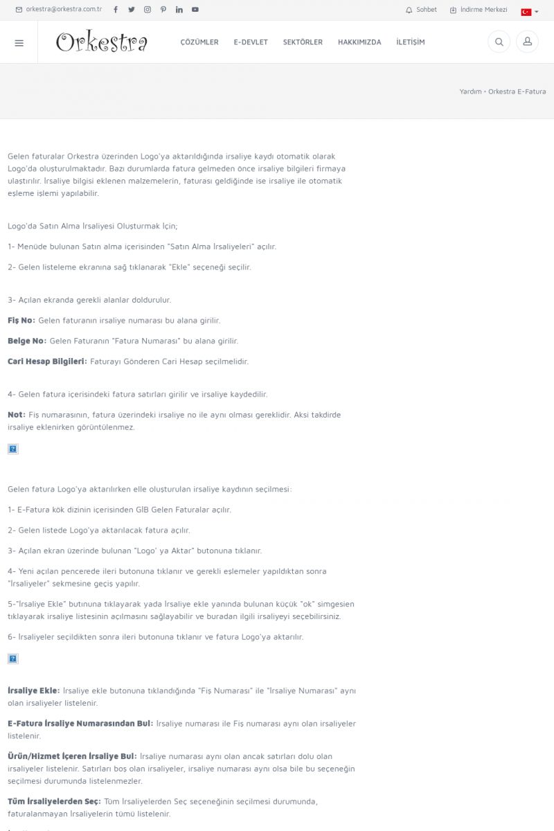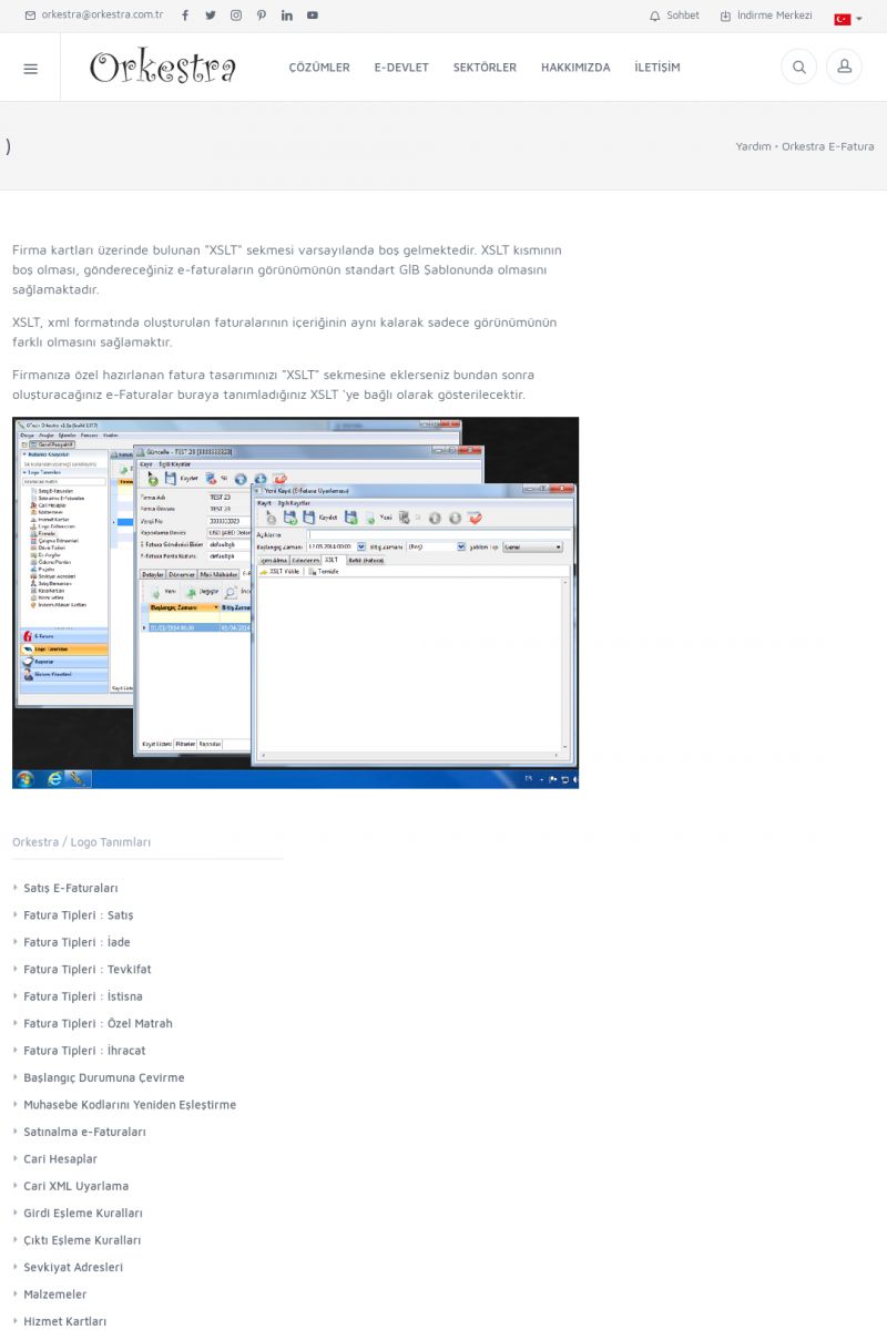 | 89 |  | Orkestra E-FaturaAKILLI KART - ELEKTRONIK İMZA KURULUMU Detay İçin Tıklayınız [/index.php?sayfa=yardim&m=20&y=711] LOGO REGISTER Detay İçin Tıklayınız [/index.php?sayfa=yardim&m=20&y=716] ORKESTRA E-FATURA KURULUM Detay İçin Tıklayınız [/index.php?sayfa=yardim&m=20&y=717] ORKESTRA / TERCIHLER Detay İçin Tıklayınız [/index. KISA ERİŞİM KODU : XYDLS / ARA89 | |