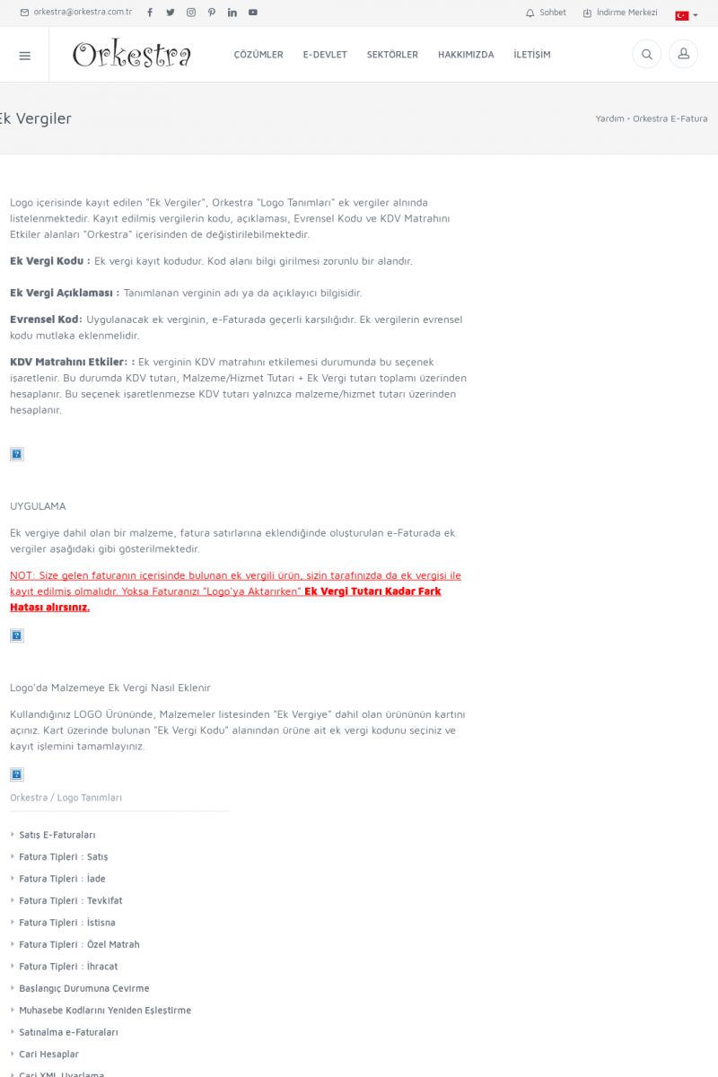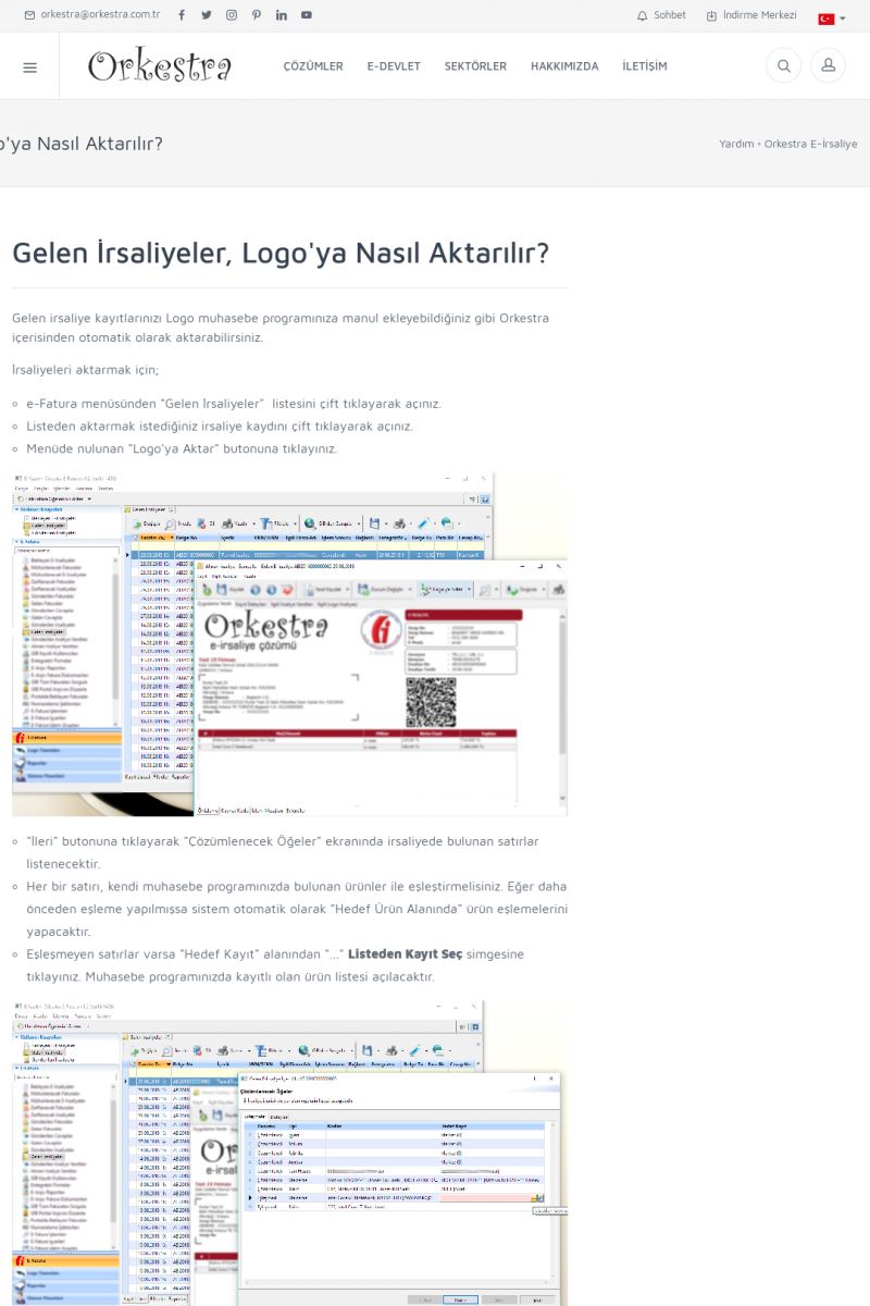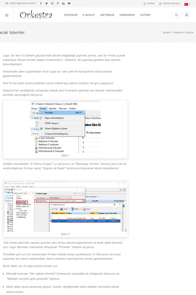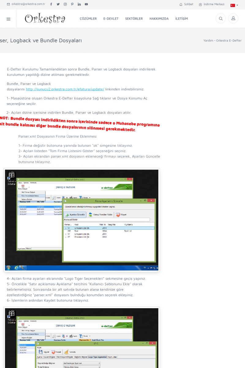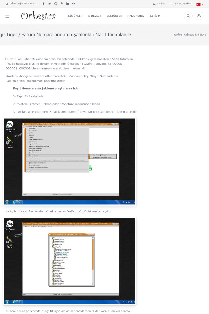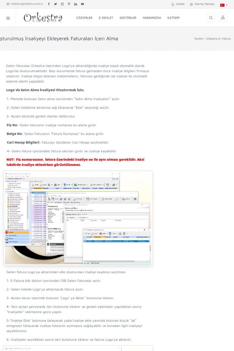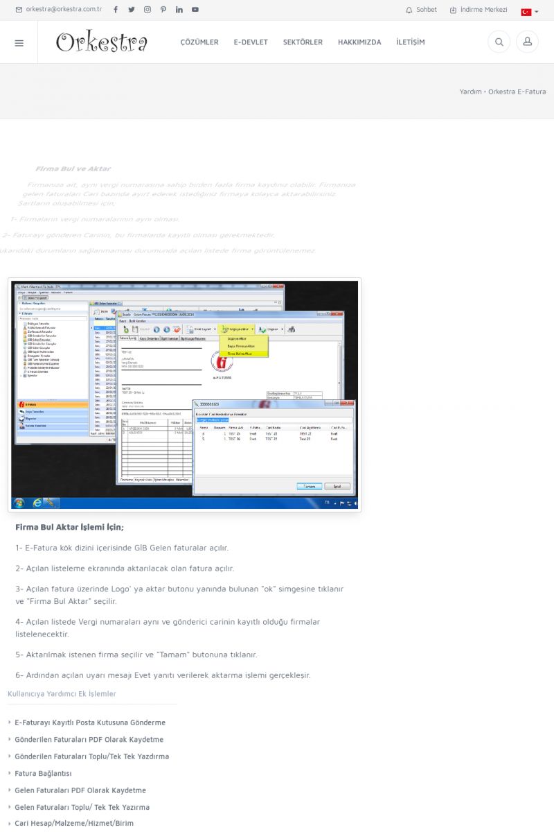 | 89 |  | Orkestra E-FaturaAKILLI KART - ELEKTRONIK İMZA KURULUMU Detay İçin Tıklayınız [/index.php?sayfa=yardim&m=20&y=711] LOGO REGISTER Detay İçin Tıklayınız [/index.php?sayfa=yardim&m=20&y=716] ORKESTRA E-FATURA KURULUM Detay İçin Tıklayınız [/index.php?sayfa=yardim&m=20&y=717] ORKESTRA / TERCIHLER Detay İçin Tıklayınız [/index. KISA ERİŞİM KODU : XYDLS / ARA89 | |