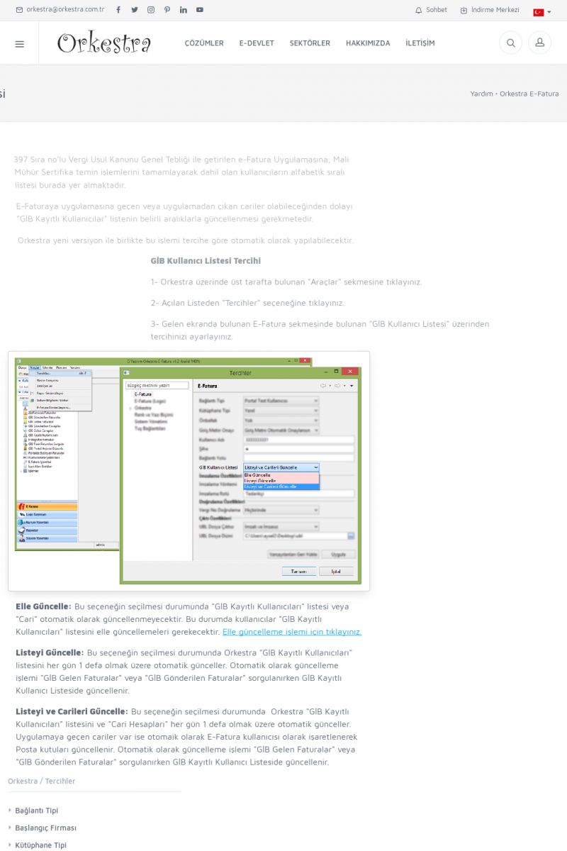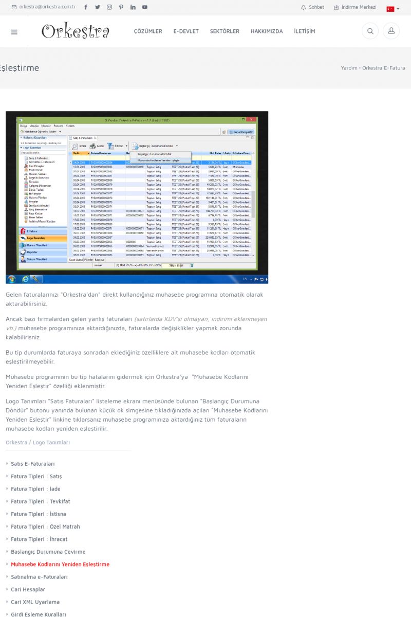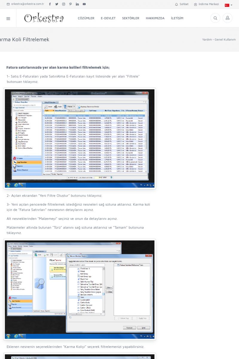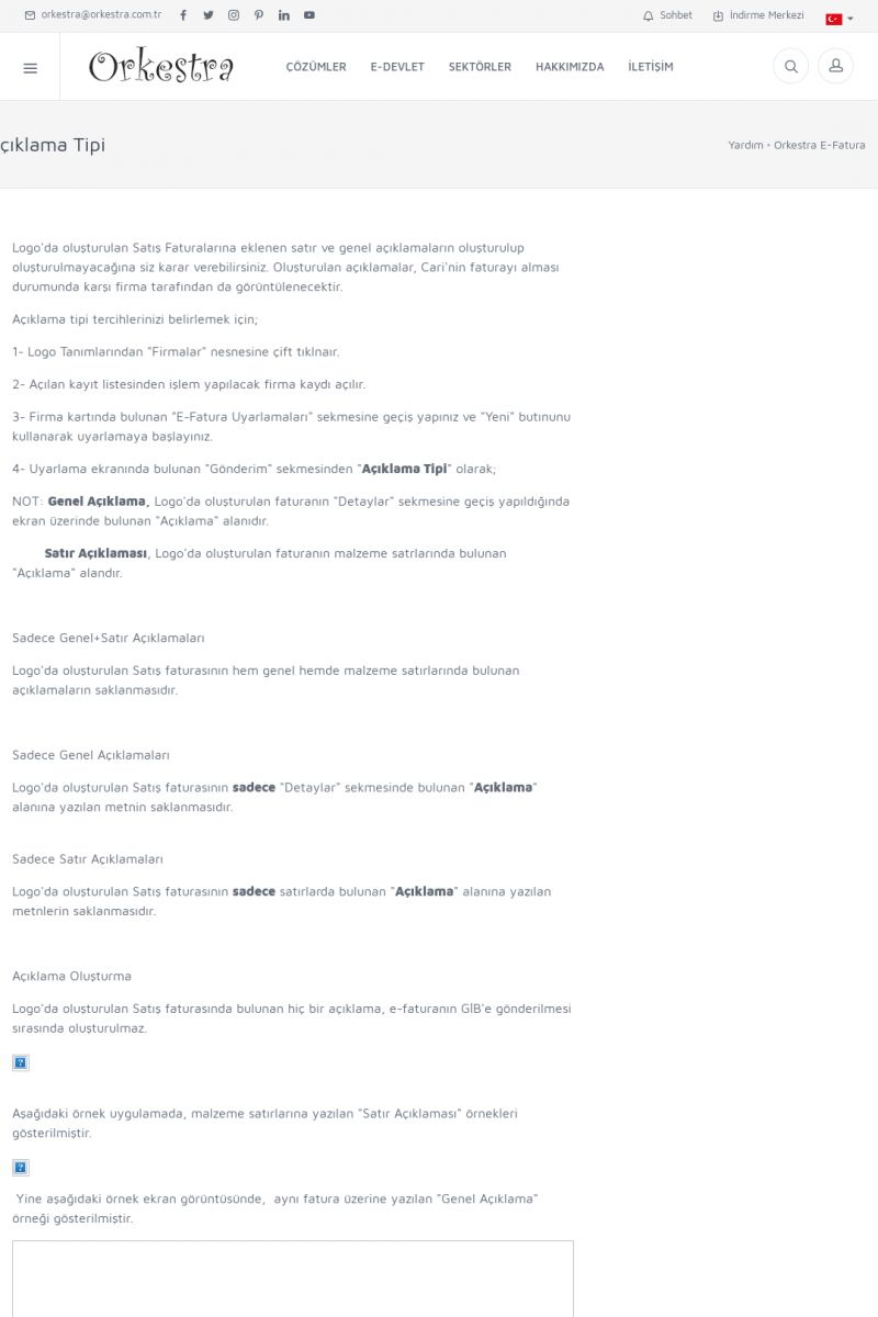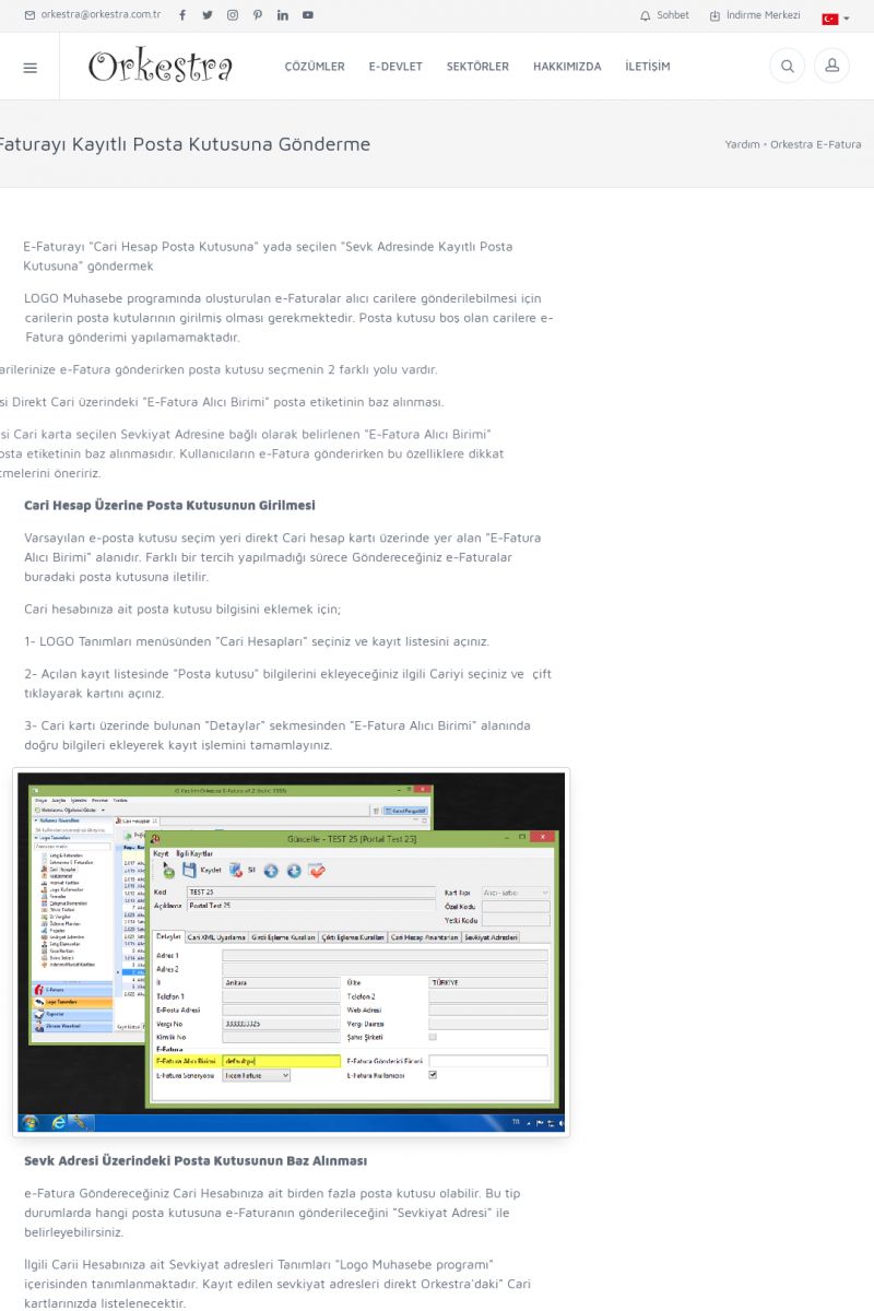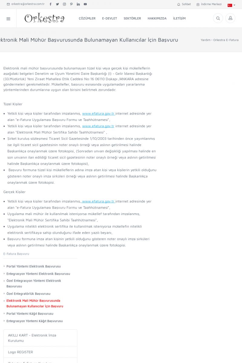 | 89 |  | Orkestra E-FaturaAKILLI KART - ELEKTRONIK İMZA KURULUMU Detay İçin Tıklayınız [/index.php?sayfa=yardim&m=20&y=711] LOGO REGISTER Detay İçin Tıklayınız [/index.php?sayfa=yardim&m=20&y=716] ORKESTRA E-FATURA KURULUM Detay İçin Tıklayınız [/index.php?sayfa=yardim&m=20&y=717] ORKESTRA / TERCIHLER Detay İçin Tıklayınız [/index. KISA ERİŞİM KODU : XYDLS / ARA89 | |