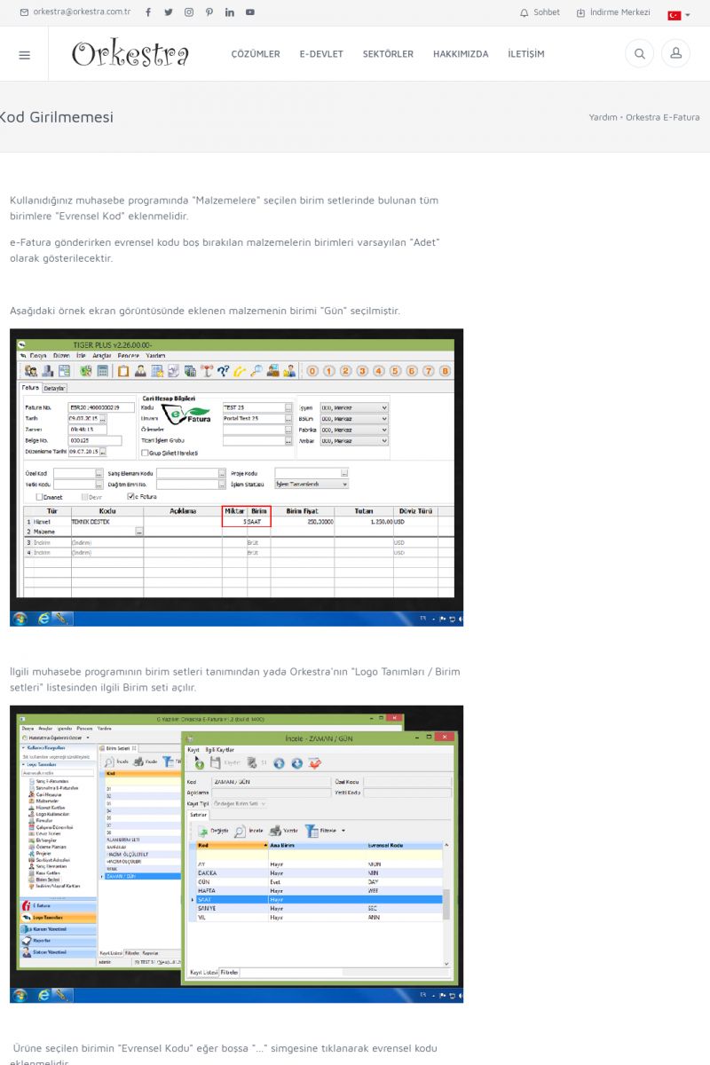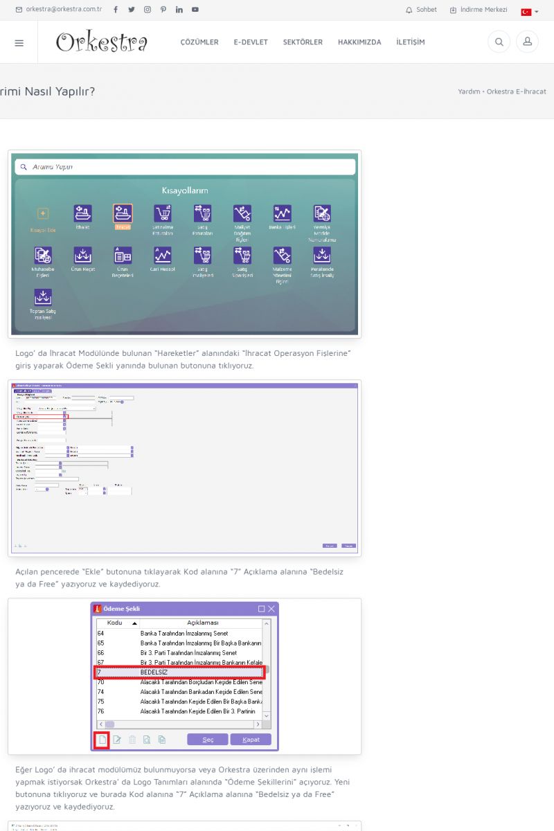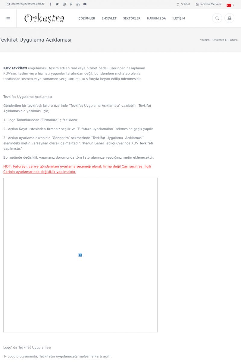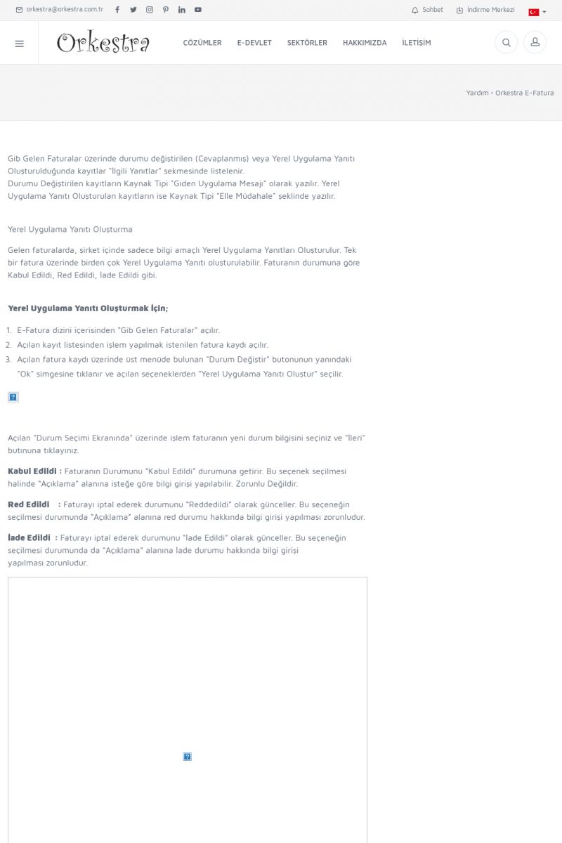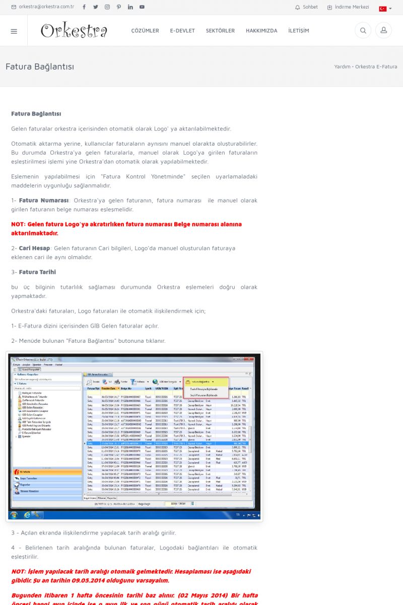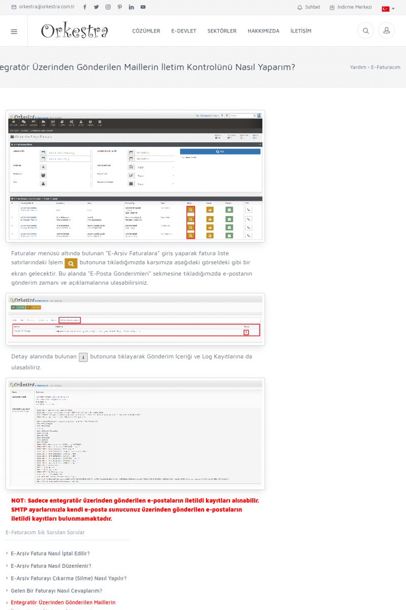 | 89 |  | Orkestra E-FaturaAKILLI KART - ELEKTRONIK İMZA KURULUMU Detay İçin Tıklayınız [/index.php?sayfa=yardim&m=20&y=711] LOGO REGISTER Detay İçin Tıklayınız [/index.php?sayfa=yardim&m=20&y=716] ORKESTRA E-FATURA KURULUM Detay İçin Tıklayınız [/index.php?sayfa=yardim&m=20&y=717] ORKESTRA / TERCIHLER Detay İçin Tıklayınız [/index. KISA ERİŞİM KODU : XYDLS / ARA89 | |