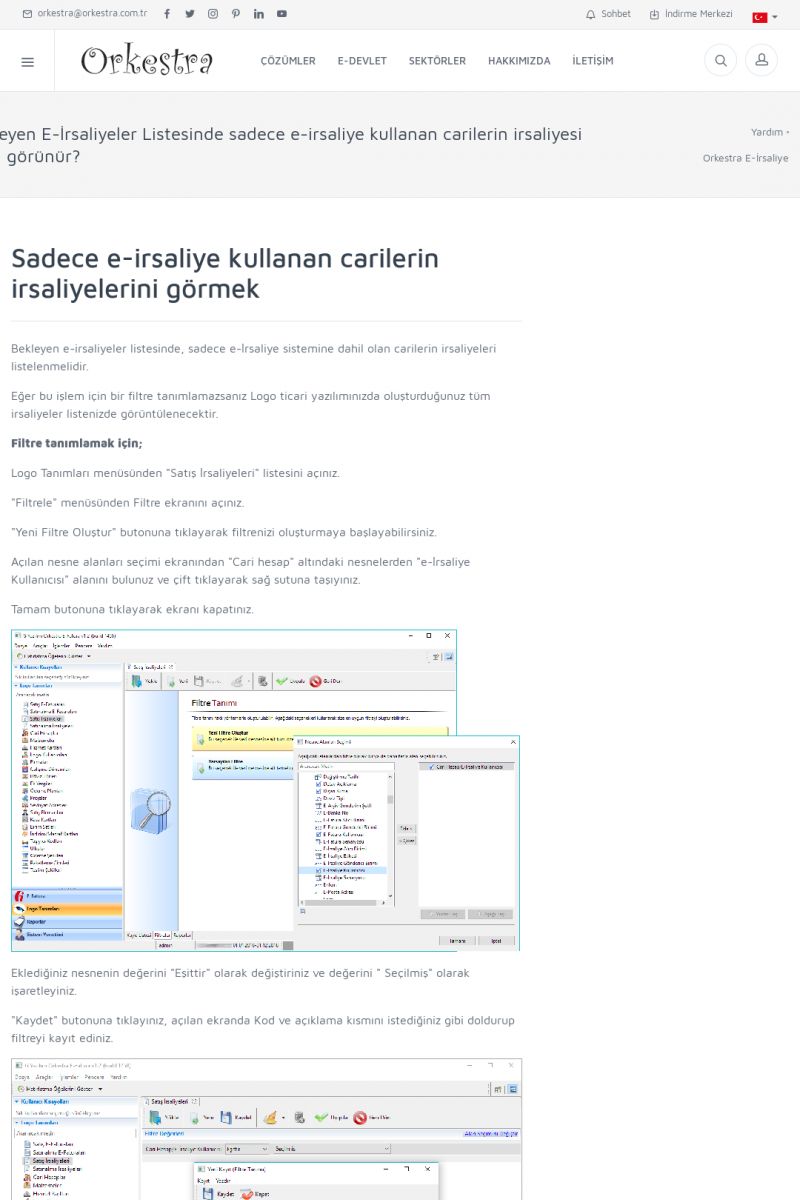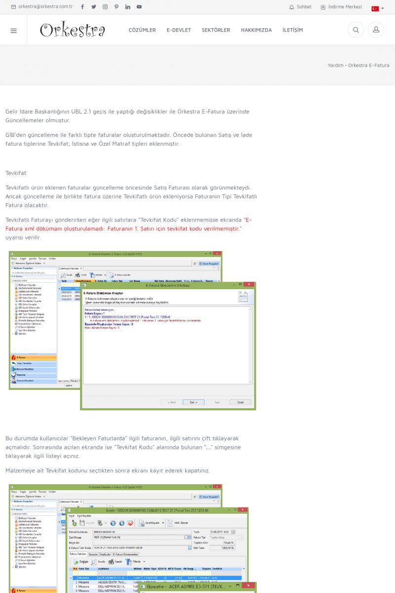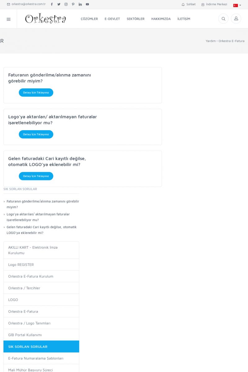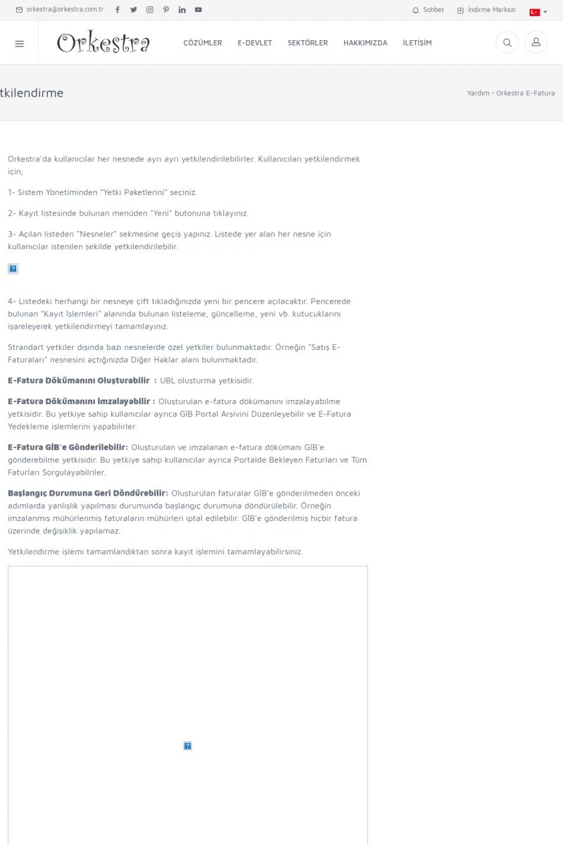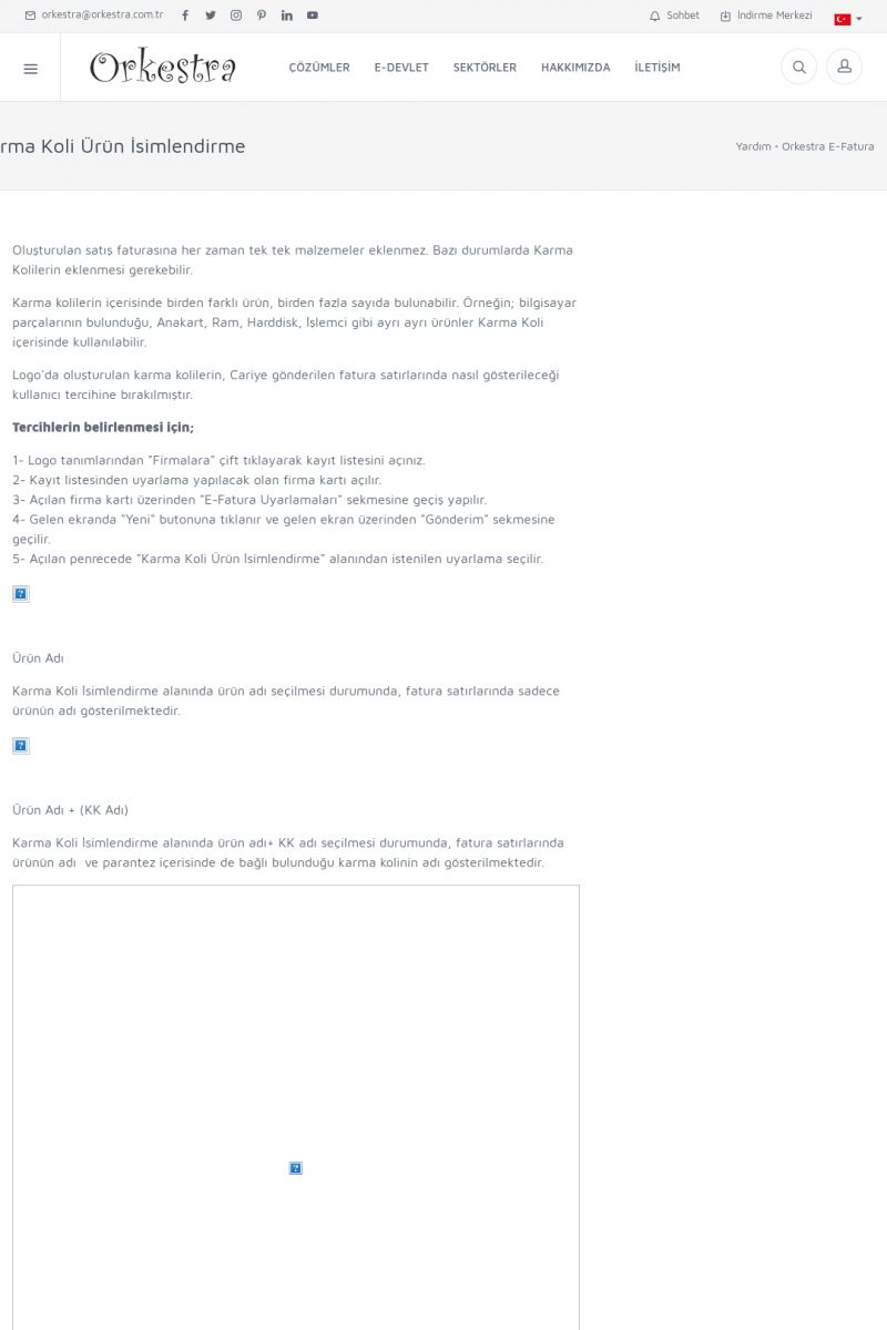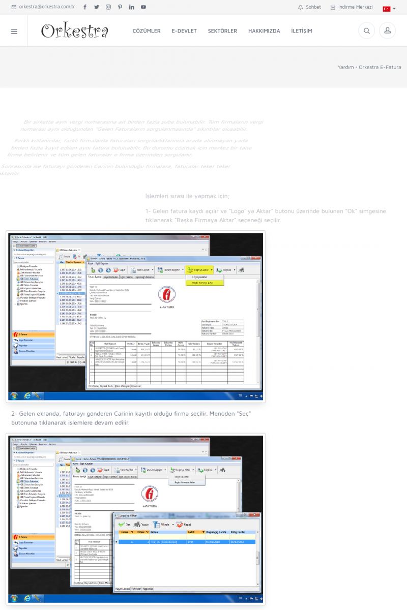 | 89 |  | Orkestra E-FaturaAKILLI KART - ELEKTRONIK İMZA KURULUMU Detay İçin Tıklayınız [/index.php?sayfa=yardim&m=20&y=711] LOGO REGISTER Detay İçin Tıklayınız [/index.php?sayfa=yardim&m=20&y=716] ORKESTRA E-FATURA KURULUM Detay İçin Tıklayınız [/index.php?sayfa=yardim&m=20&y=717] ORKESTRA / TERCIHLER Detay İçin Tıklayınız [/index. KISA ERİŞİM KODU : XYDLS / ARA89 | |