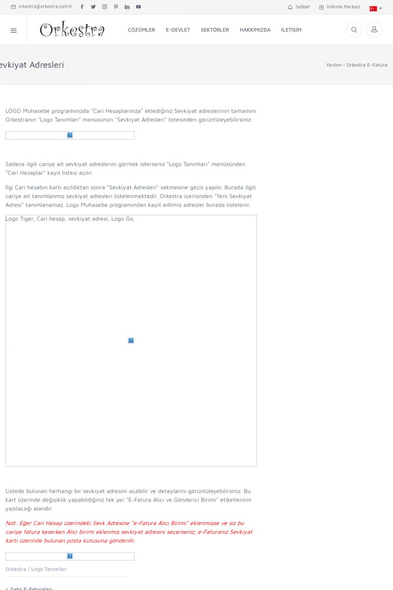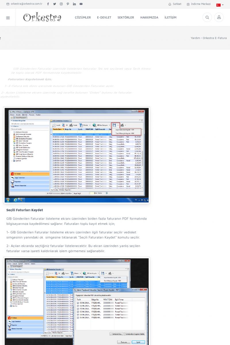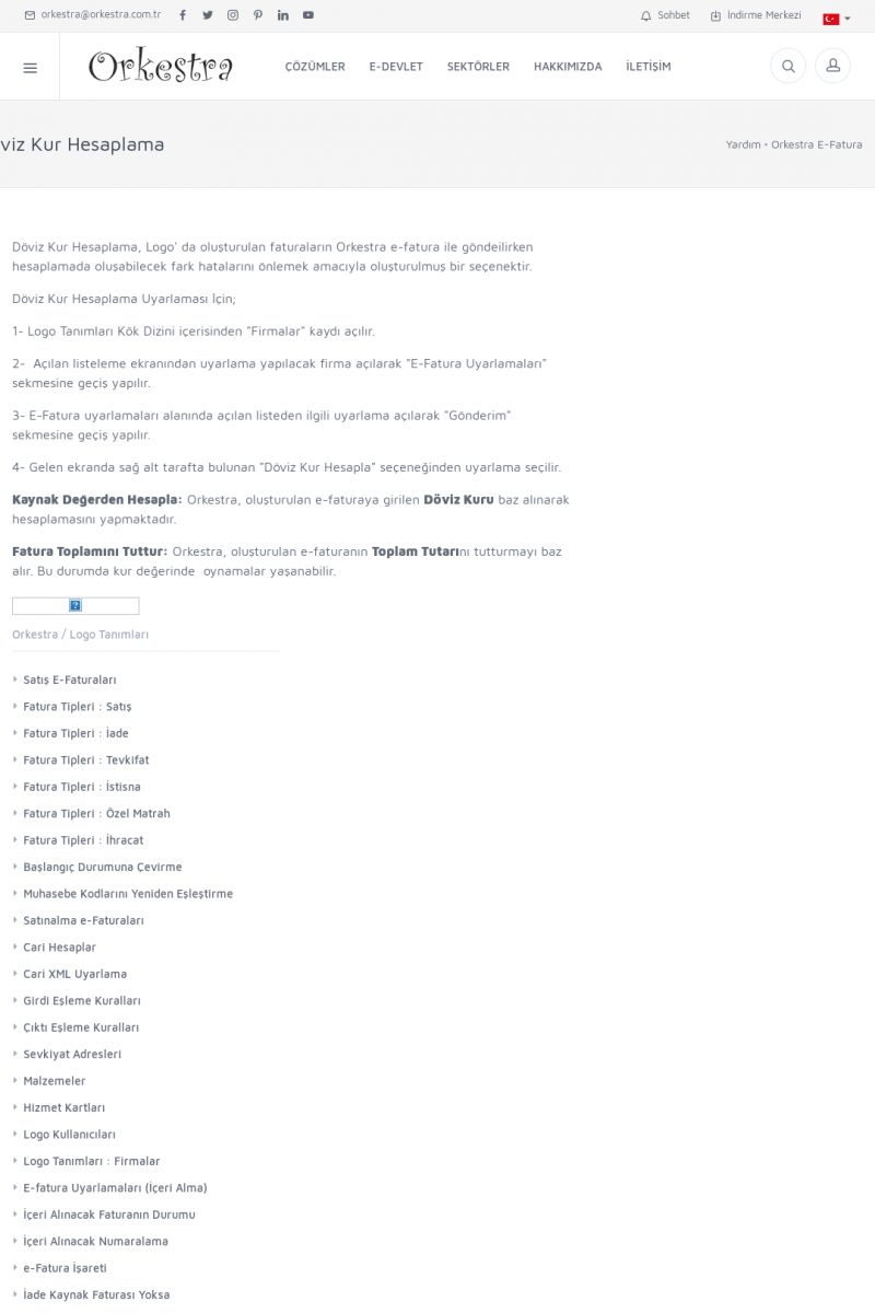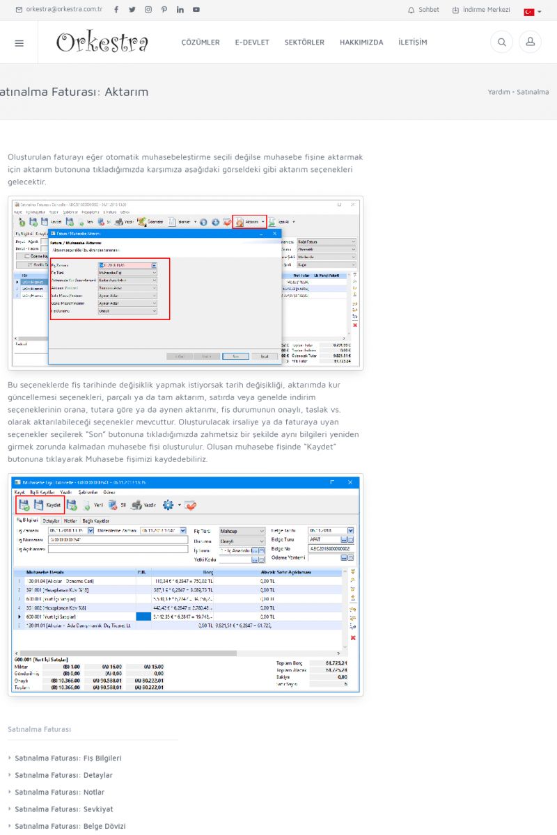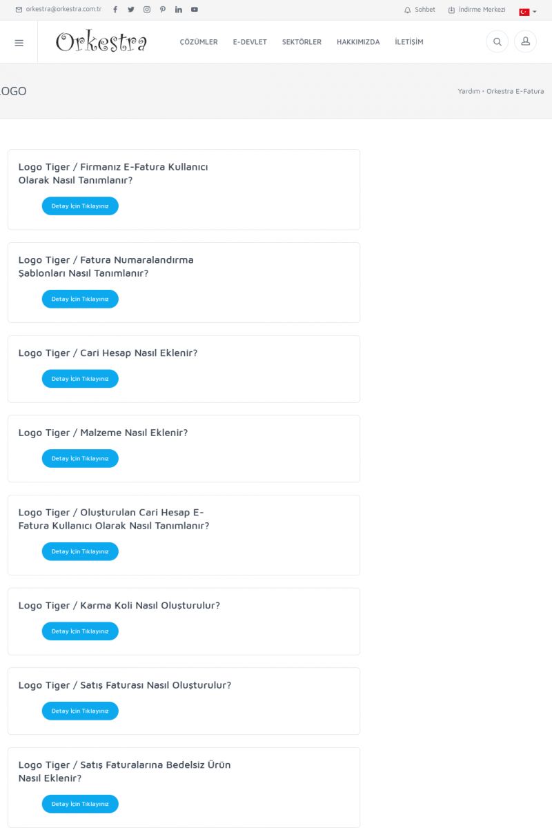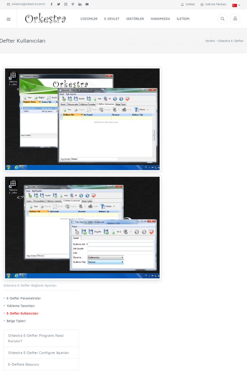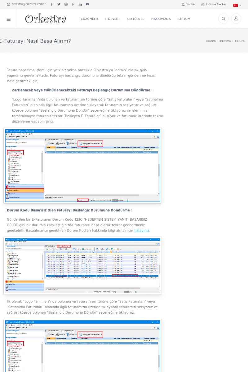 | 89 |  | Orkestra E-FaturaAKILLI KART - ELEKTRONIK İMZA KURULUMU Detay İçin Tıklayınız [/index.php?sayfa=yardim&m=20&y=711] LOGO REGISTER Detay İçin Tıklayınız [/index.php?sayfa=yardim&m=20&y=716] ORKESTRA E-FATURA KURULUM Detay İçin Tıklayınız [/index.php?sayfa=yardim&m=20&y=717] ORKESTRA / TERCIHLER Detay İçin Tıklayınız [/index. KISA ERİŞİM KODU : XYDLS / ARA89 | |