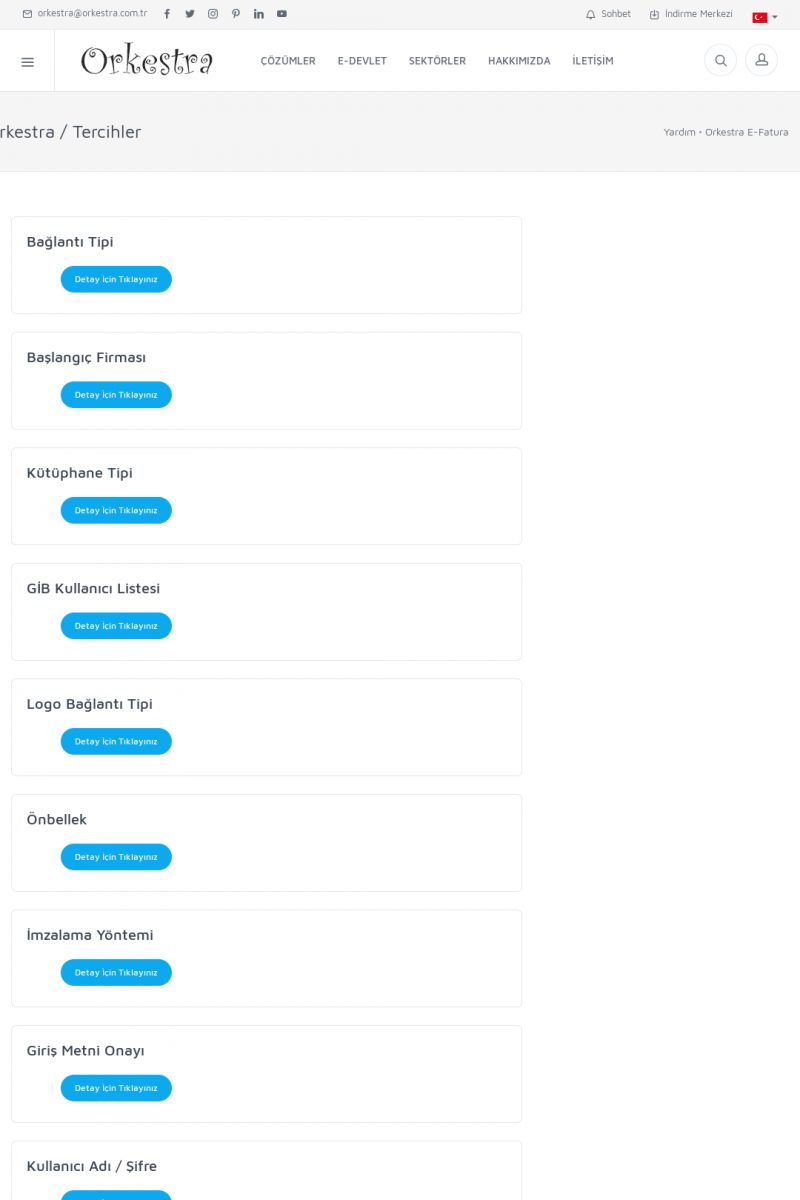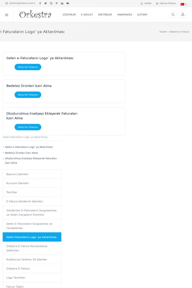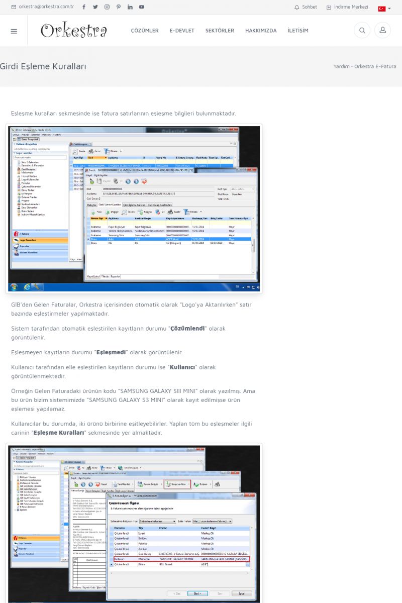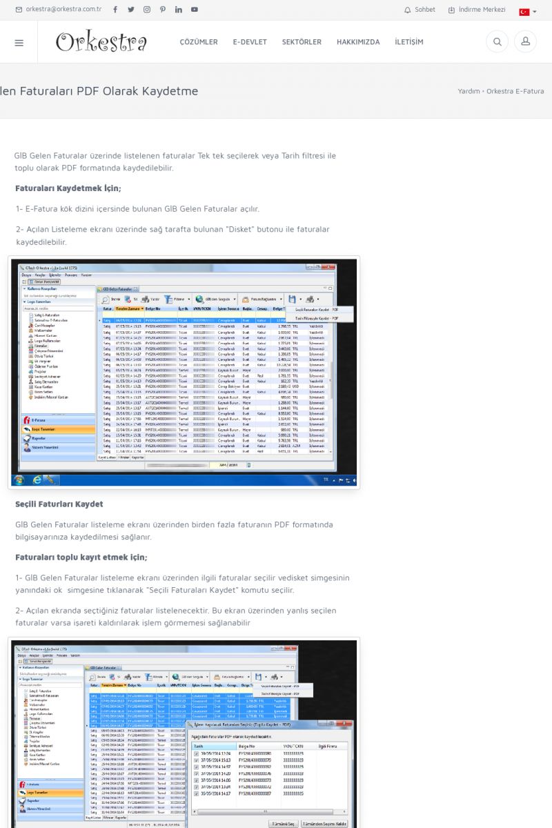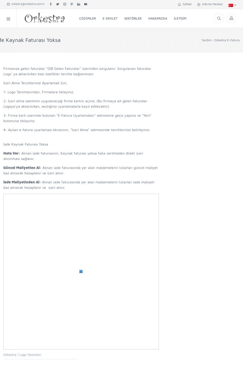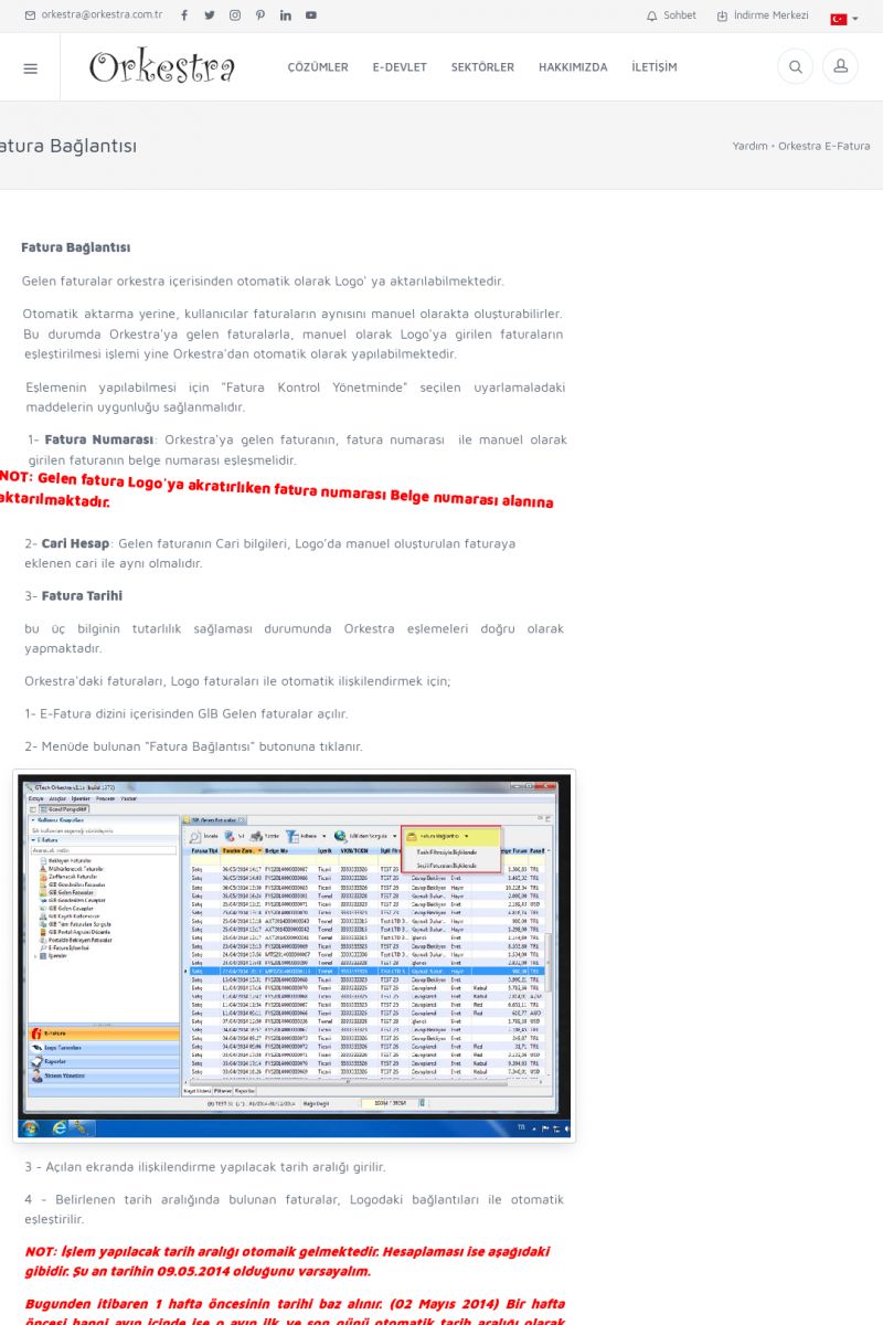 | 89 |  | Orkestra E-FaturaAKILLI KART - ELEKTRONIK İMZA KURULUMU Detay İçin Tıklayınız [/index.php?sayfa=yardim&m=20&y=711] LOGO REGISTER Detay İçin Tıklayınız [/index.php?sayfa=yardim&m=20&y=716] ORKESTRA E-FATURA KURULUM Detay İçin Tıklayınız [/index.php?sayfa=yardim&m=20&y=717] ORKESTRA / TERCIHLER Detay İçin Tıklayınız [/index. KISA ERİŞİM KODU : XYDLS / ARA89 | |
