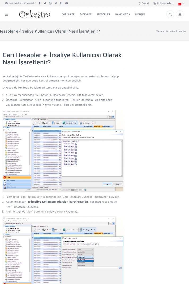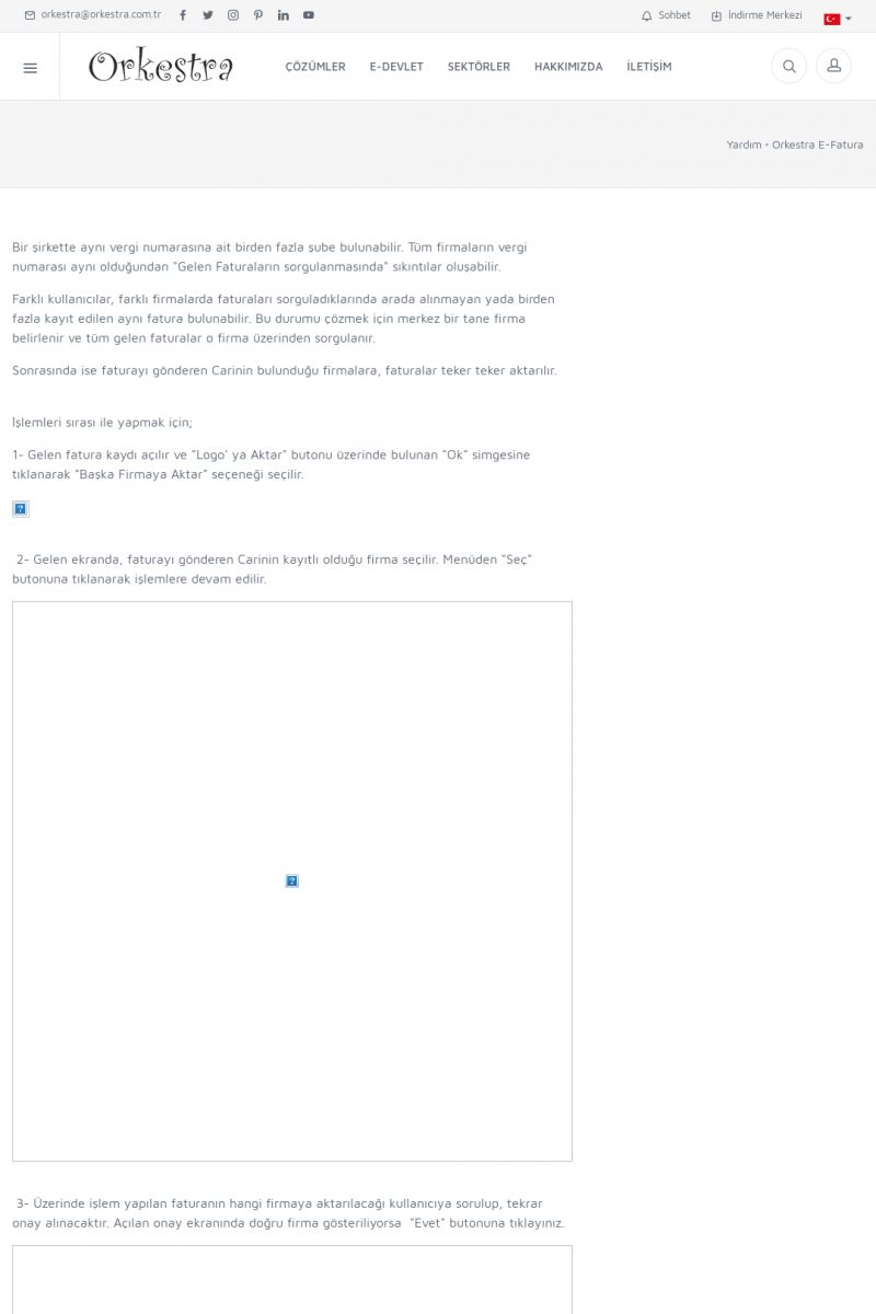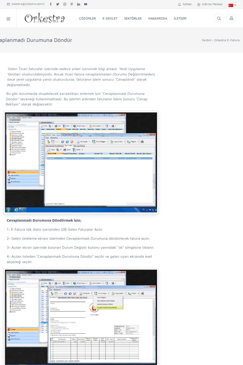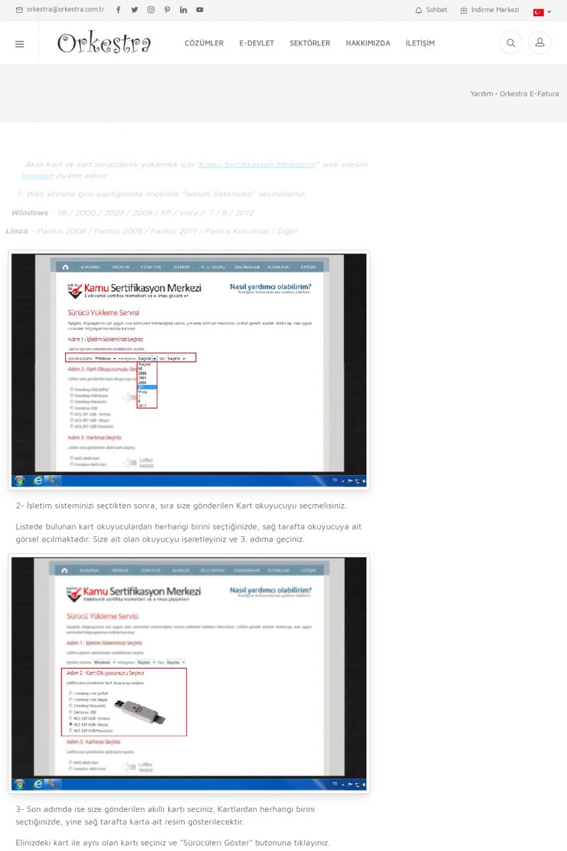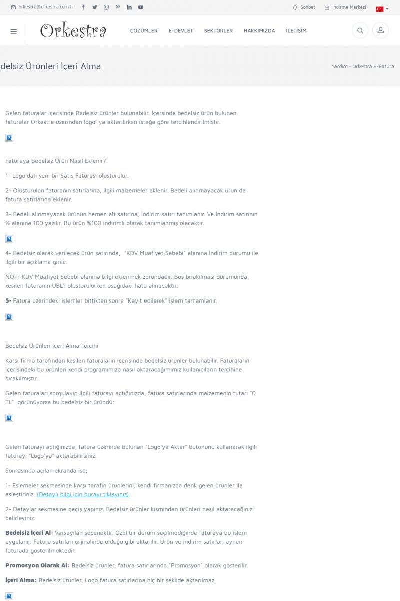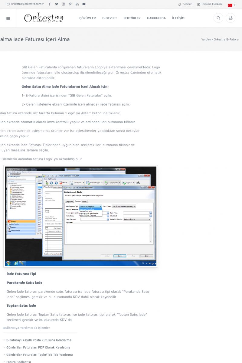 | 89 |  | Orkestra E-FaturaAKILLI KART - ELEKTRONIK İMZA KURULUMU Detay İçin Tıklayınız [/index.php?sayfa=yardim&m=20&y=711] LOGO REGISTER Detay İçin Tıklayınız [/index.php?sayfa=yardim&m=20&y=716] ORKESTRA E-FATURA KURULUM Detay İçin Tıklayınız [/index.php?sayfa=yardim&m=20&y=717] ORKESTRA / TERCIHLER Detay İçin Tıklayınız [/index. KISA ERİŞİM KODU : XYDLS / ARA89 | |