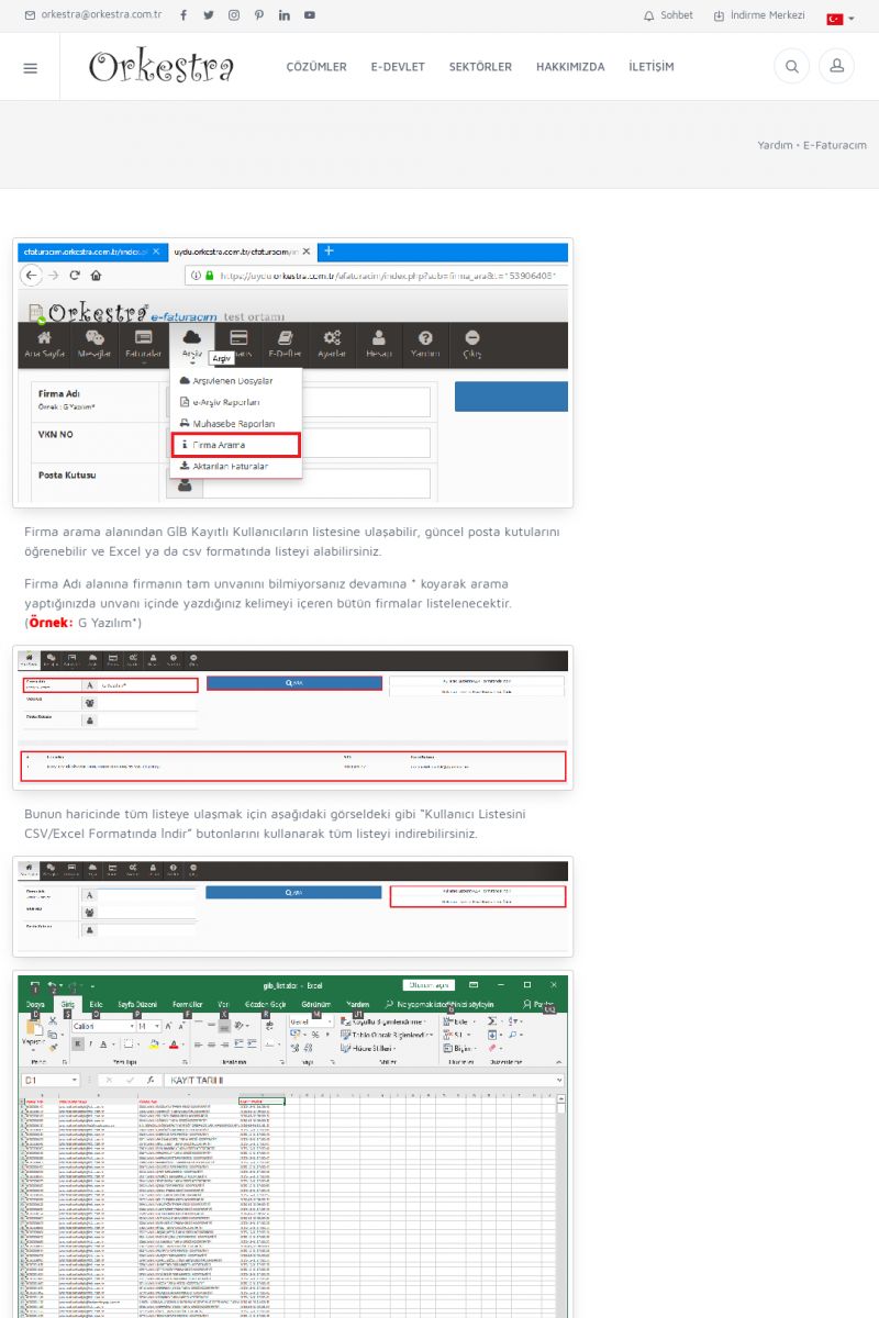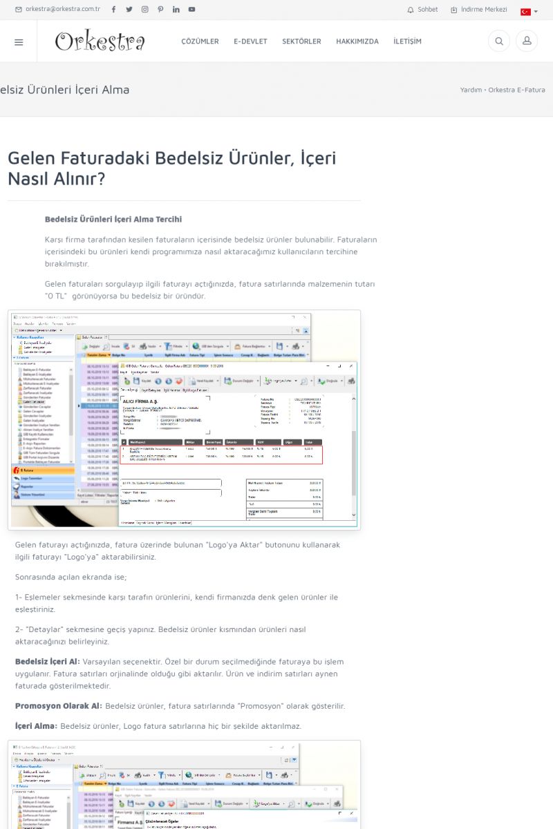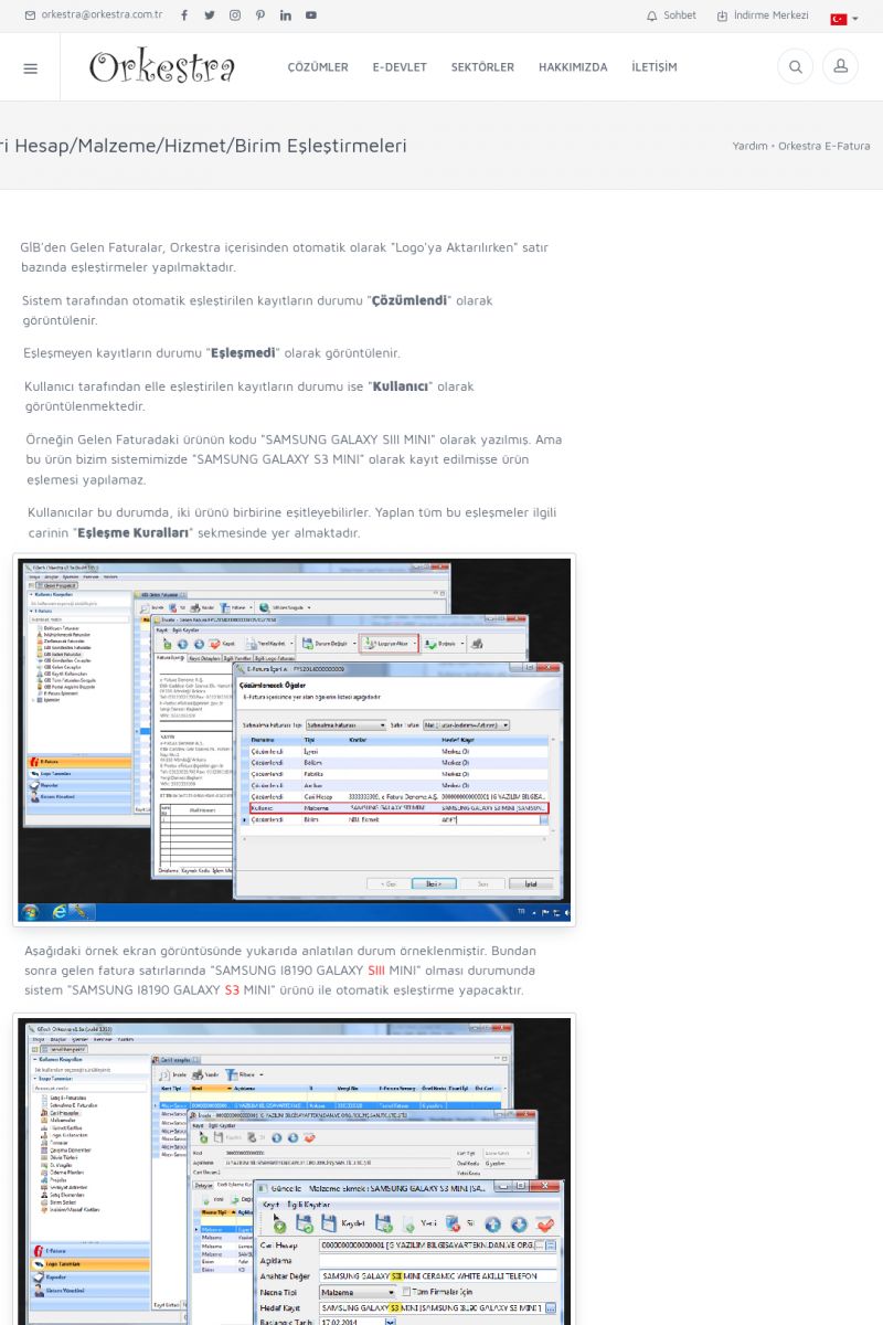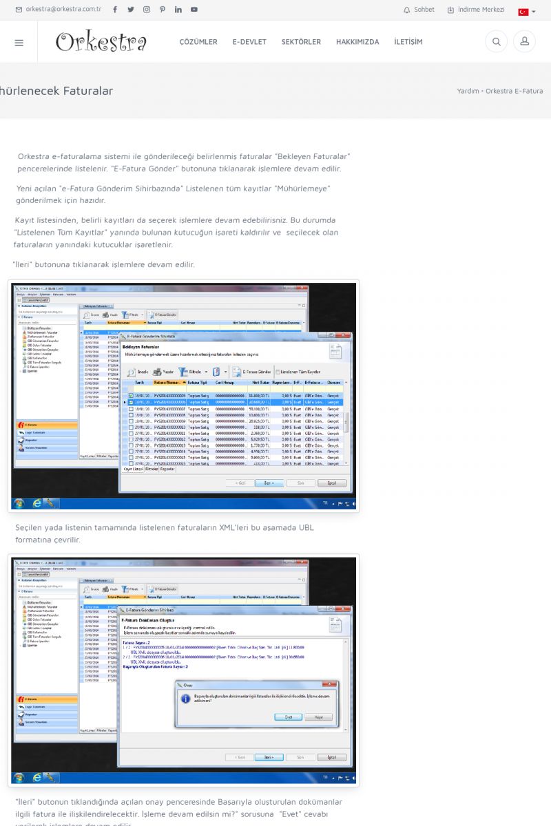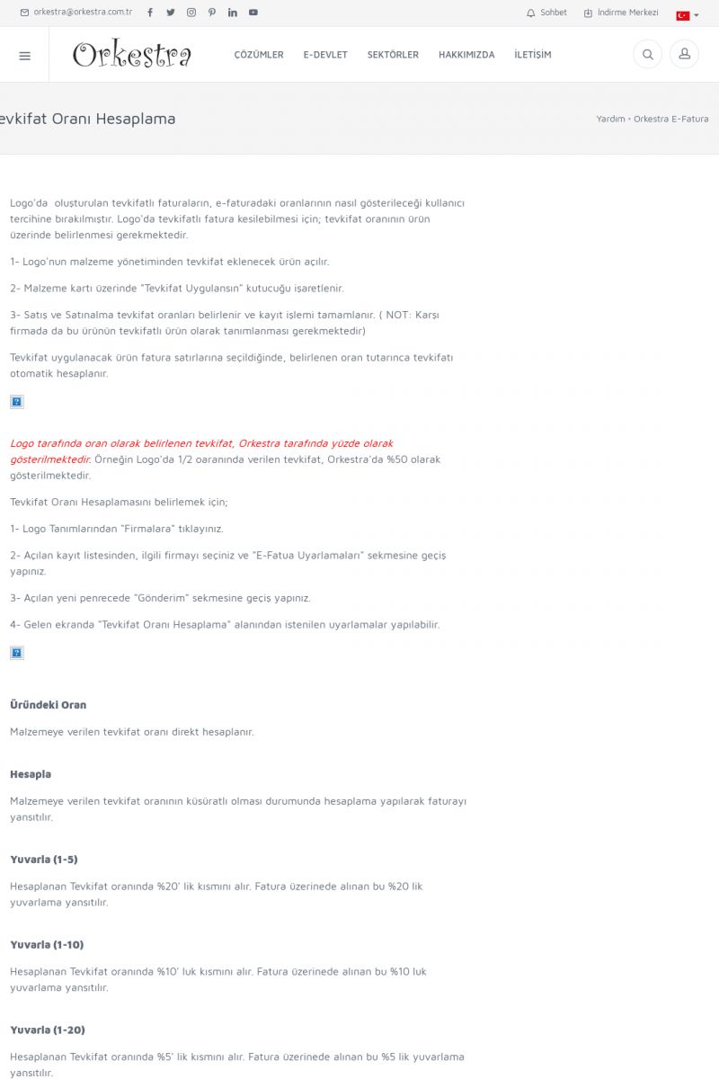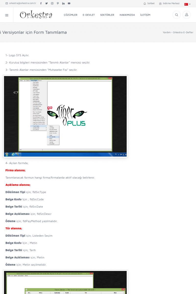 | 89 |  | Orkestra E-FaturaAKILLI KART - ELEKTRONIK İMZA KURULUMU Detay İçin Tıklayınız [/index.php?sayfa=yardim&m=20&y=711] LOGO REGISTER Detay İçin Tıklayınız [/index.php?sayfa=yardim&m=20&y=716] ORKESTRA E-FATURA KURULUM Detay İçin Tıklayınız [/index.php?sayfa=yardim&m=20&y=717] ORKESTRA / TERCIHLER Detay İçin Tıklayınız [/index. KISA ERİŞİM KODU : XYDLS / ARA89 | |