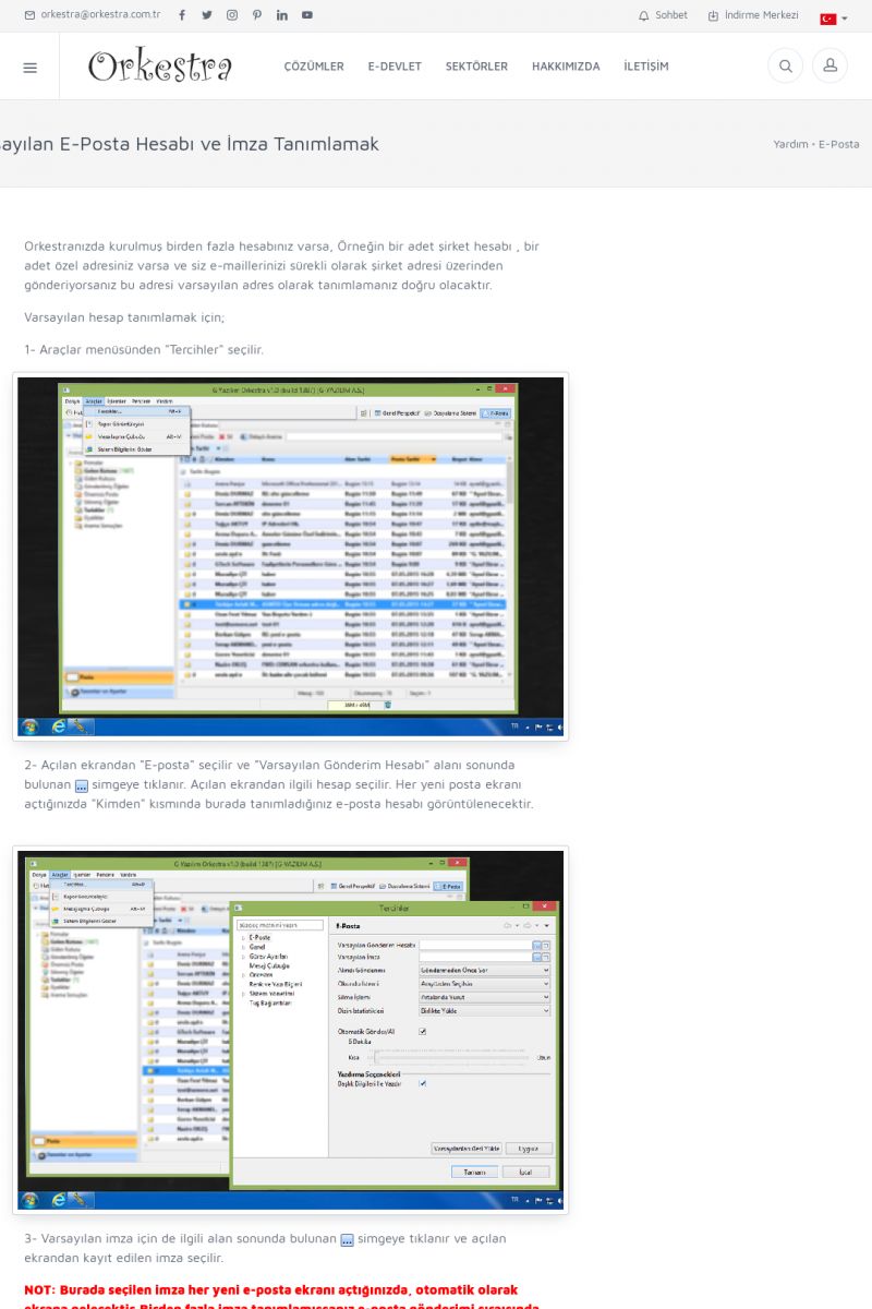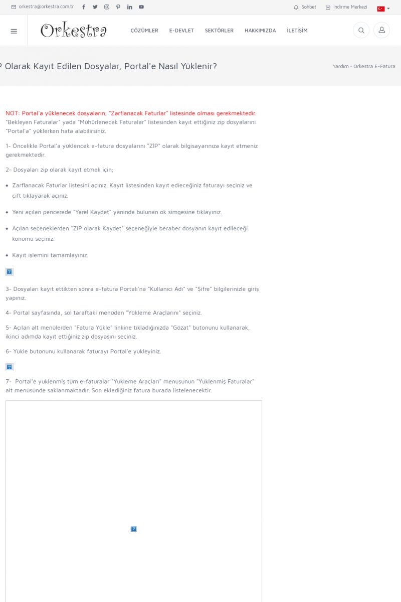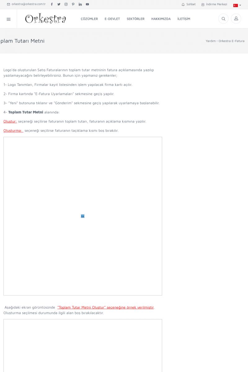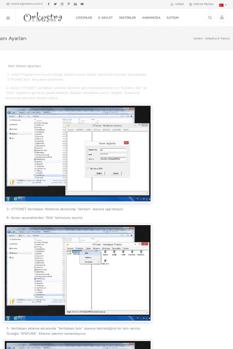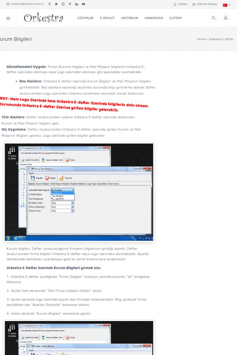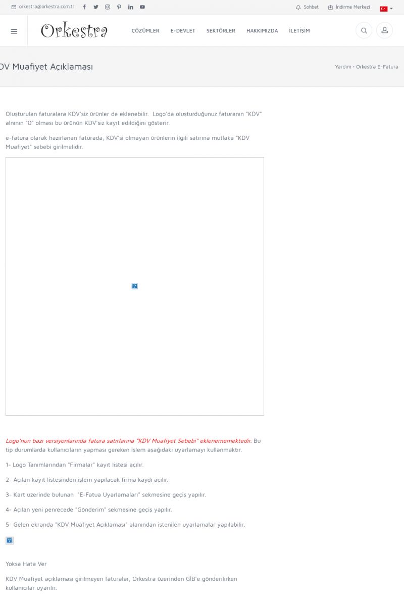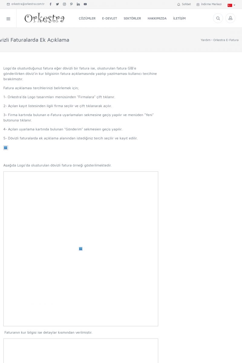 | 89 |  | Orkestra E-FaturaAKILLI KART - ELEKTRONIK İMZA KURULUMU Detay İçin Tıklayınız [/index.php?sayfa=yardim&m=20&y=711] LOGO REGISTER Detay İçin Tıklayınız [/index.php?sayfa=yardim&m=20&y=716] ORKESTRA E-FATURA KURULUM Detay İçin Tıklayınız [/index.php?sayfa=yardim&m=20&y=717] ORKESTRA / TERCIHLER Detay İçin Tıklayınız [/index. KISA ERİŞİM KODU : XYDLS / ARA89 | |