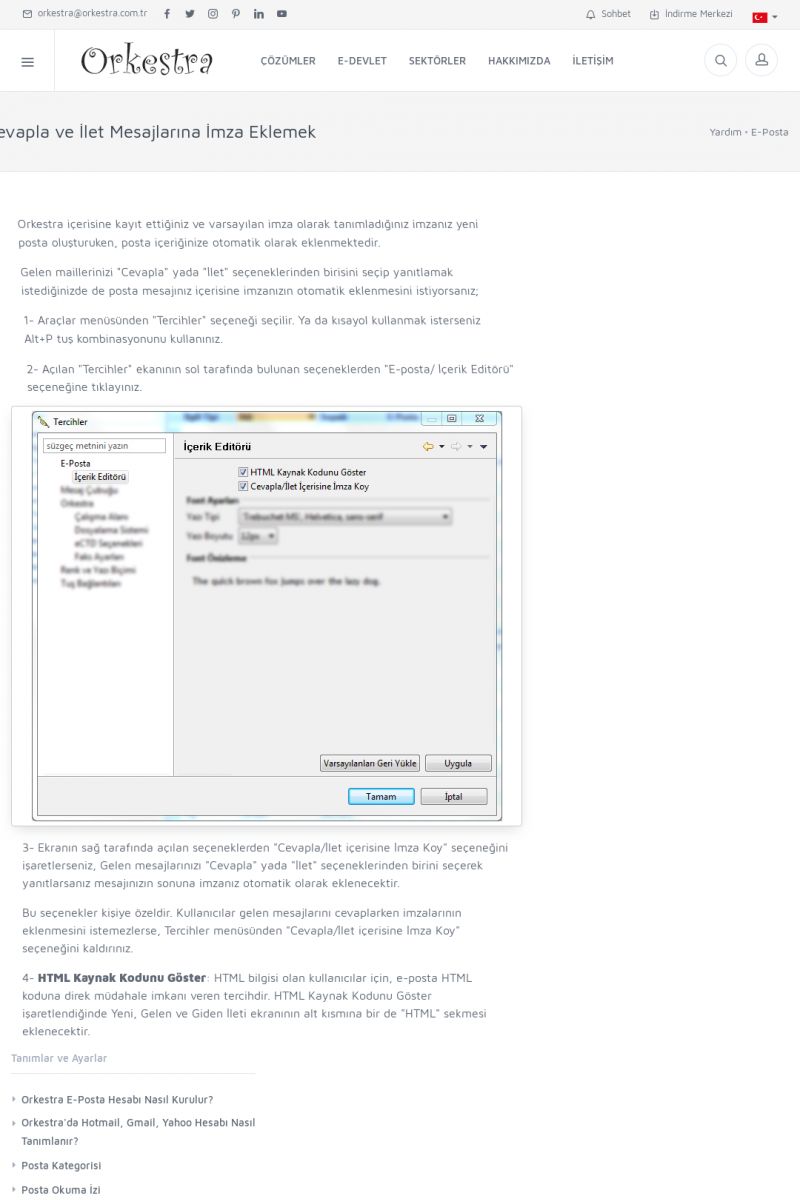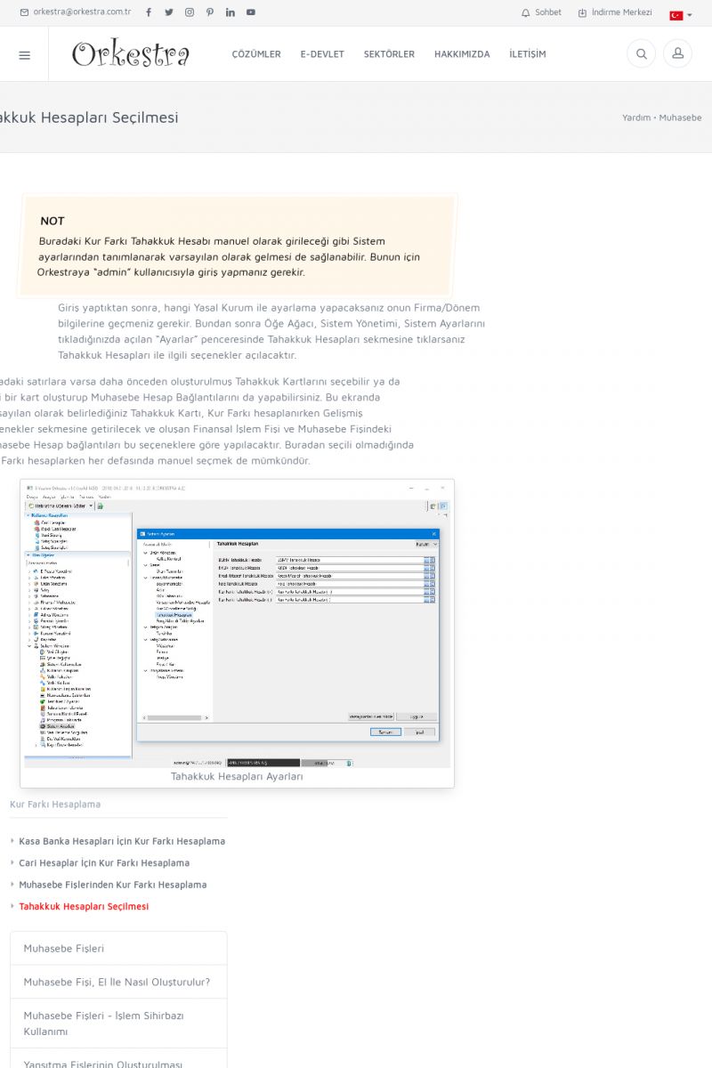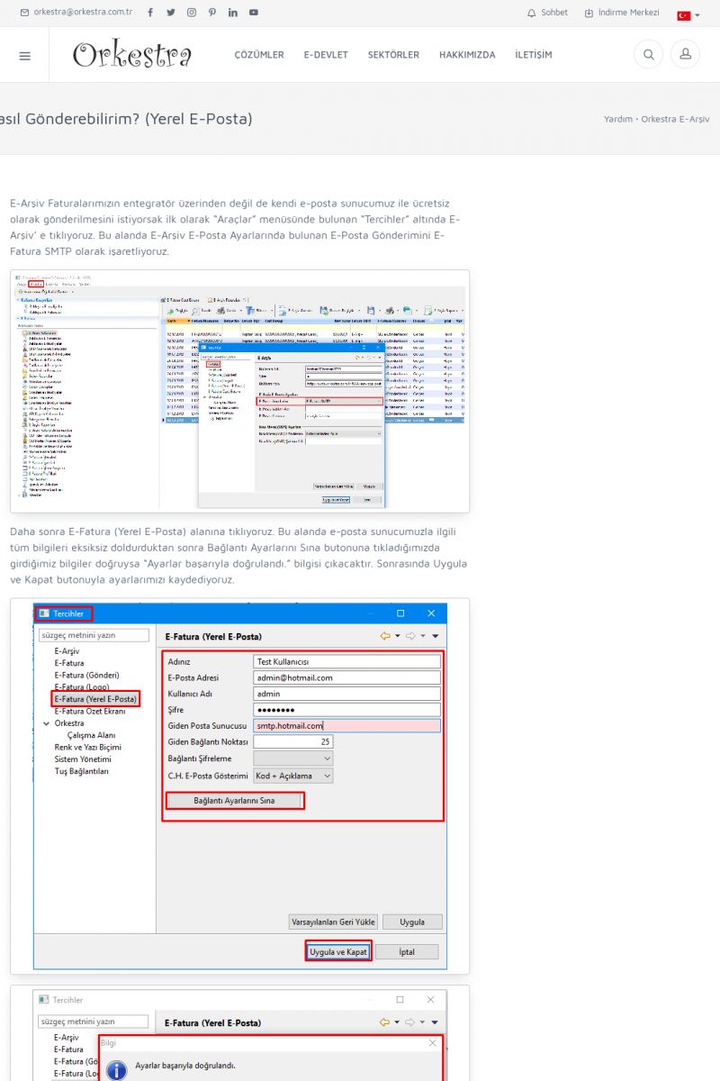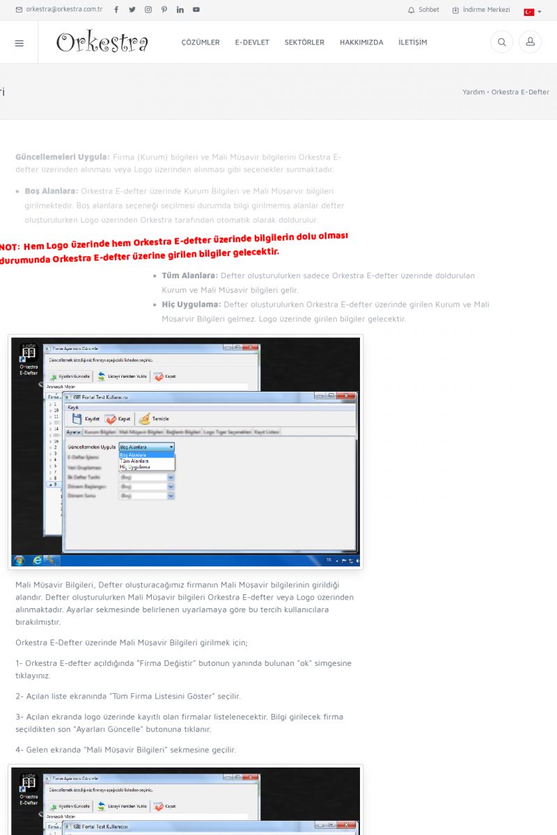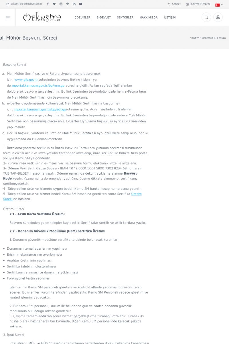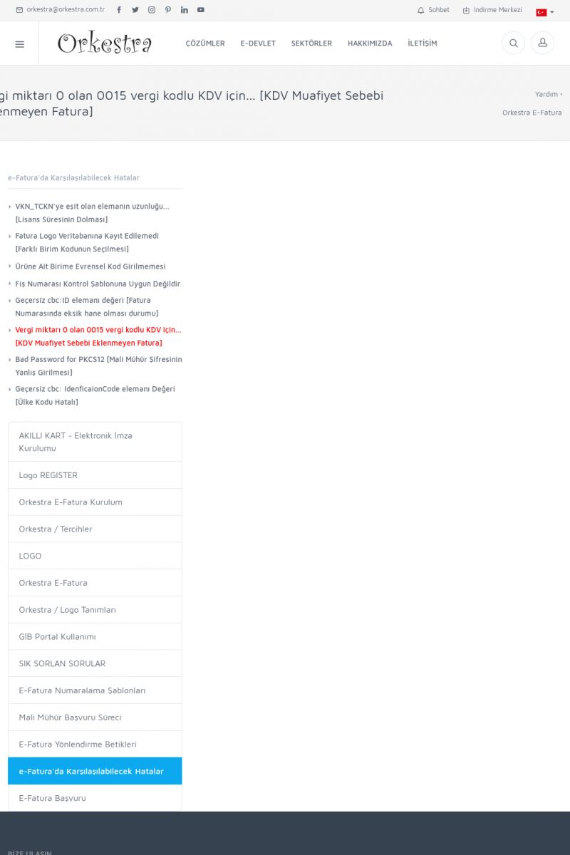 | 89 |  | Orkestra E-FaturaAKILLI KART - ELEKTRONIK İMZA KURULUMU Detay İçin Tıklayınız [/index.php?sayfa=yardim&m=20&y=711] LOGO REGISTER Detay İçin Tıklayınız [/index.php?sayfa=yardim&m=20&y=716] ORKESTRA E-FATURA KURULUM Detay İçin Tıklayınız [/index.php?sayfa=yardim&m=20&y=717] ORKESTRA / TERCIHLER Detay İçin Tıklayınız [/index. KISA ERİŞİM KODU : XYDLS / ARA89 | |