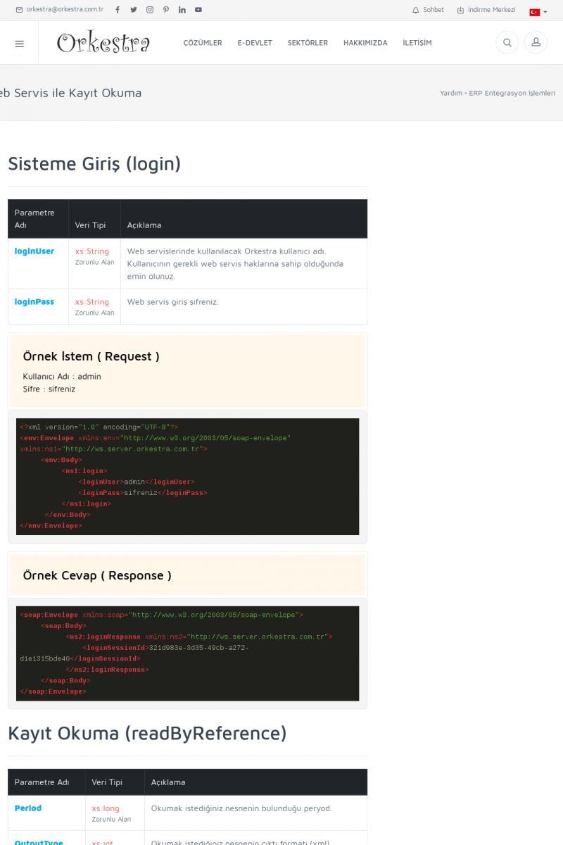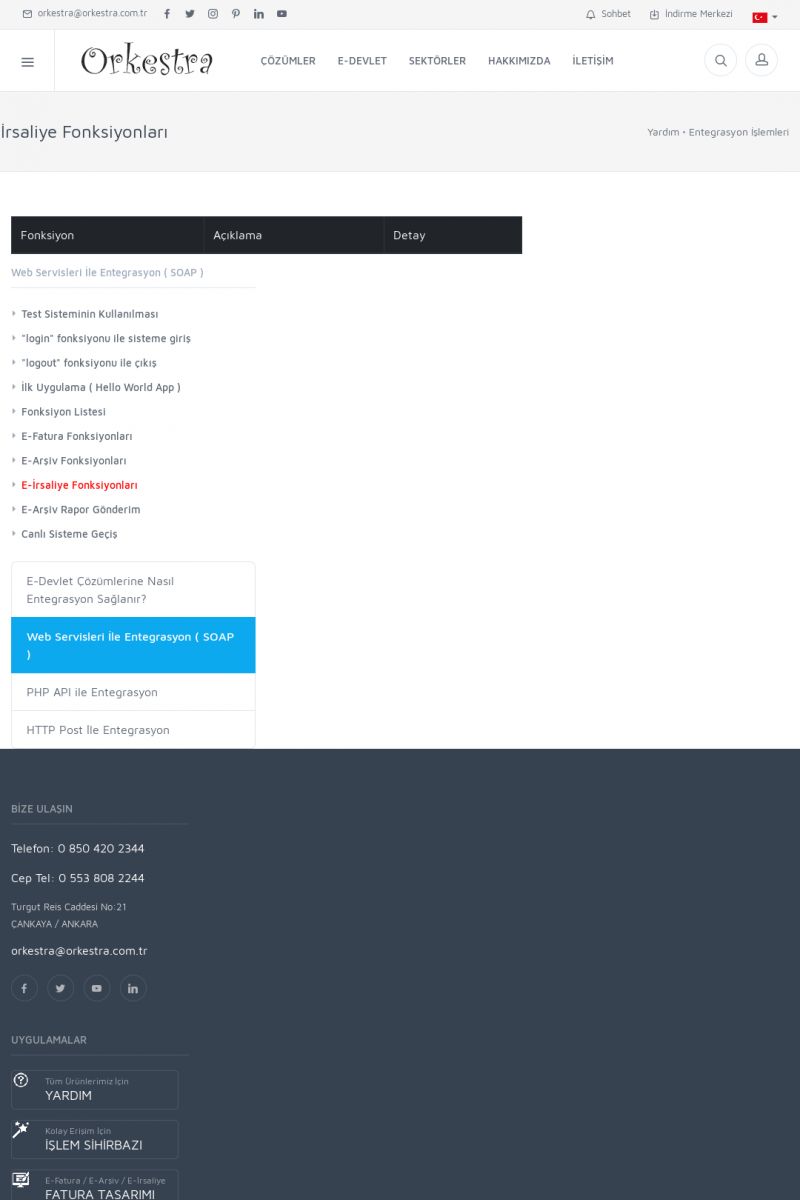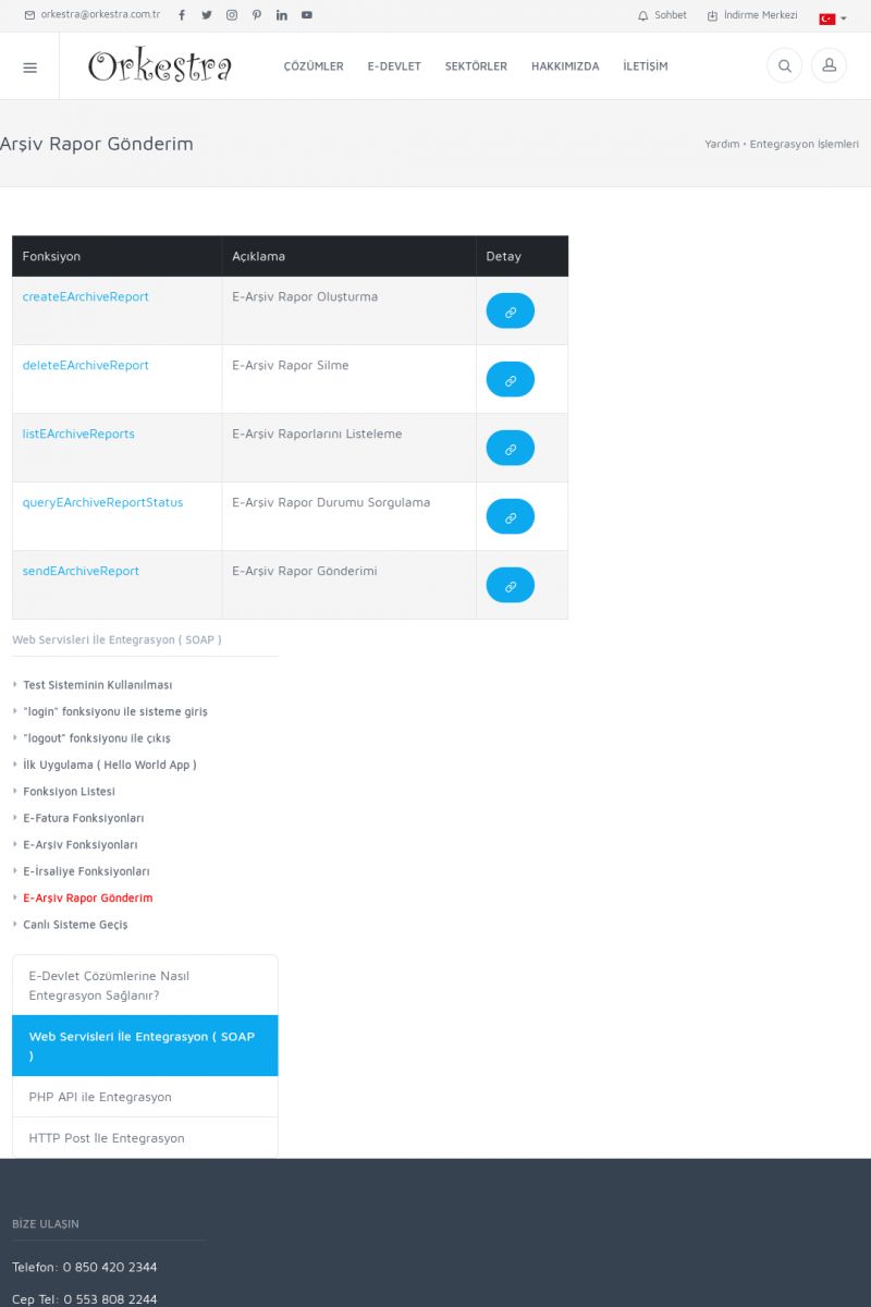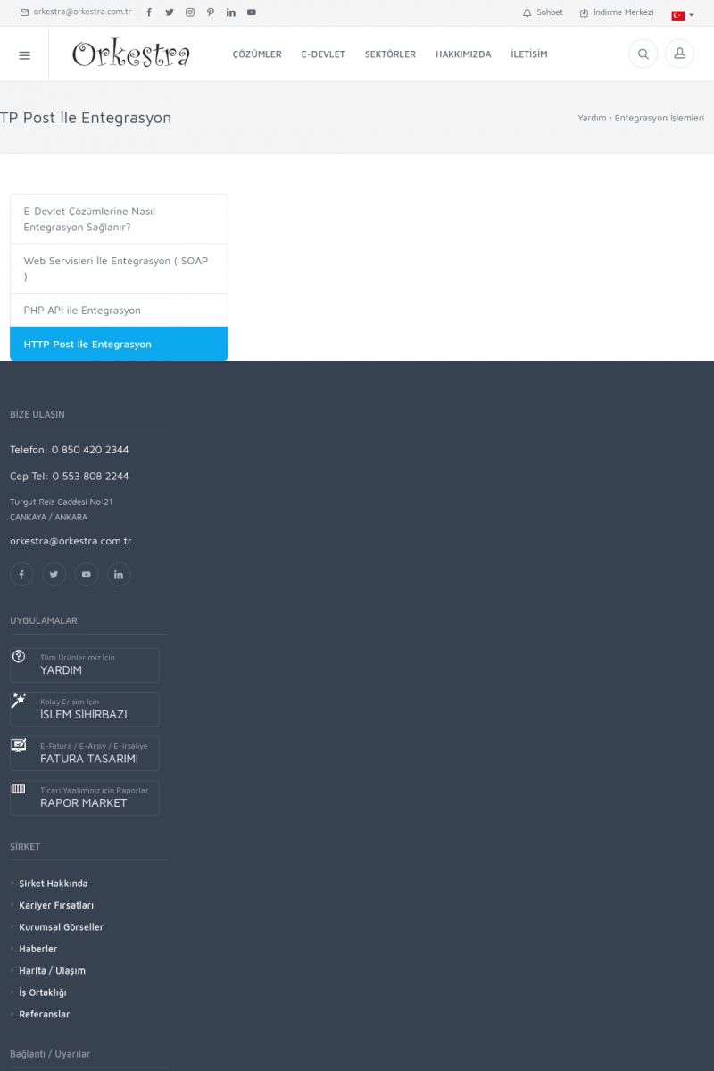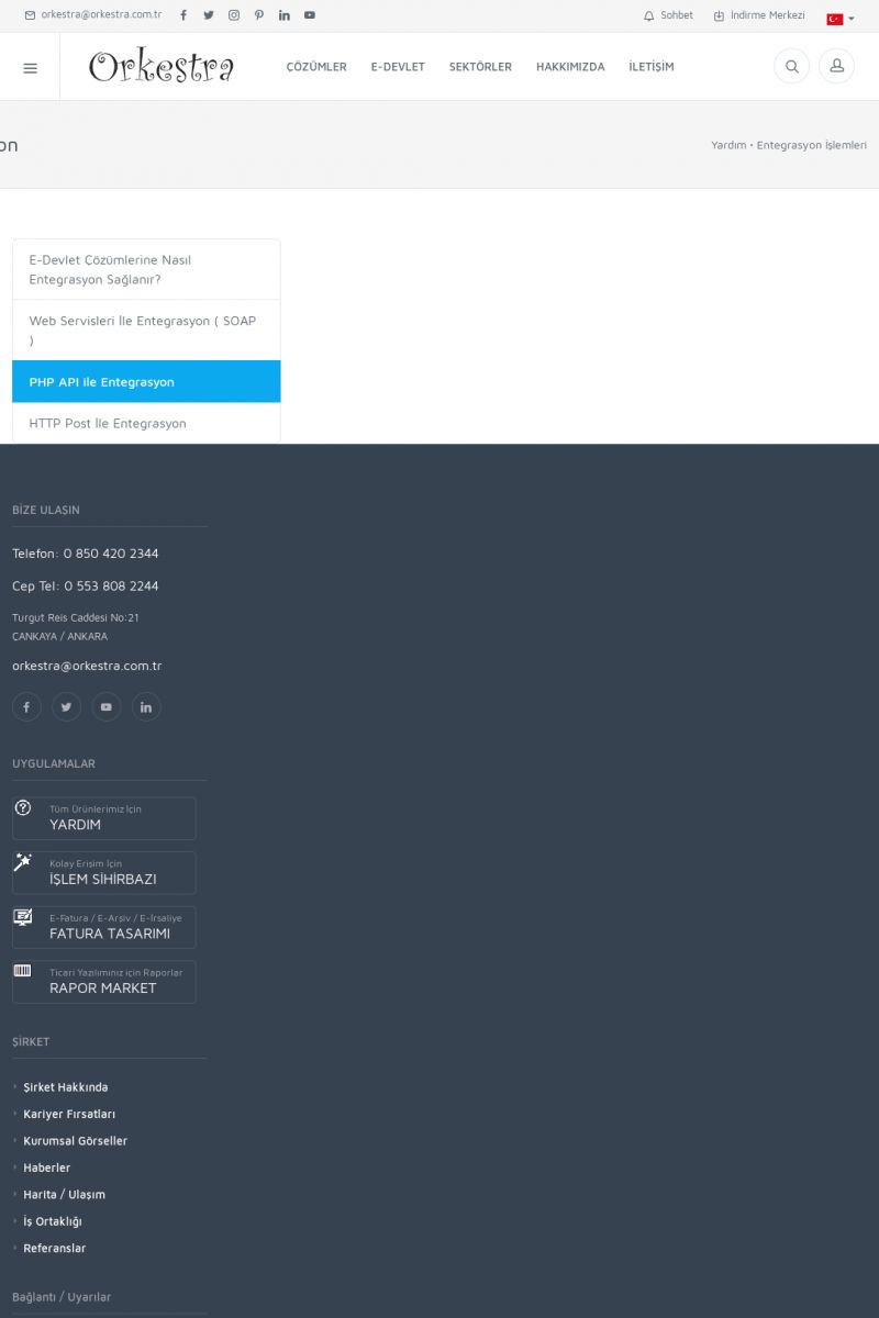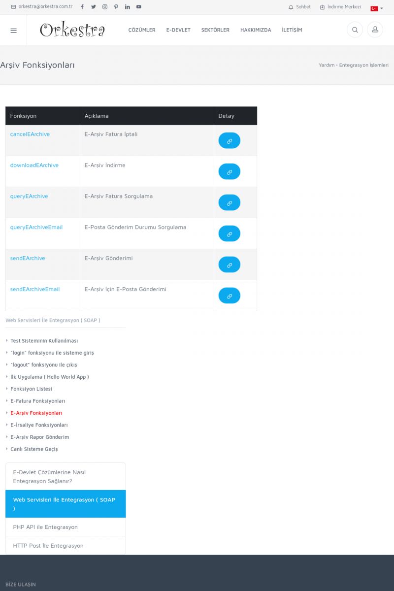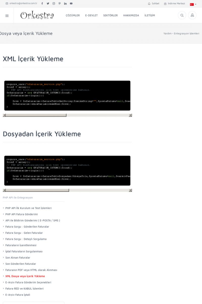 | 94 |  | Entegrasyon İşlemleriE-DEVLET ÇÖZÜMLERINE NASIL ENTEGRASYON SAĞLANIR? Orkestra E-faturacım (efaturacim.com) E-Devlet çözümlerine çeşitli teknolojiler ile entegrasyon sağlayabilirsiniz. Entegrasyon işlemlerinin detayı için lütfen bu sayfayı ziyaret ediniz. Detay İçin Tıklayınız [/index. KISA ERİŞİM KODU : XYDQO / ARA94 | |