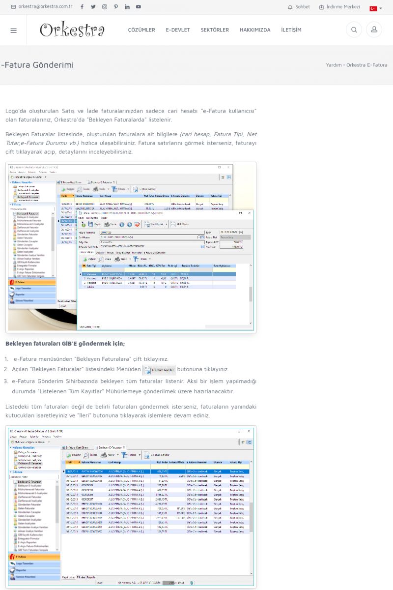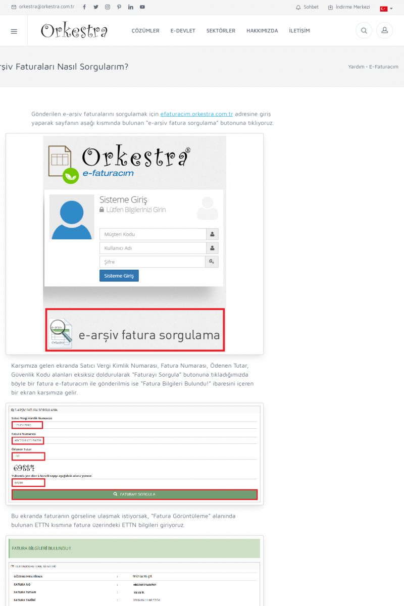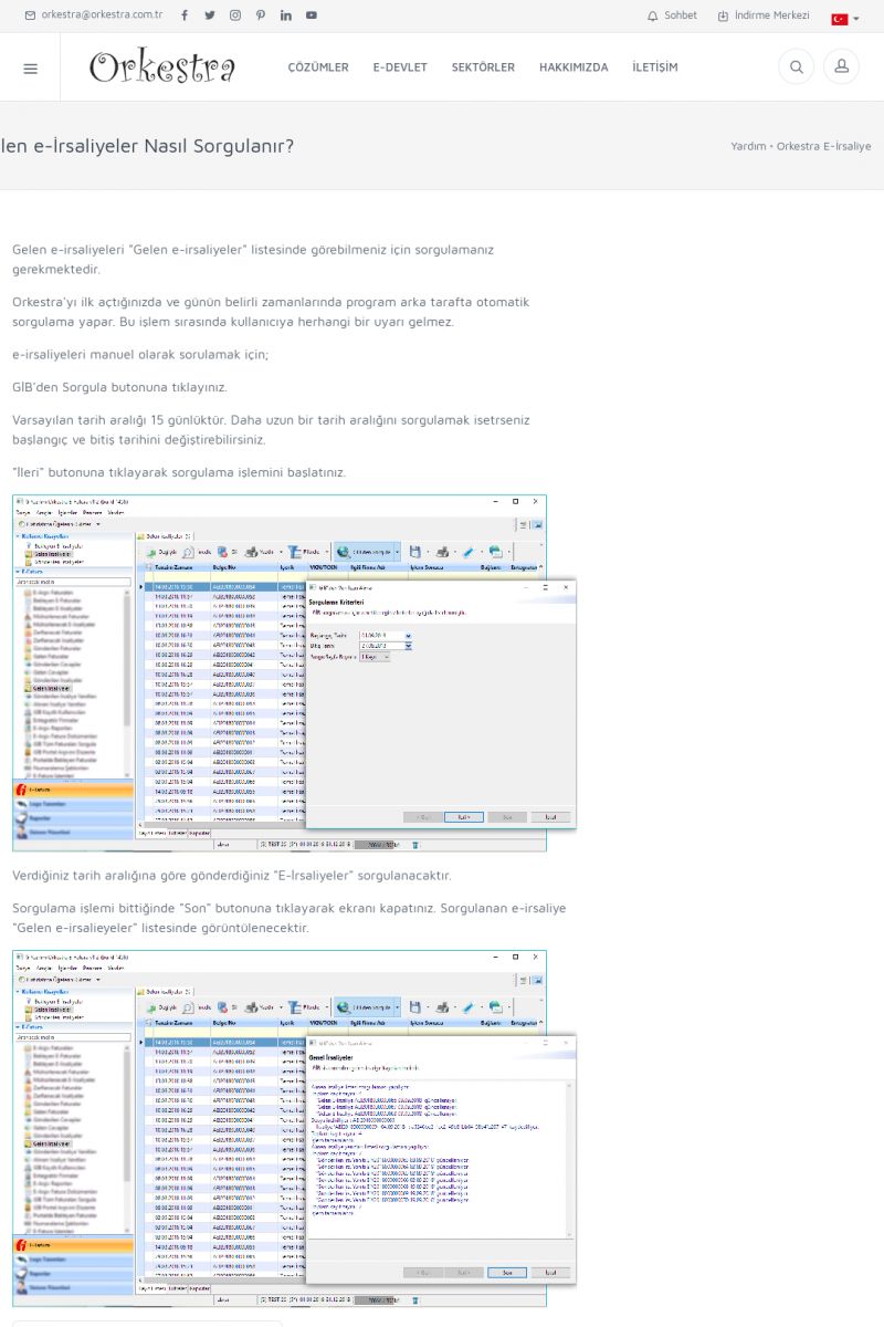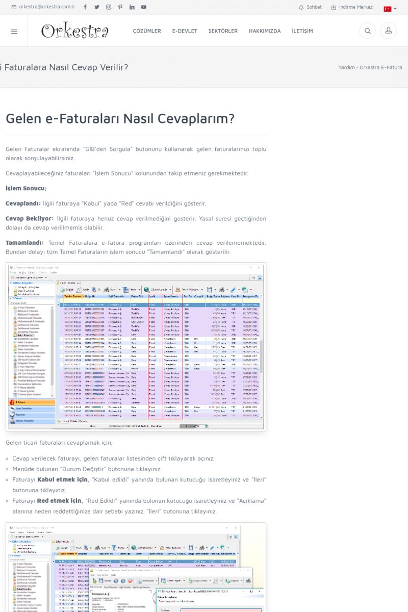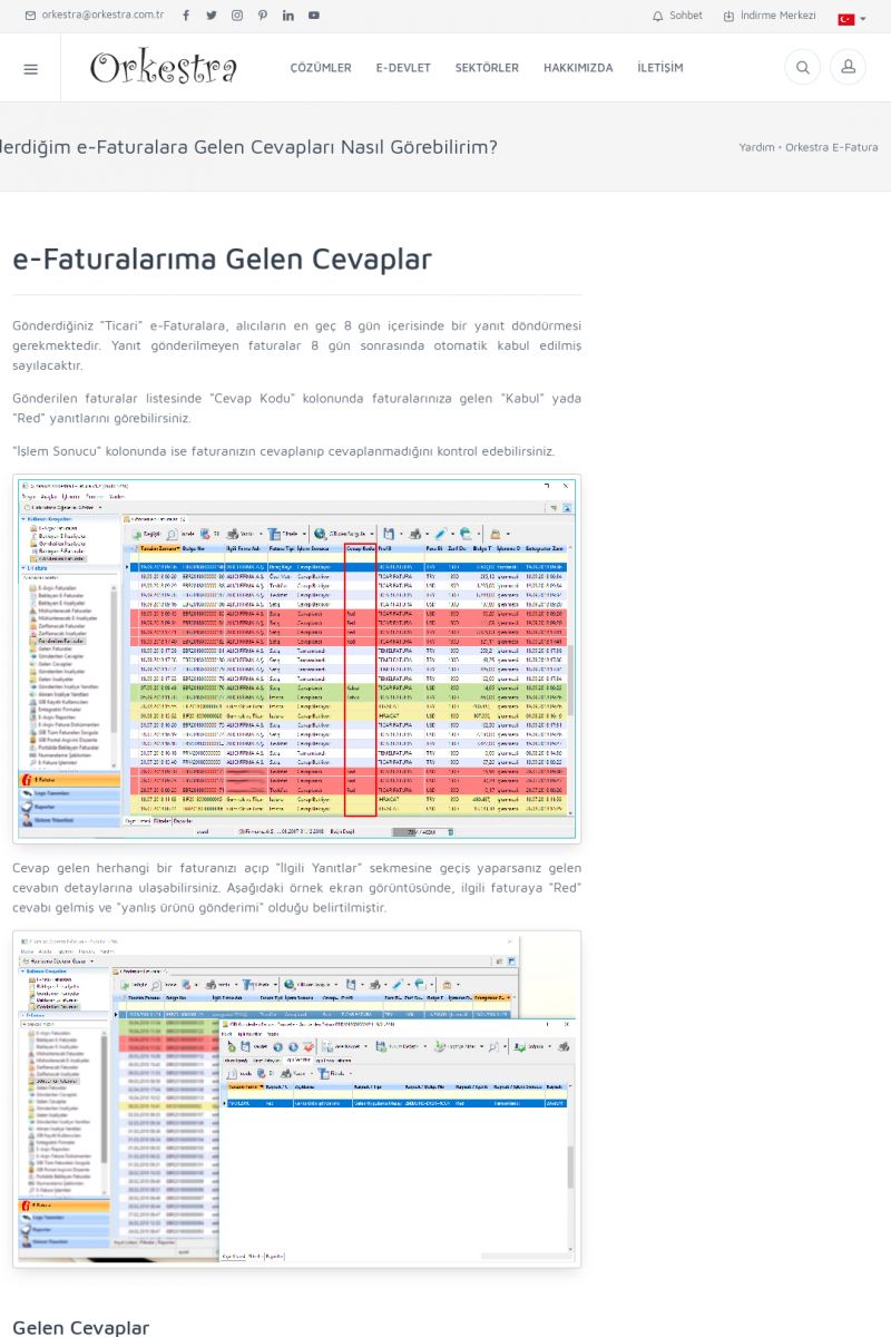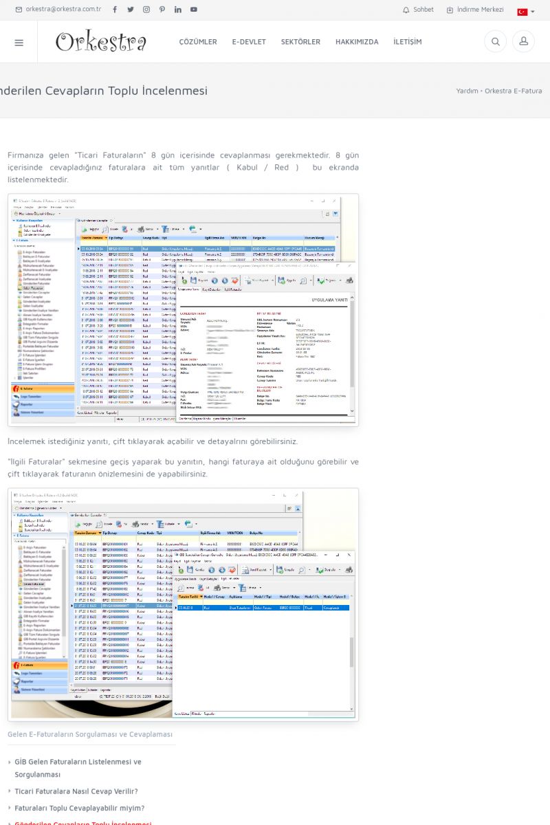 | 9 |  | Orkestra E-İrsaliye ORKESTRA E-İRSALIYE ------------------------- Sayfa içeriği hazırlanıyor ... E-DEVLET ÇÖZÜMLERİMİZ [E-FATURA] [/index.php?sayfa=edevlet&m=efatura] E-FATURA DETAY İÇİN TIKLAYIN [/index.php?sayfa=edevlet&m=efatura] [E-DEFTER] [/index.php?sayfa=edevlet&m=edefter] E-DEFTER DETAY İÇİN TIKLAYIN [/index. KISA ERİŞİM KODU : XYJK / ARA9 | |