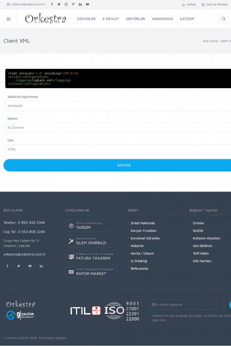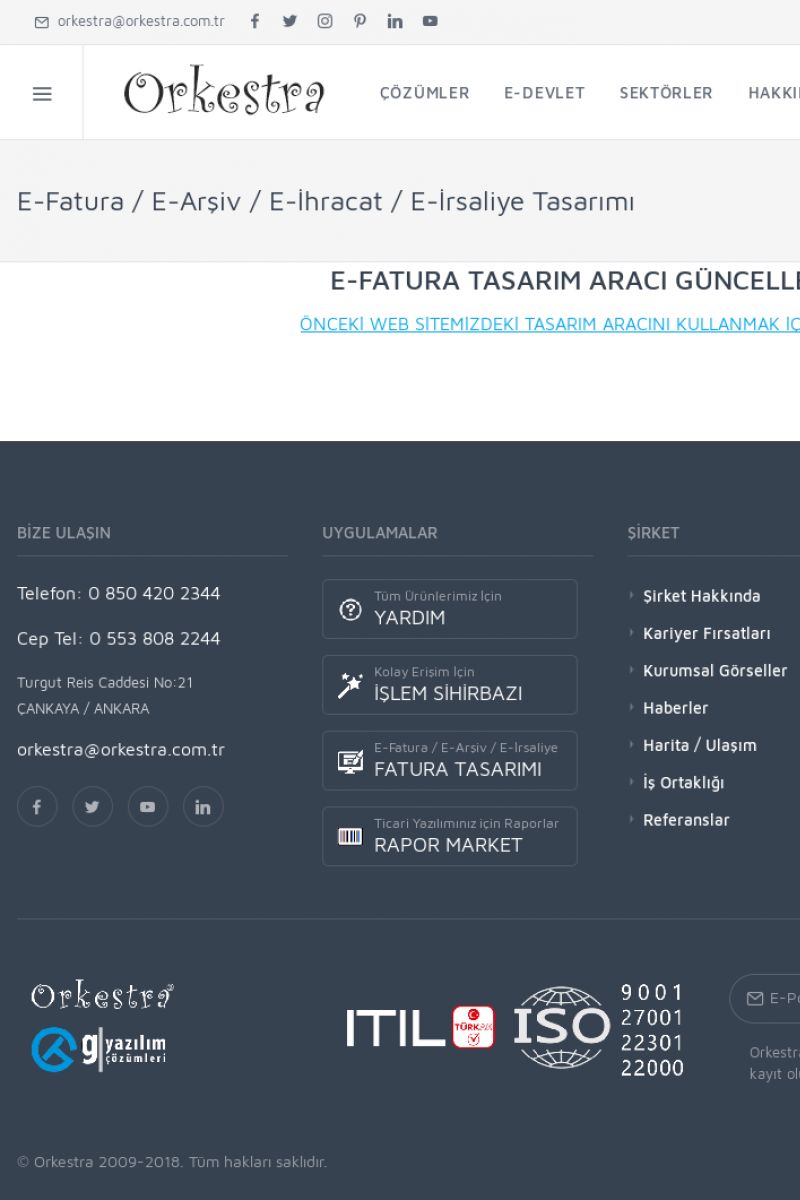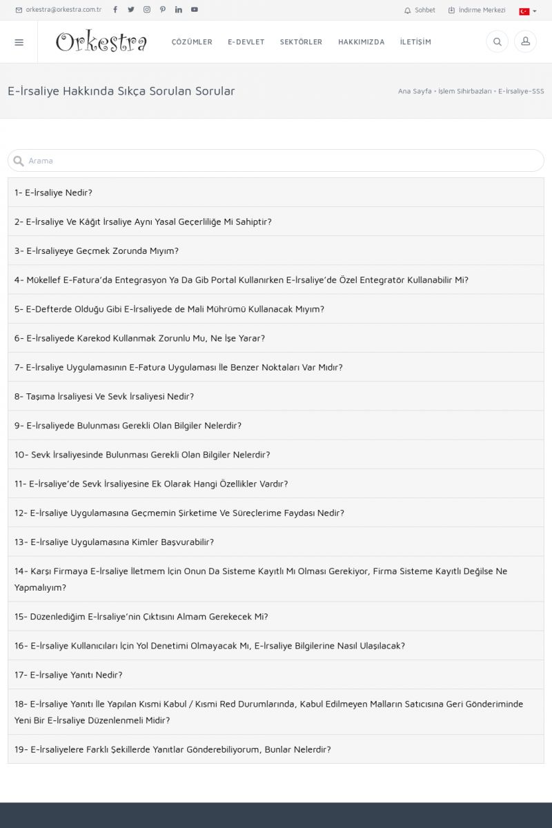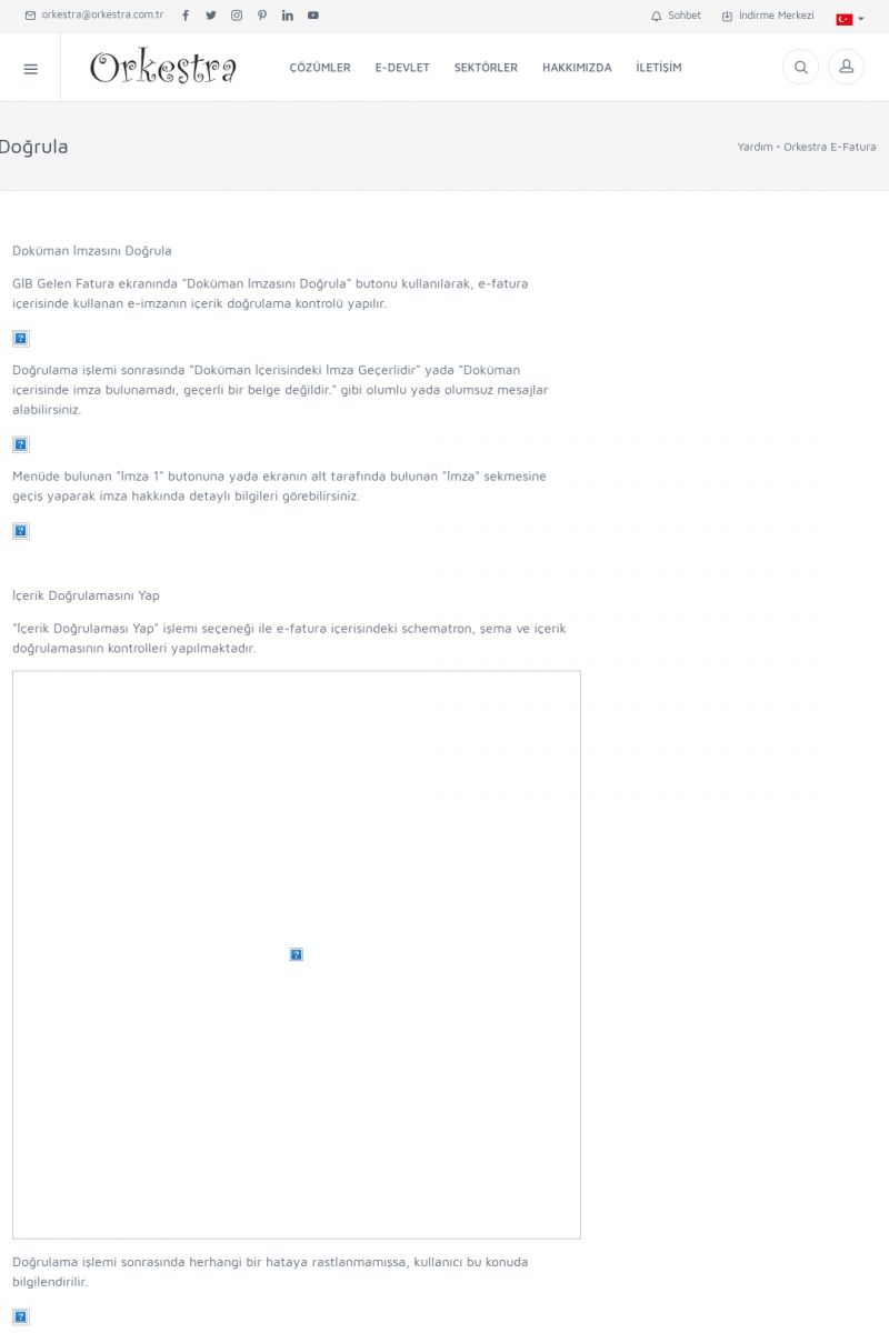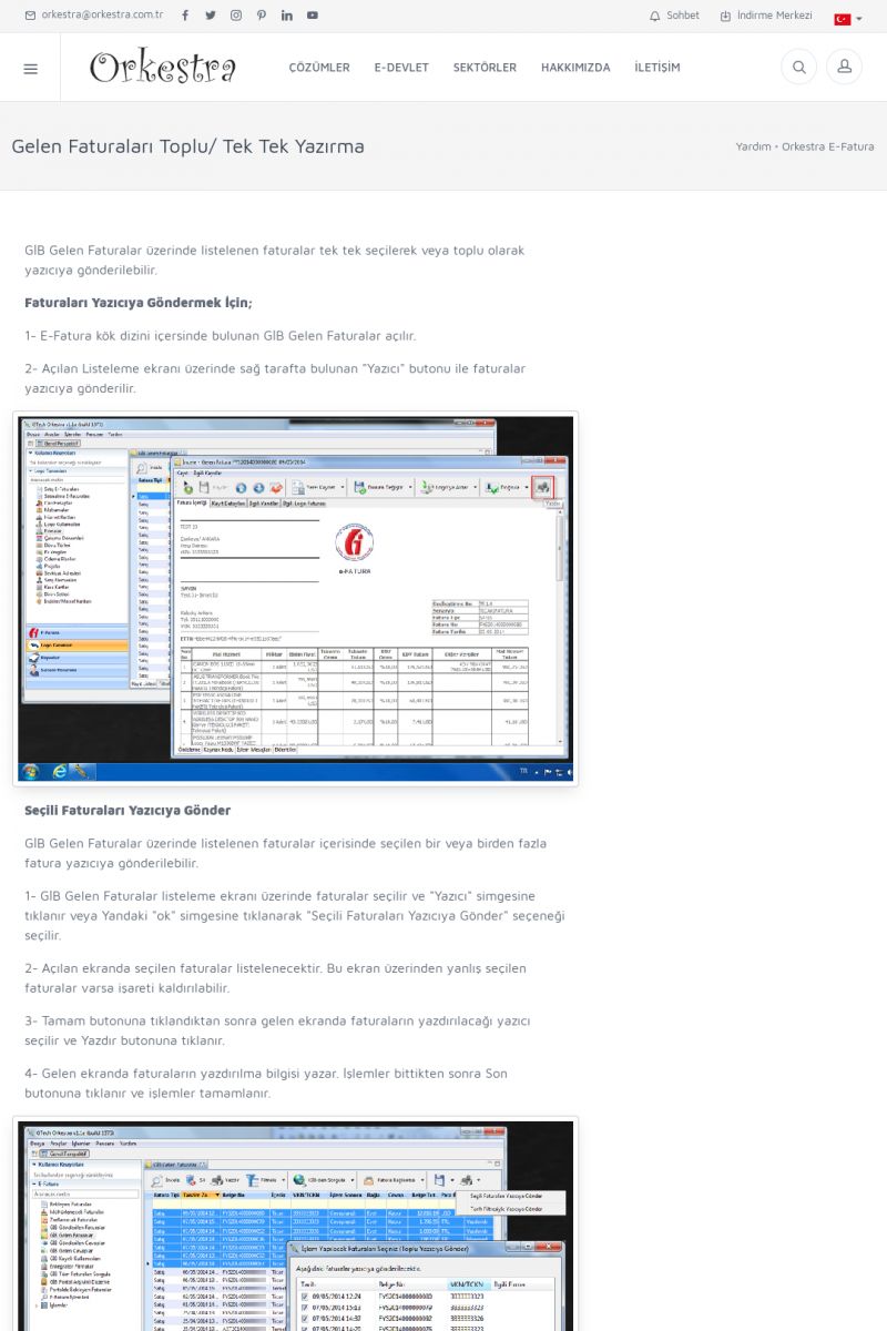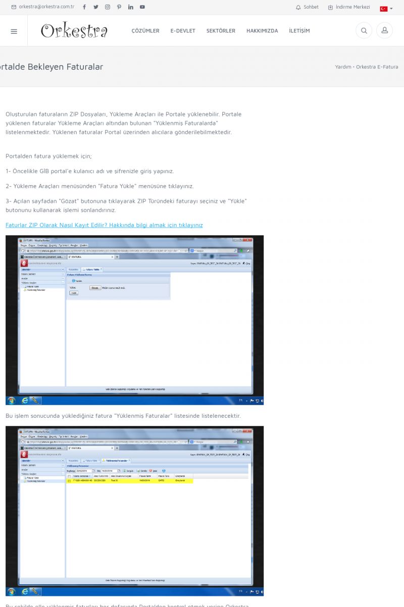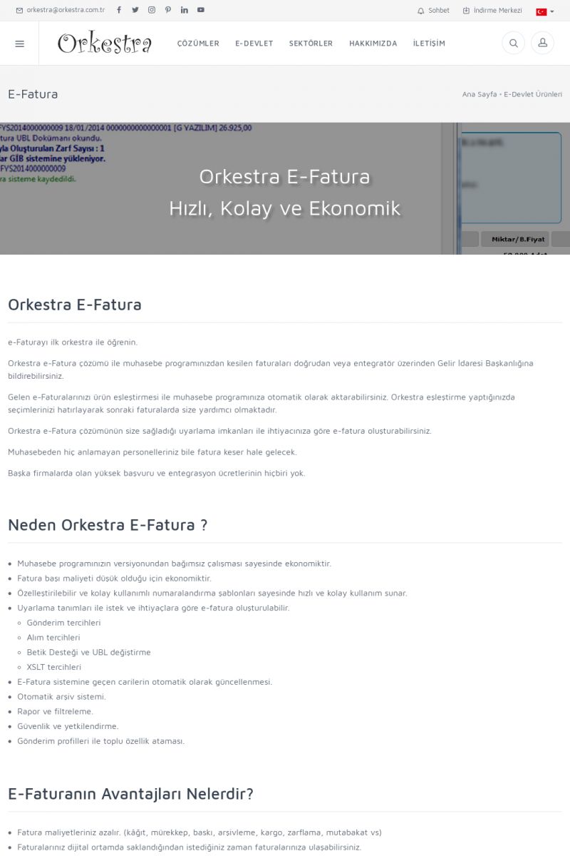 | 9 |  | Orkestra E-İrsaliye ORKESTRA E-İRSALIYE ------------------------- Sayfa içeriği hazırlanıyor ... E-DEVLET ÇÖZÜMLERİMİZ [E-FATURA] [/index.php?sayfa=edevlet&m=efatura] E-FATURA DETAY İÇİN TIKLAYIN [/index.php?sayfa=edevlet&m=efatura] [E-DEFTER] [/index.php?sayfa=edevlet&m=edefter] E-DEFTER DETAY İÇİN TIKLAYIN [/index. KISA ERİŞİM KODU : XYJK / ARA9 | |