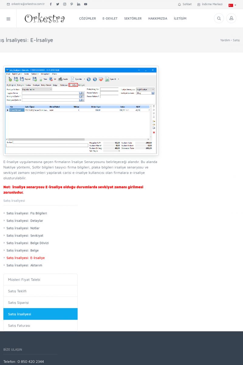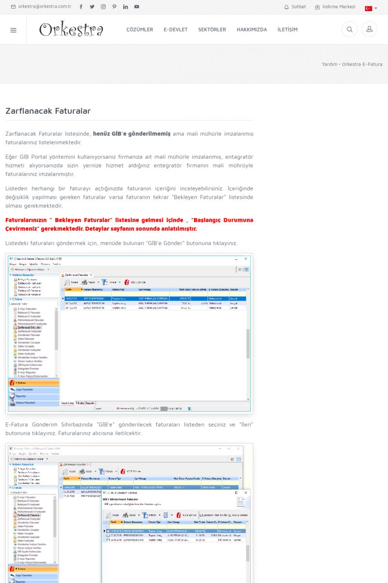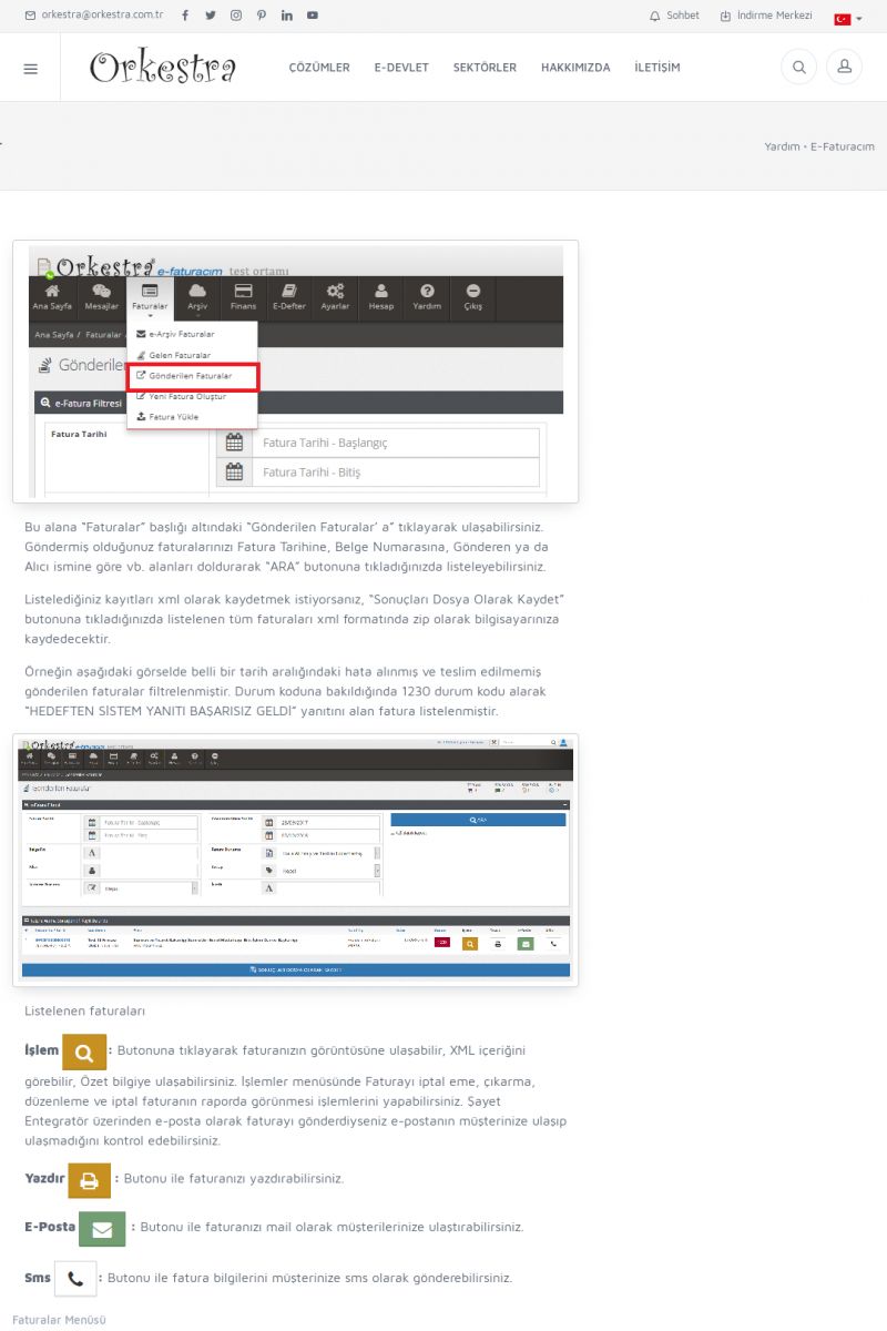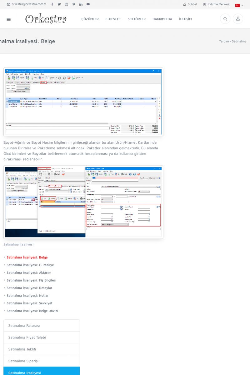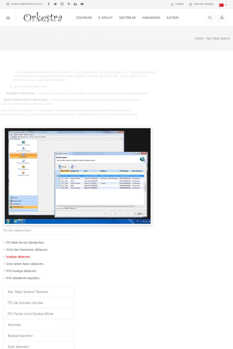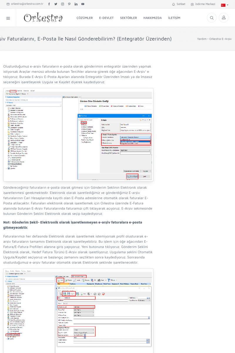 | 1826 |  | e-İrsaliye Gönderimi ile İlgili Her ŞeyE-İRSALIYE SISTEM AYARLARI Detay İçin Tıklayınız [/index.php?sayfa=yardim&m=53&y=1752&y2=1793] ORKESTRA, OLUŞTURULAN IRSALIYELERI E-İRSALIYE OLARAK NASIL AYARLAR? Detay İçin Tıklayınız [/index.php?sayfa=yardim&m=53&y=1752&y2=1766] E-İRSALIYE NASIL GÖNDERILIR ? Detay İçin Tıklayınız [/index. KISA ERİŞİM KODU : XYCSHT / ARA1827 | |