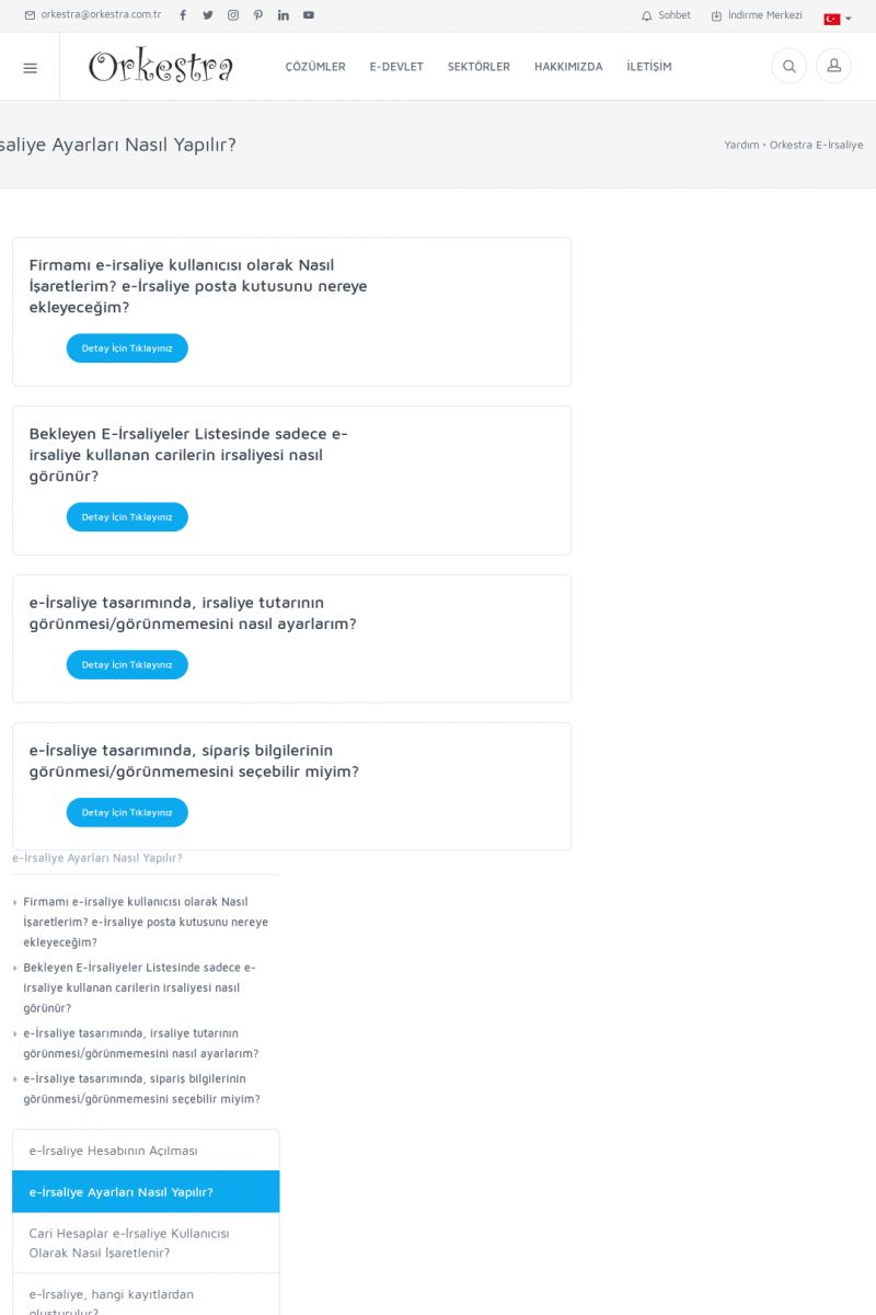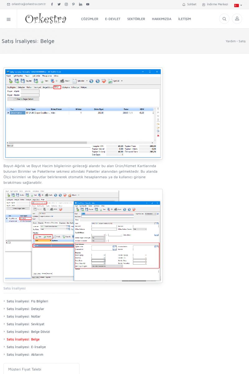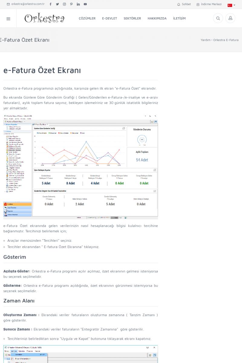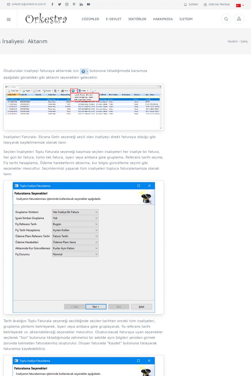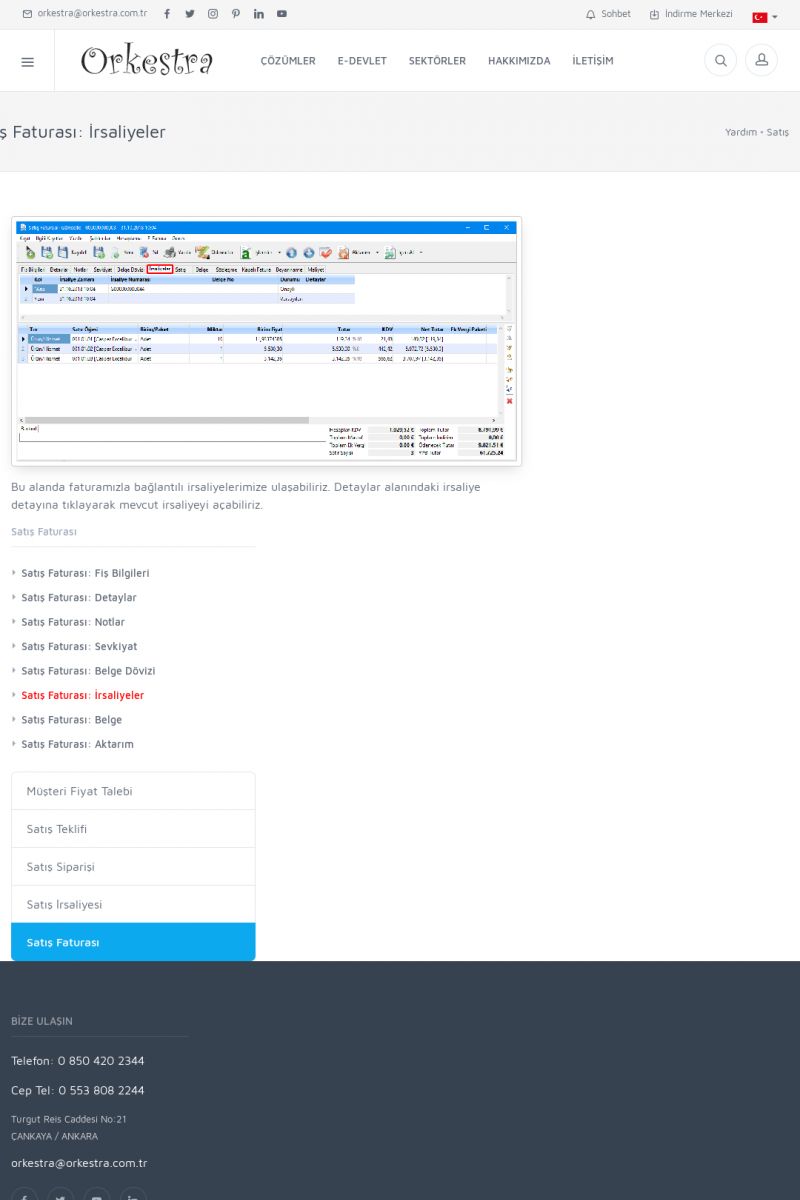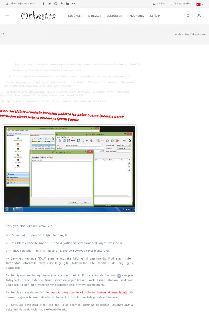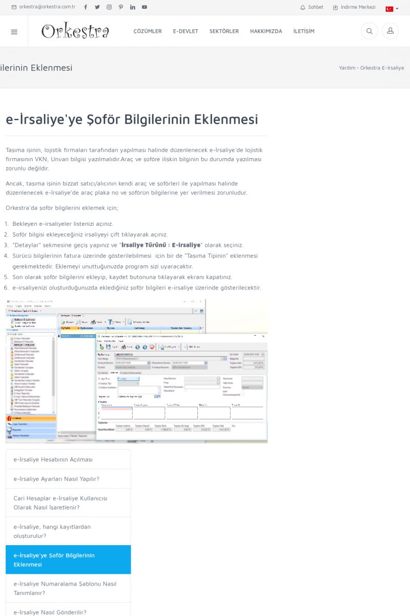 | 1826 |  | e-İrsaliye Gönderimi ile İlgili Her ŞeyE-İRSALIYE SISTEM AYARLARI Detay İçin Tıklayınız [/index.php?sayfa=yardim&m=53&y=1752&y2=1793] ORKESTRA, OLUŞTURULAN IRSALIYELERI E-İRSALIYE OLARAK NASIL AYARLAR? Detay İçin Tıklayınız [/index.php?sayfa=yardim&m=53&y=1752&y2=1766] E-İRSALIYE NASIL GÖNDERILIR ? Detay İçin Tıklayınız [/index. KISA ERİŞİM KODU : XYCSHT / ARA1827 | |