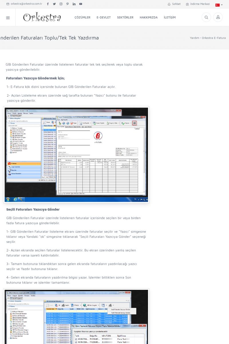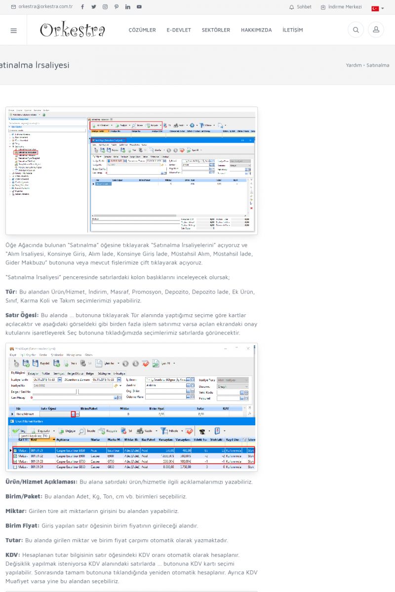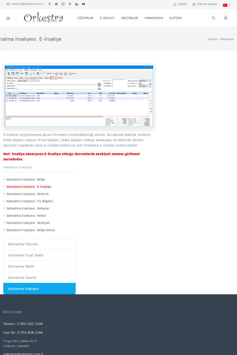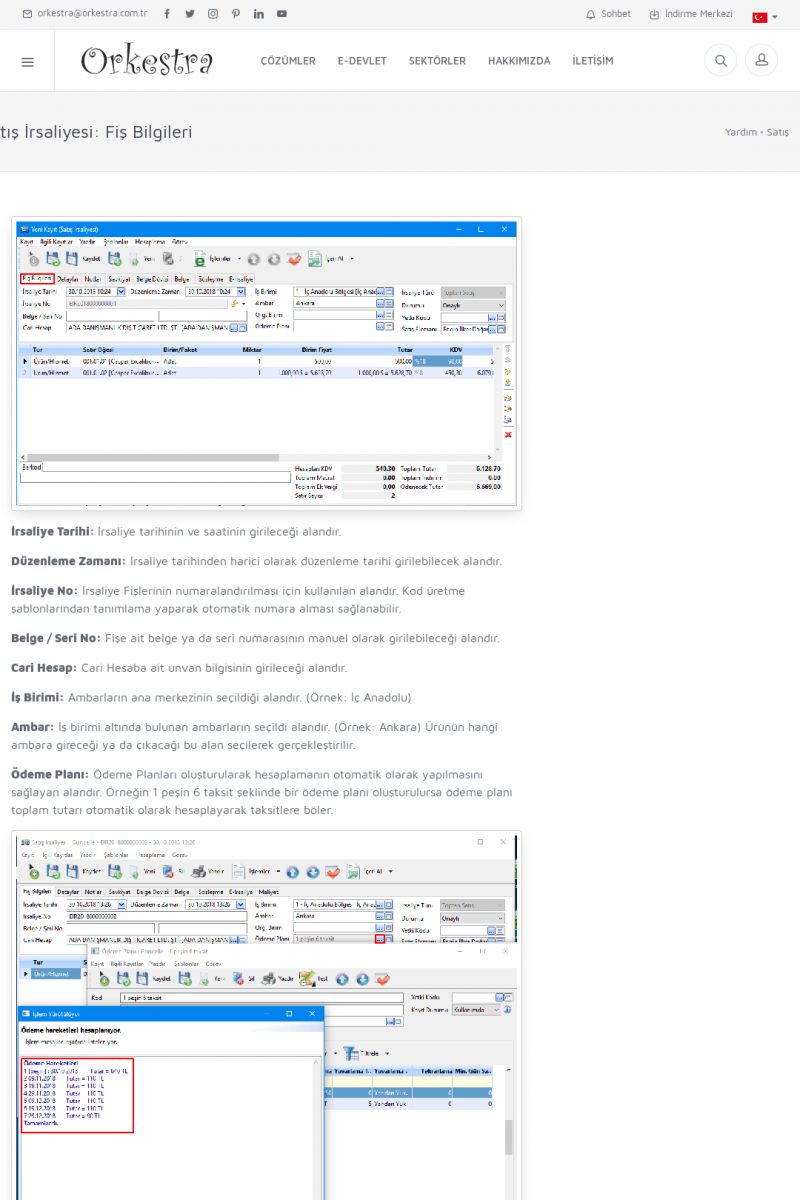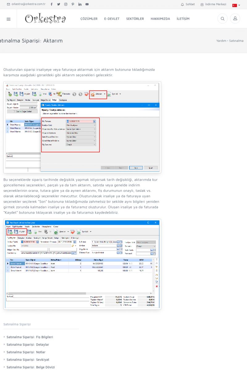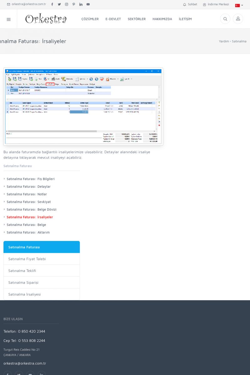 | 1826 |  | e-İrsaliye Gönderimi ile İlgili Her ŞeyE-İRSALIYE SISTEM AYARLARI Detay İçin Tıklayınız [/index.php?sayfa=yardim&m=53&y=1752&y2=1793] ORKESTRA, OLUŞTURULAN IRSALIYELERI E-İRSALIYE OLARAK NASIL AYARLAR? Detay İçin Tıklayınız [/index.php?sayfa=yardim&m=53&y=1752&y2=1766] E-İRSALIYE NASIL GÖNDERILIR ? Detay İçin Tıklayınız [/index. KISA ERİŞİM KODU : XYCSHT / ARA1827 | |
