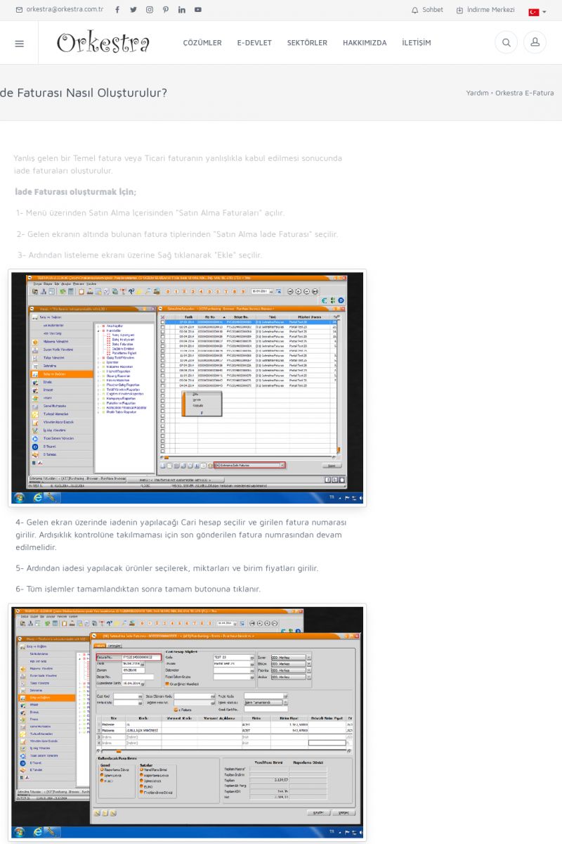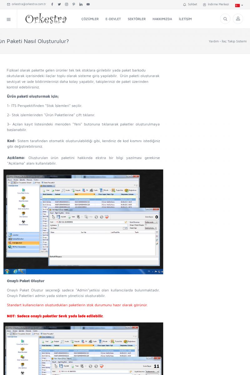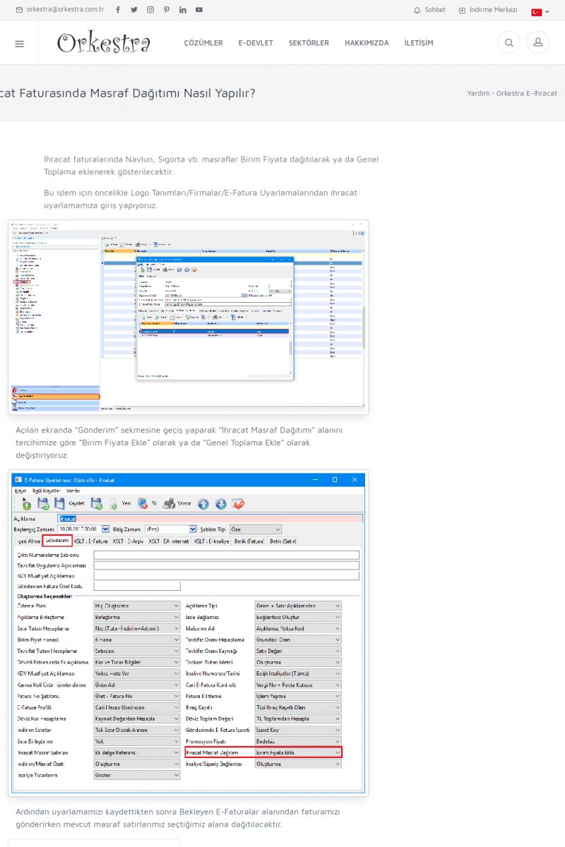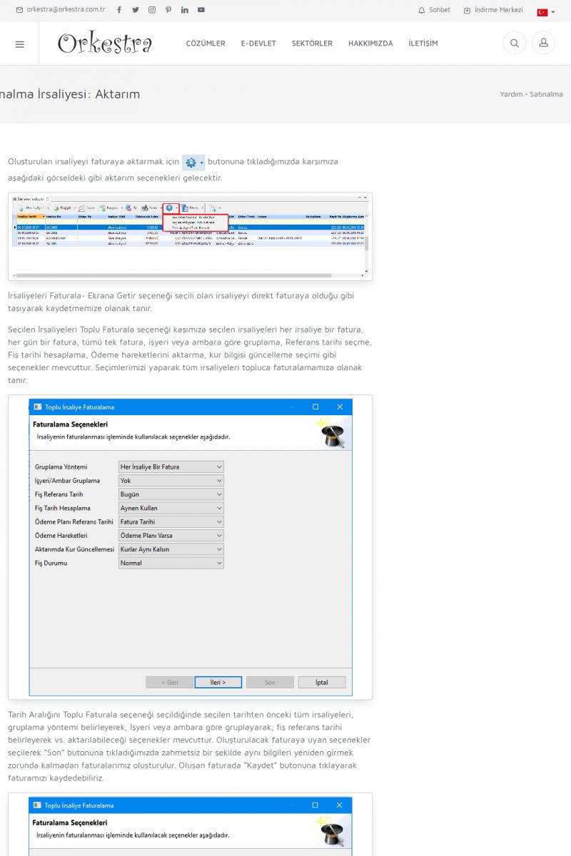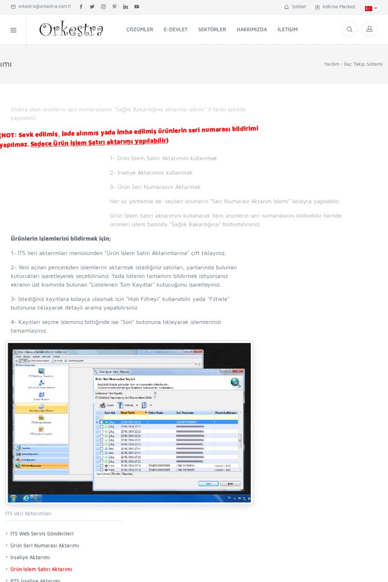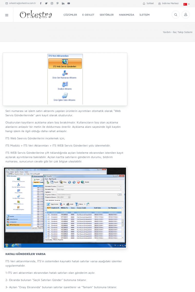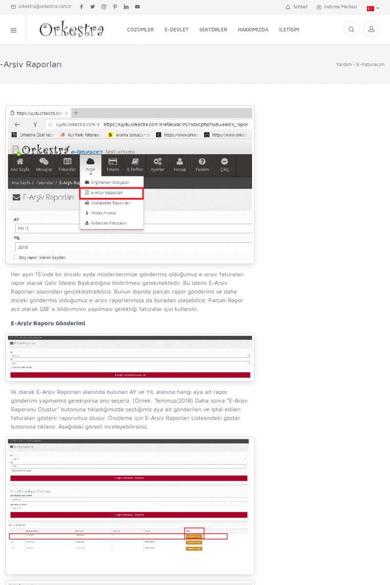 | 1826 |  | e-İrsaliye Gönderimi ile İlgili Her ŞeyE-İRSALIYE SISTEM AYARLARI Detay İçin Tıklayınız [/index.php?sayfa=yardim&m=53&y=1752&y2=1793] ORKESTRA, OLUŞTURULAN IRSALIYELERI E-İRSALIYE OLARAK NASIL AYARLAR? Detay İçin Tıklayınız [/index.php?sayfa=yardim&m=53&y=1752&y2=1766] E-İRSALIYE NASIL GÖNDERILIR ? Detay İçin Tıklayınız [/index. KISA ERİŞİM KODU : XYCSHT / ARA1827 | |