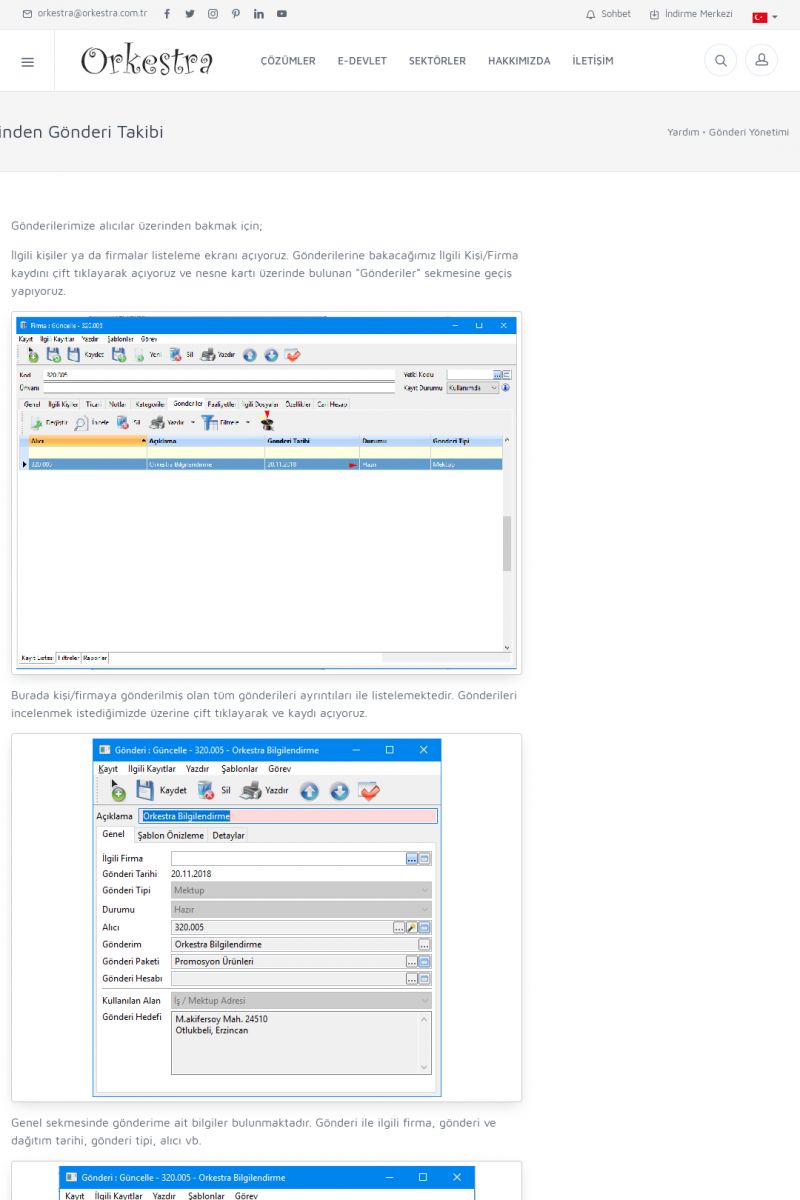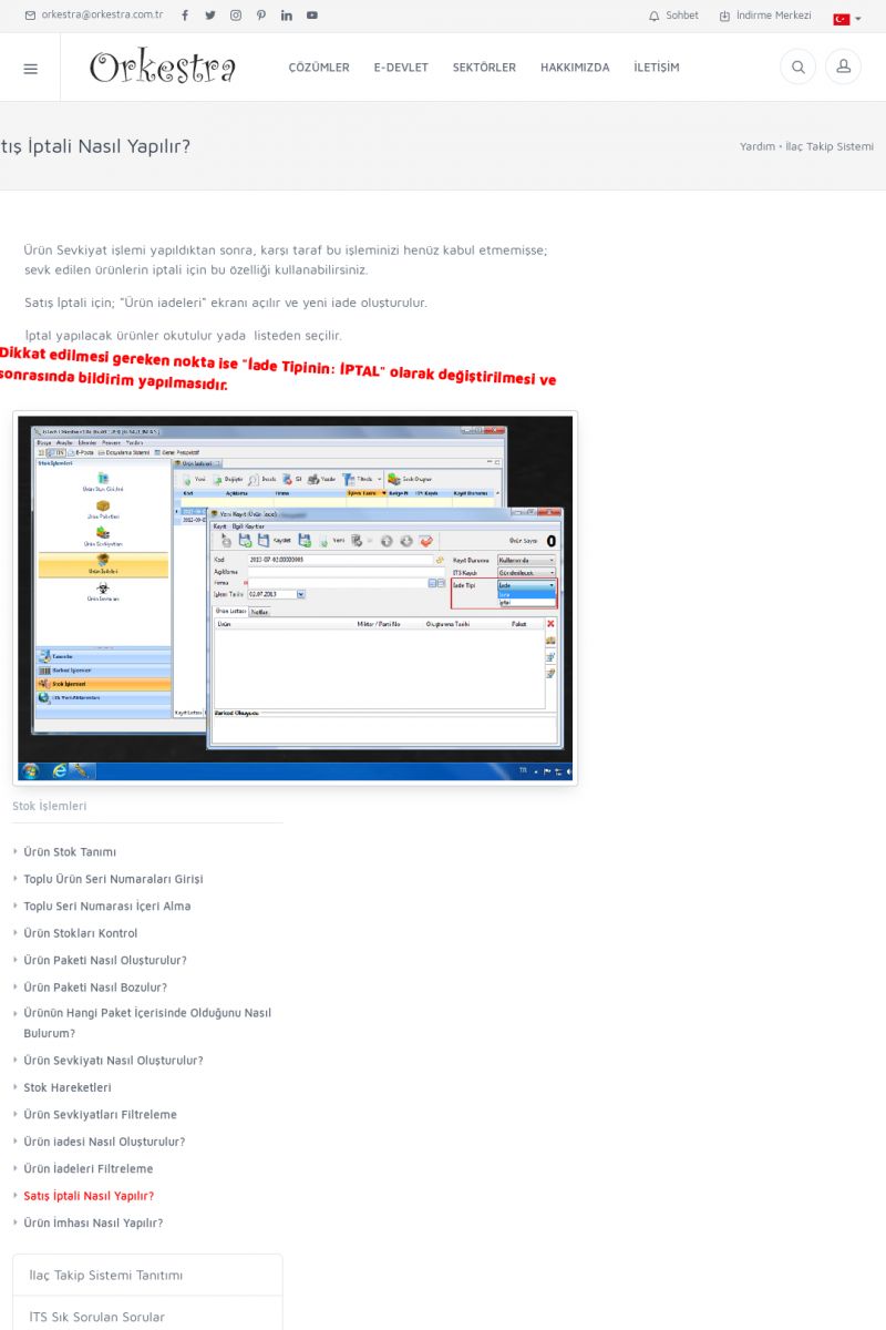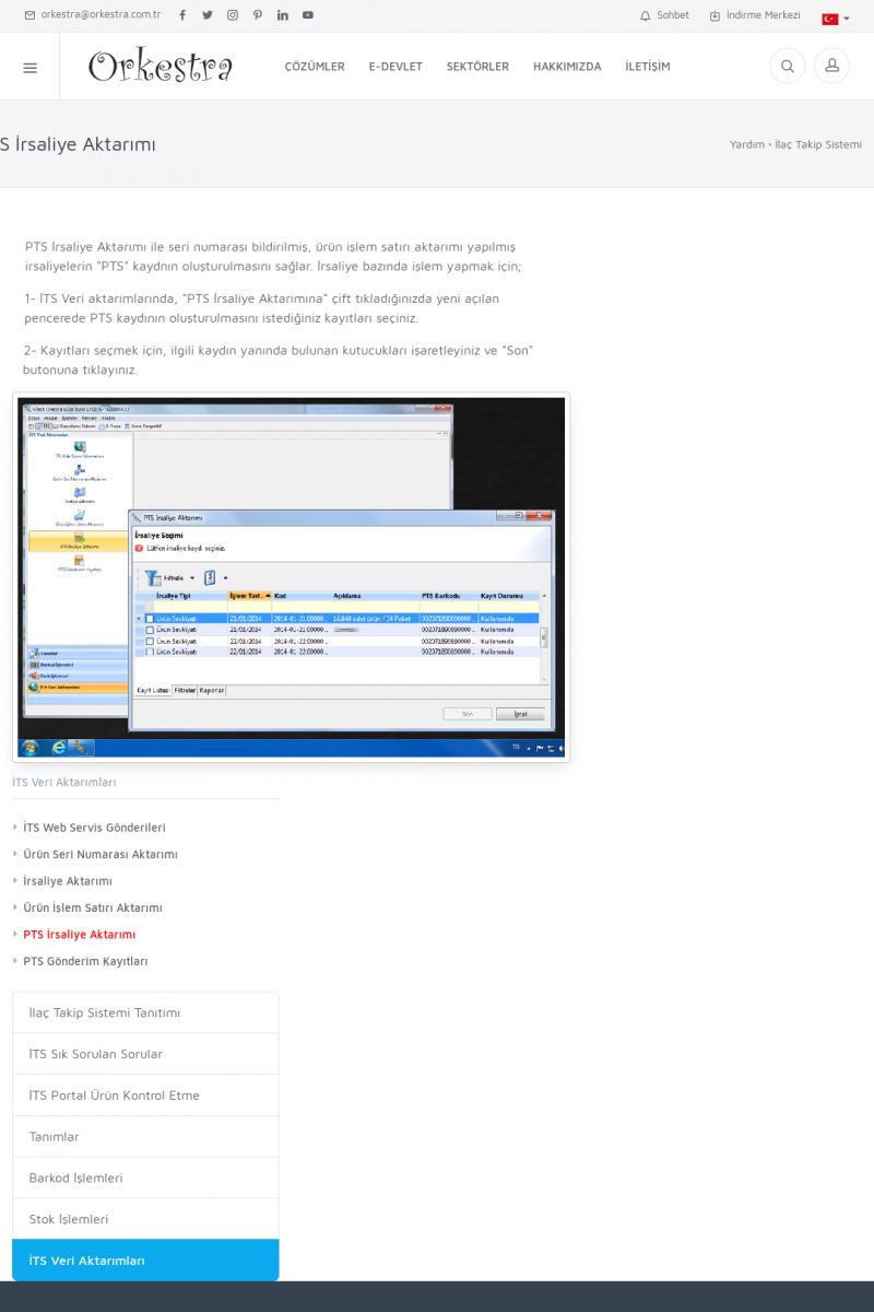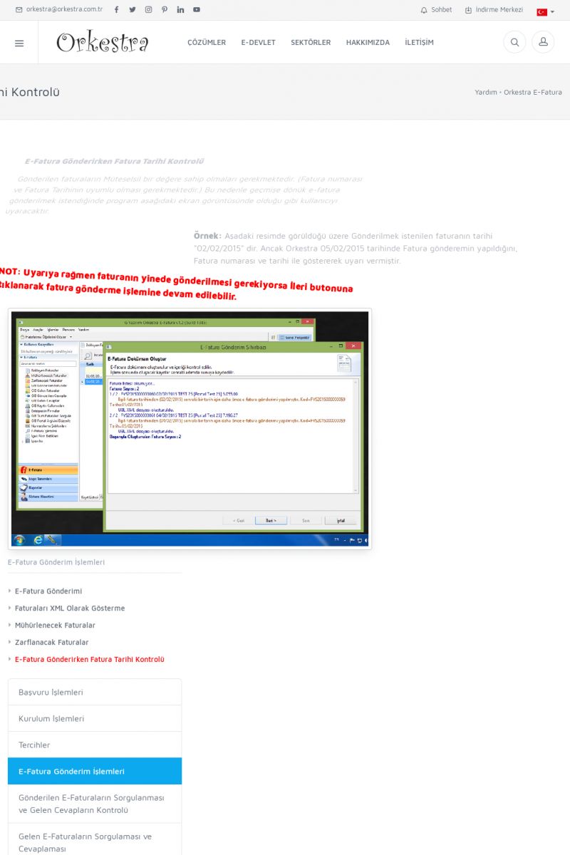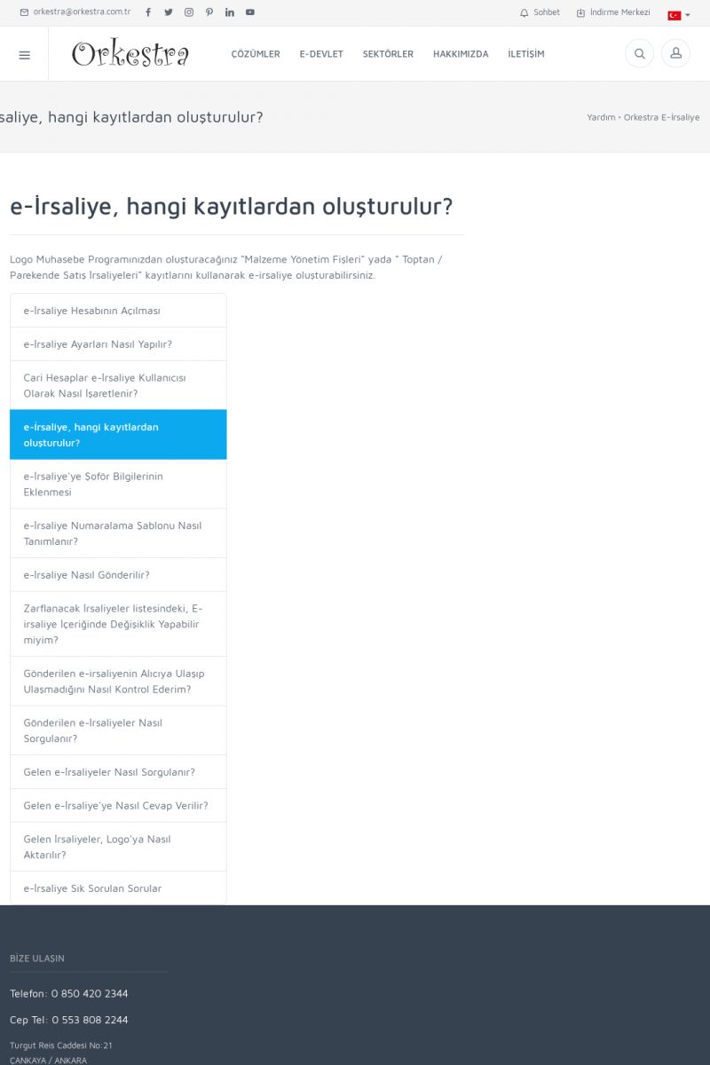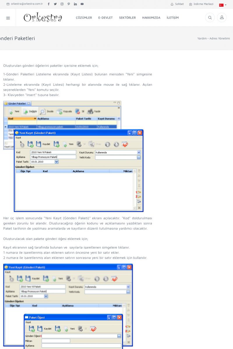 | 1826 |  | e-İrsaliye Gönderimi ile İlgili Her ŞeyE-İRSALIYE SISTEM AYARLARI Detay İçin Tıklayınız [/index.php?sayfa=yardim&m=53&y=1752&y2=1793] ORKESTRA, OLUŞTURULAN IRSALIYELERI E-İRSALIYE OLARAK NASIL AYARLAR? Detay İçin Tıklayınız [/index.php?sayfa=yardim&m=53&y=1752&y2=1766] E-İRSALIYE NASIL GÖNDERILIR ? Detay İçin Tıklayınız [/index. KISA ERİŞİM KODU : XYCSHT / ARA1827 | |