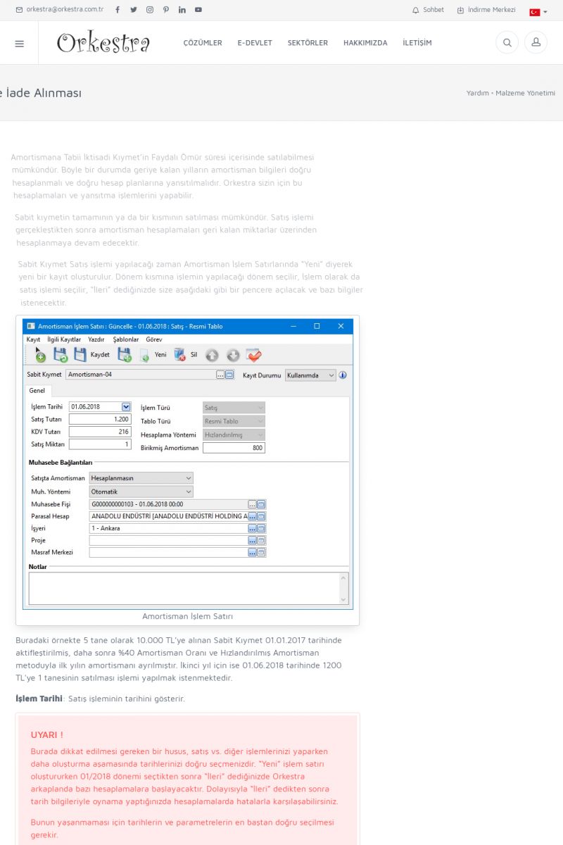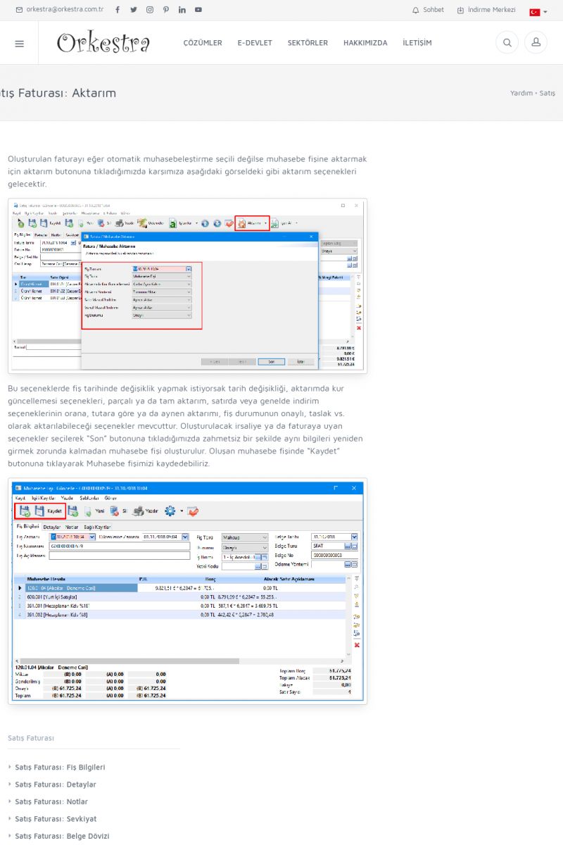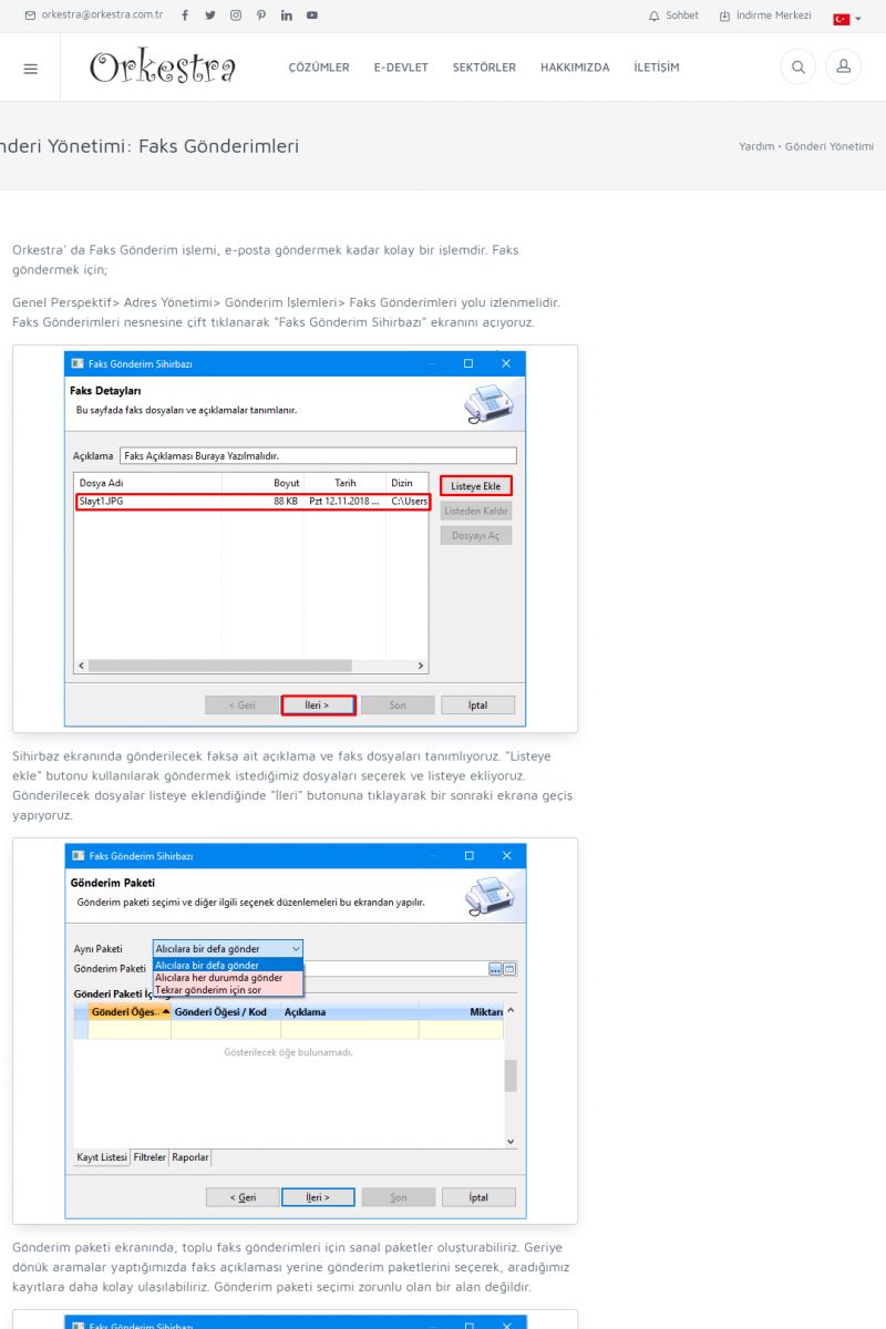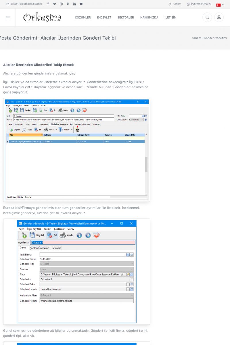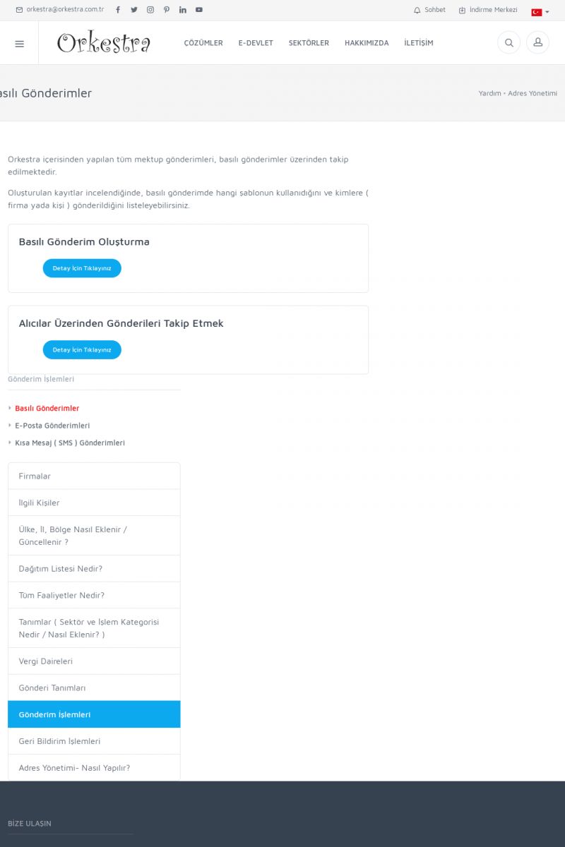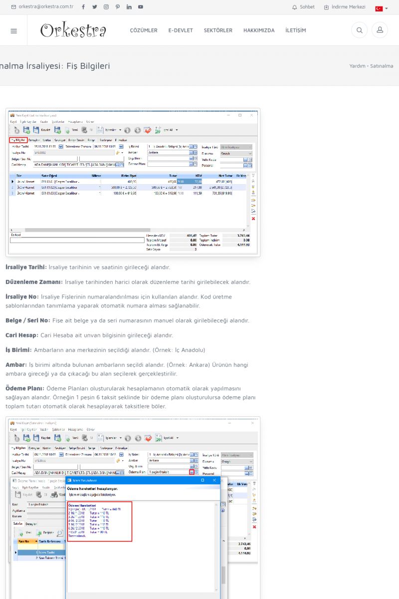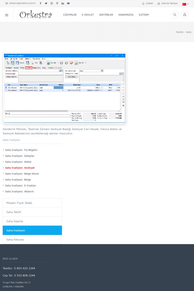 | 1826 |  | e-İrsaliye Gönderimi ile İlgili Her ŞeyE-İRSALIYE SISTEM AYARLARI Detay İçin Tıklayınız [/index.php?sayfa=yardim&m=53&y=1752&y2=1793] ORKESTRA, OLUŞTURULAN IRSALIYELERI E-İRSALIYE OLARAK NASIL AYARLAR? Detay İçin Tıklayınız [/index.php?sayfa=yardim&m=53&y=1752&y2=1766] E-İRSALIYE NASIL GÖNDERILIR ? Detay İçin Tıklayınız [/index. KISA ERİŞİM KODU : XYCSHT / ARA1827 | |