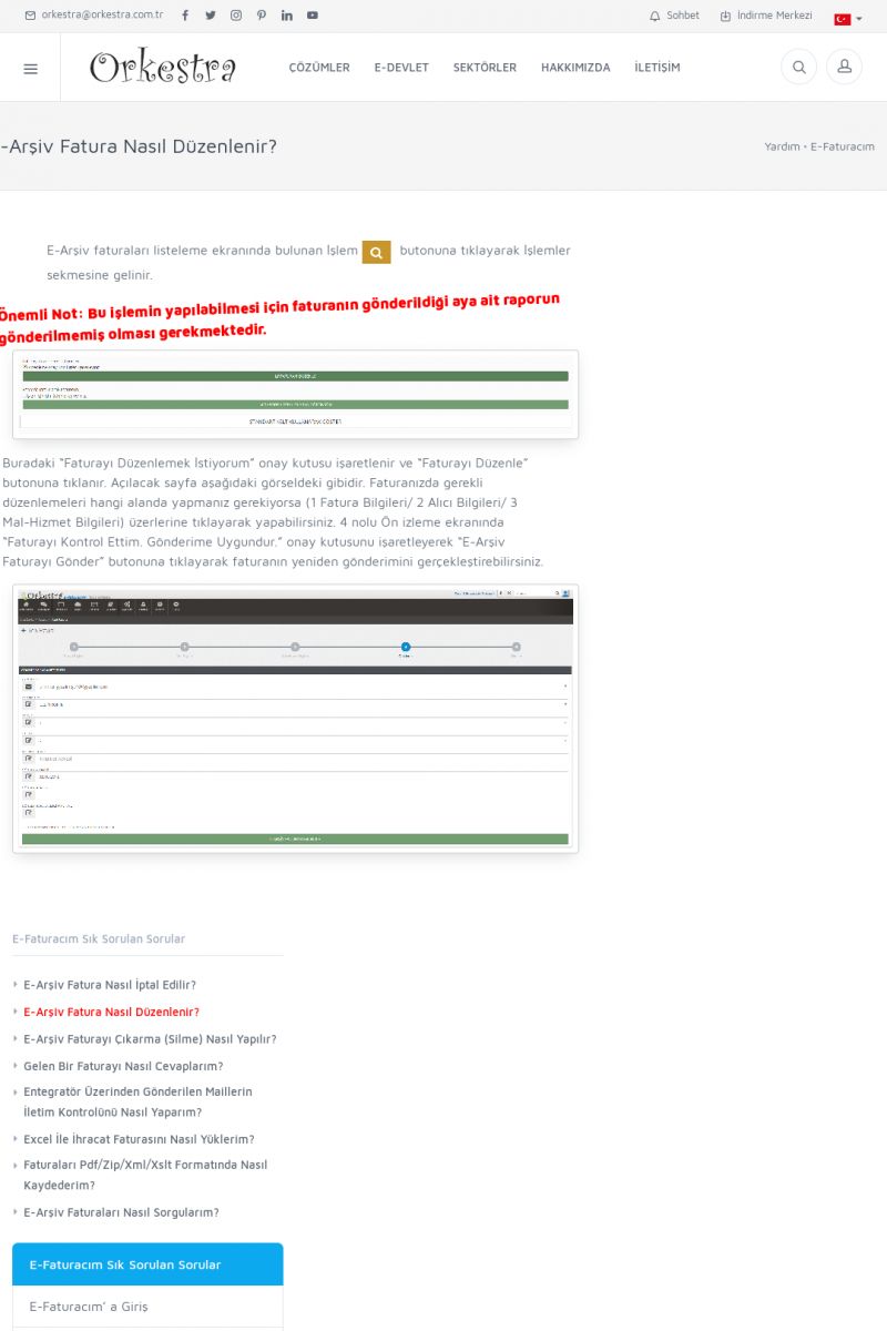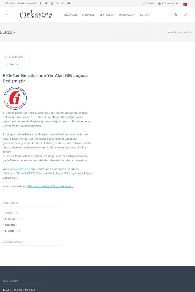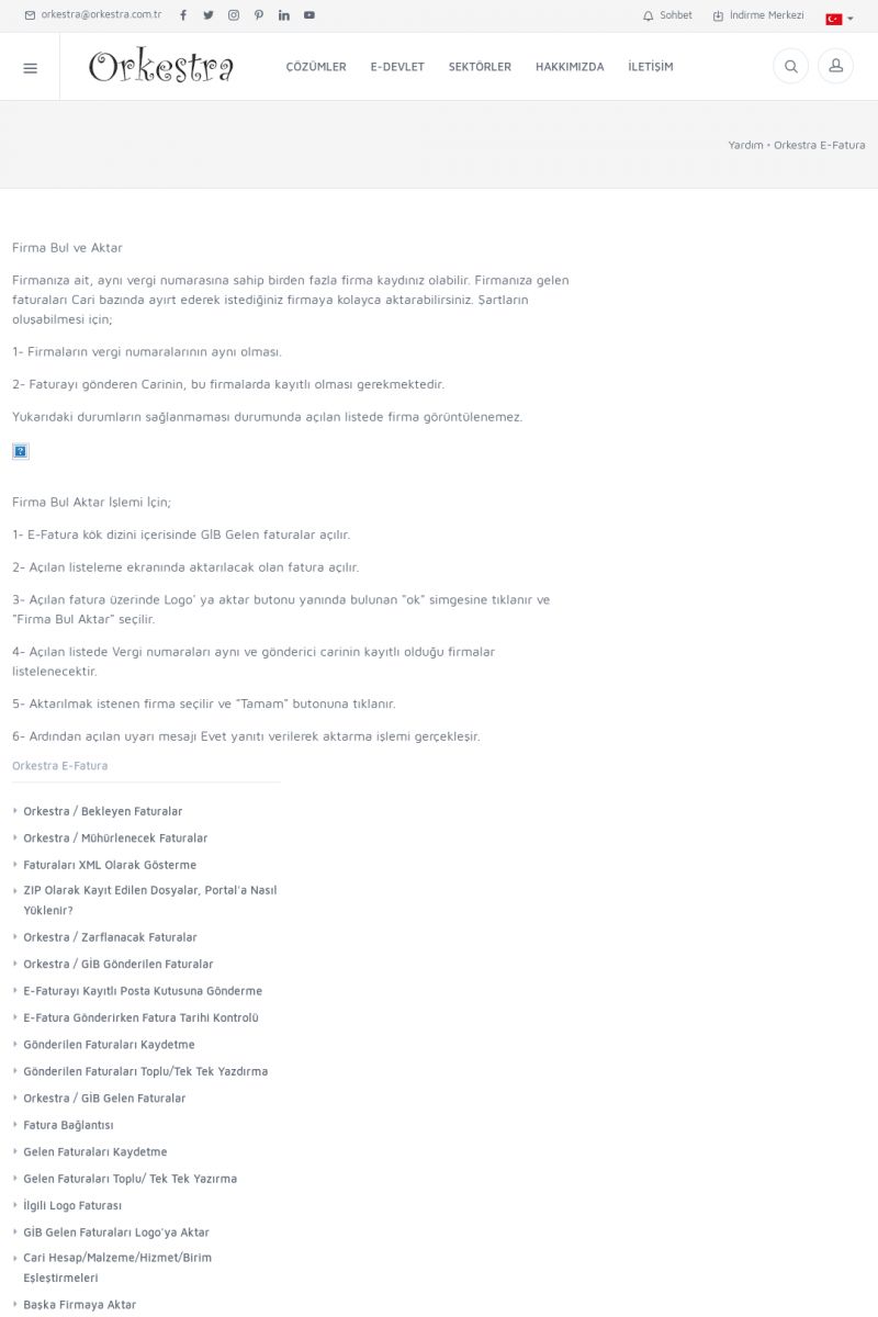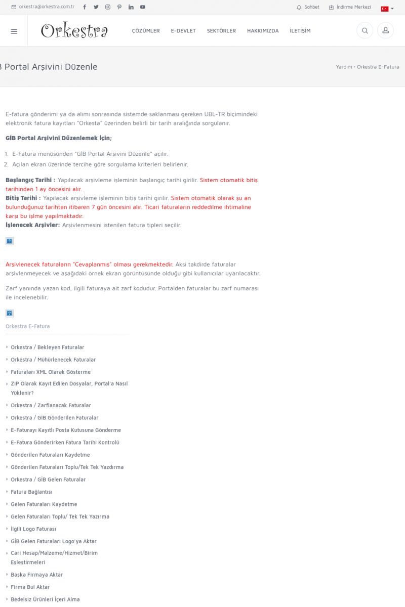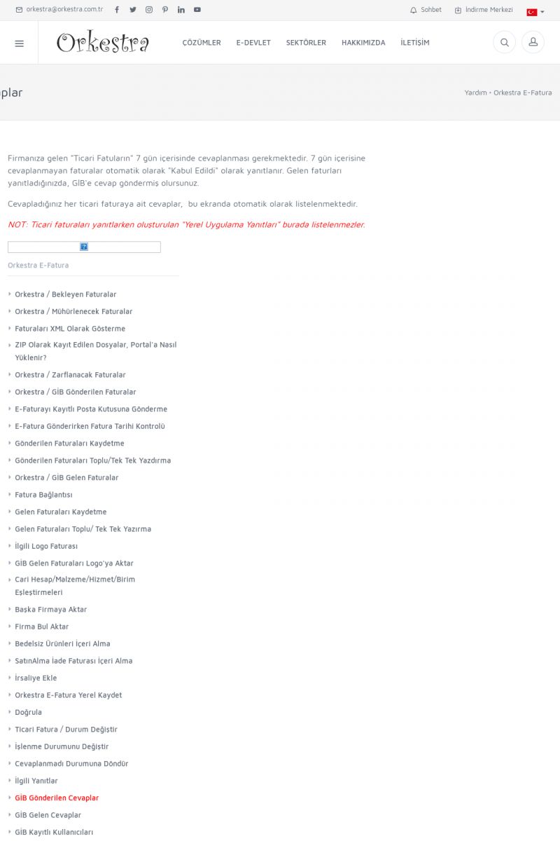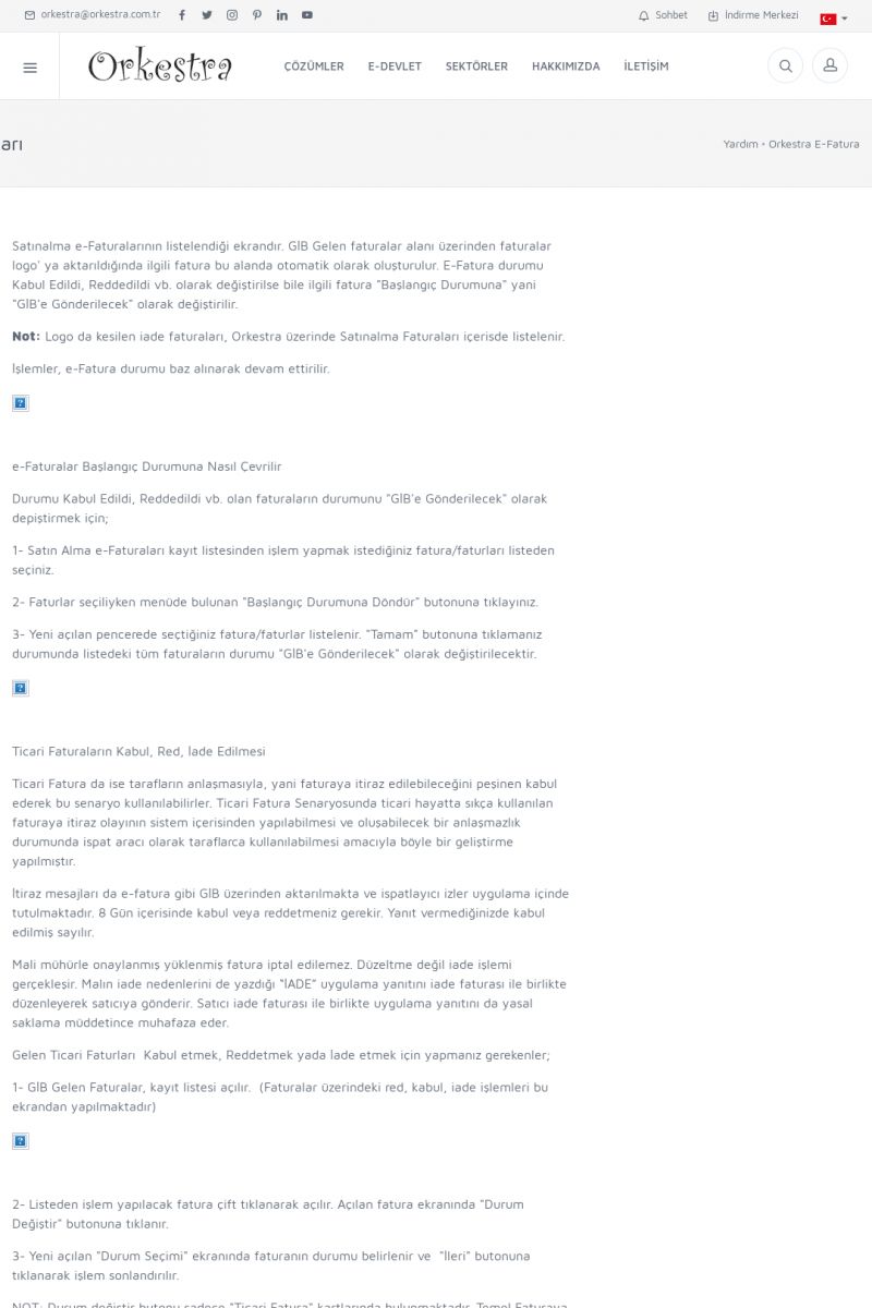 | 20 |  | Haberler / Güncel KonularBu sayfa içerisinde güncel konuları ve haberleri bulabilirsiniz. E-Fatura, E-Defter, E-Arşiv ve Orkestra Ticari Sistem ile ilgili yenilikleri buradan takip edebilirsiniz. KISA ERİŞİM KODU : XYUD / ARA20 | |