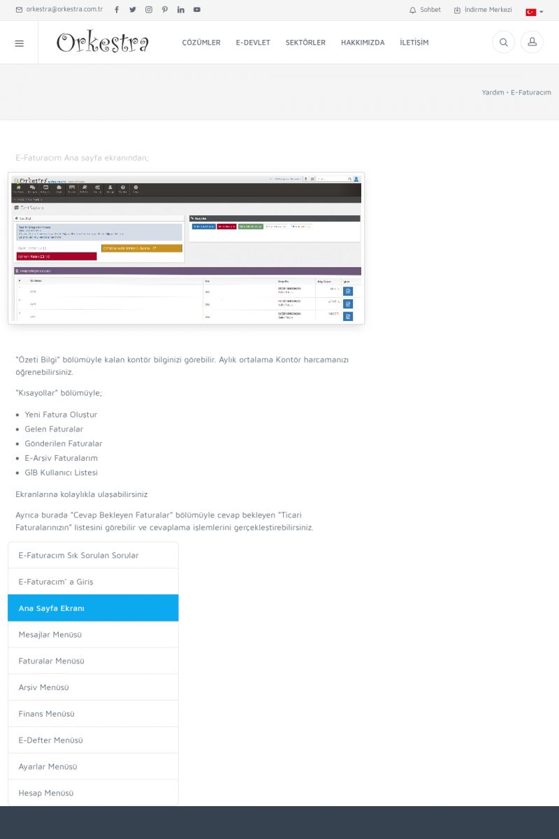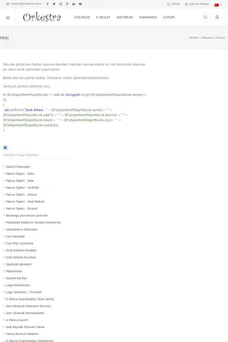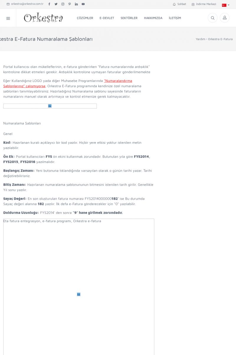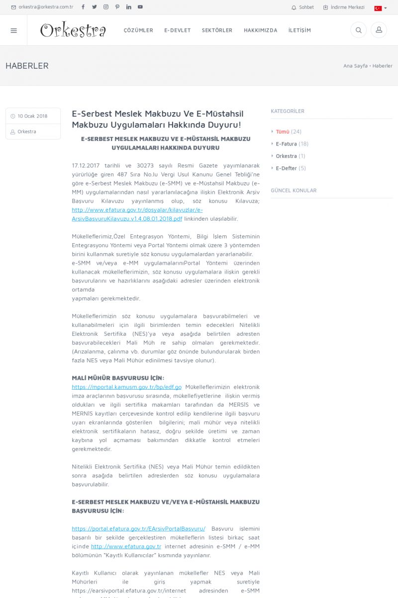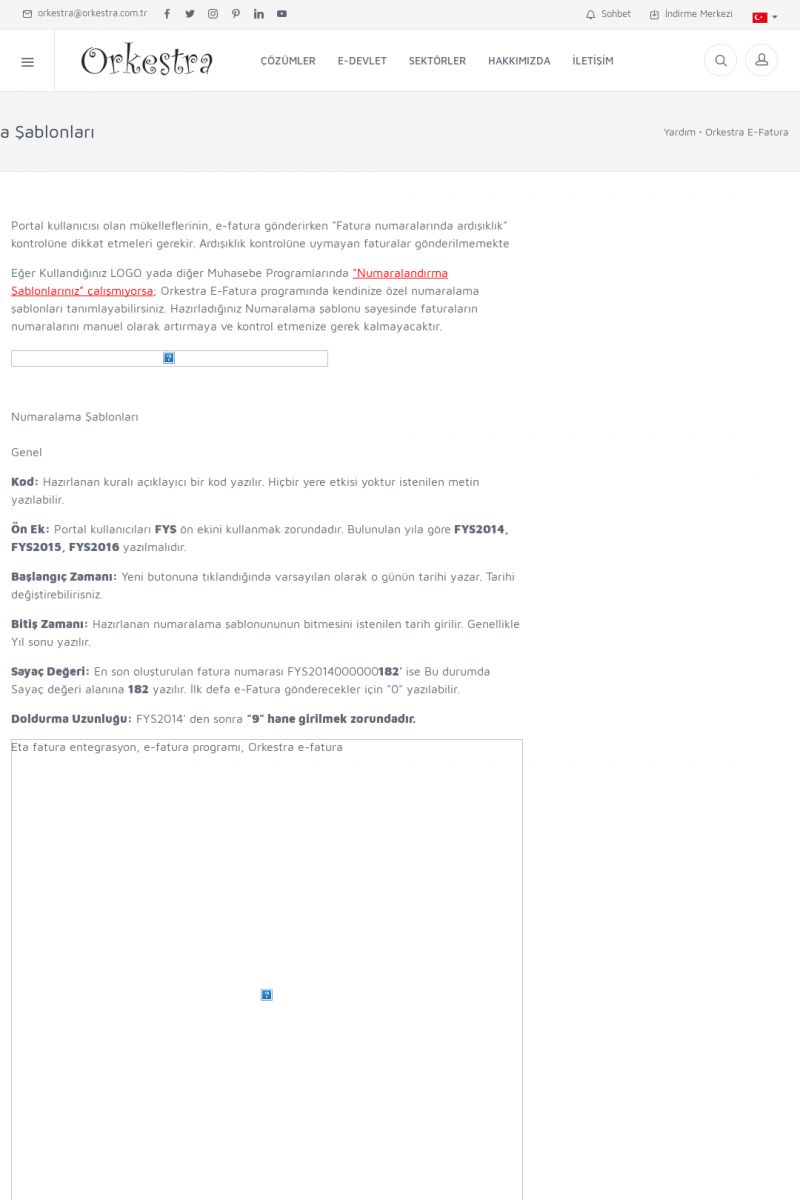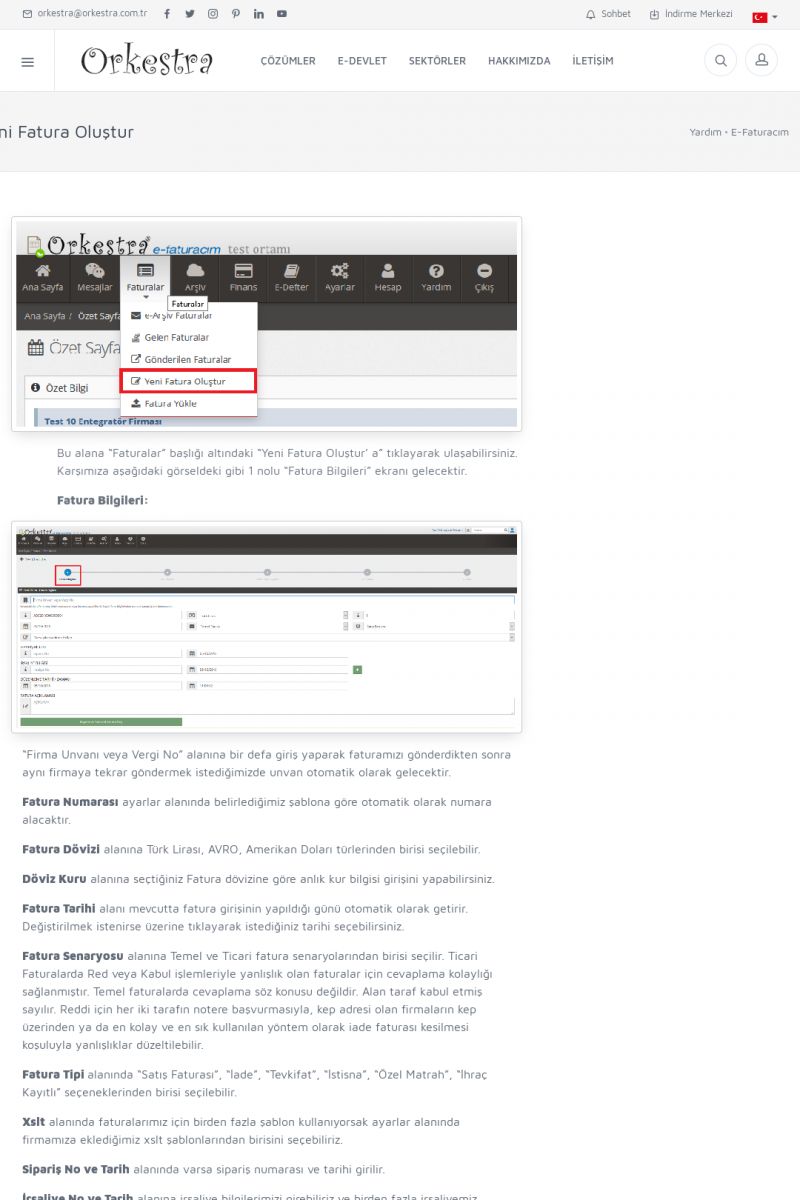 | 20 |  | Haberler / Güncel KonularBu sayfa içerisinde güncel konuları ve haberleri bulabilirsiniz. E-Fatura, E-Defter, E-Arşiv ve Orkestra Ticari Sistem ile ilgili yenilikleri buradan takip edebilirsiniz. KISA ERİŞİM KODU : XYUD / ARA20 | |